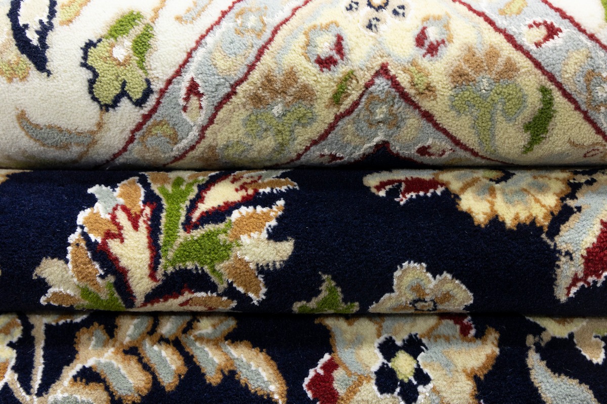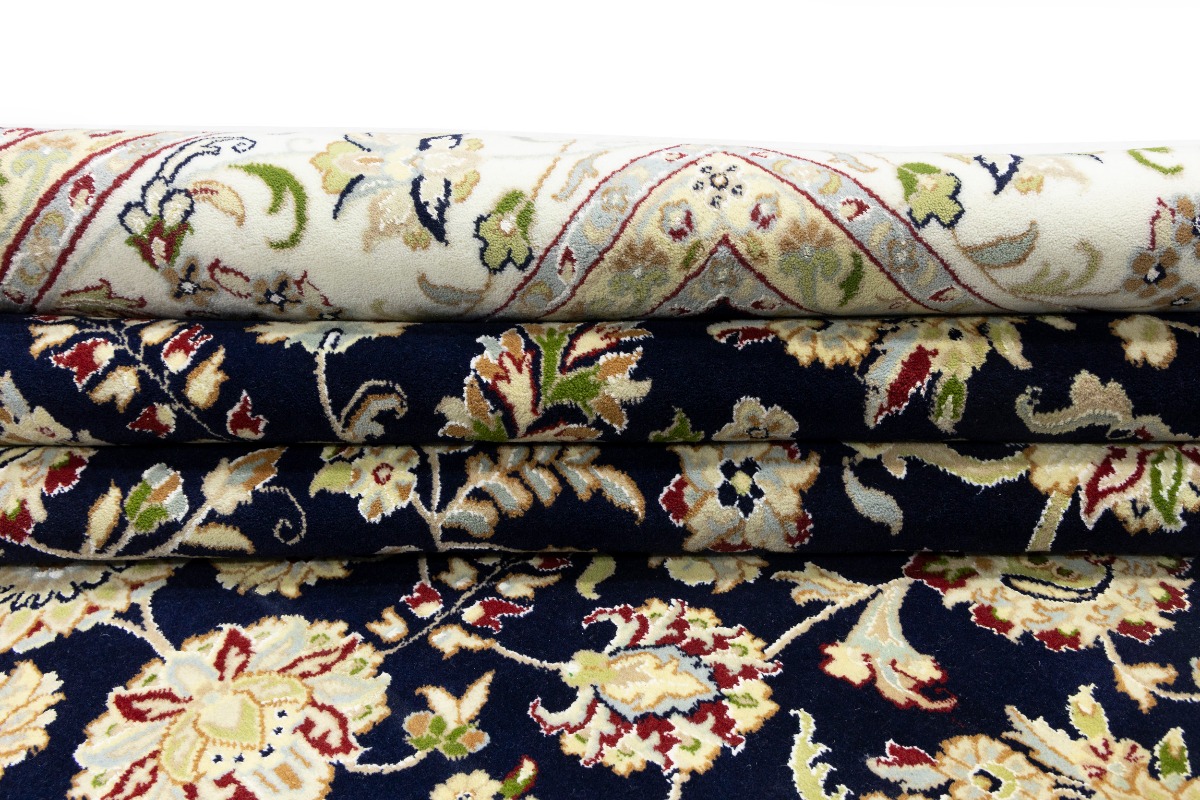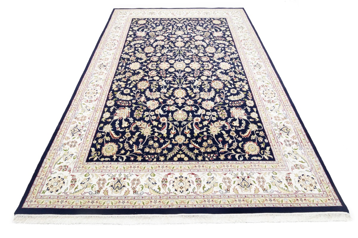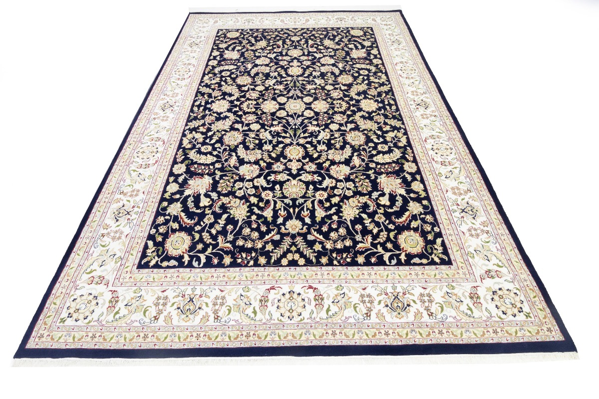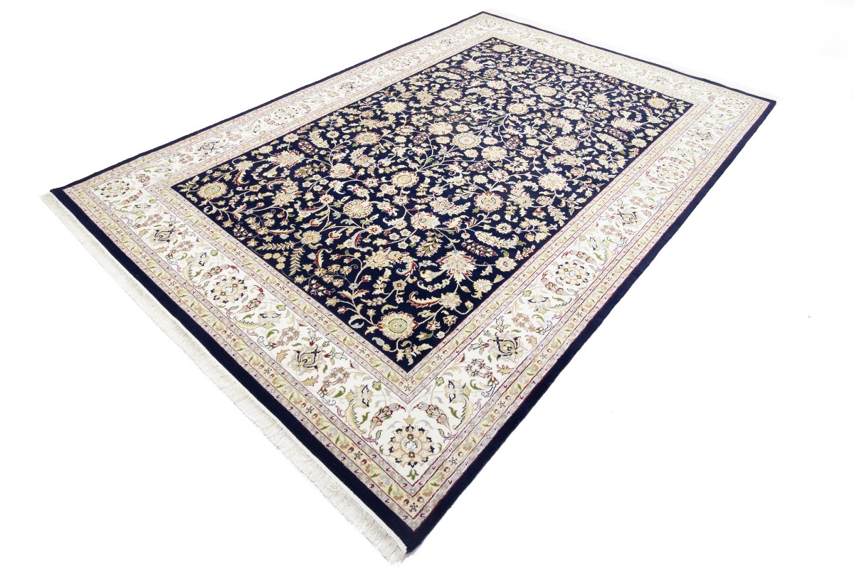 Dark Navy Floral 10X14 Indo-Nain Oriental Rug