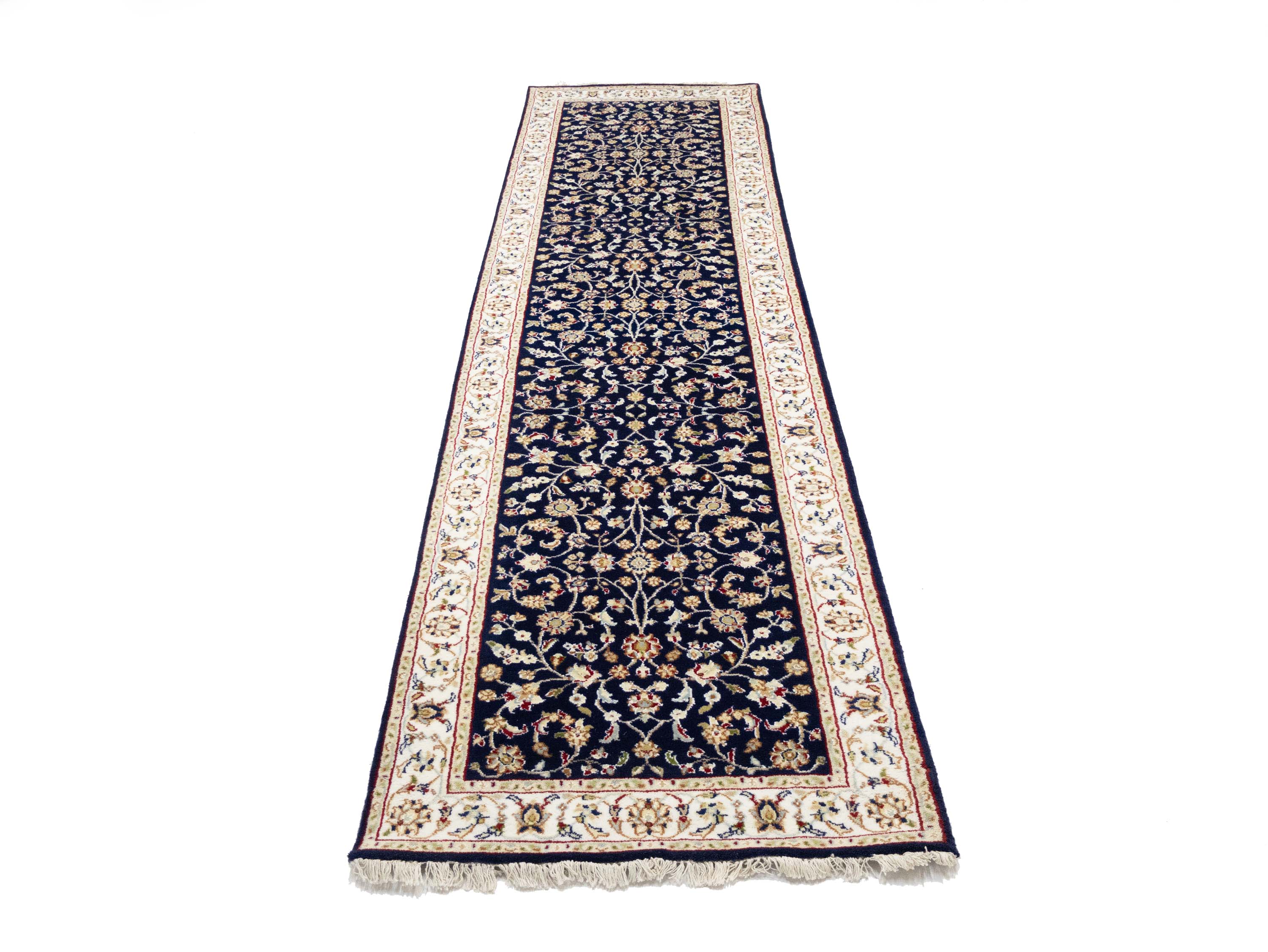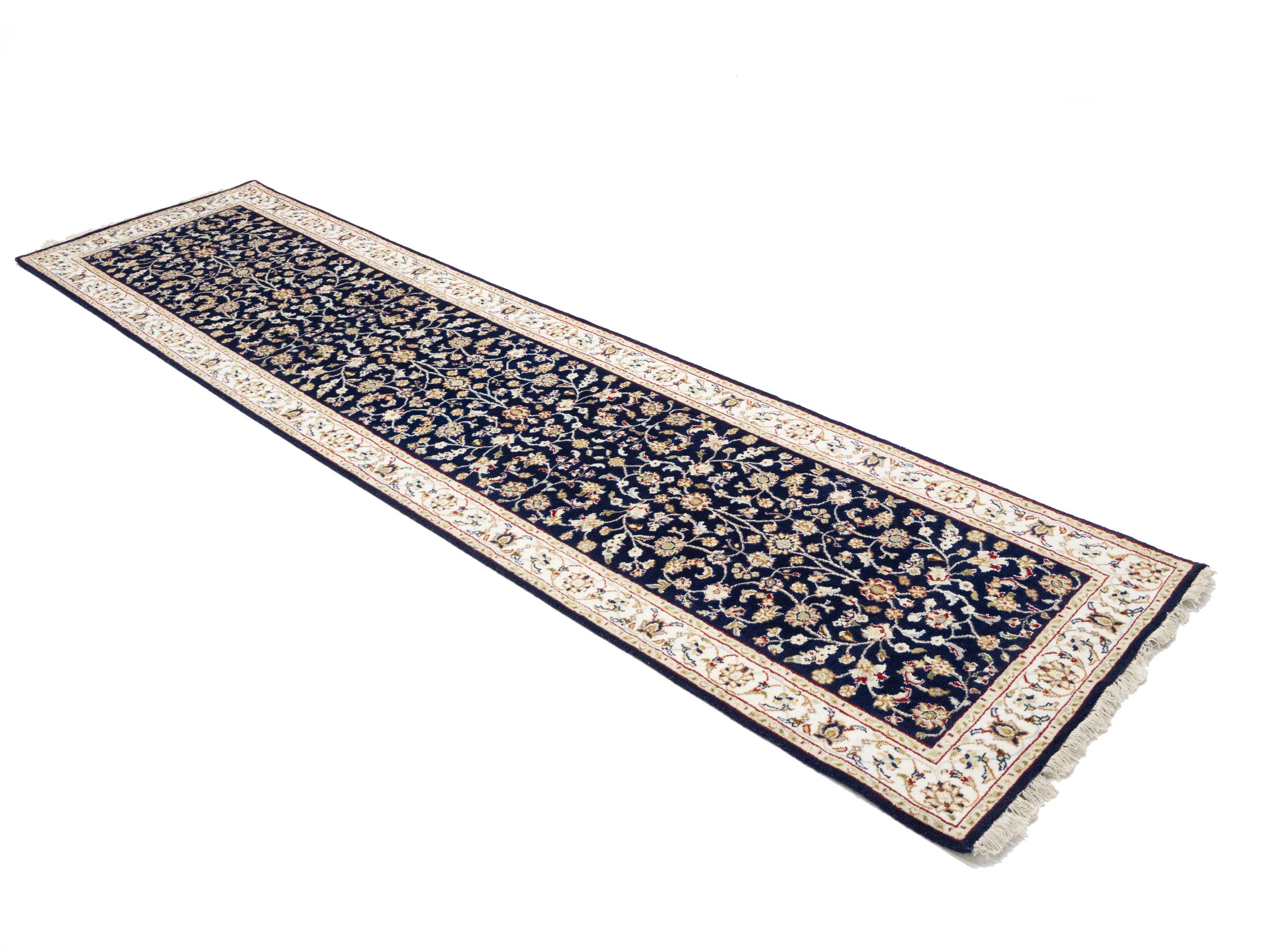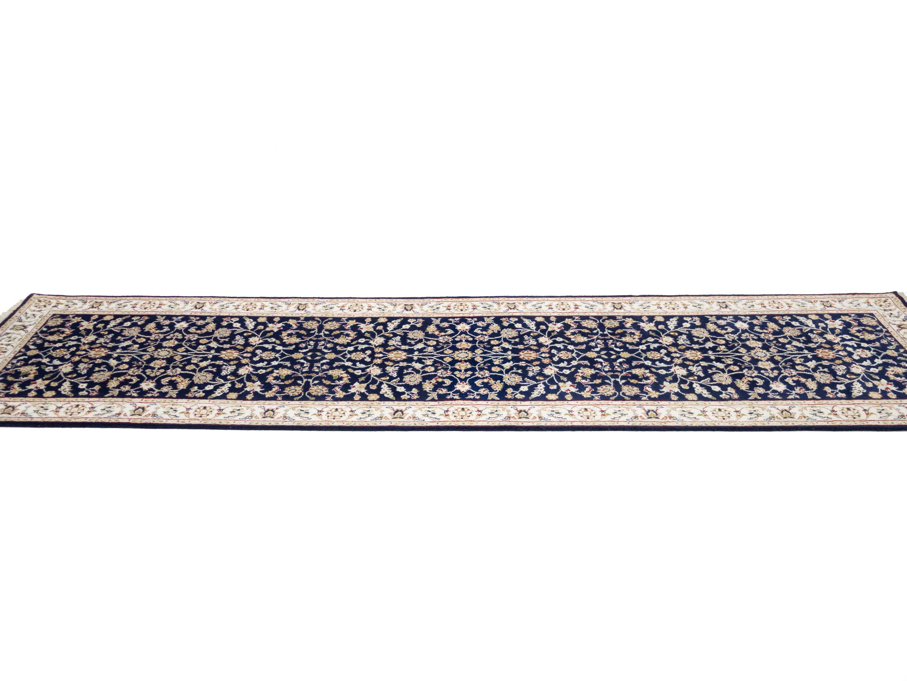 Dark Navy Floral 3x10 Indo-Nain Oriental Runner Rug