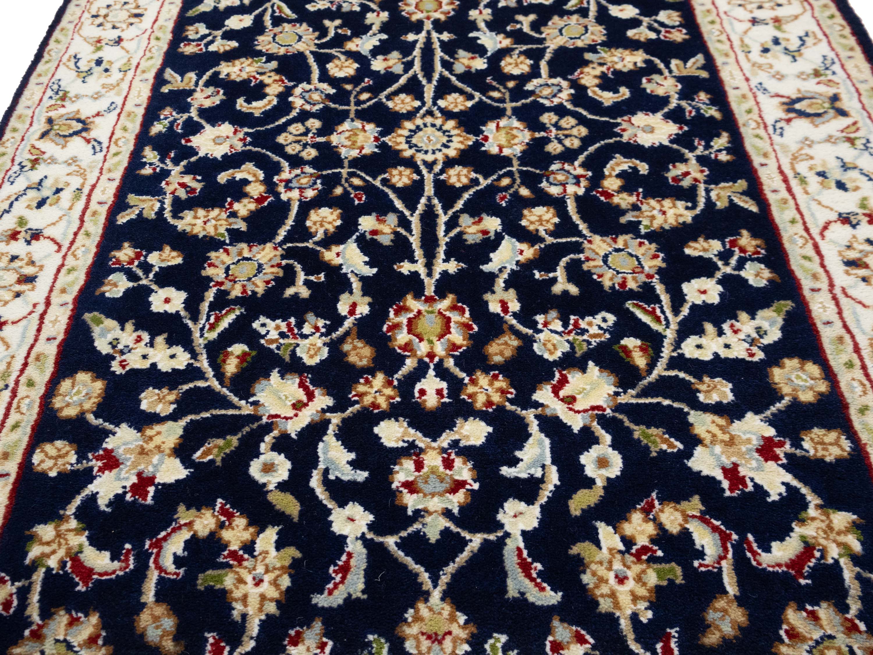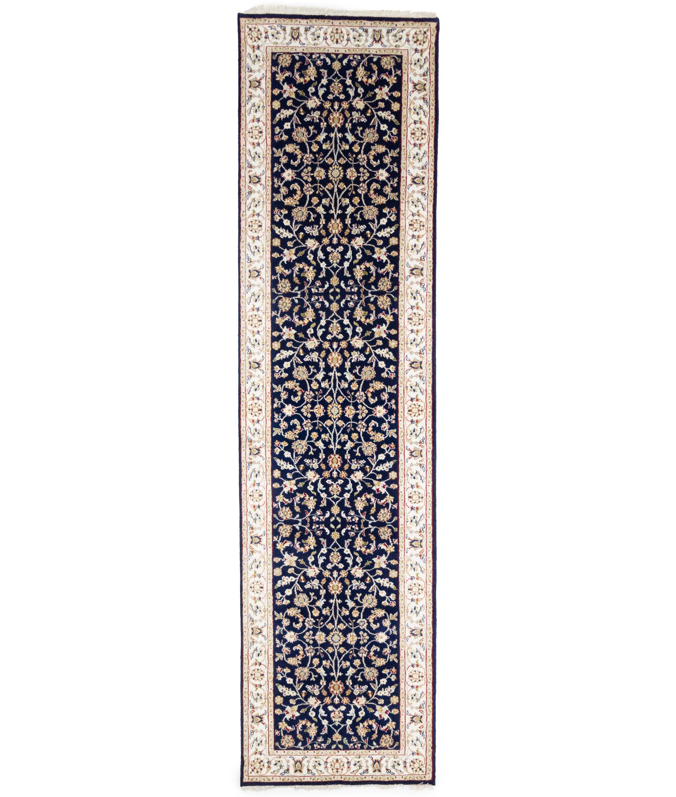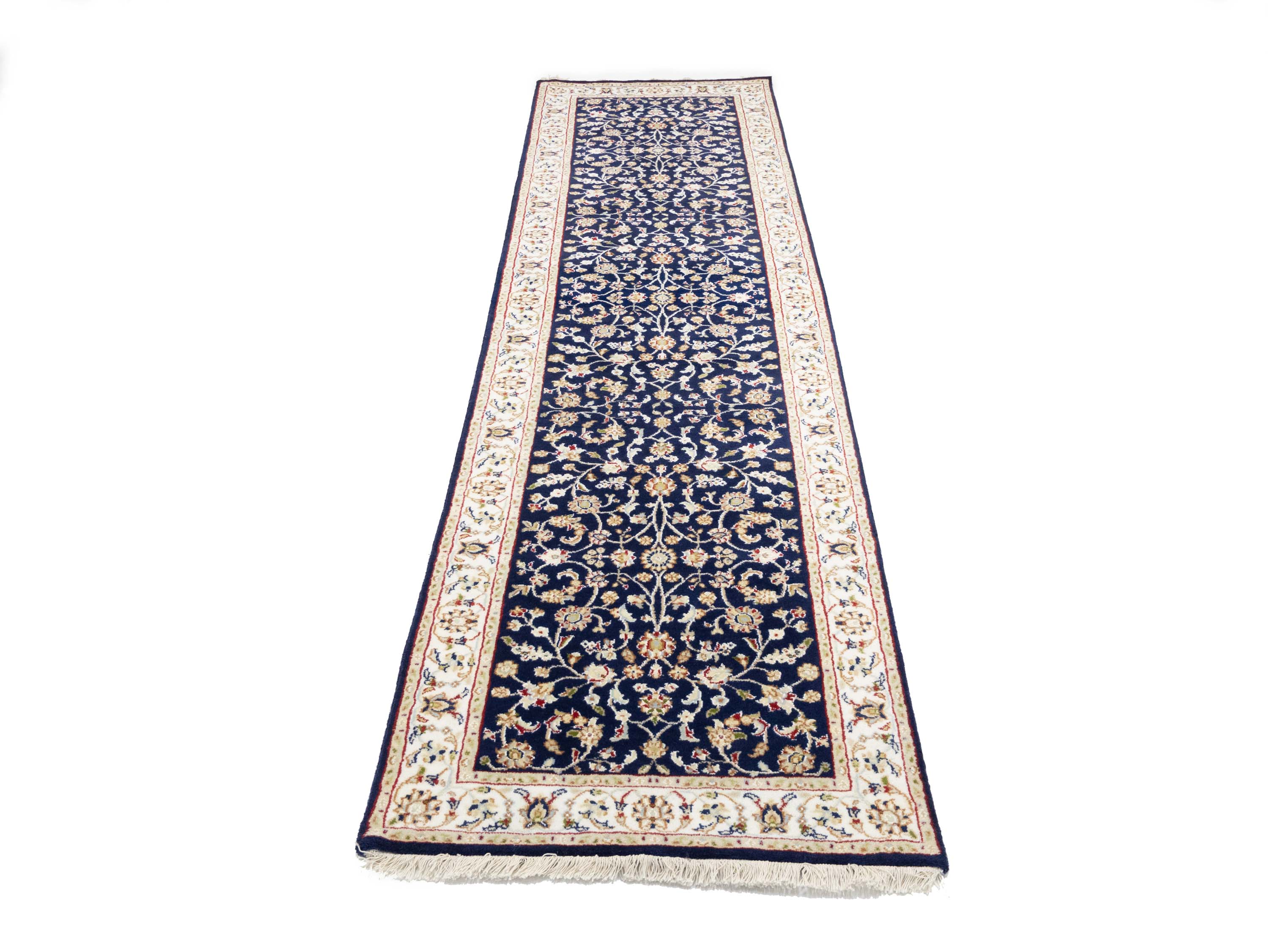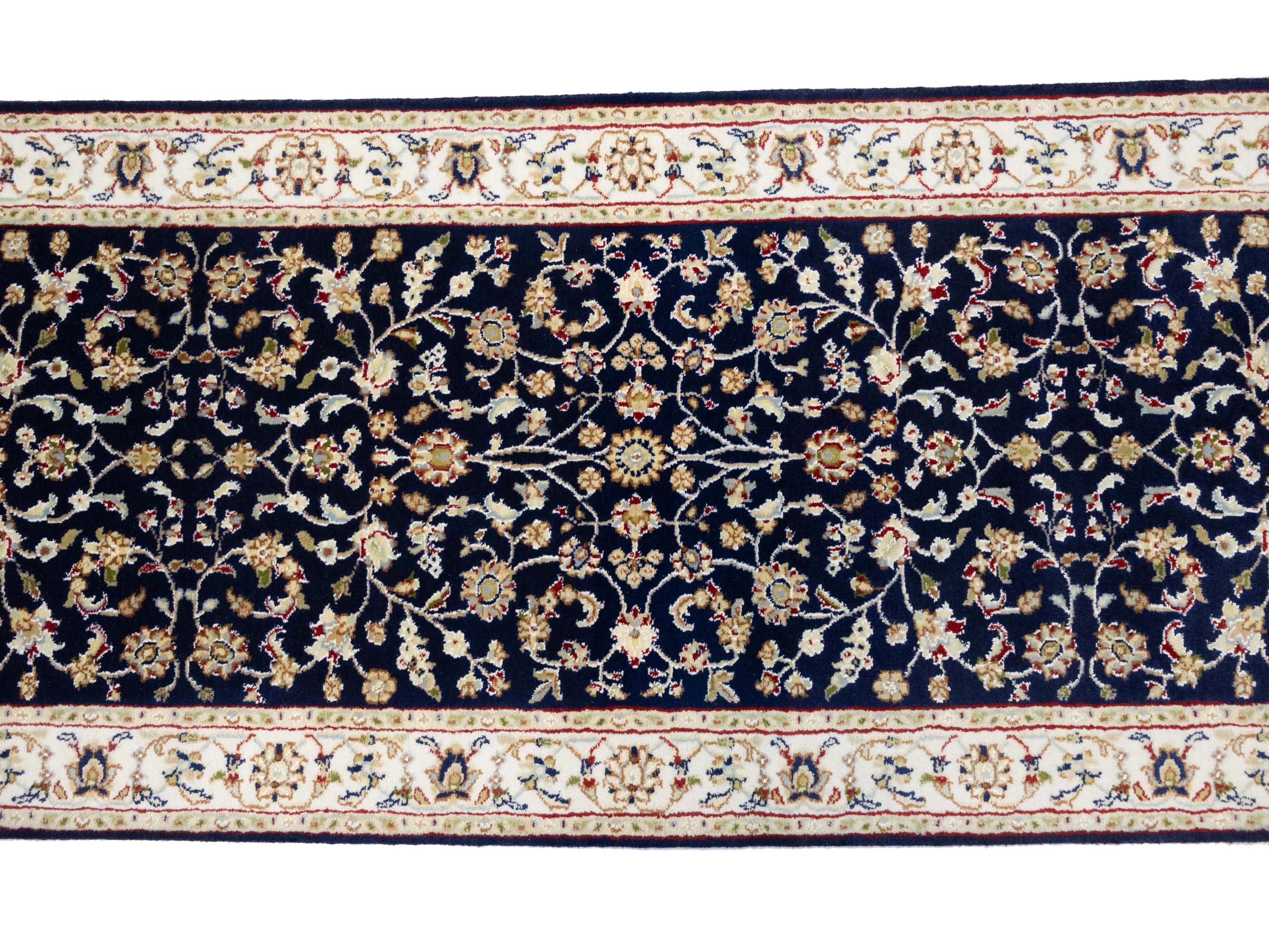 Dark Navy Floral 3x10 Indo-Nain Oriental Runner Rug
