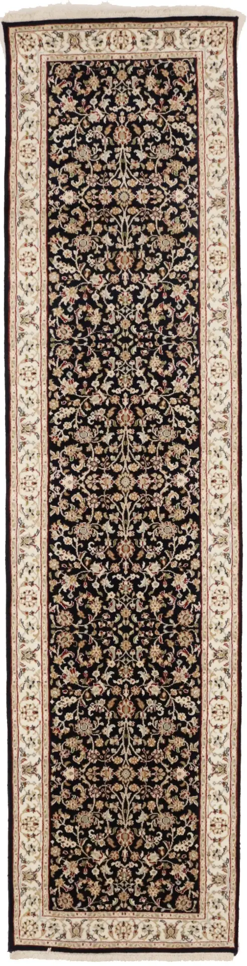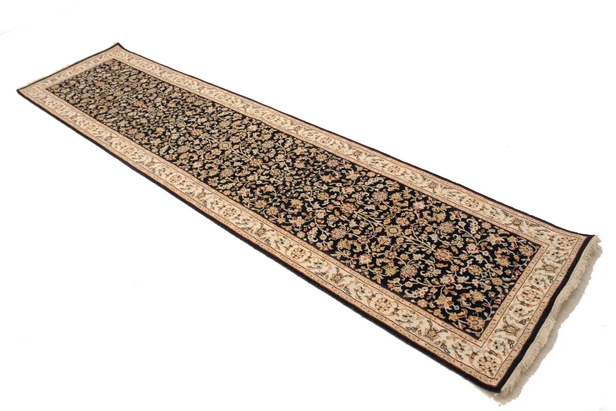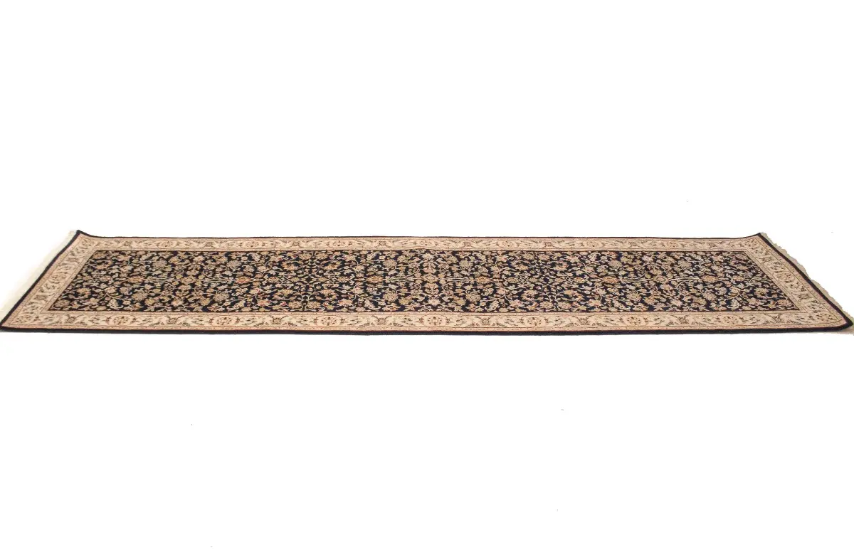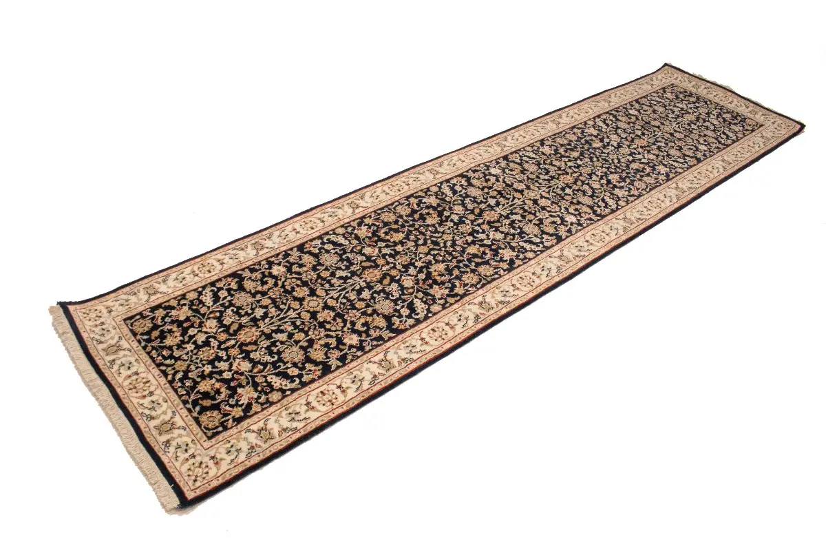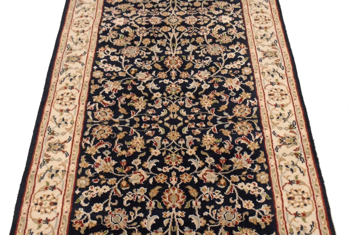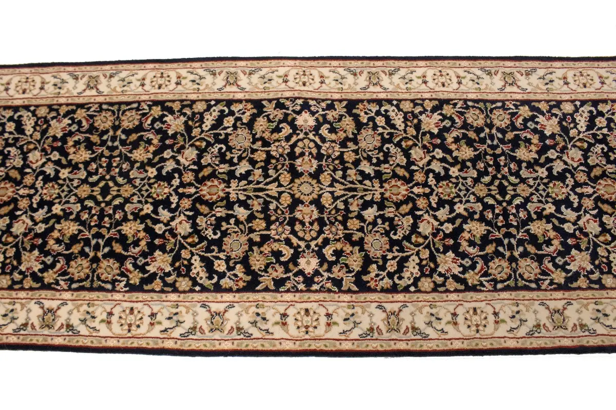 Dark Navy Floral 3X10 Indo-Nain Oriental Runner Rug