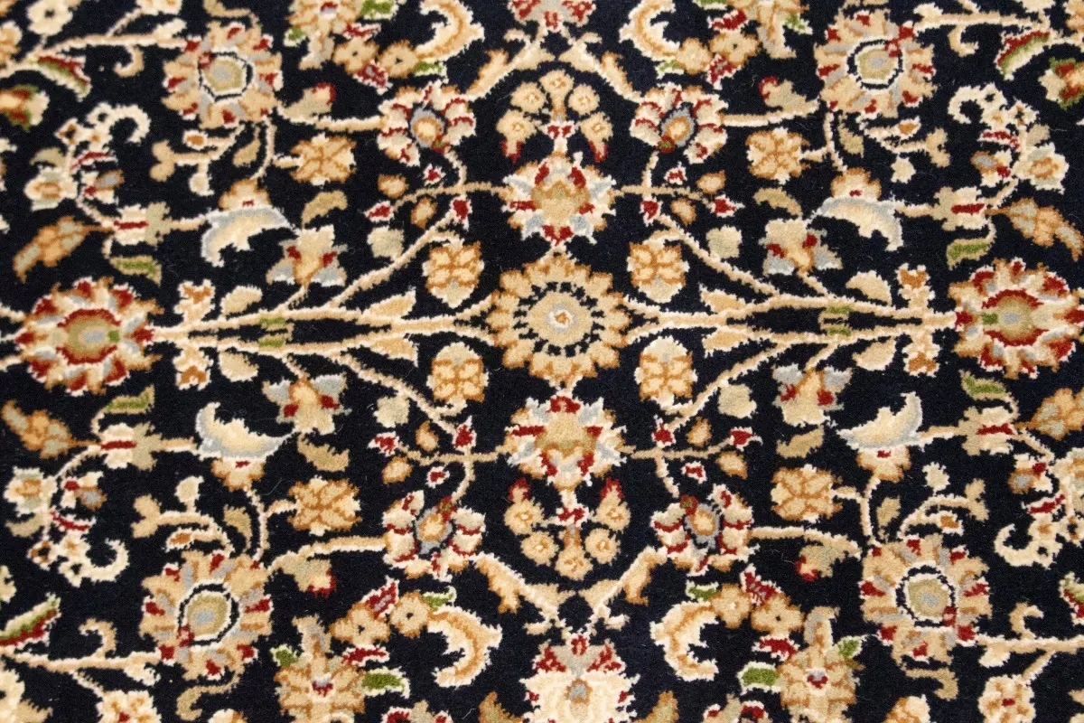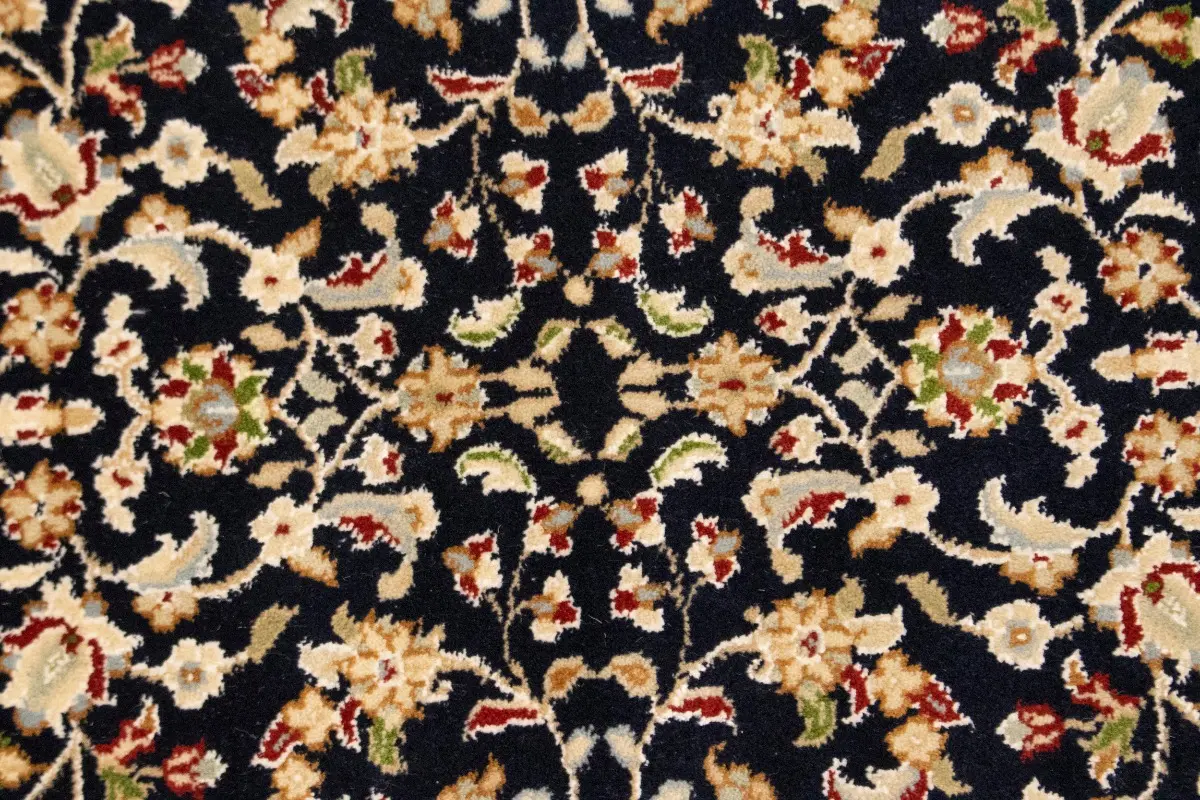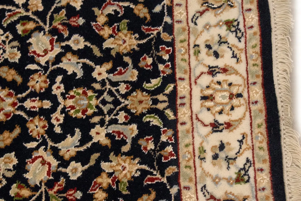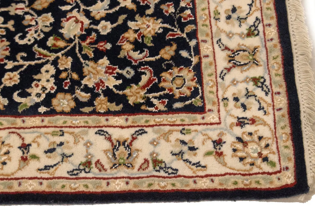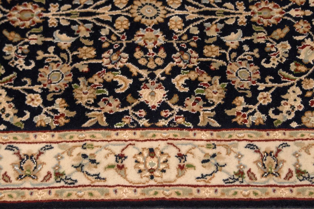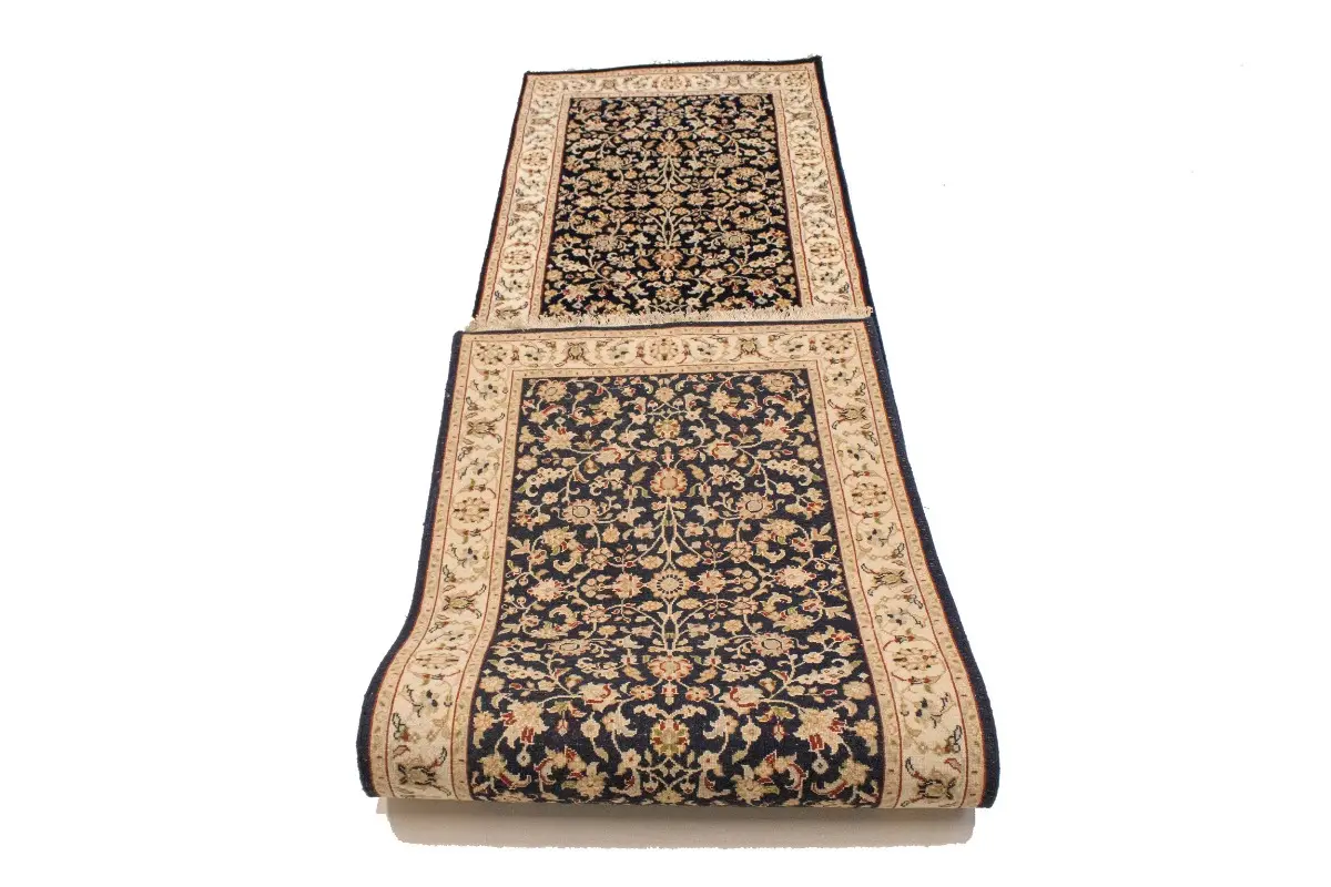 Dark Navy Floral 3X10 Indo-Nain Oriental Runner Rug