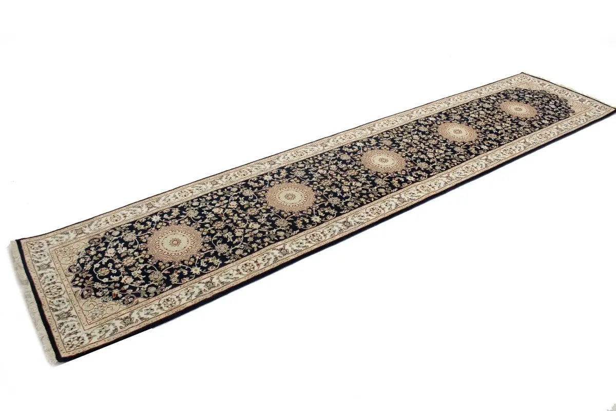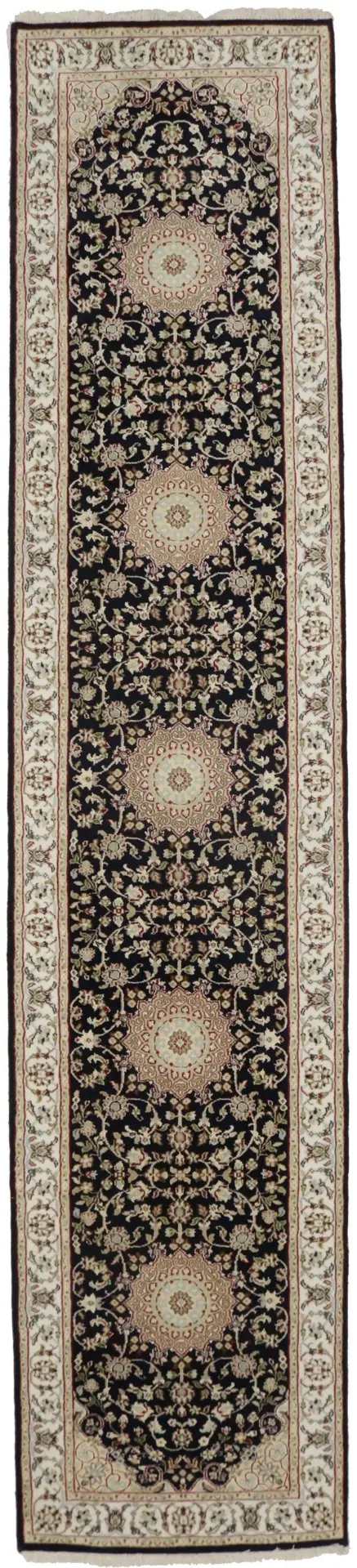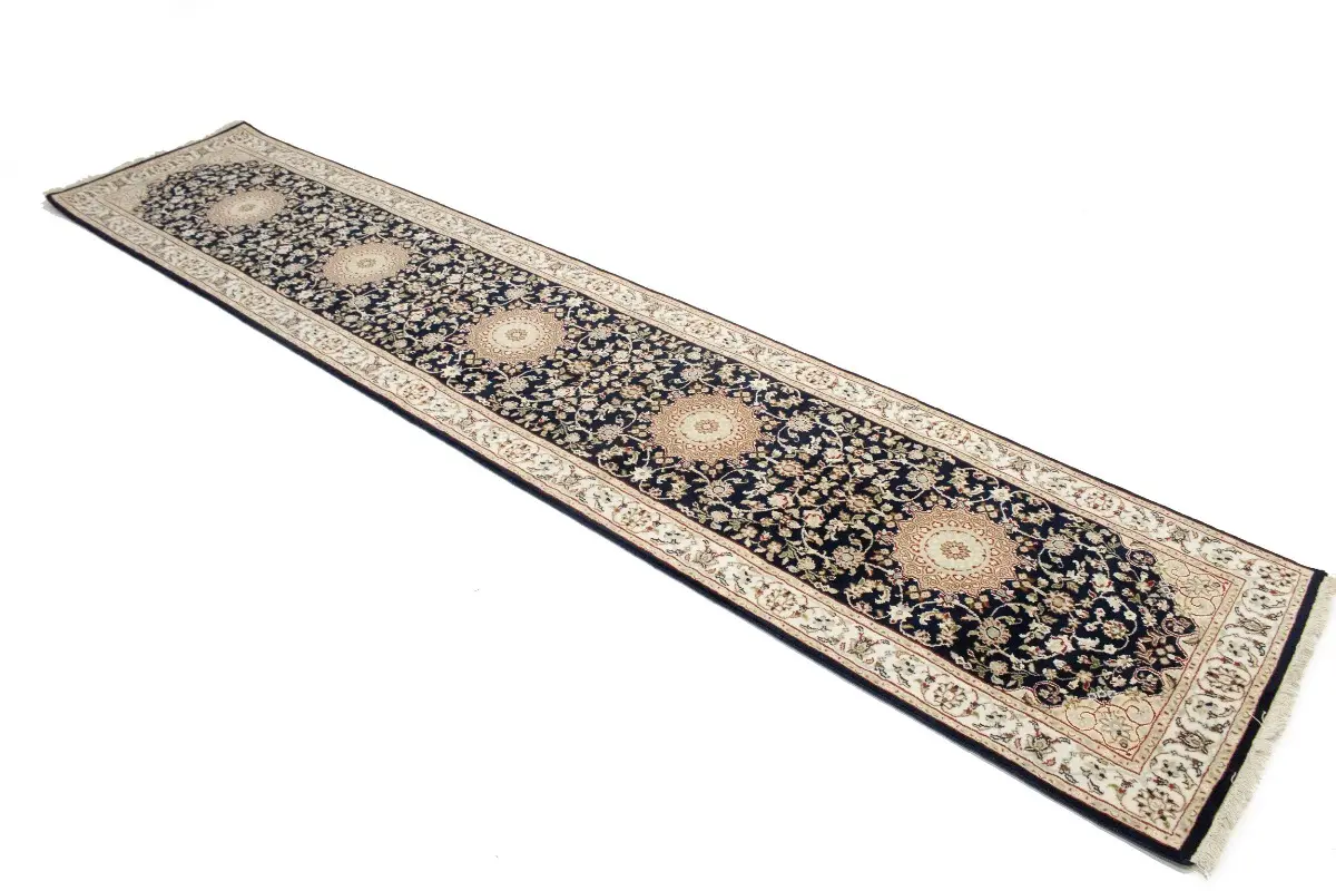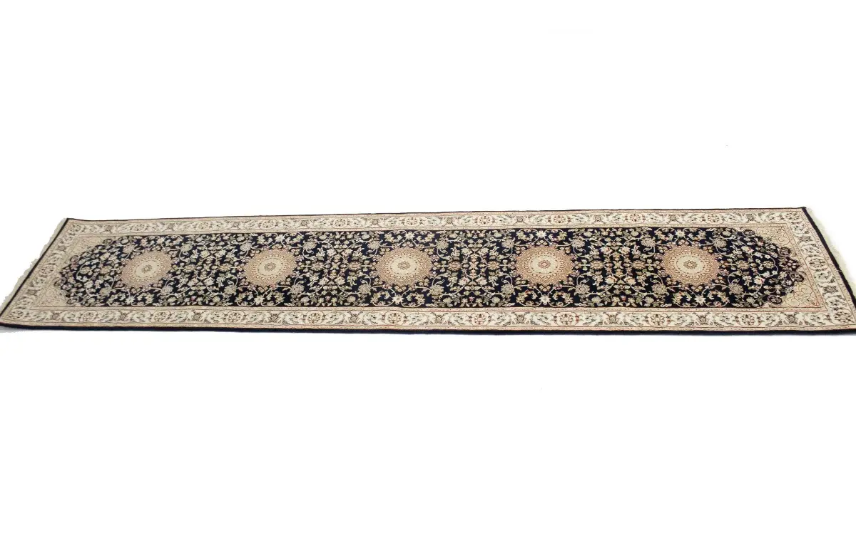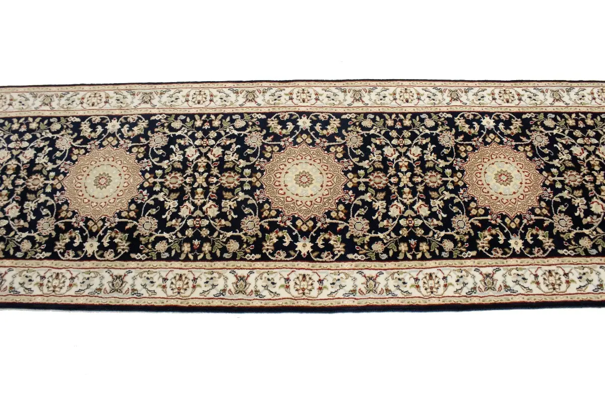 Dark Navy Floral 3X12 Indo-Nain Oriental Runner Rug