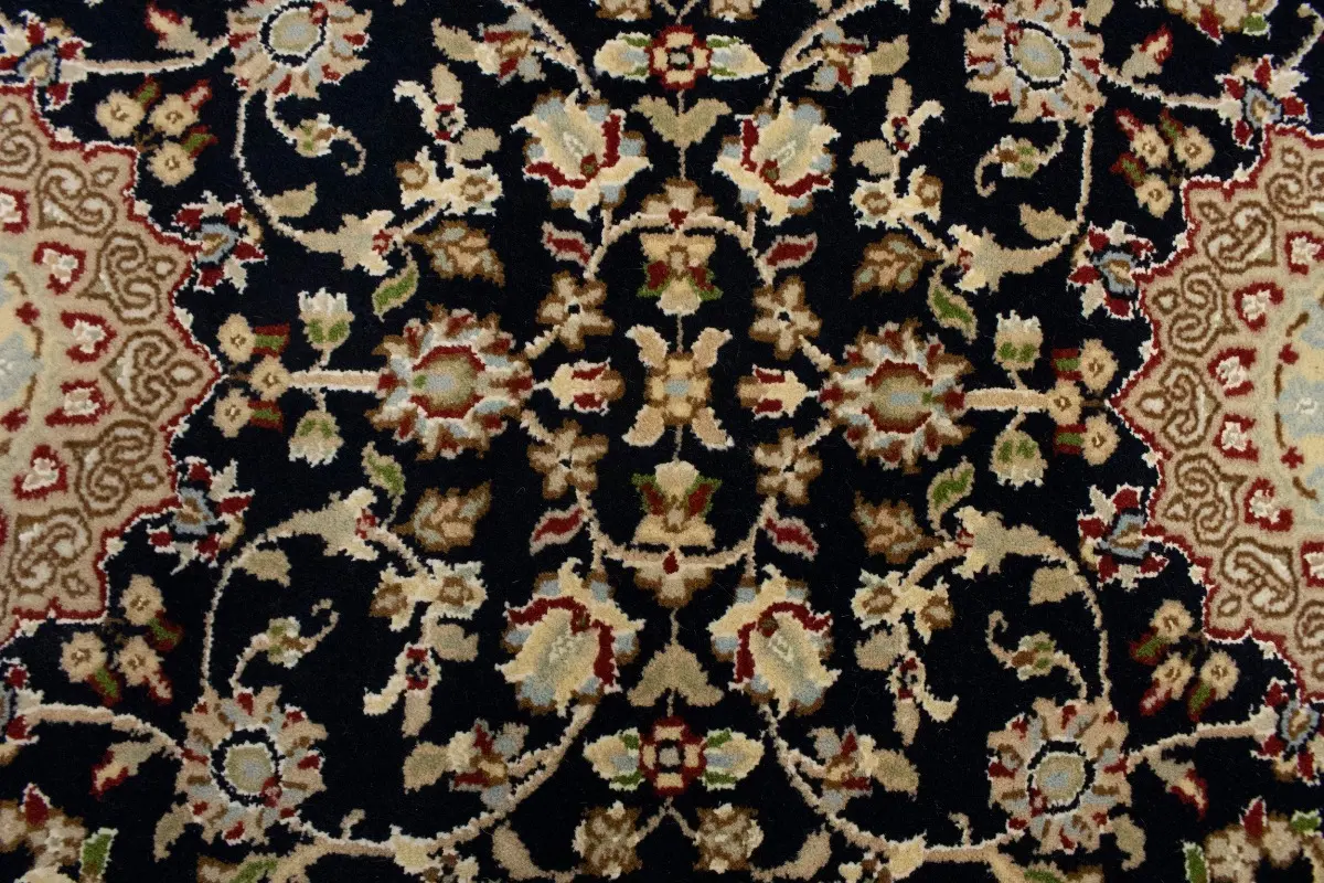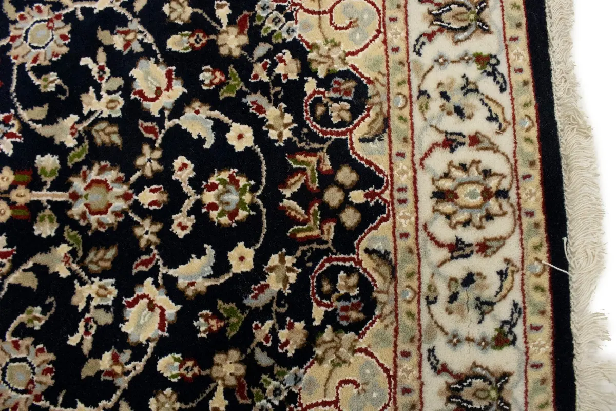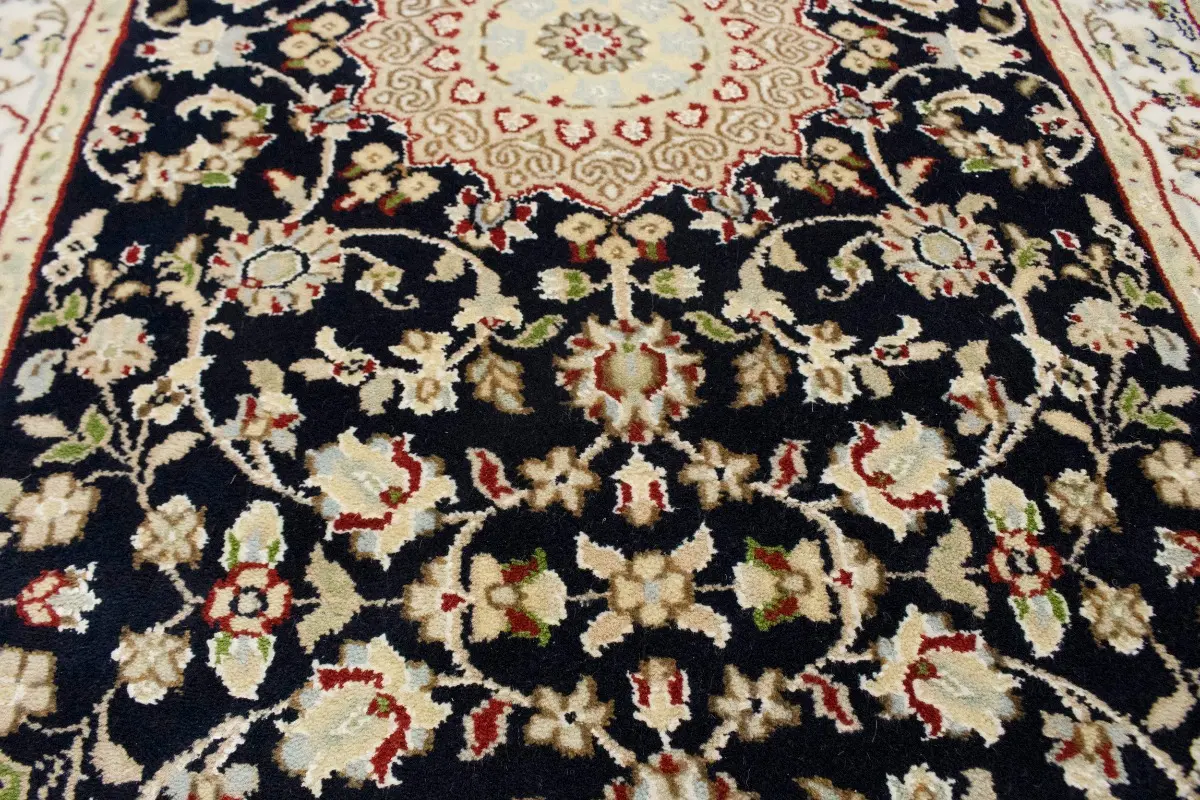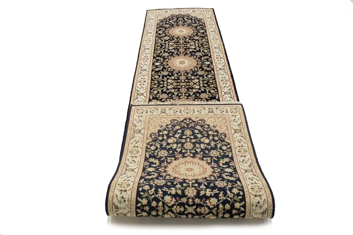 Dark Navy Floral 3X12 Indo-Nain Oriental Runner Rug