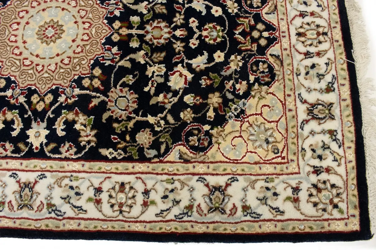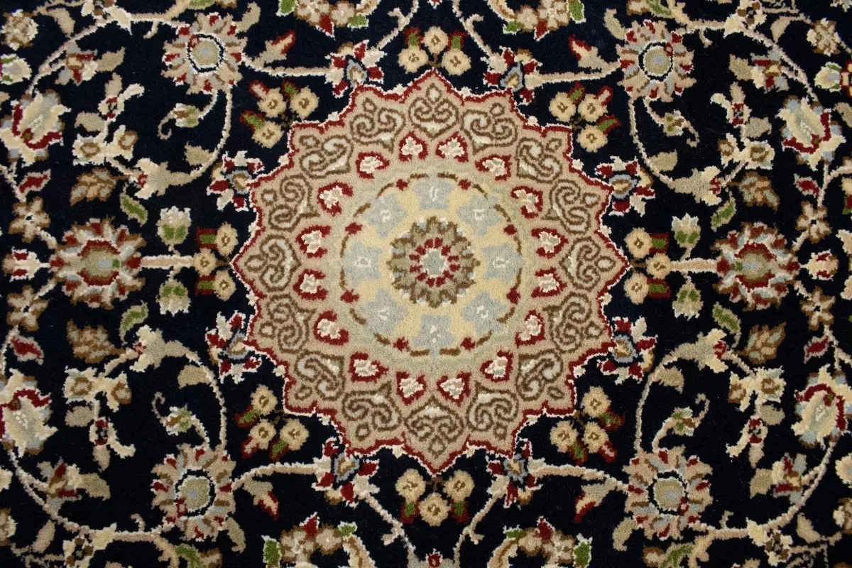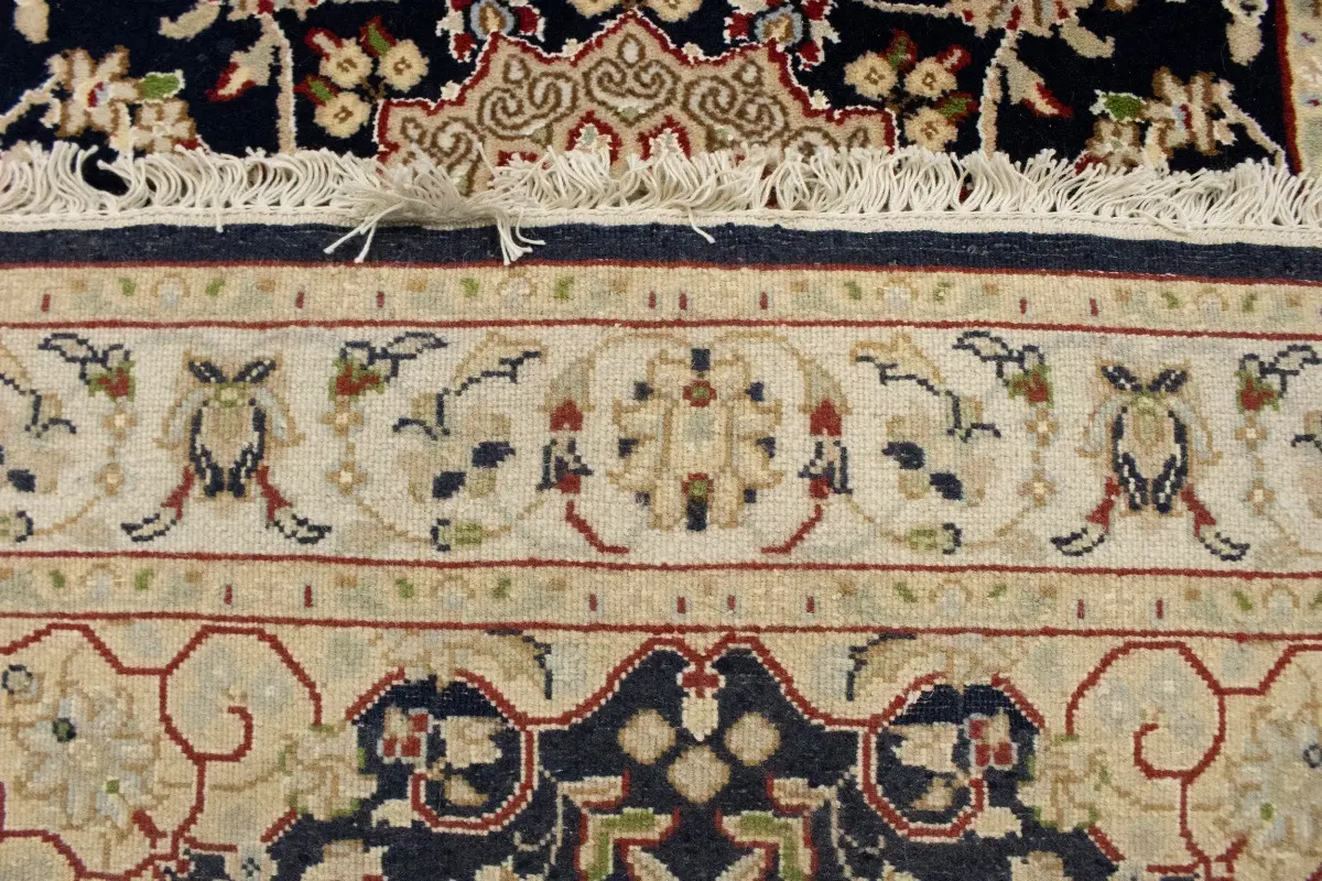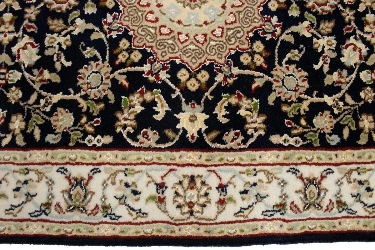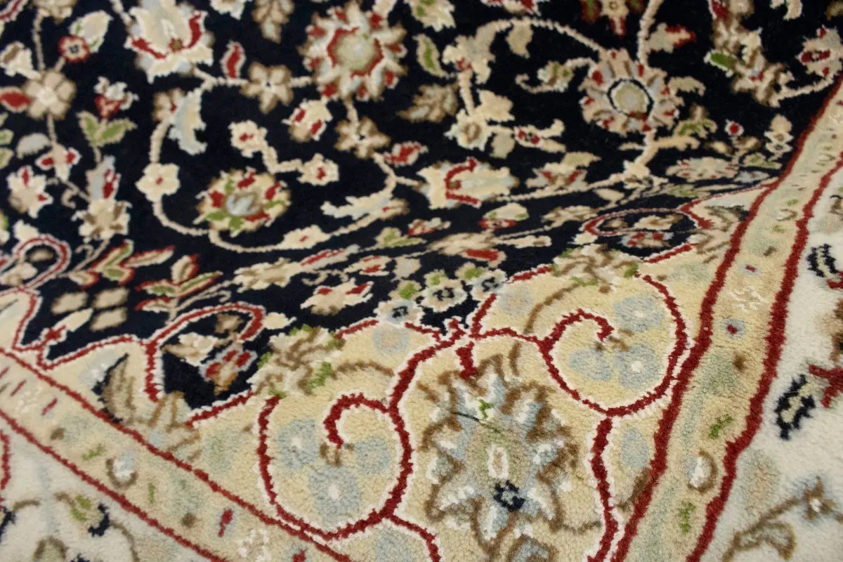 Dark Navy Floral 3X12 Indo-Nain Oriental Runner Rug