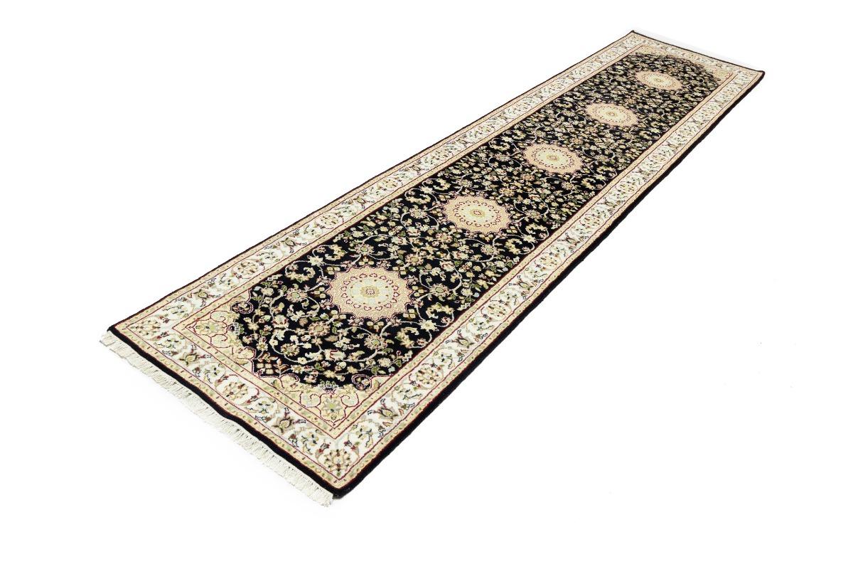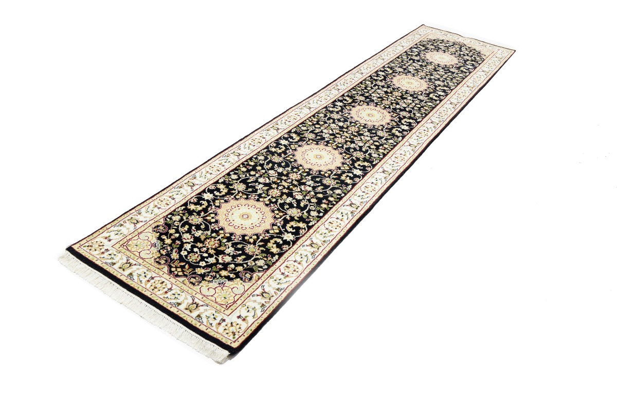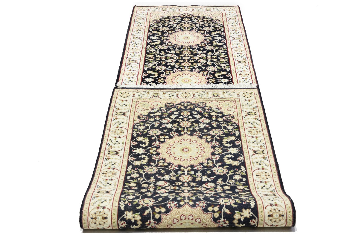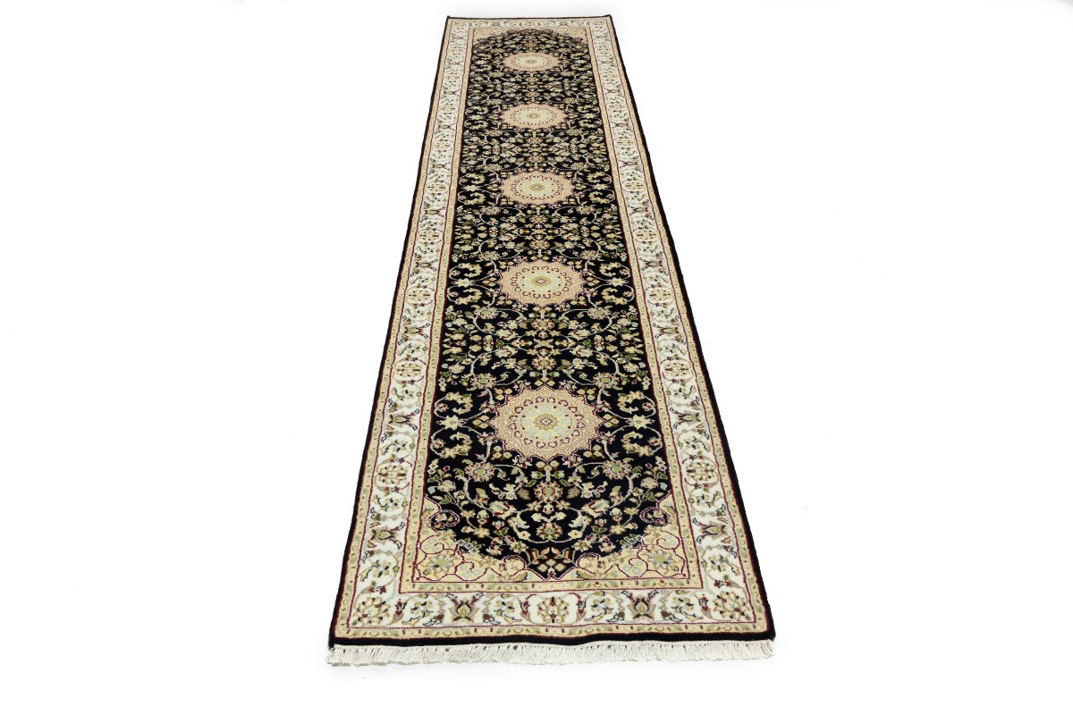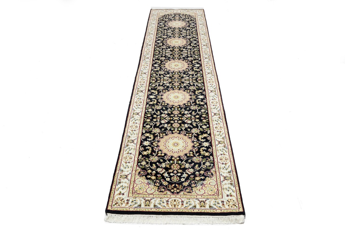 Dark Navy Floral 3X12 Indo-Nain Oriental Runner Rug