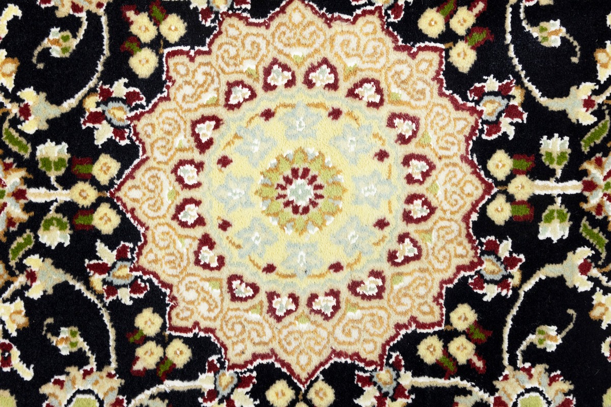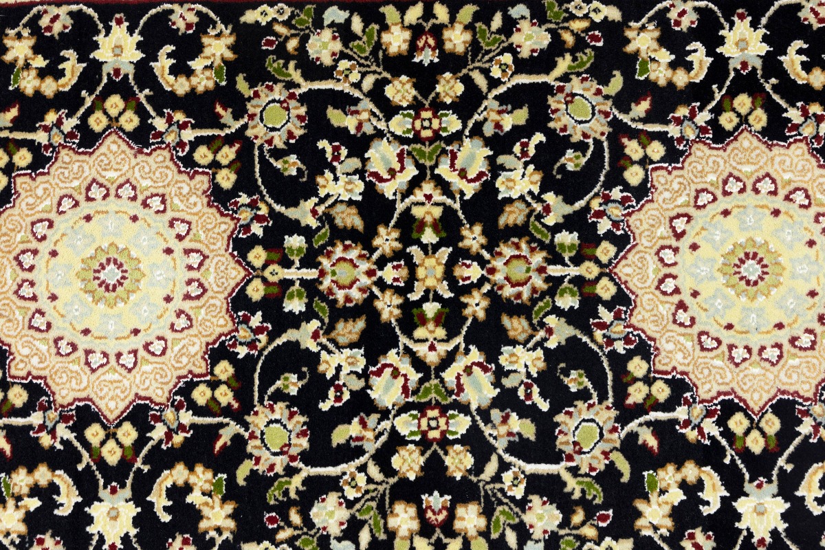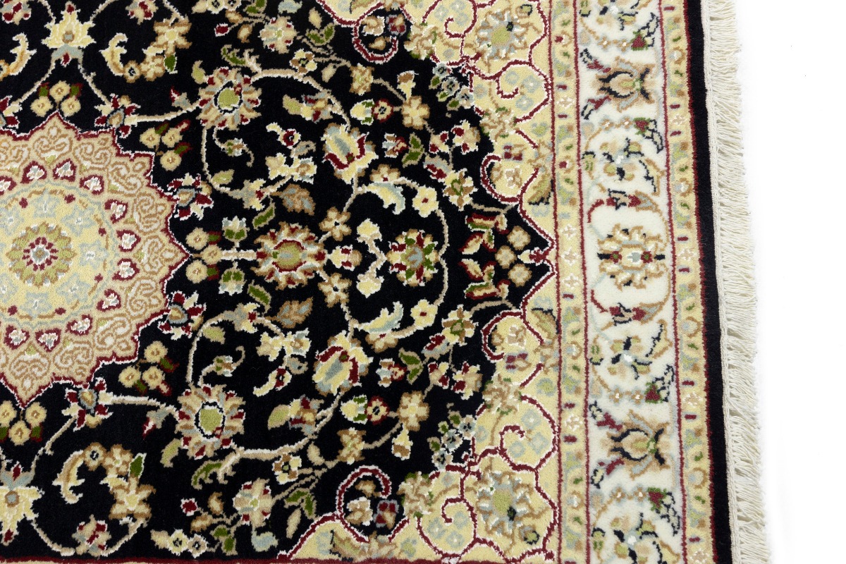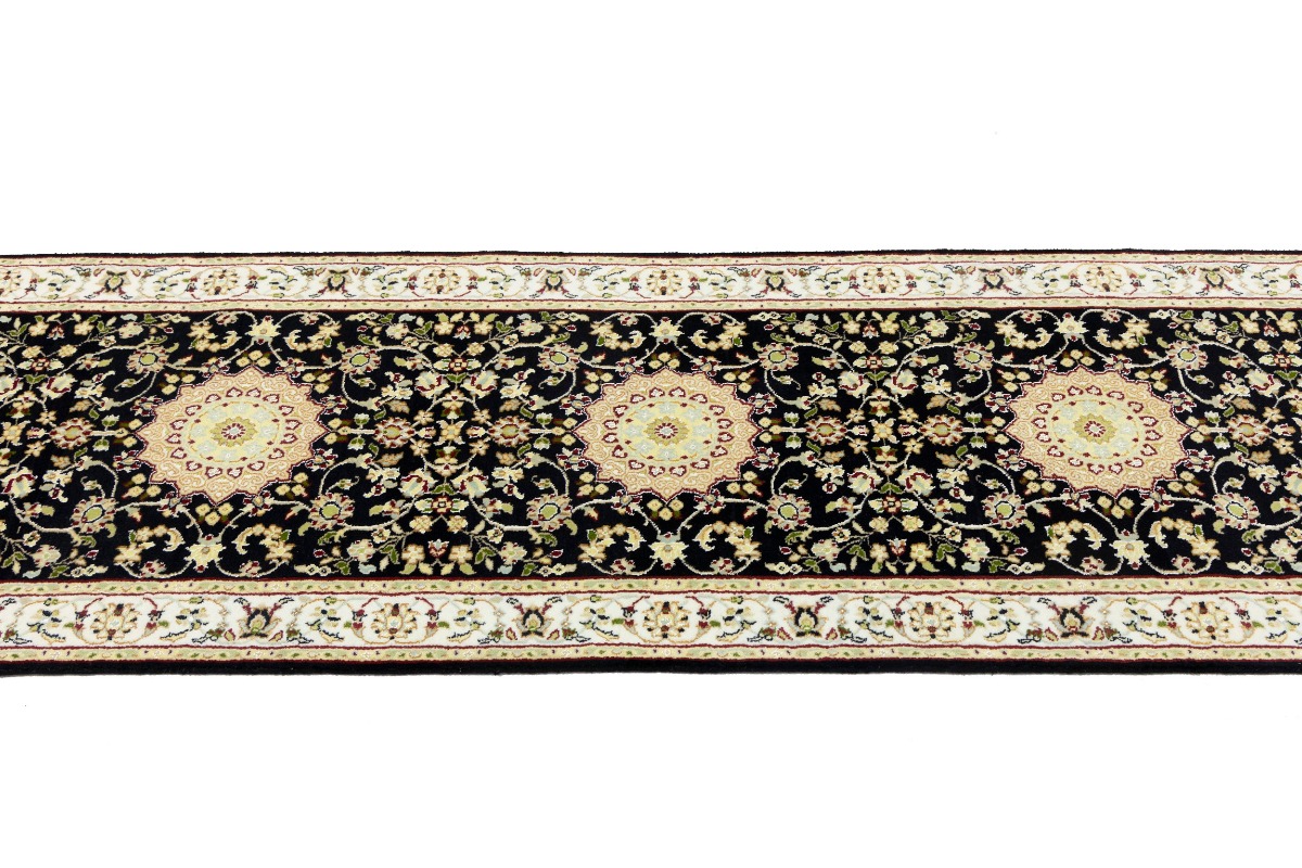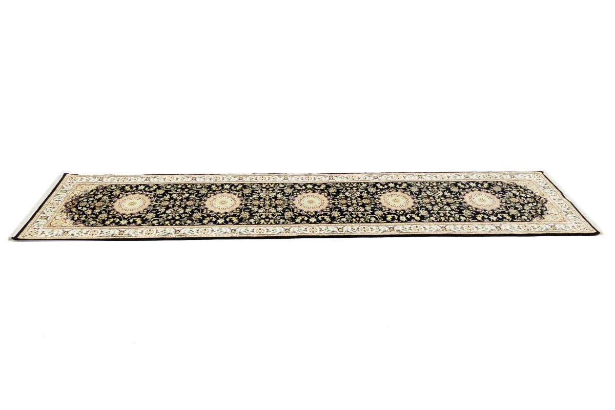 Dark Navy Floral 3X12 Indo-Nain Oriental Runner Rug