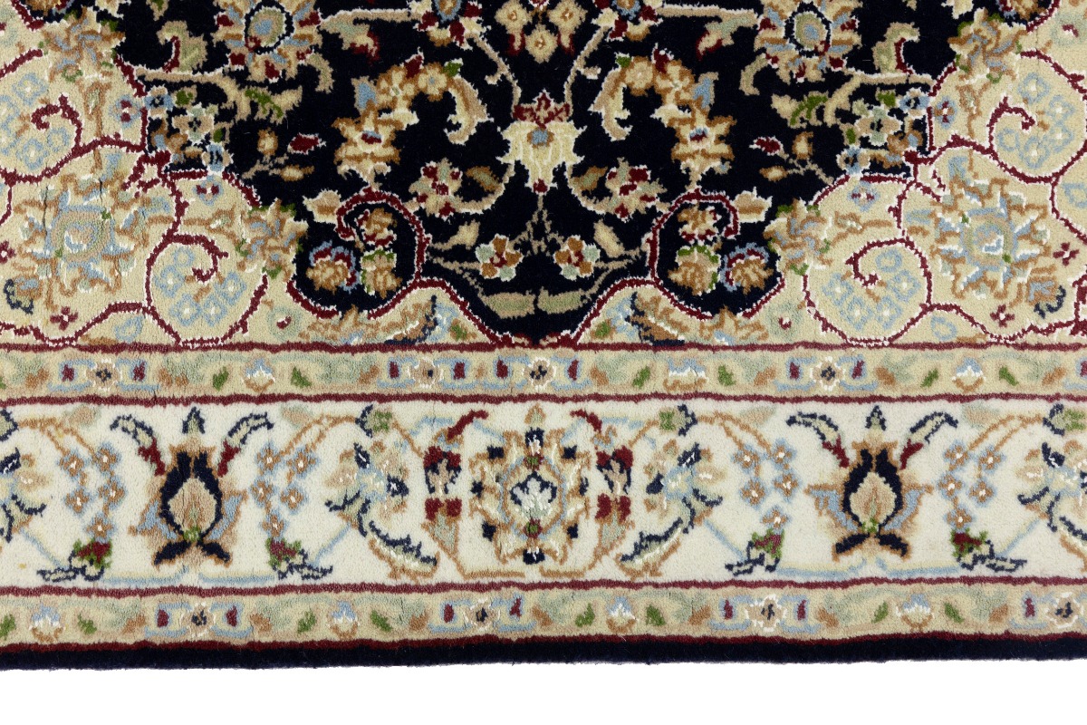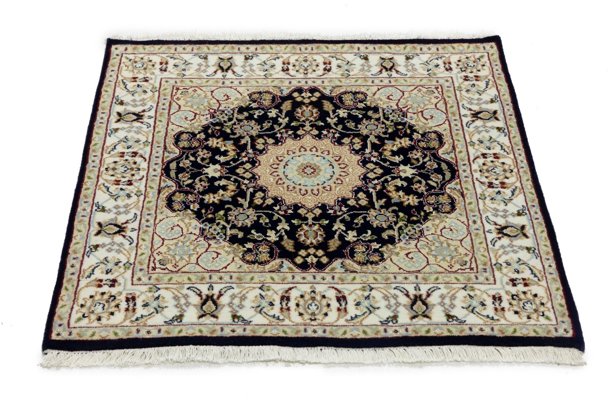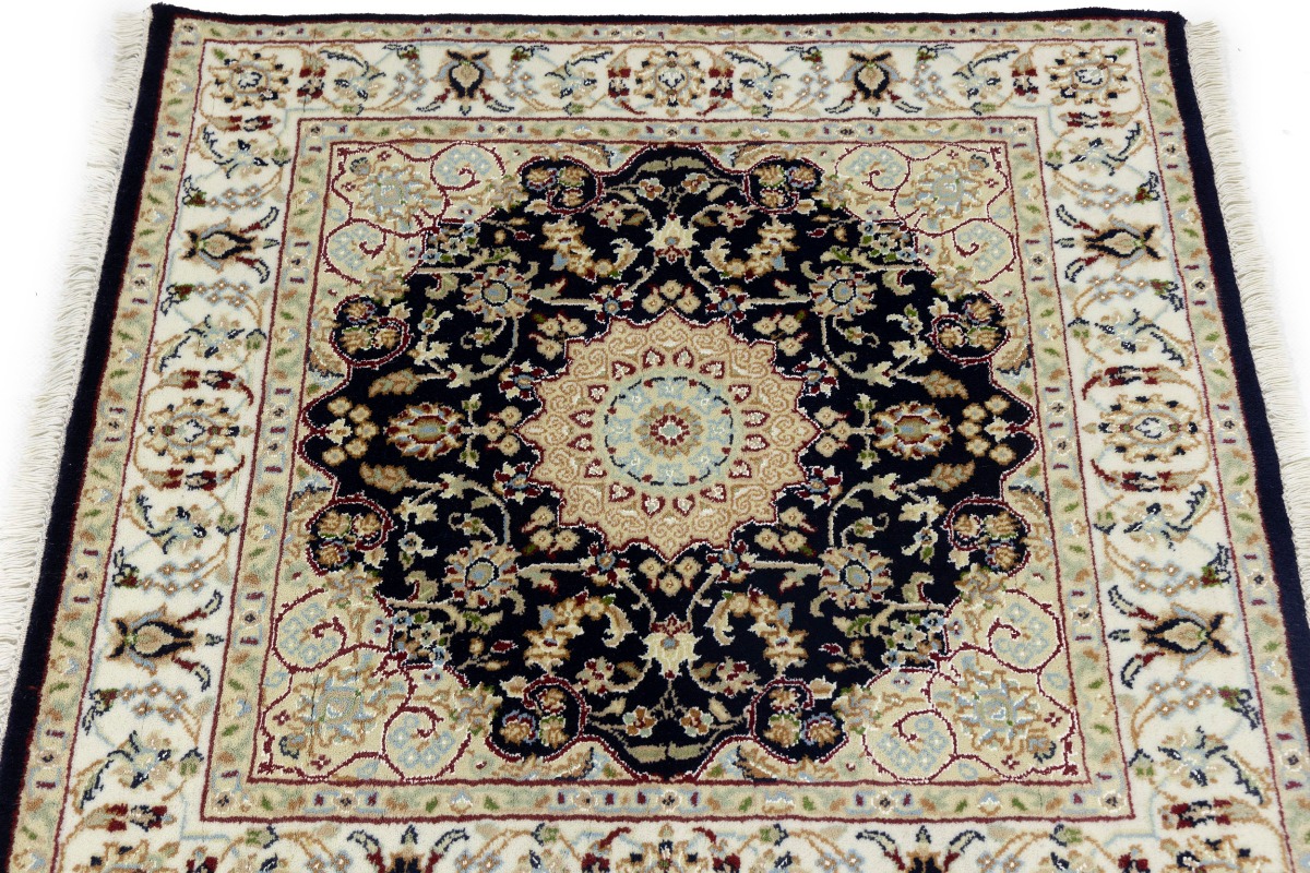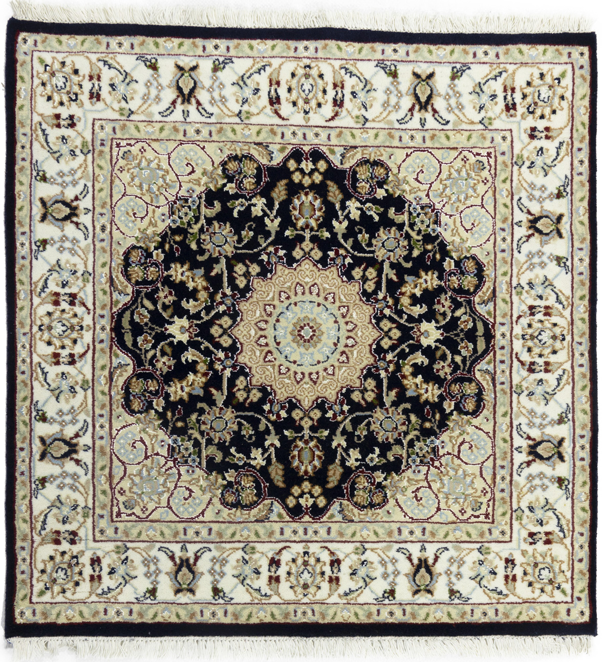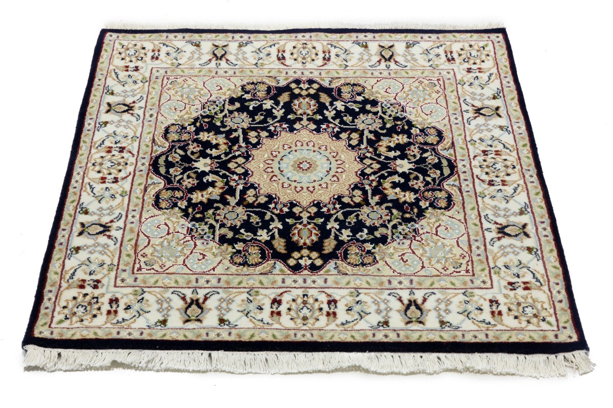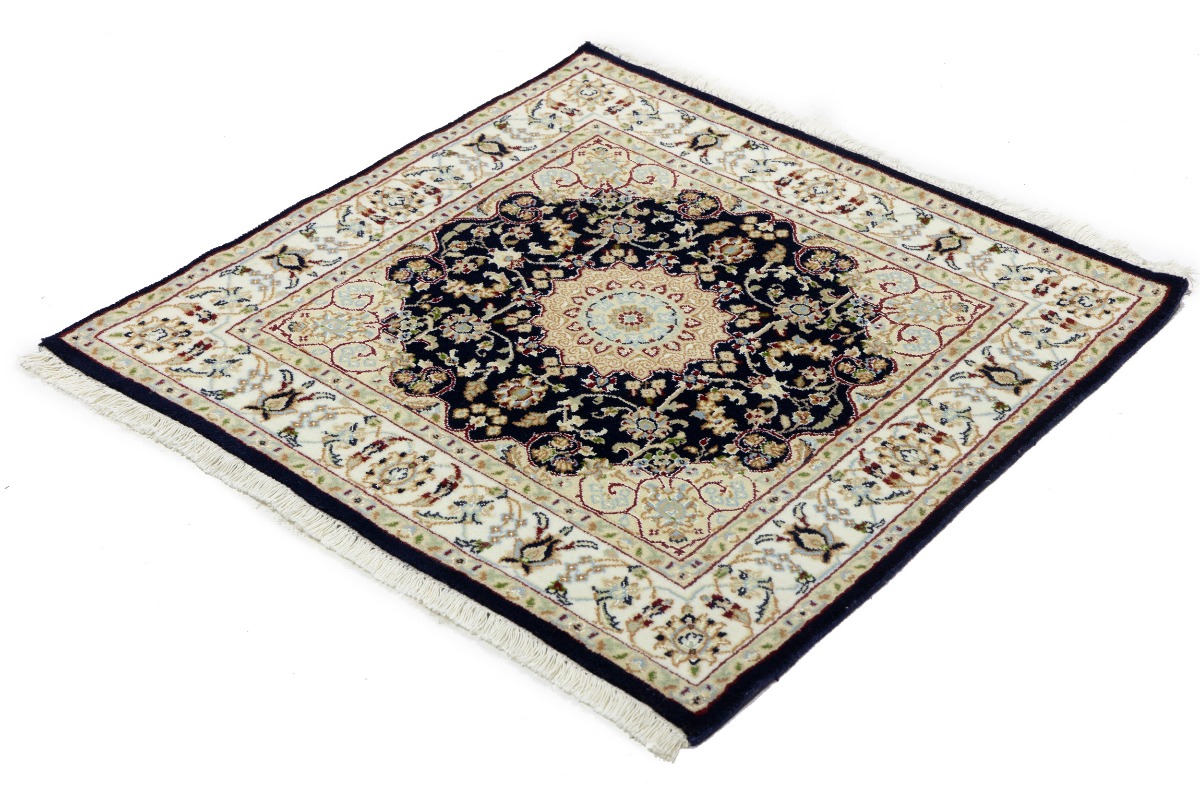 Dark Navy Floral 3X3 Indo-Nain Oriental Square Rug