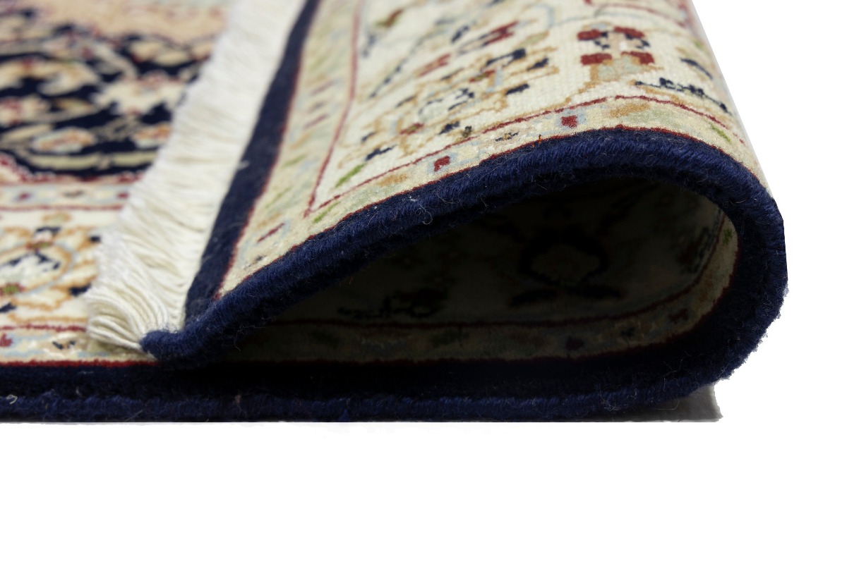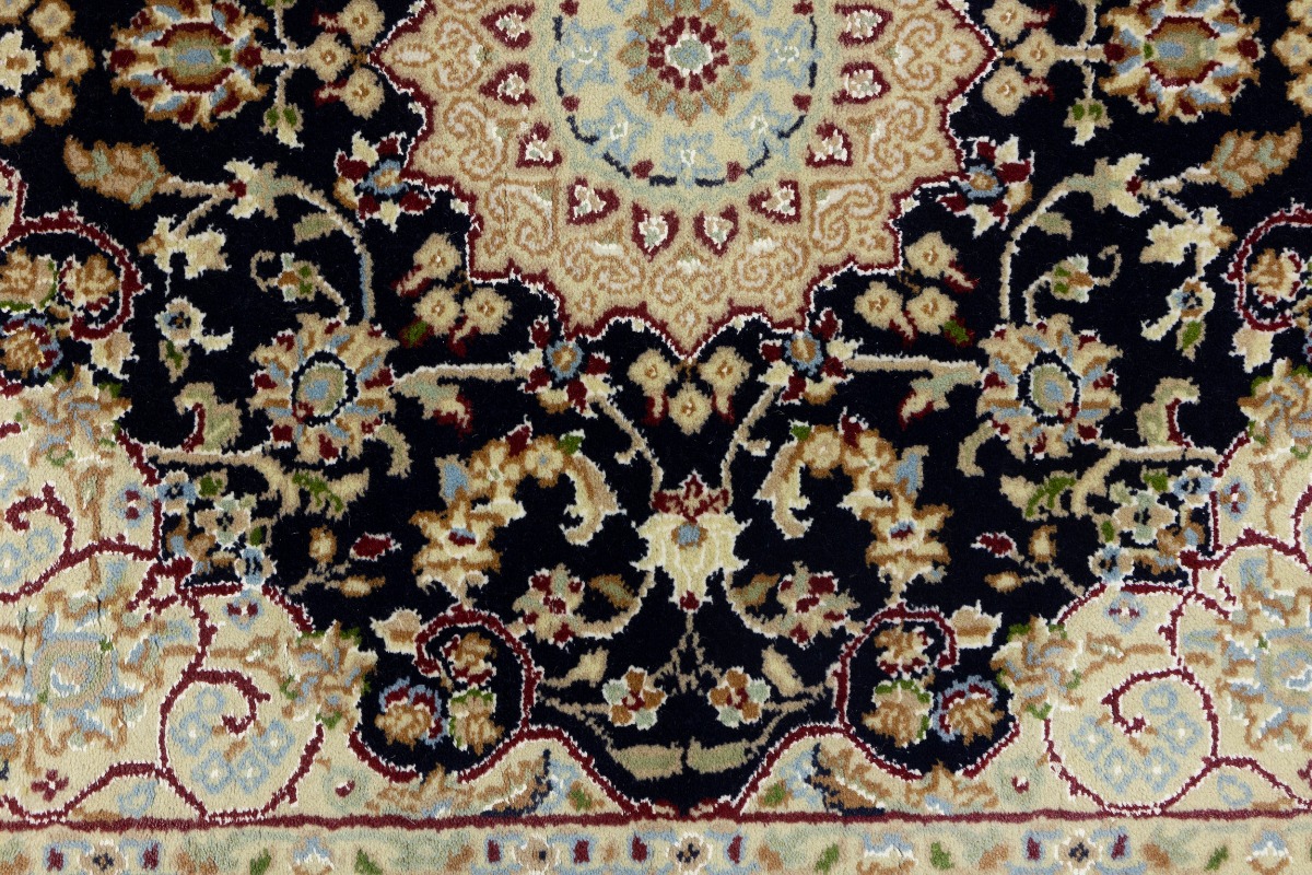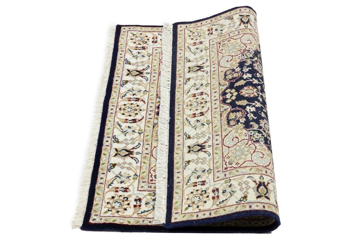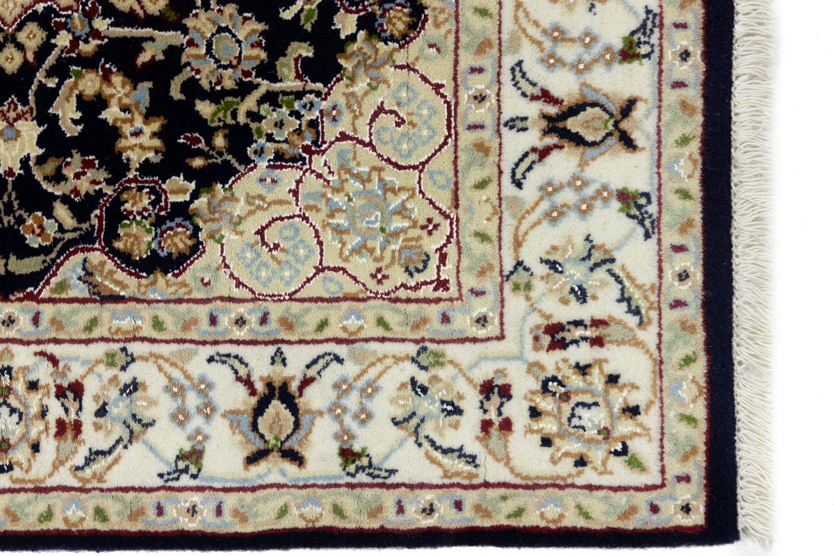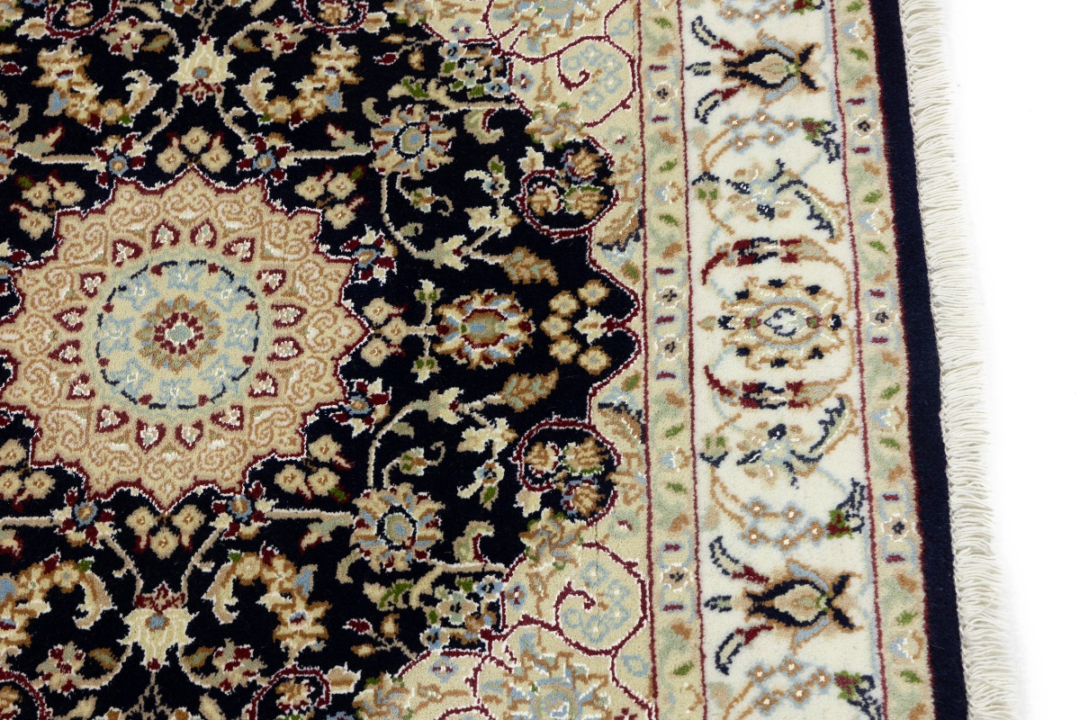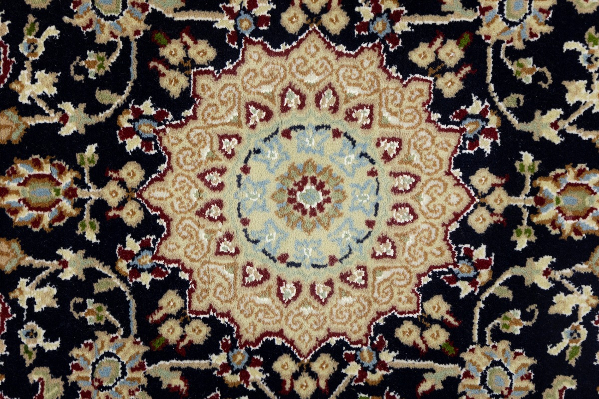 Dark Navy Floral 3X3 Indo-Nain Oriental Square Rug