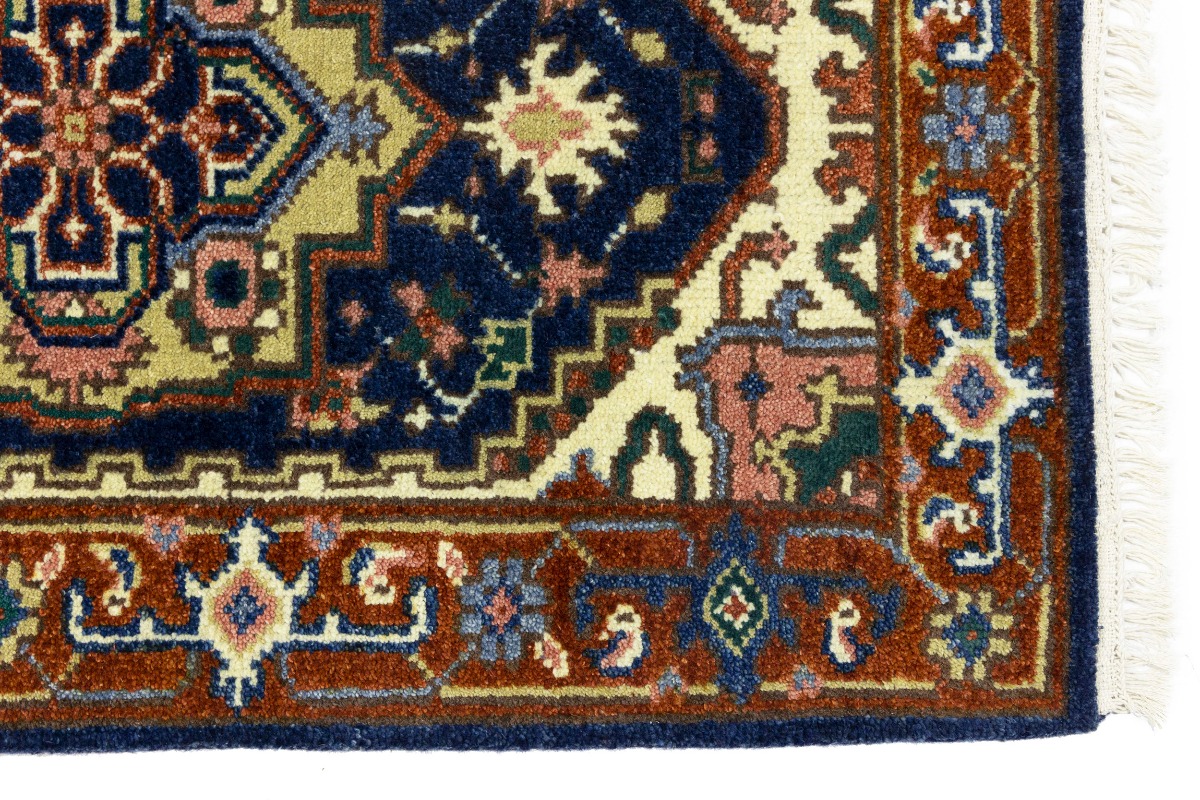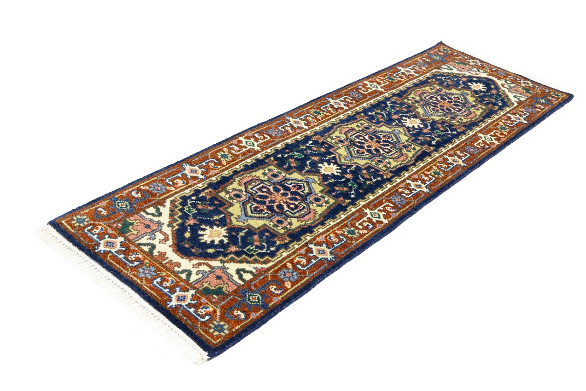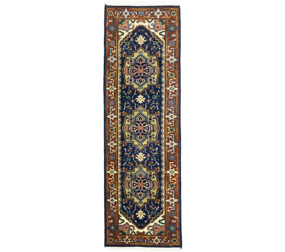 Dark Navy Floral 3X8 Heriz Serapi Oriental Runner Rug