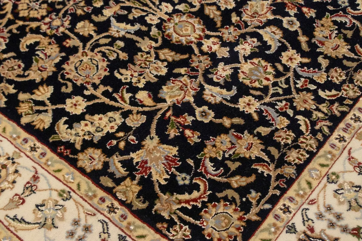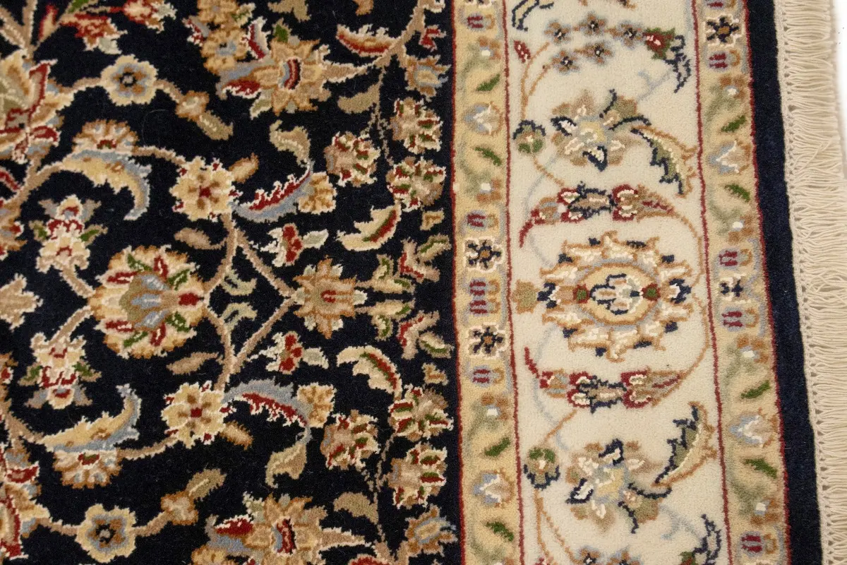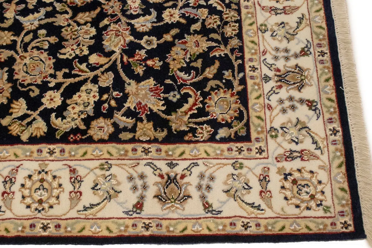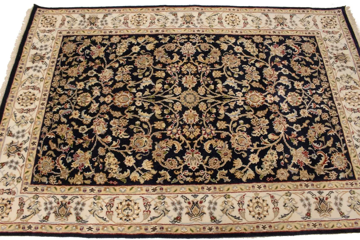 Dark Navy Floral 4X6 Indo-Nain Oriental Rug