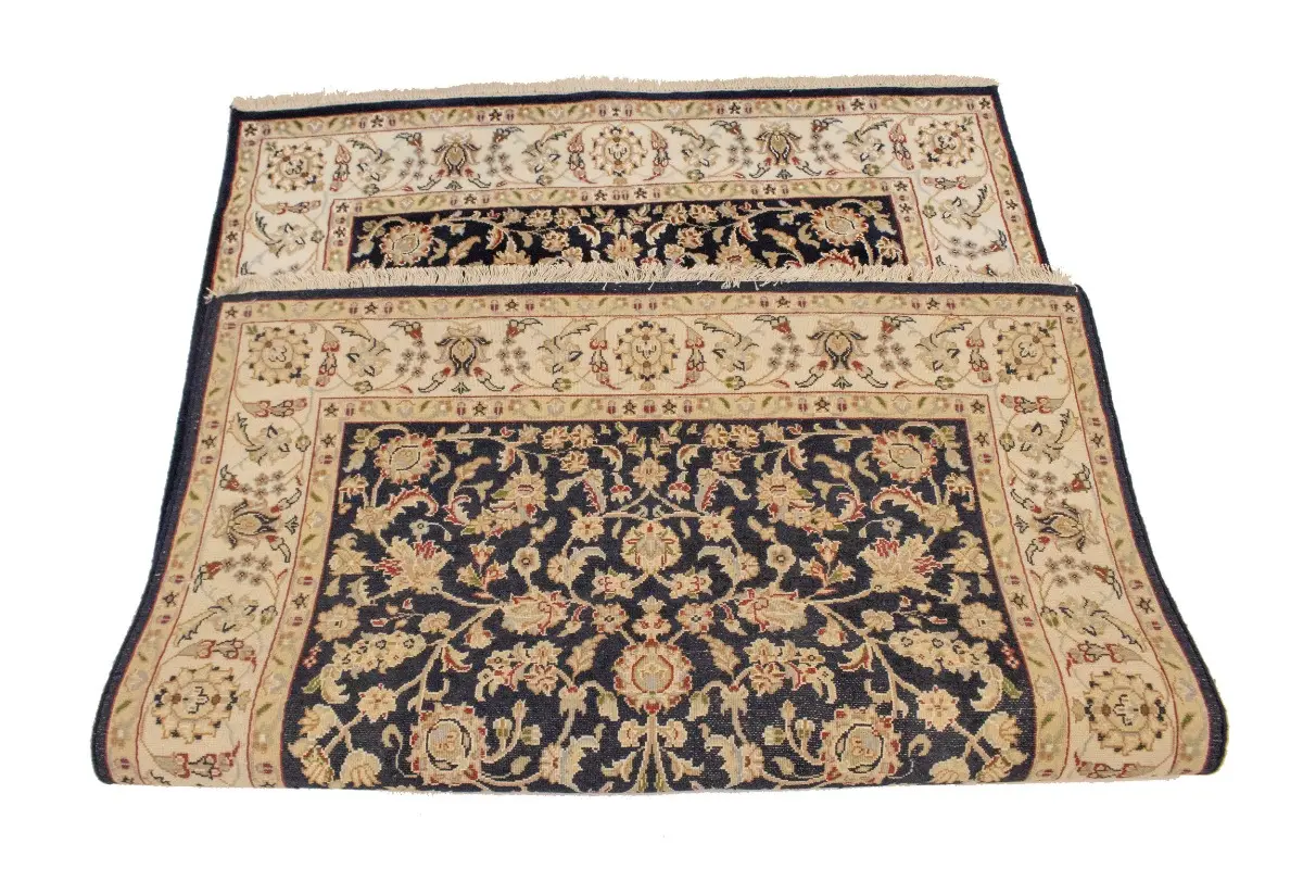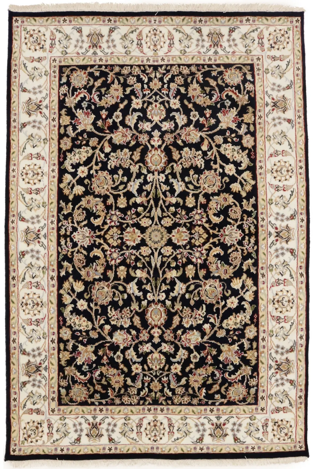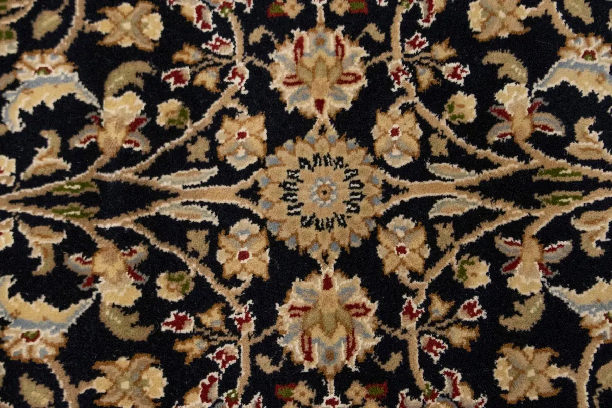 Dark Navy Floral 4X6 Indo-Nain Oriental Rug