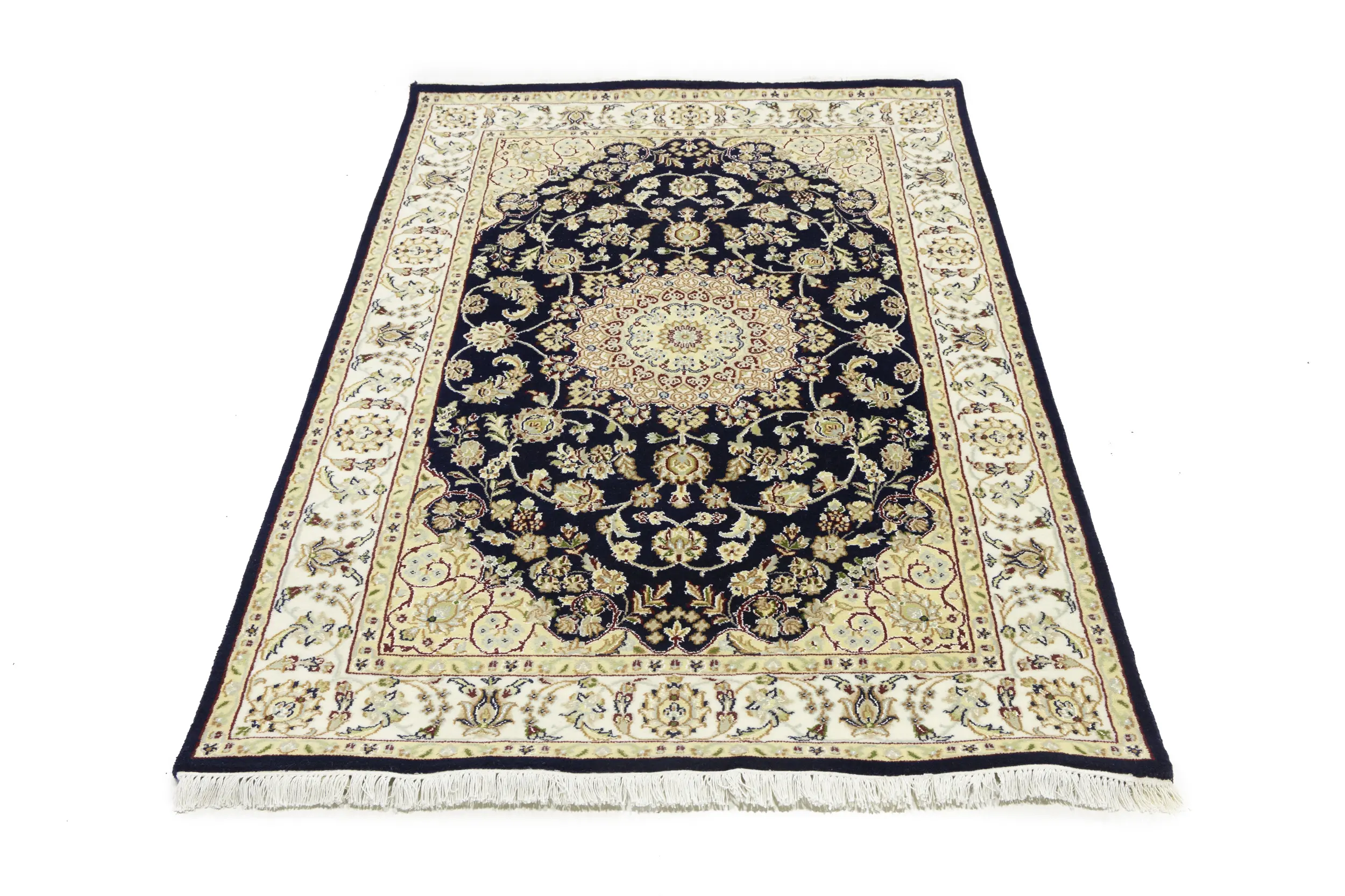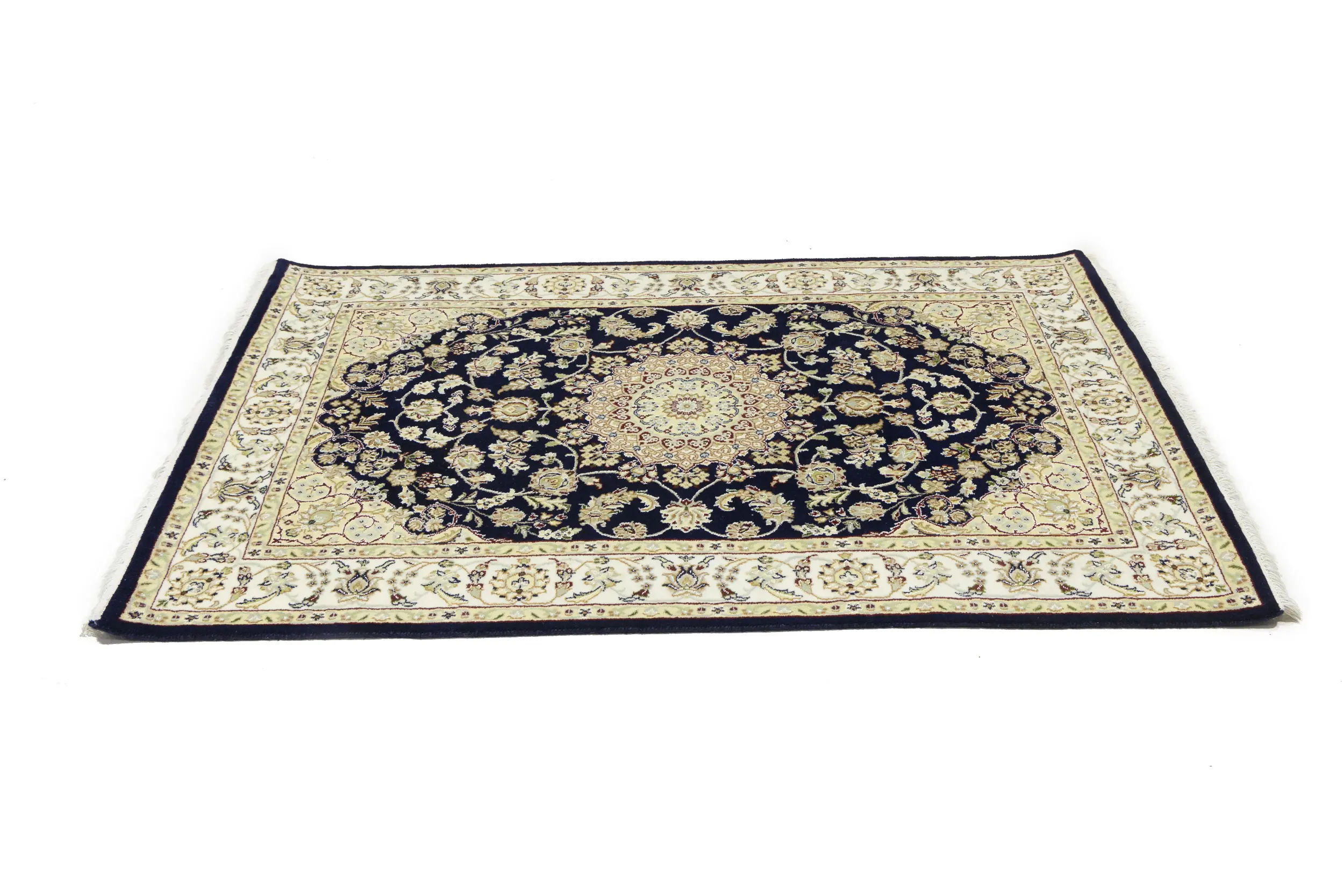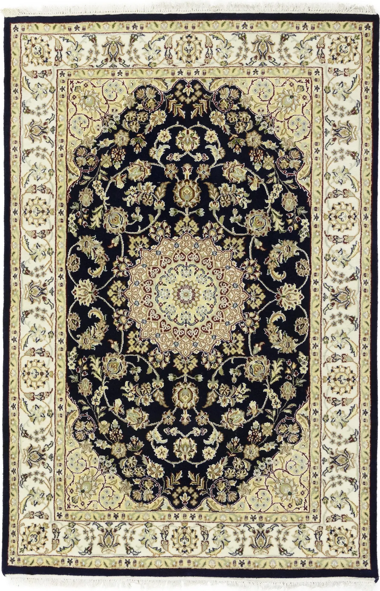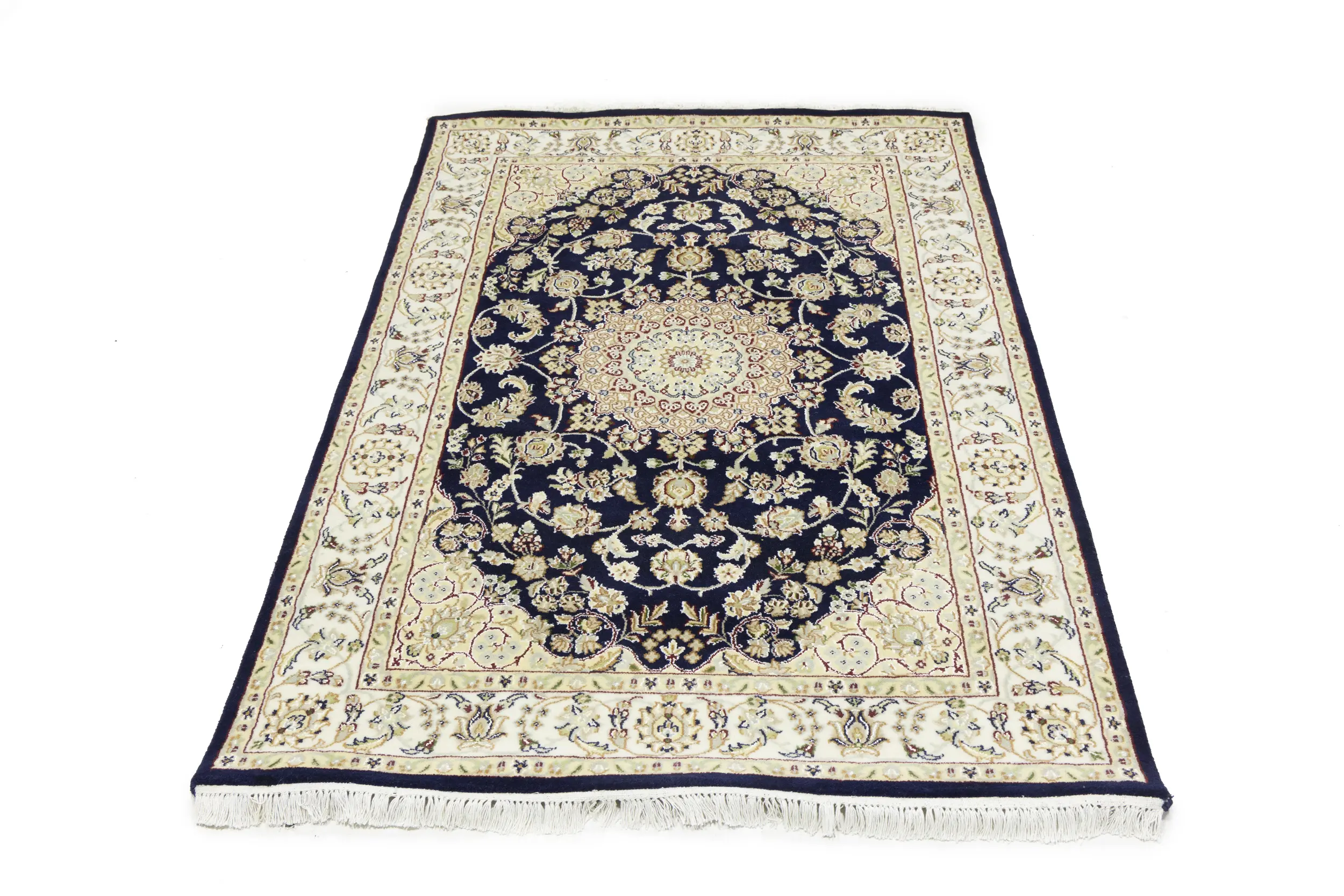 Dark Navy Floral 4X6 Indo-Nain Oriental Rug