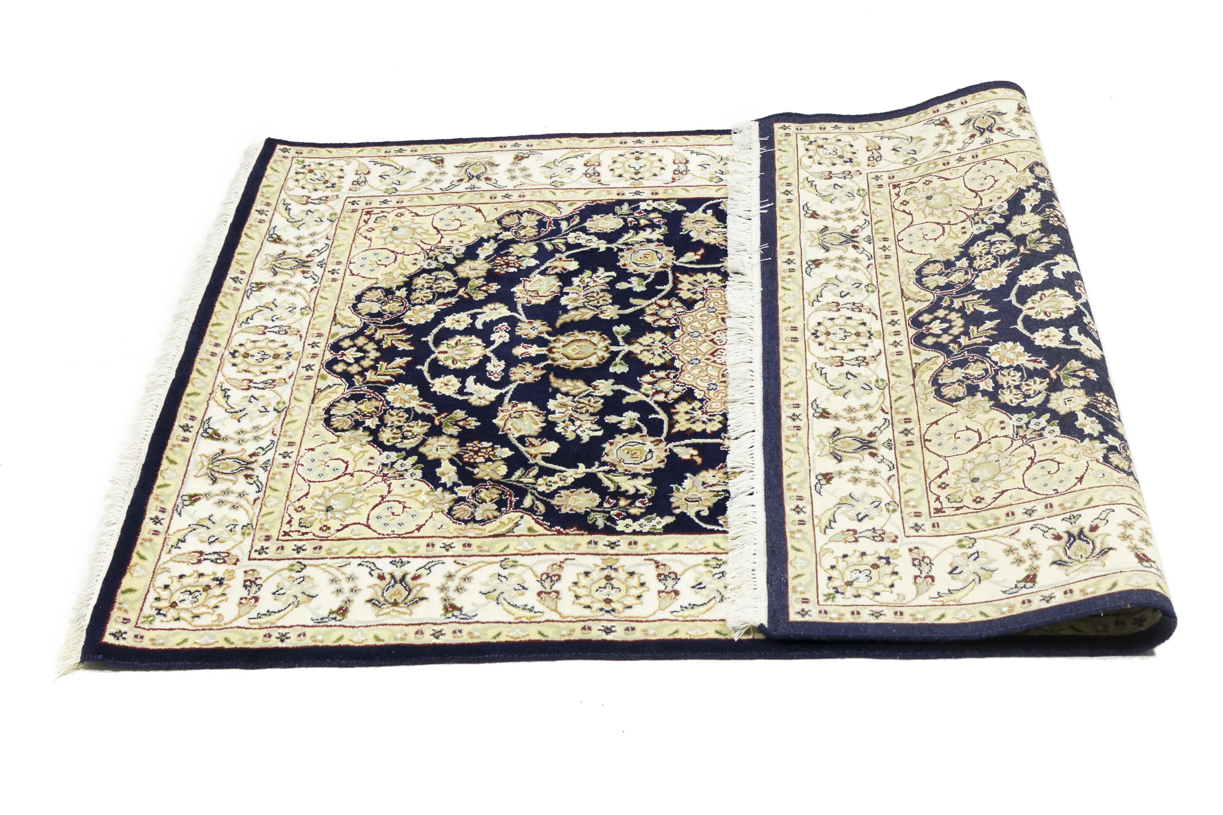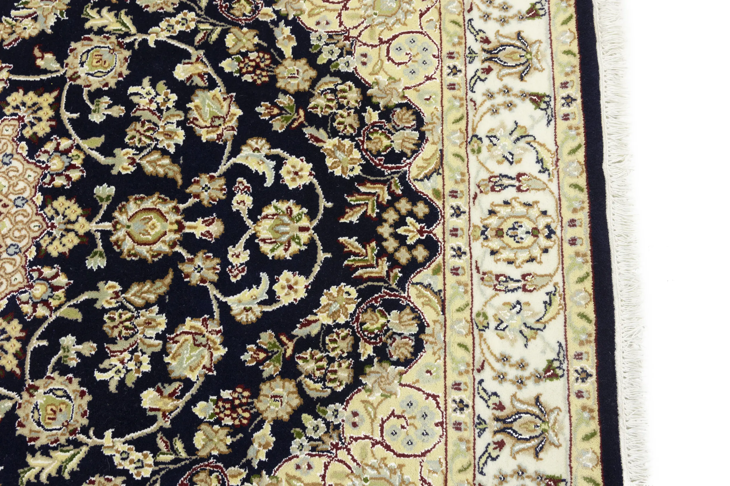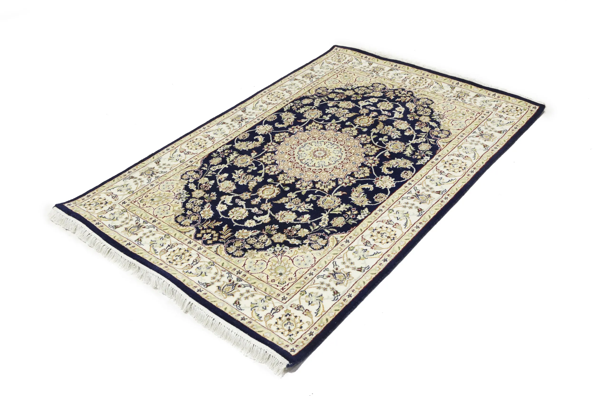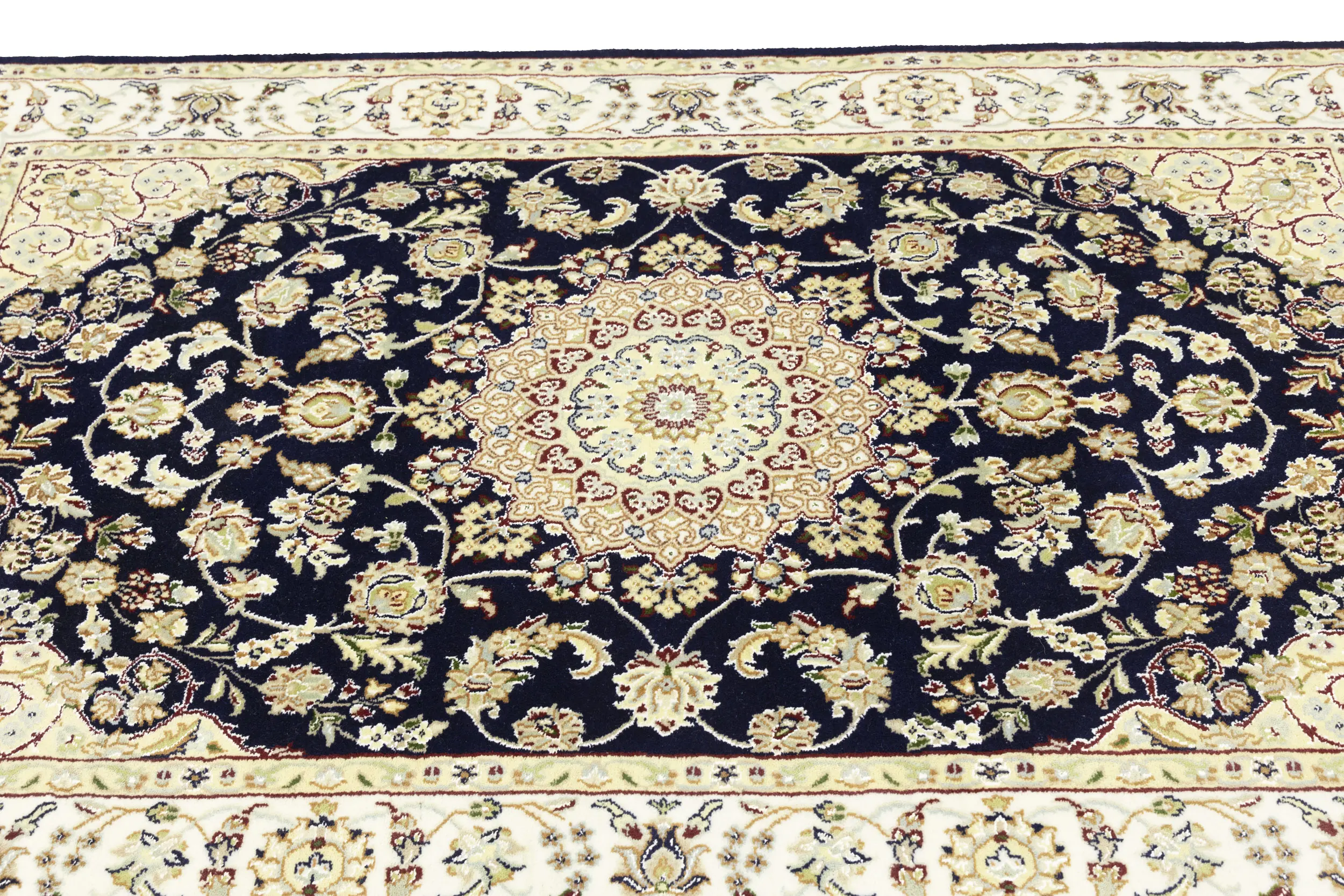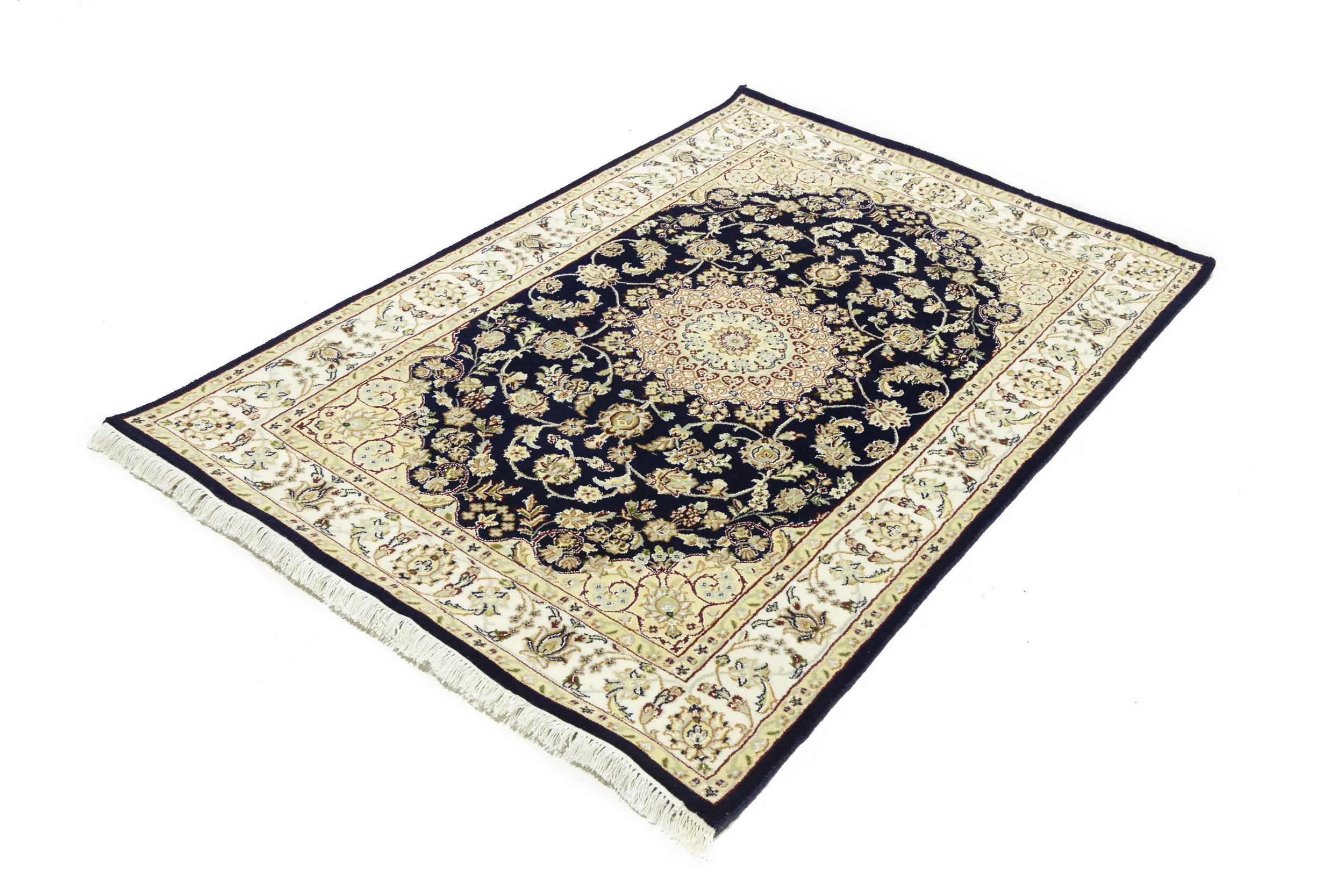 Dark Navy Floral 4X6 Indo-Nain Oriental Rug
