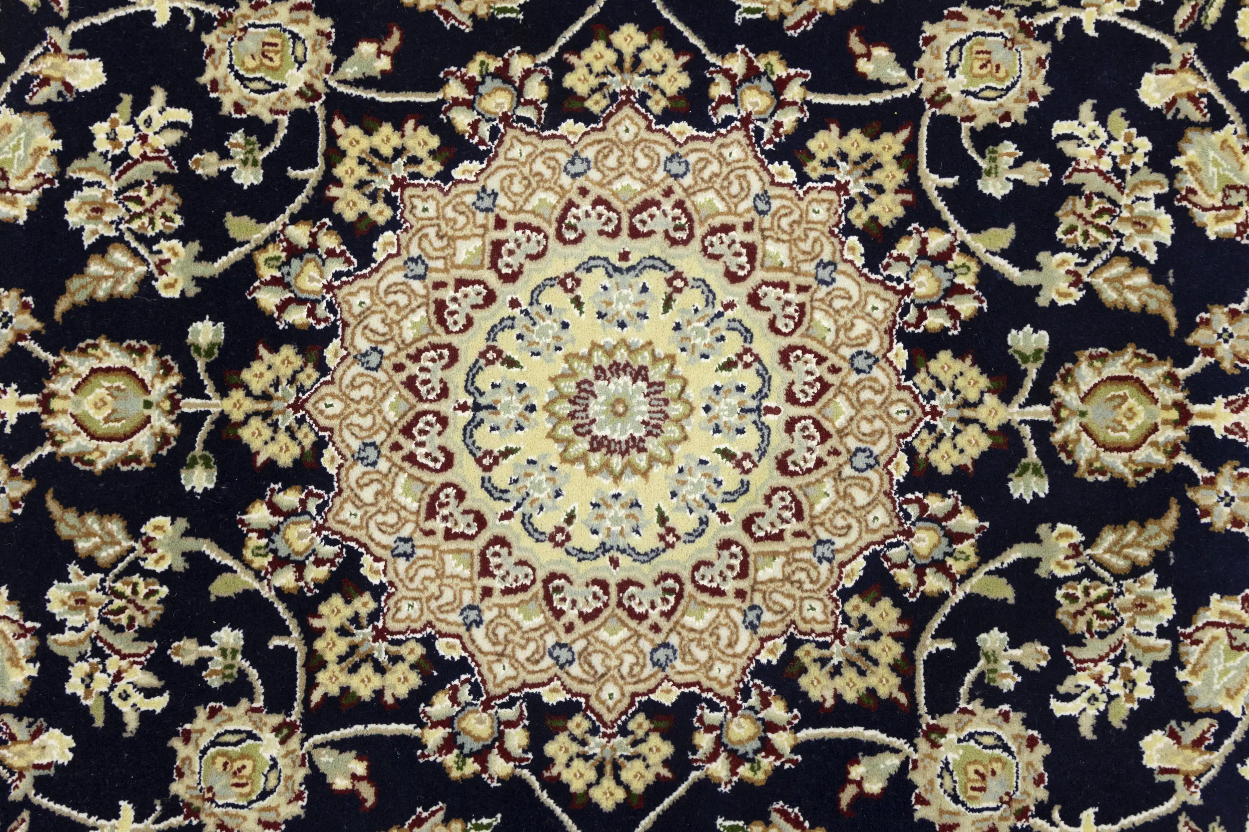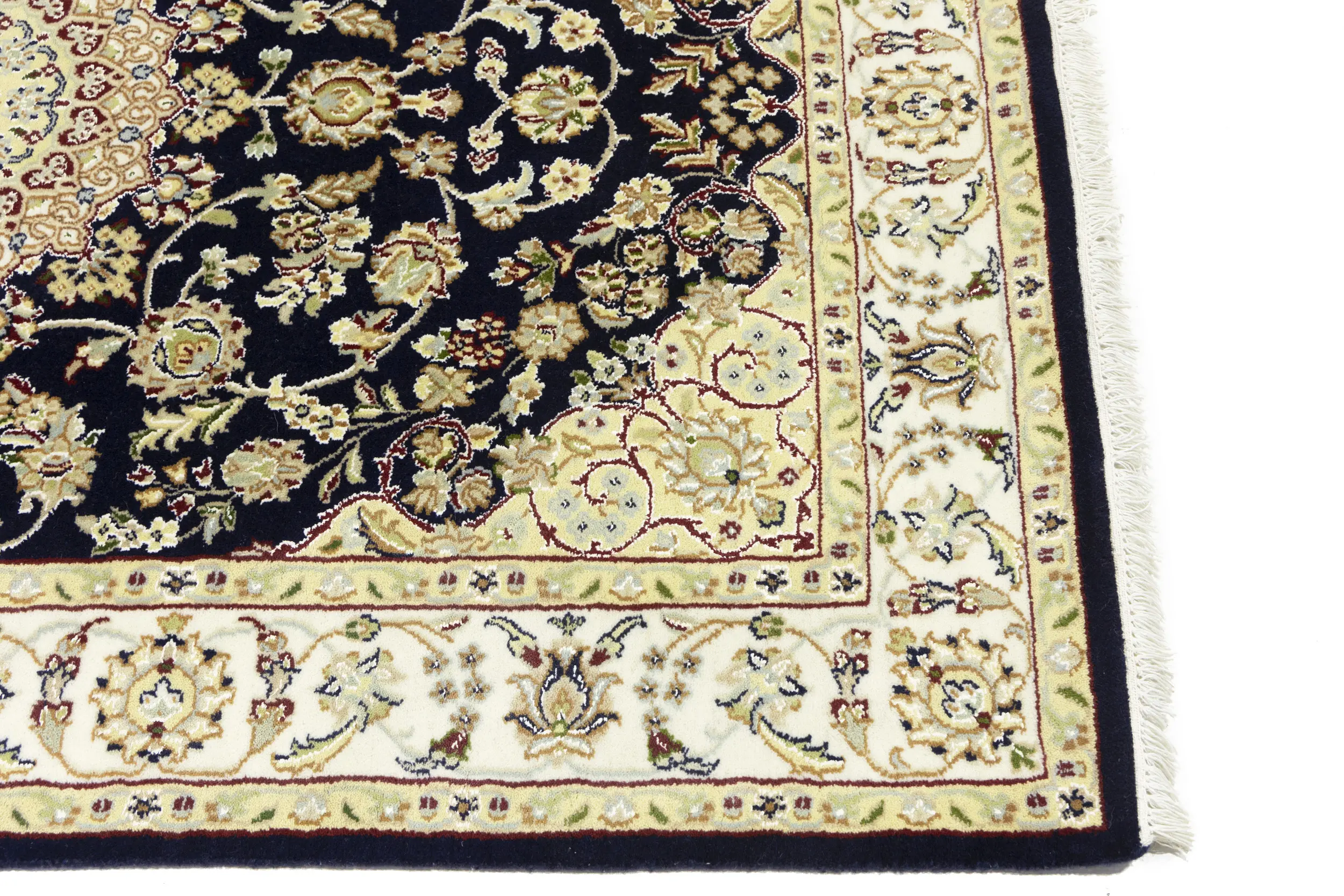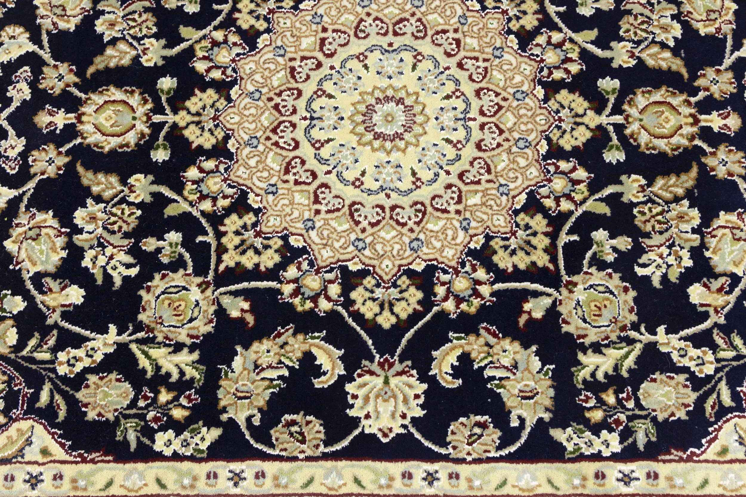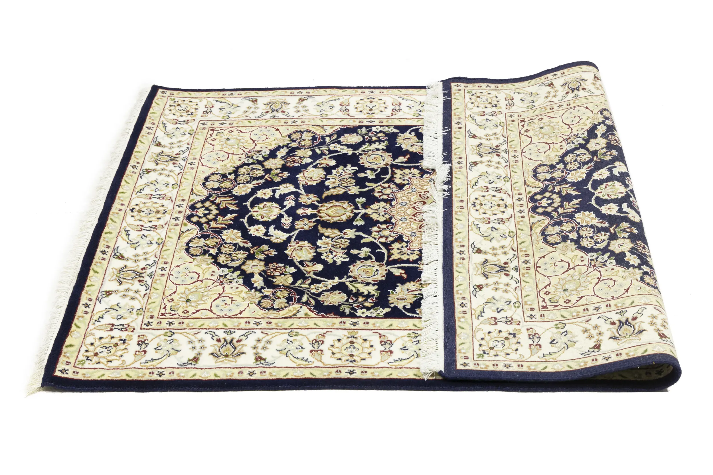 Dark Navy Floral 4X6 Indo-Nain Oriental Rug