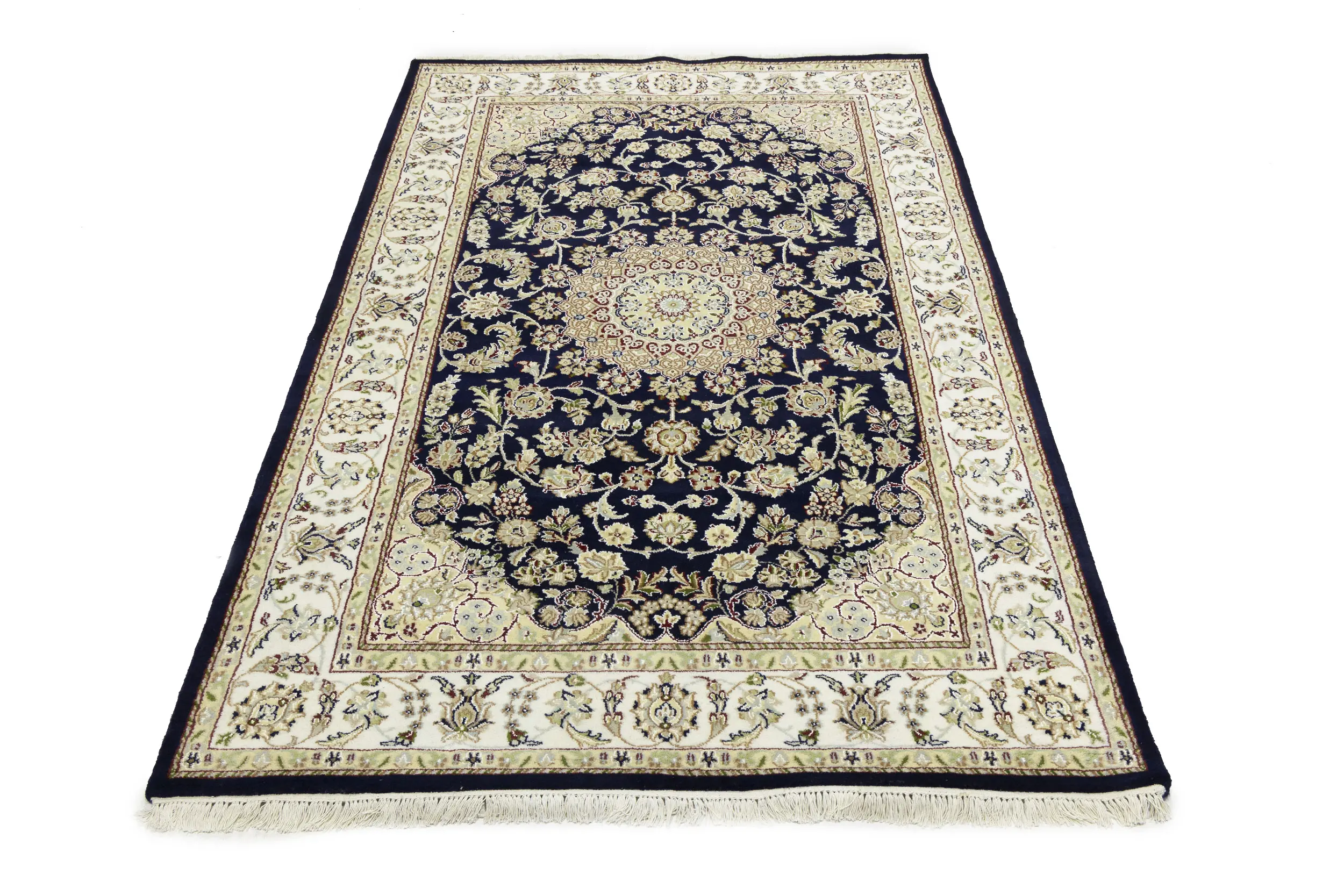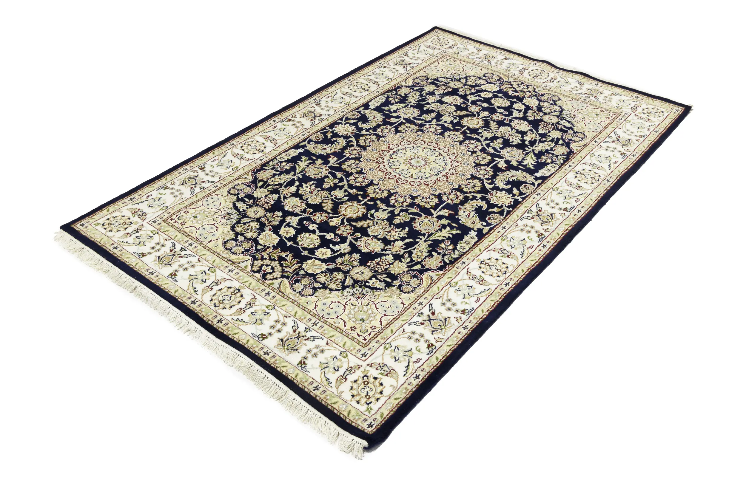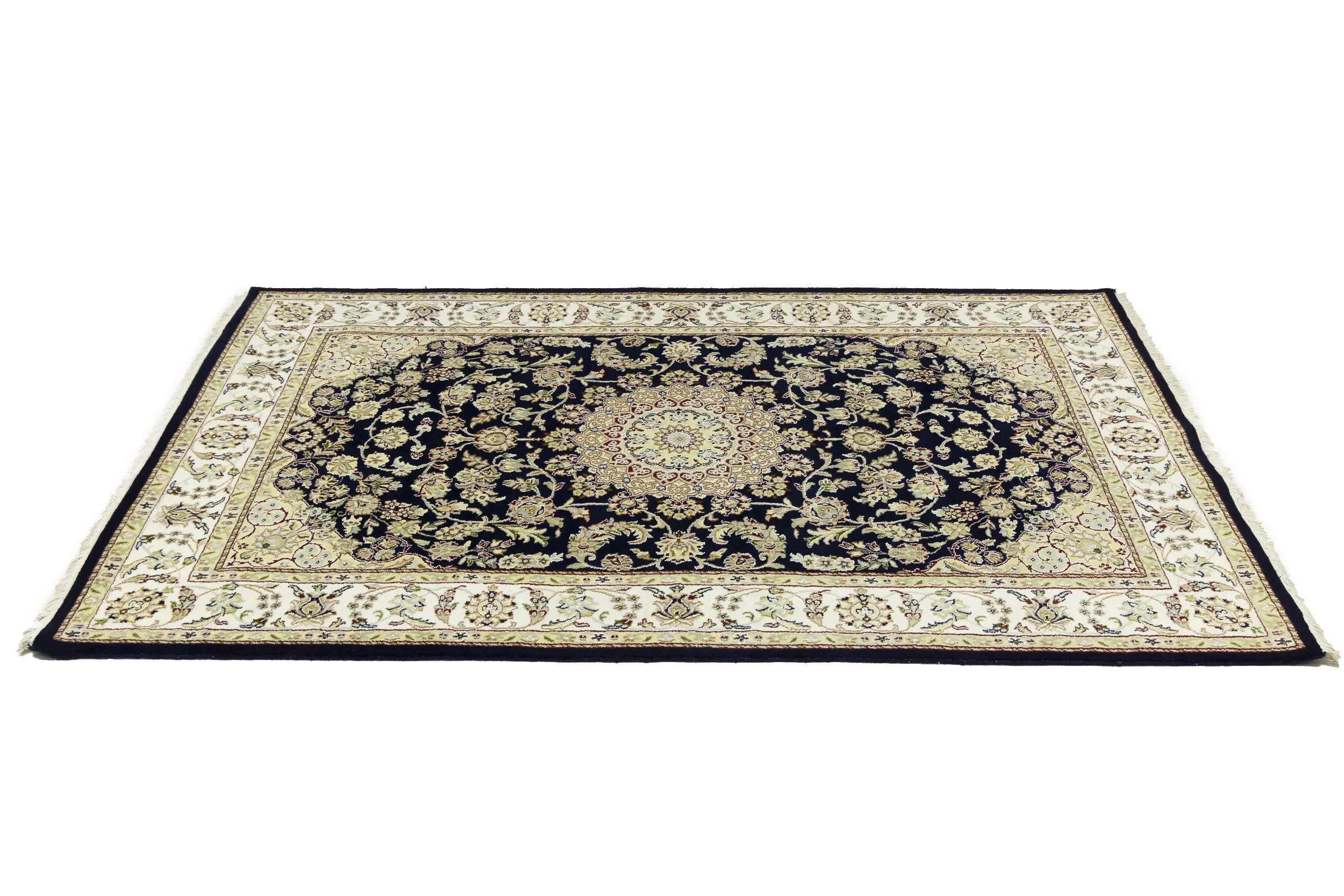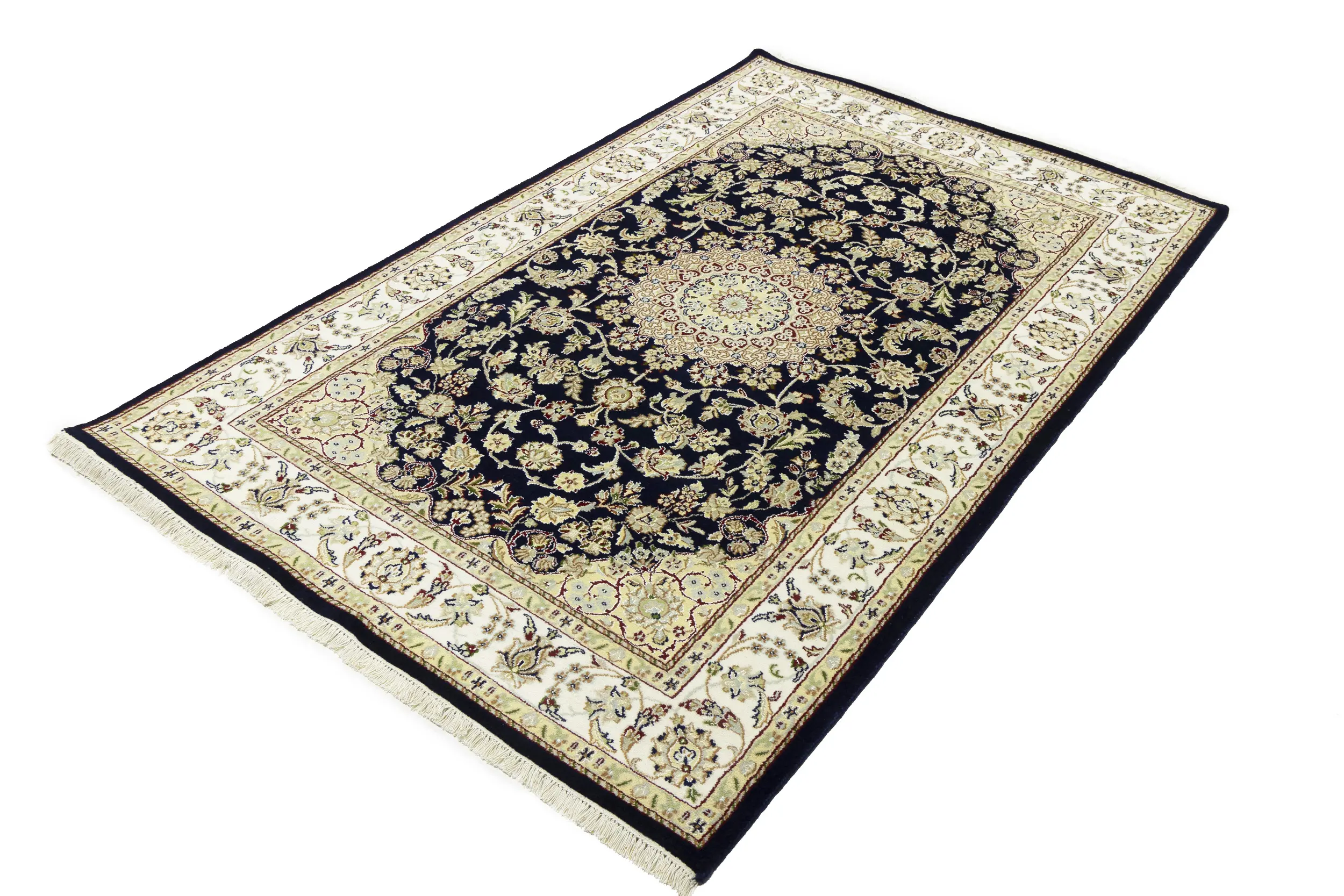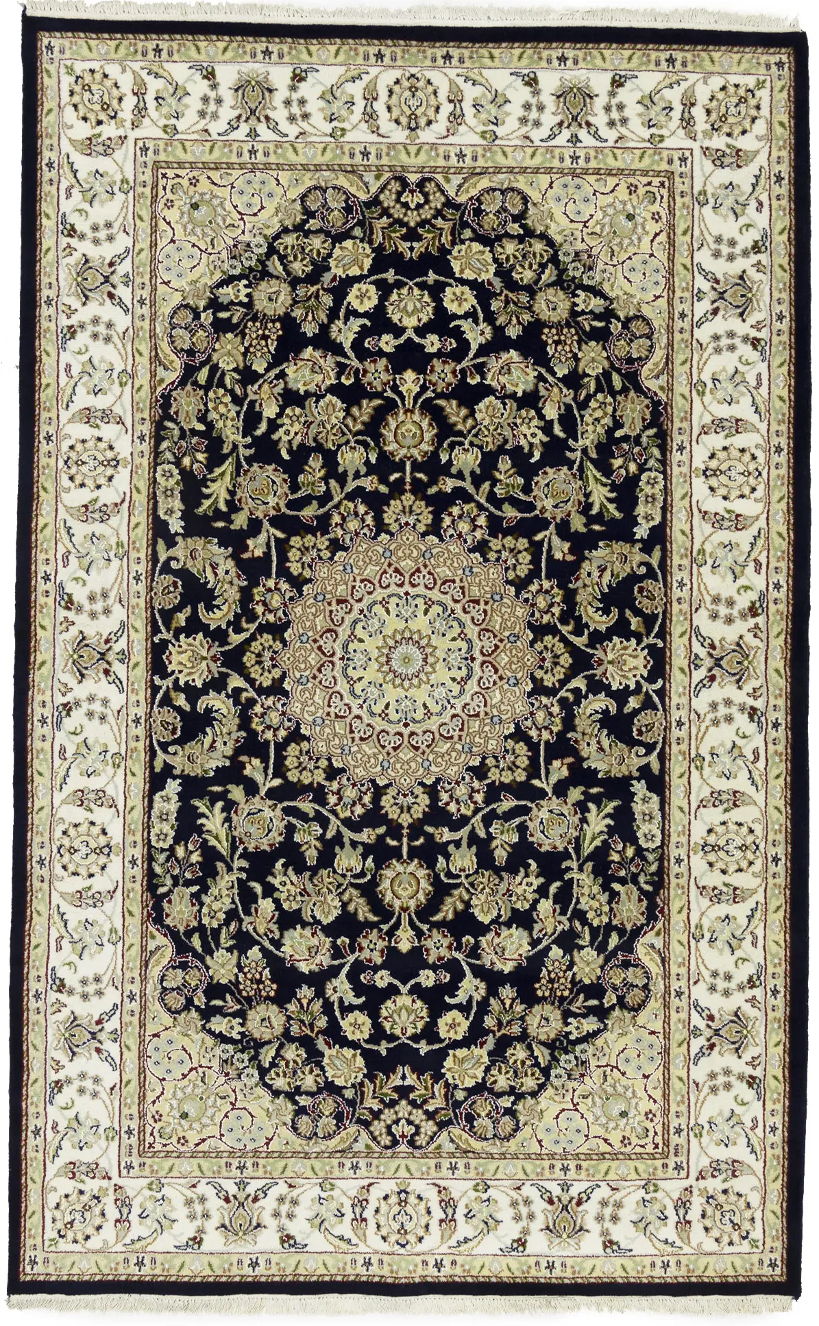 Dark Navy Floral 5X7 Indo-Nain Oriental Rug