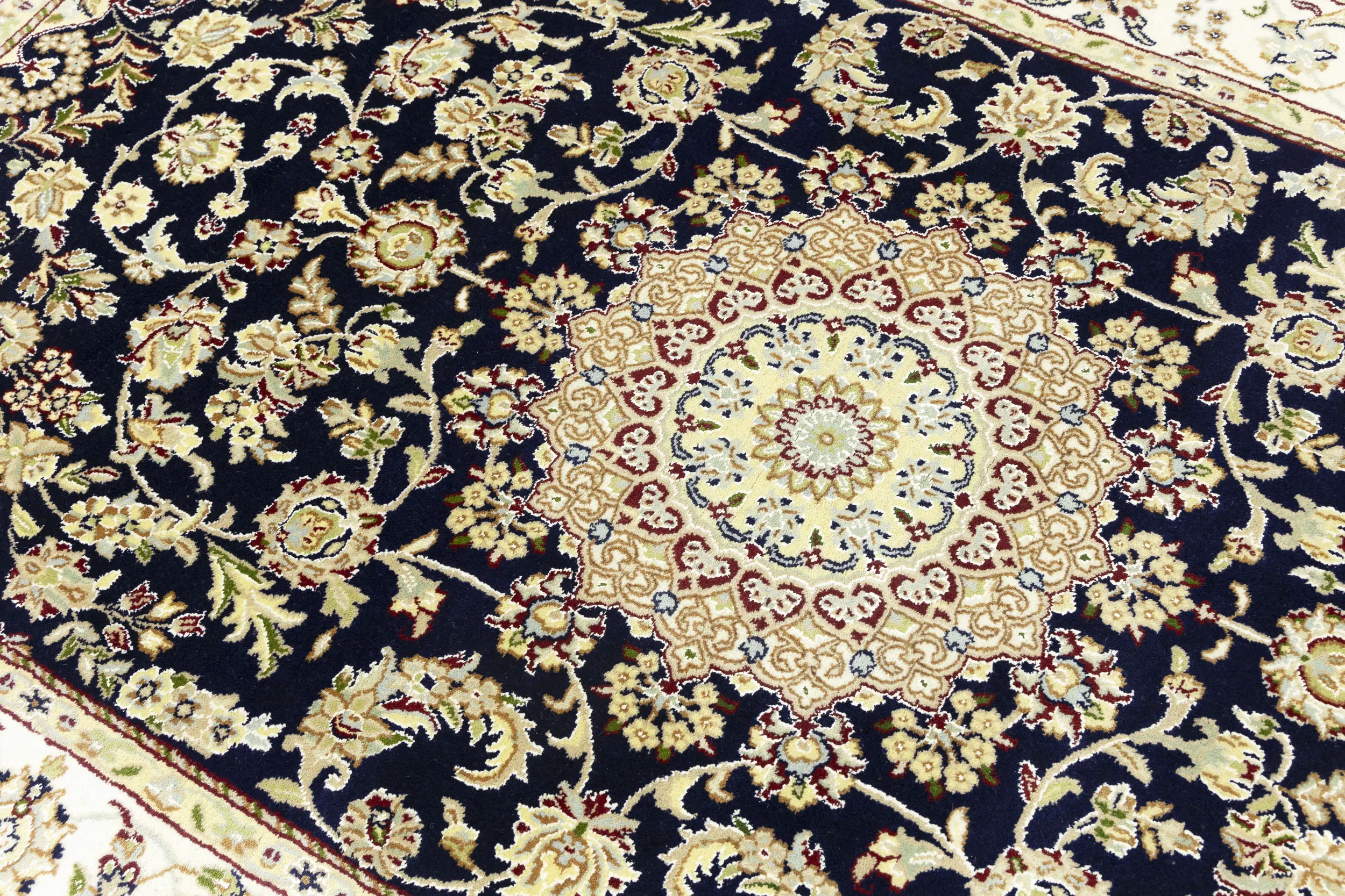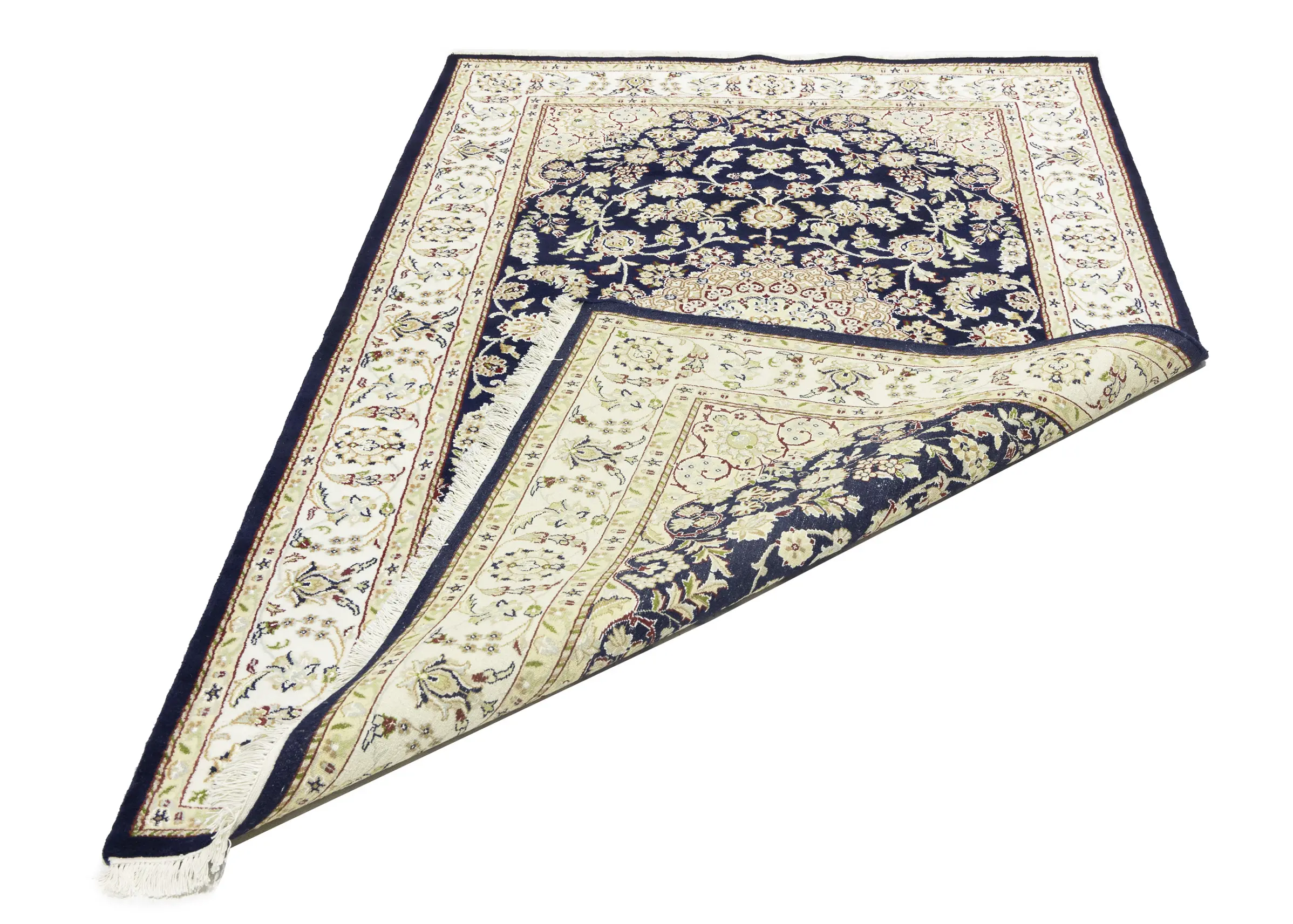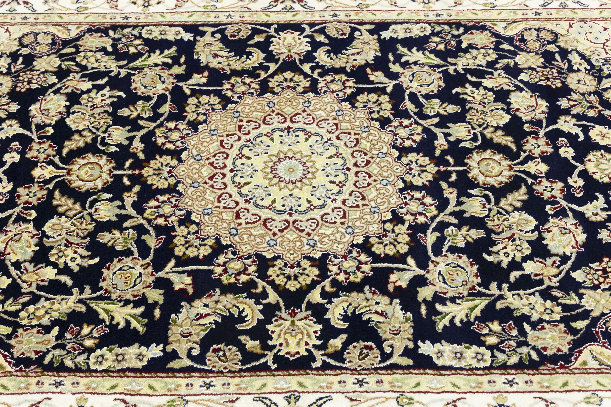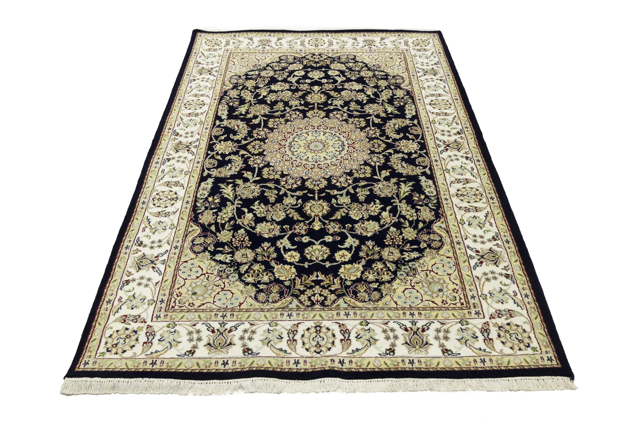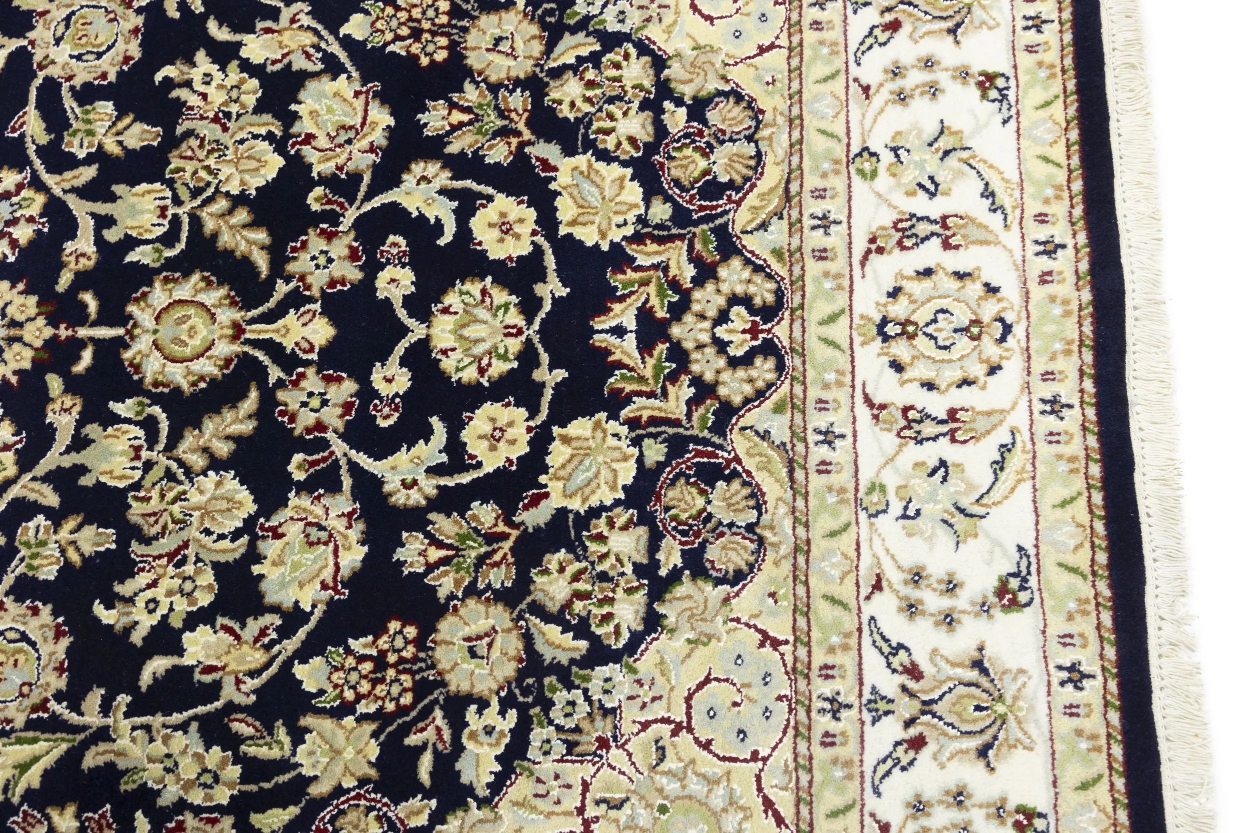 Dark Navy Floral 5X7 Indo-Nain Oriental Rug