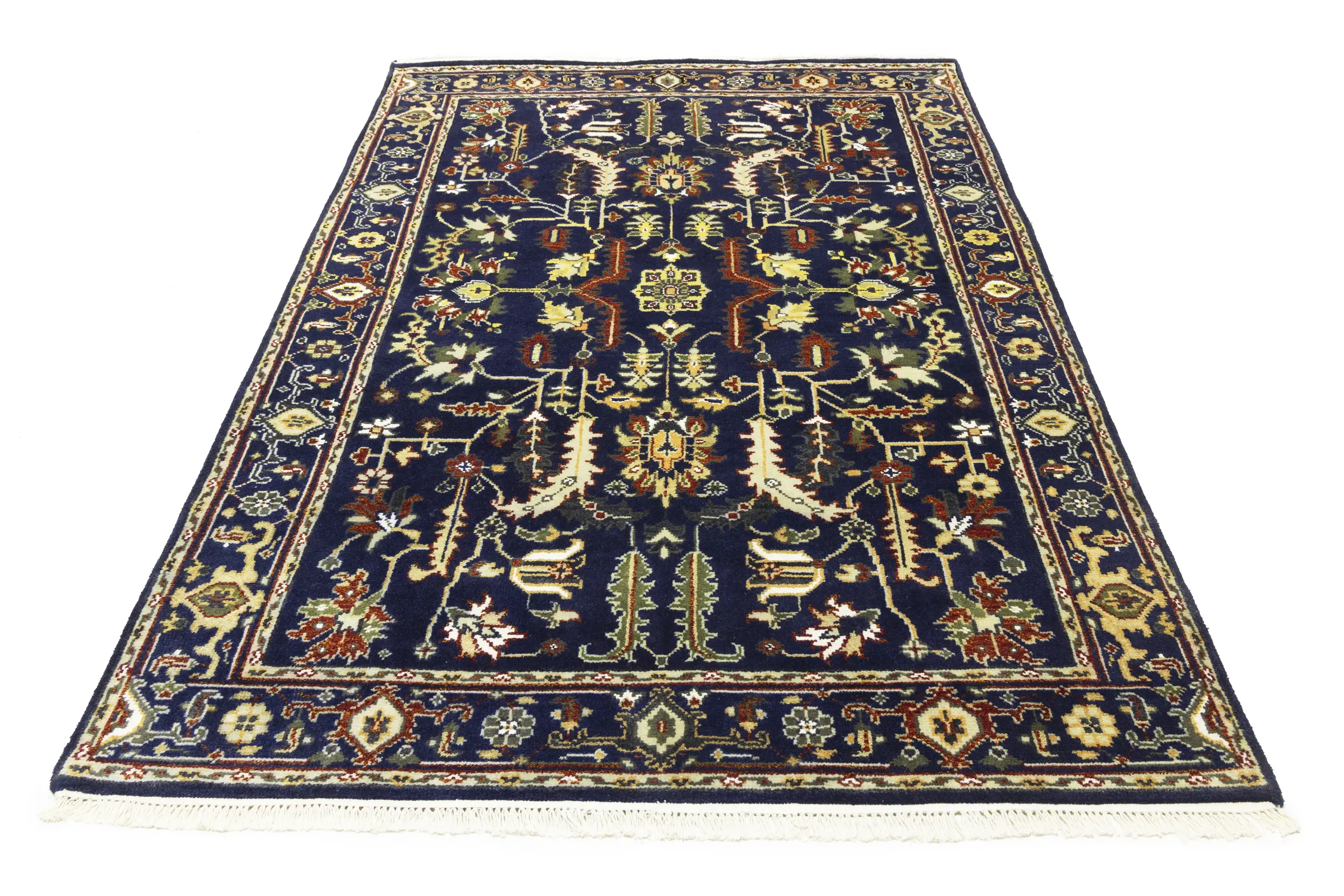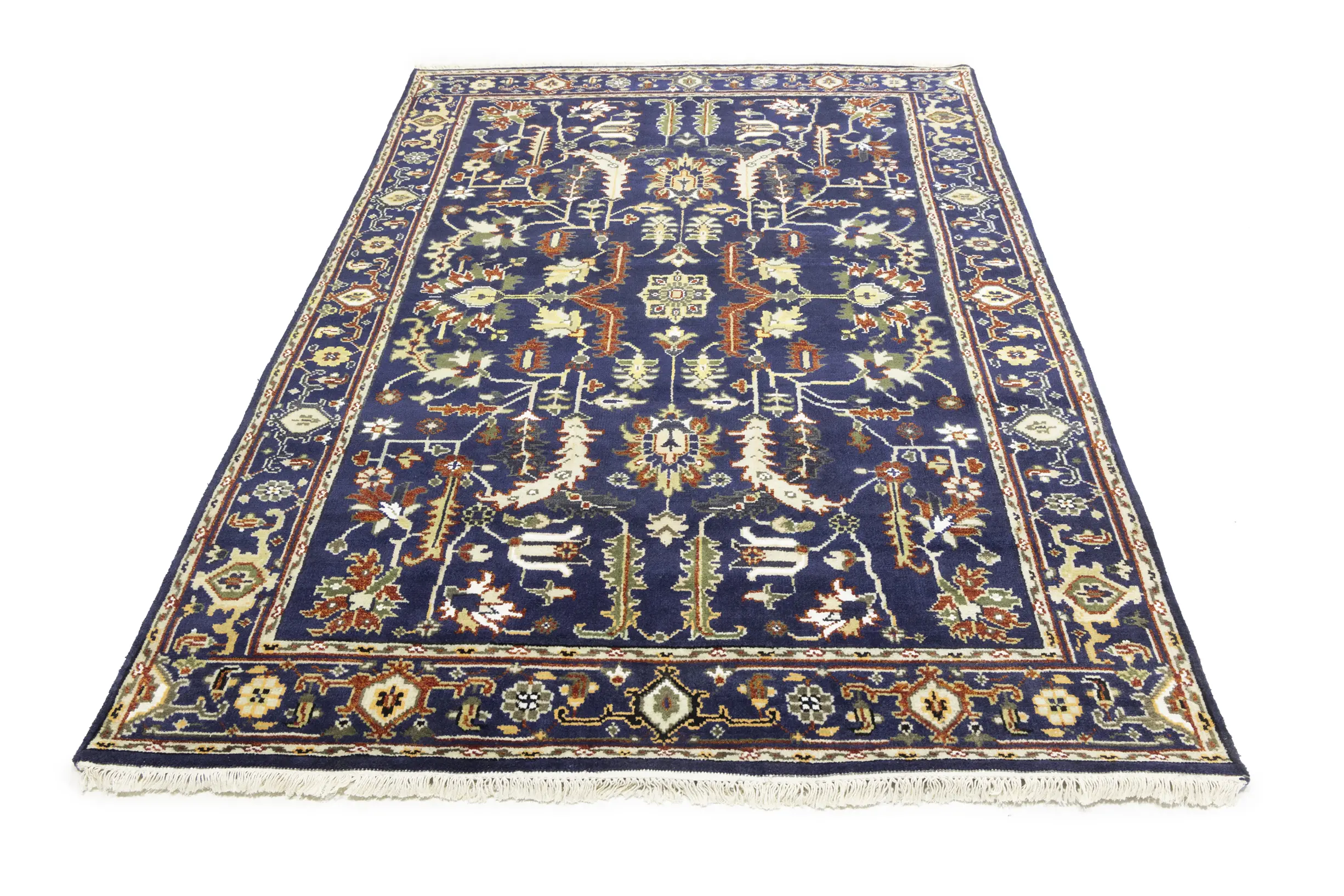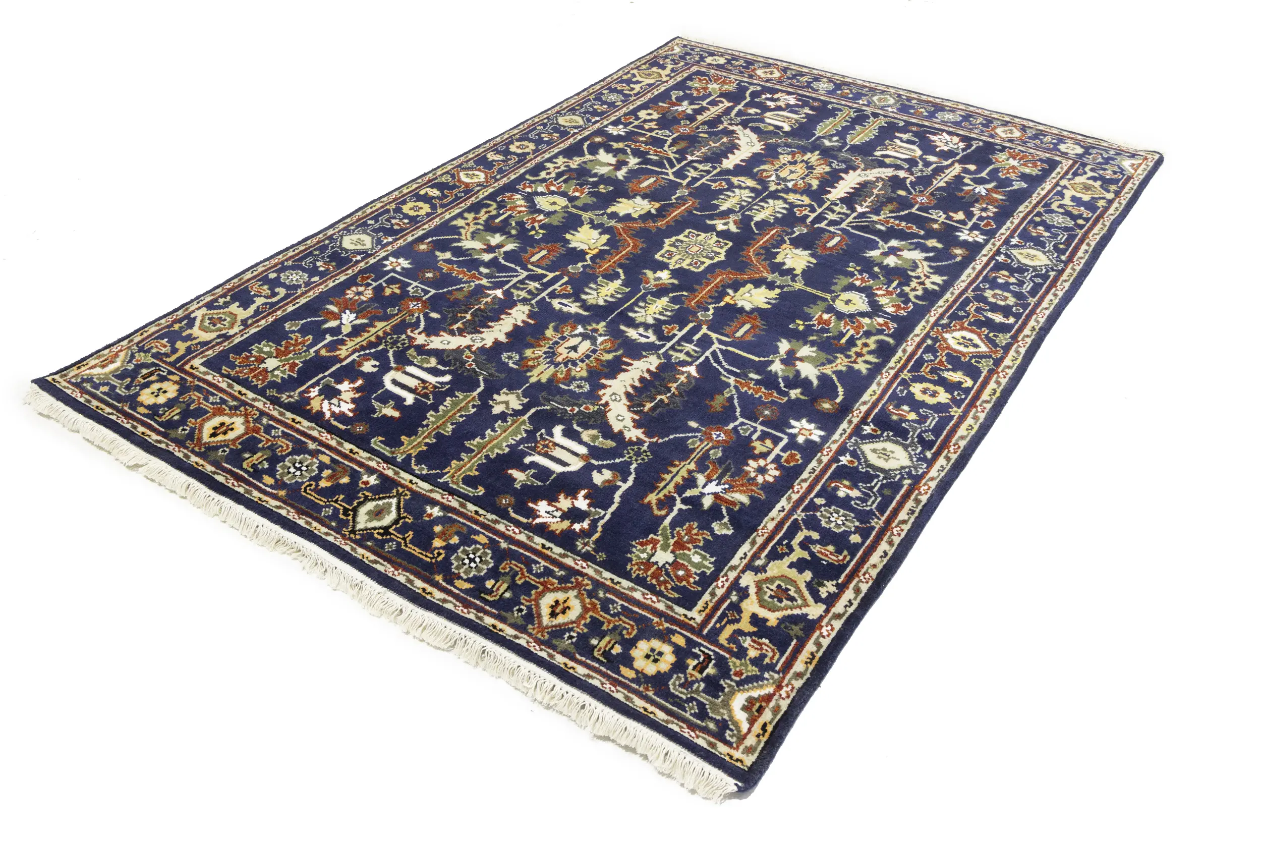 Handmade 6X9 blue oriental rug made with vegetable dyes (fine wool pile and cotton foundation), superior knot count, and appealing ancient designs. This Oriental rug never will go out of style and would be among your most valuable treasures.