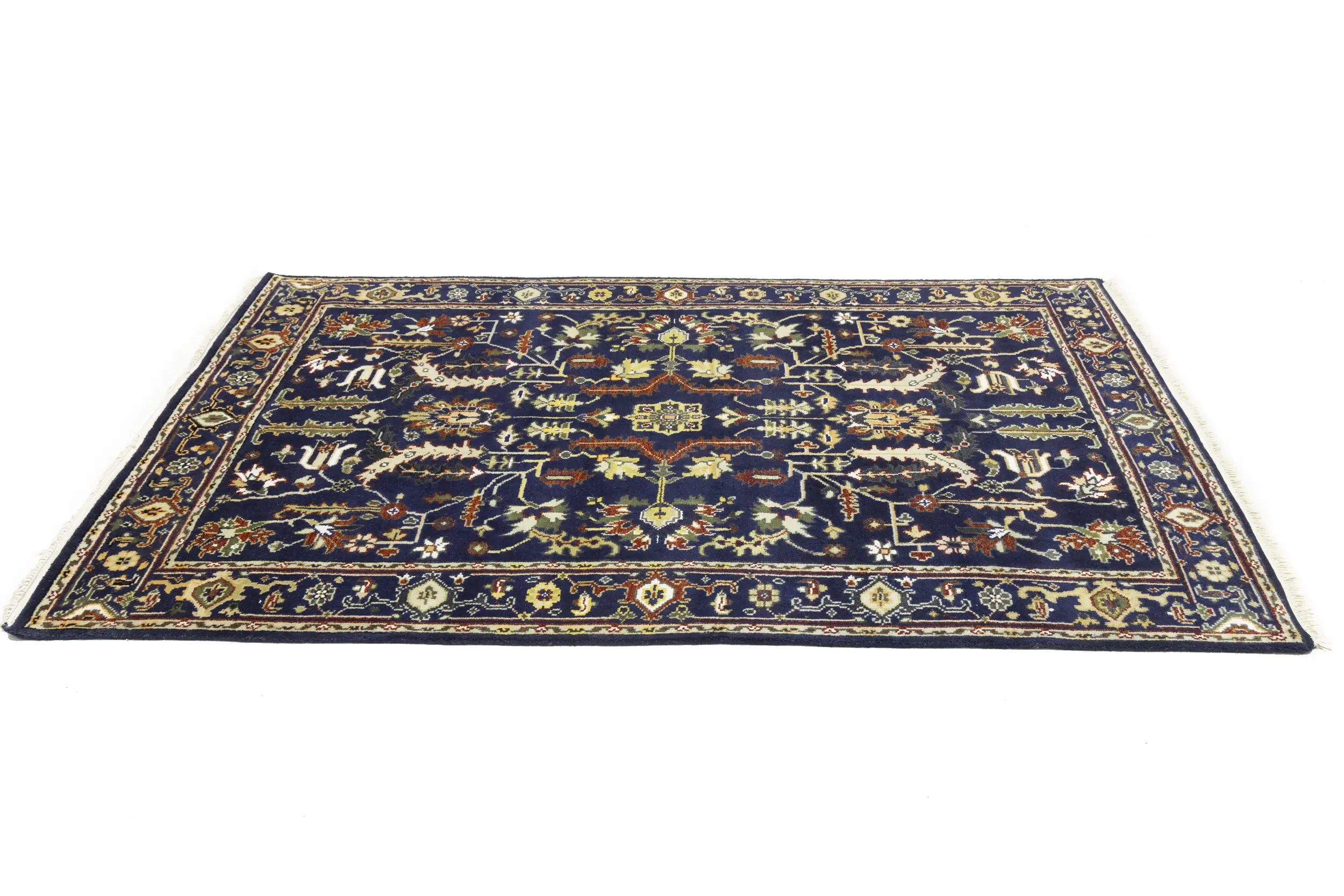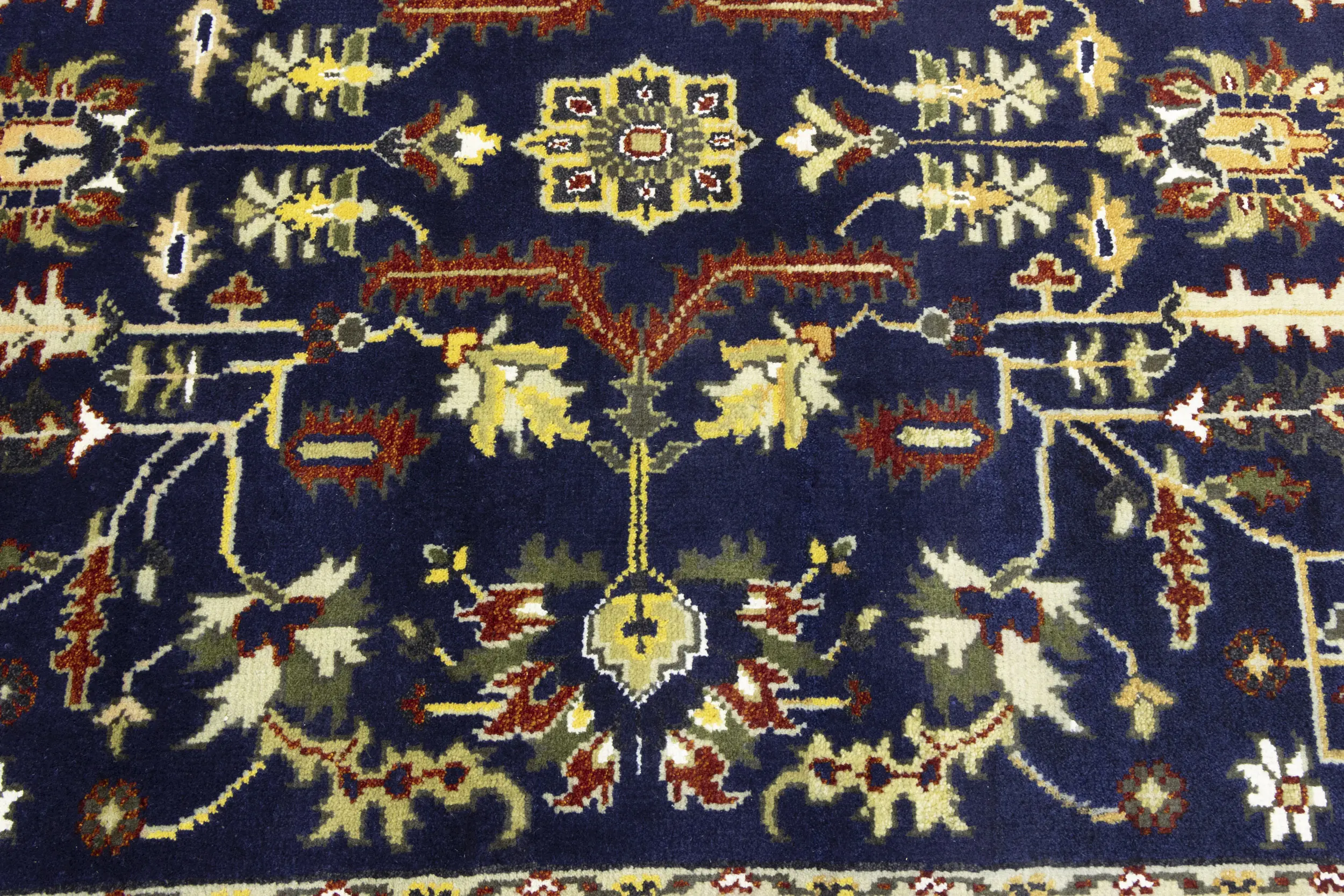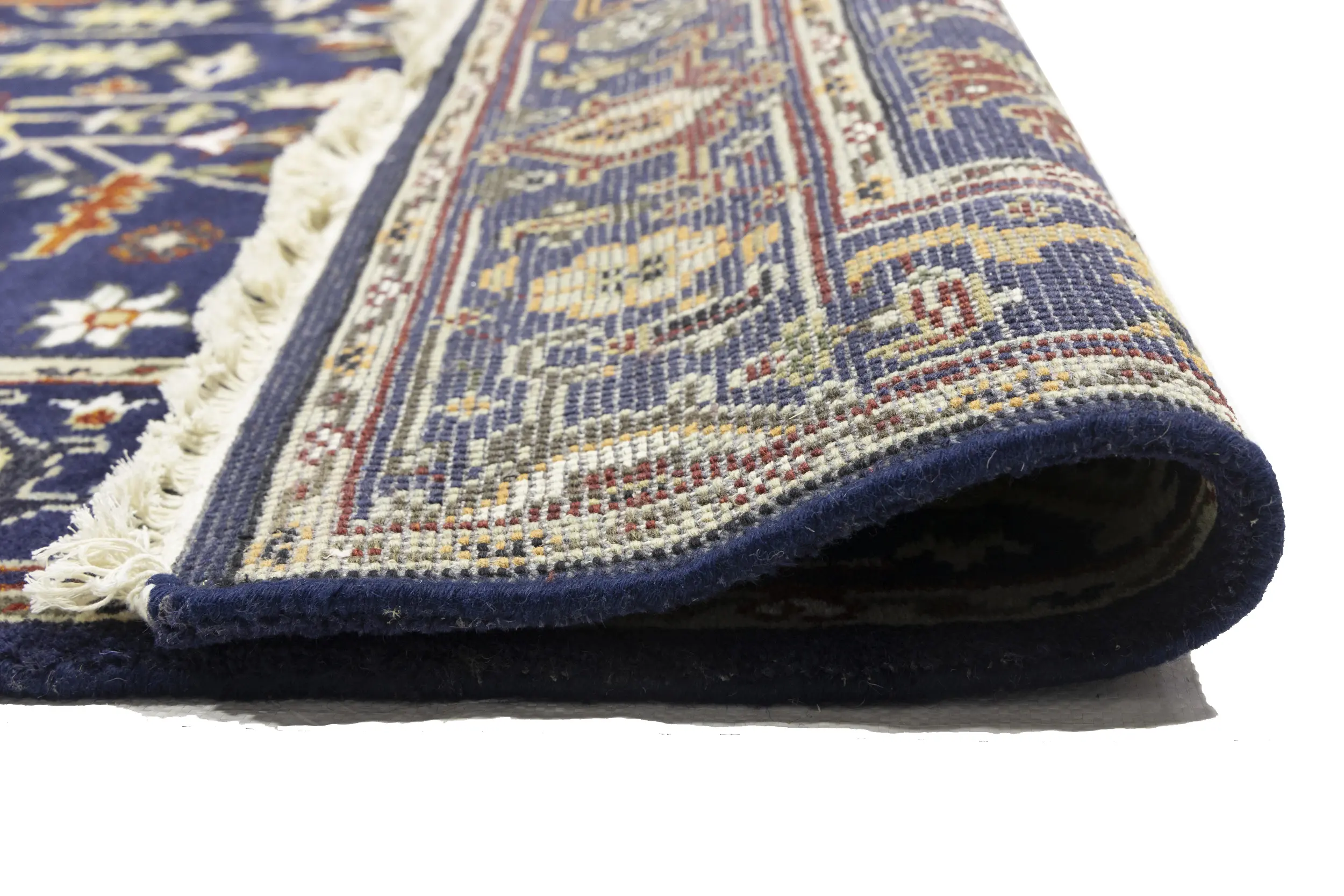 This genuine 6X9 blue new Oriental rug was made by the hands of gifted weavers inspired by a variety of spectacular artistic designs, to recreate the aged look of the original piece with a richness of color and ornately patterned background field. What set this vintage style Oriental area rug from the others are the material and dye used (wool pile and cotton foundation), knot count, ancient designs, fantastic grades, and its regional historical connection: it has deep roots, from the story of the people who produced it to the meaning of the symbols and colors displayed across its canvas that have been praised for centuries. This Indian home décor carpet will be completely cozy and inviting that never will go out of style! Also, this Oriental rug would be among your most valuable treasures, it is a great investment that accrues value over time, and it will last for generations because was woven with high-quality, all-natural wool. Environmentally friendly, opulent yet affordable; this rug will give you a thorough amount of character to help define your living space with elegance and warmth that will capture the eyes and attention of your audience (homeowners, designers, decorators, family and friends).