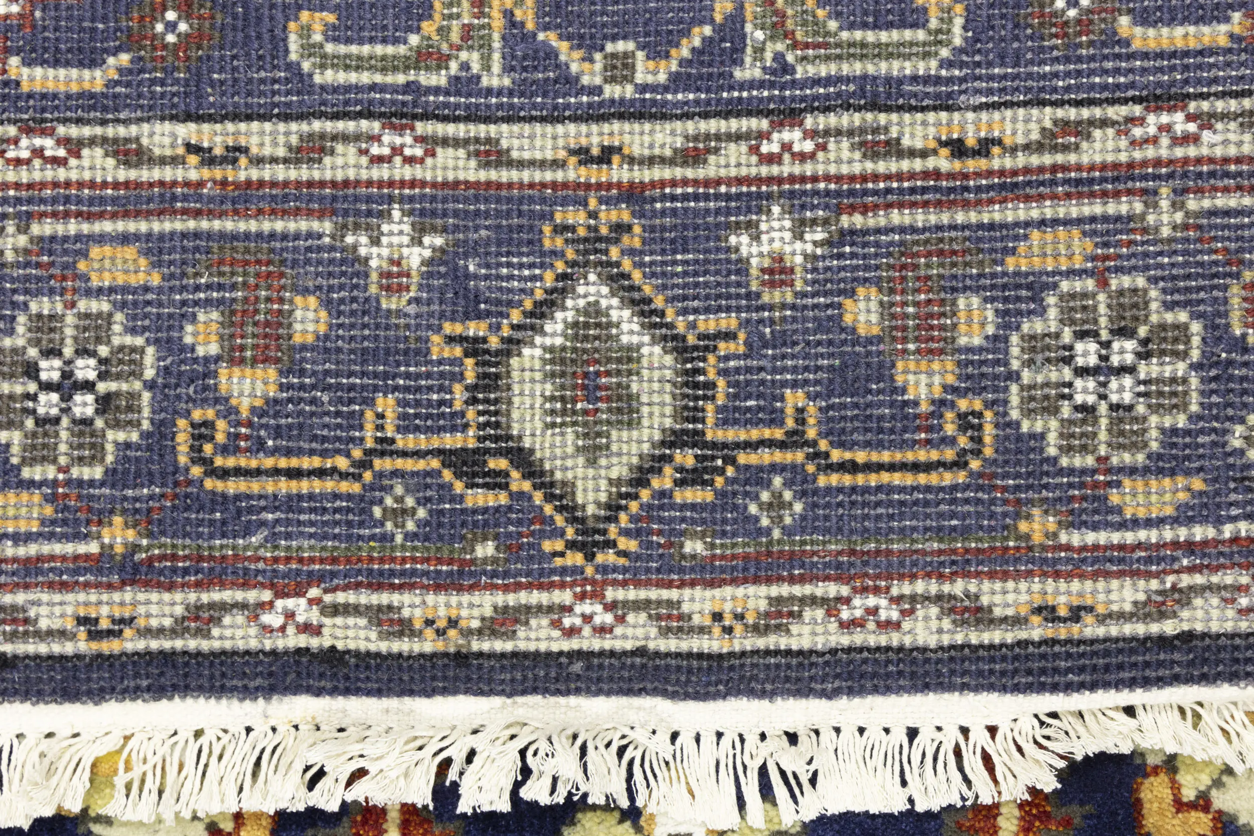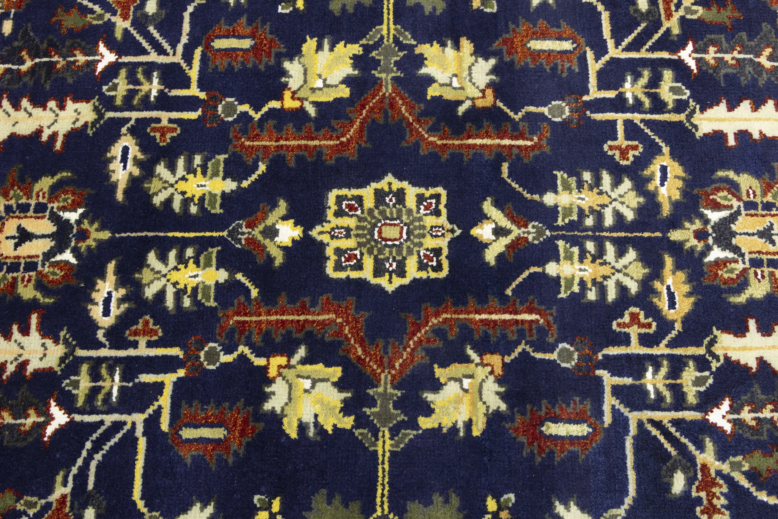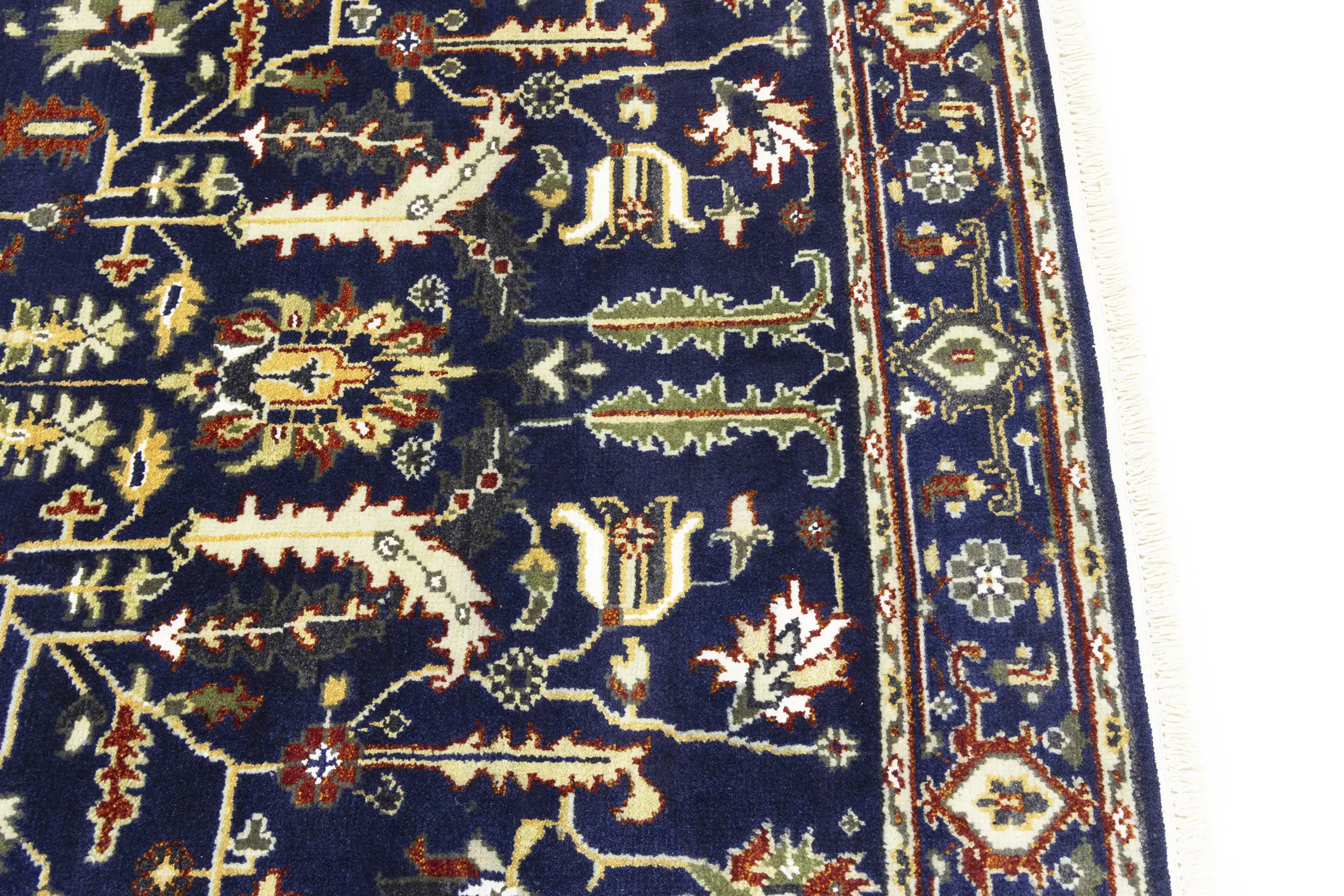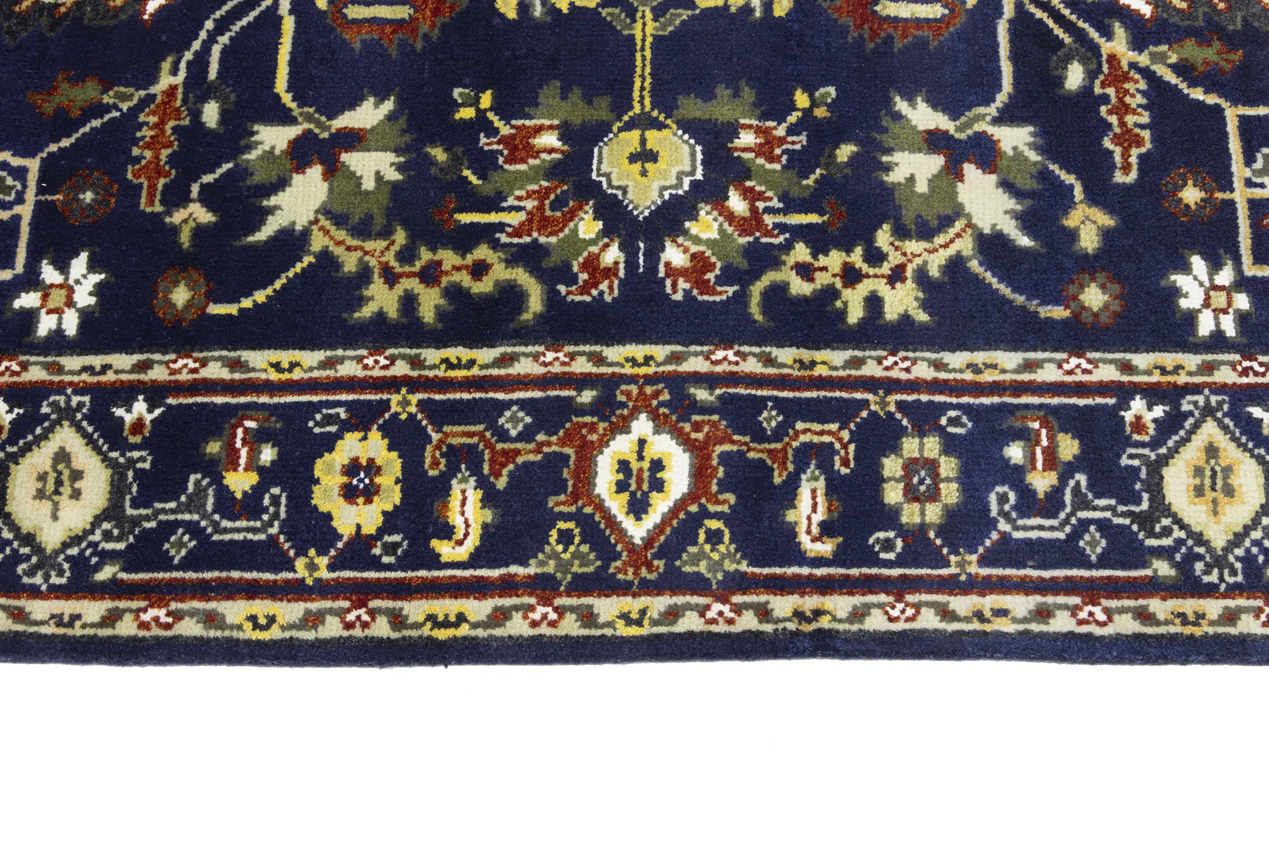 This genuine 6X9 blue new Oriental rug was made by the hands of gifted weavers inspired by a variety of spectacular artistic designs, to recreate the aged look of the original piece with a richness of color and ornately patterned background field. What set this vintage style Oriental area rug from the others are the material and dye used (wool pile and cotton foundation), knot count, ancient designs, fantastic grades, and its regional historical connection: it has deep roots, from the story of the people who produced it to the meaning of the symbols and colors displayed across its canvas that have been praised for centuries. This Indian home décor carpet will be completely cozy and inviting that never will go out of style! Also, this Oriental rug would be among your most valuable treasures, it is a great investment that accrues value over time, and it will last for generations because was woven with high-quality, all-natural wool. Environmentally friendly, opulent yet affordable; this rug will give you a thorough amount of character to help define your living space with elegance and warmth that will capture the eyes and attention of your audience (homeowners, designers, decorators, family and friends).