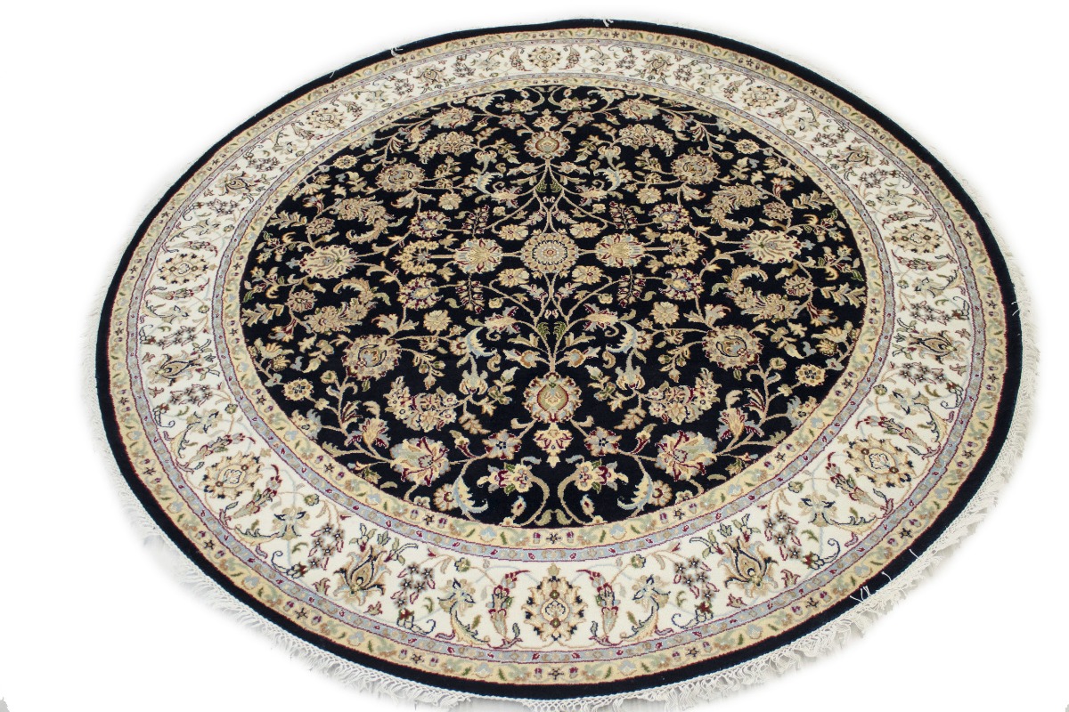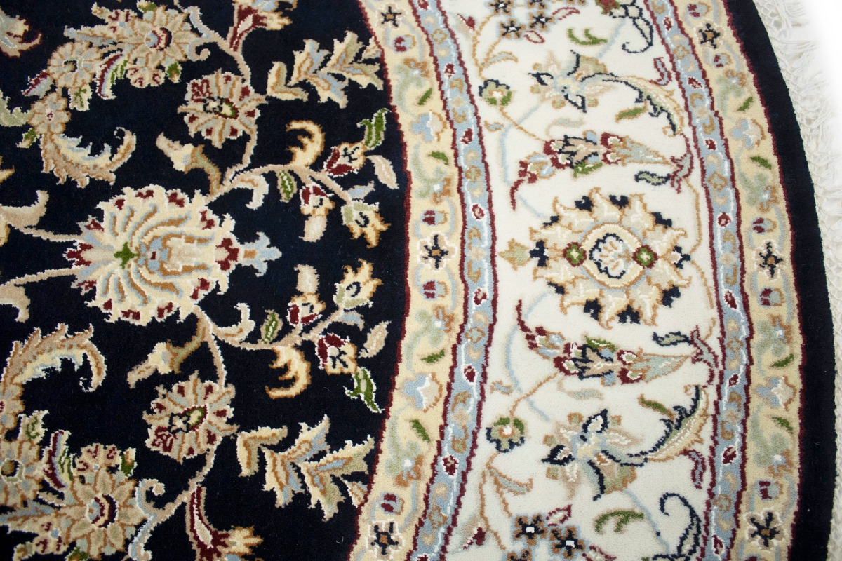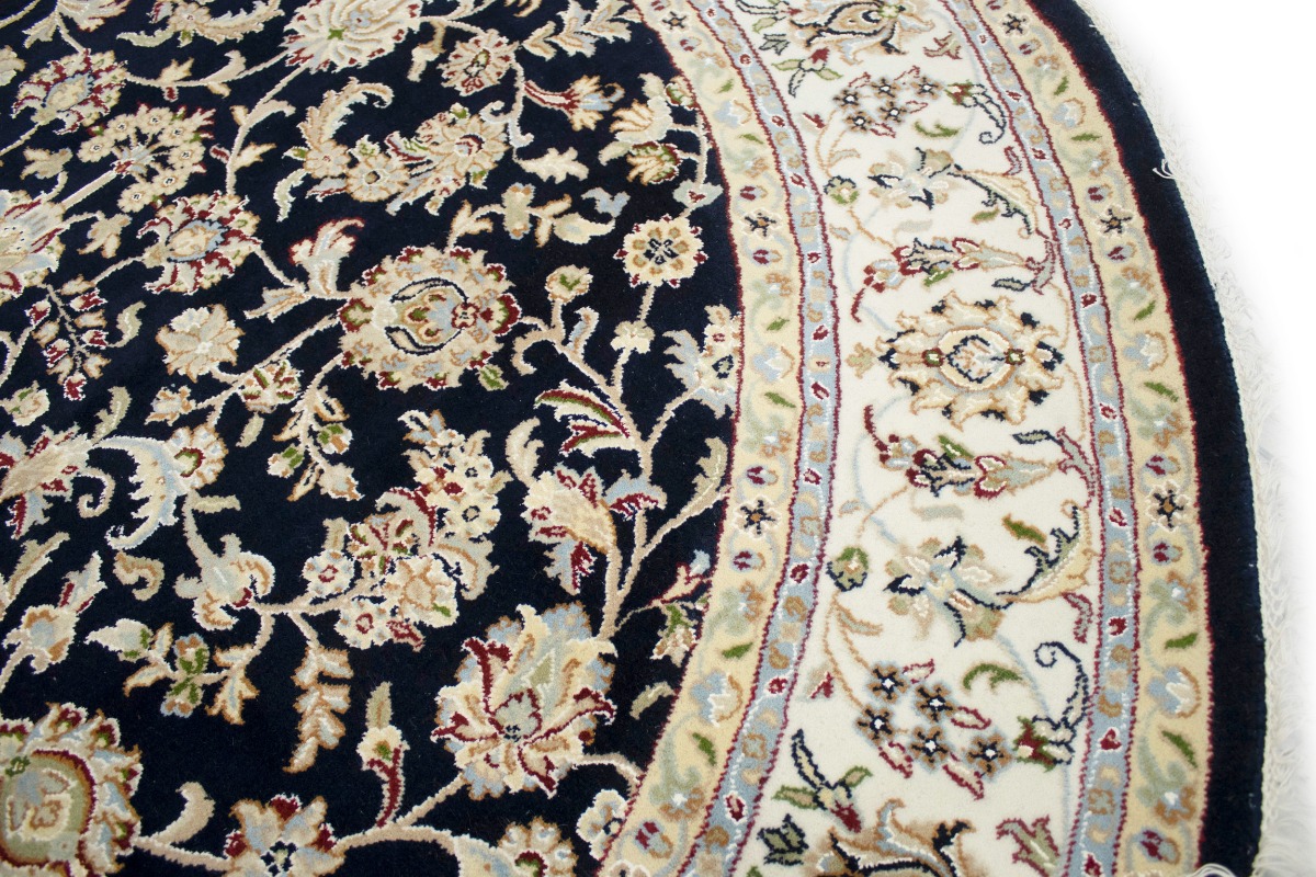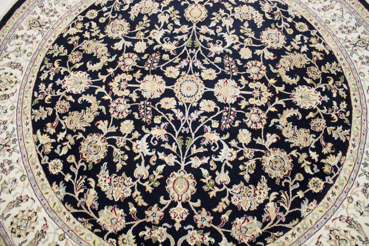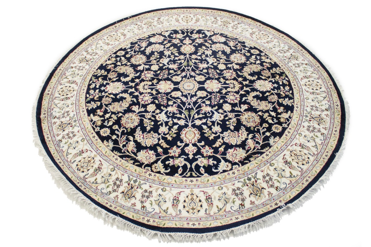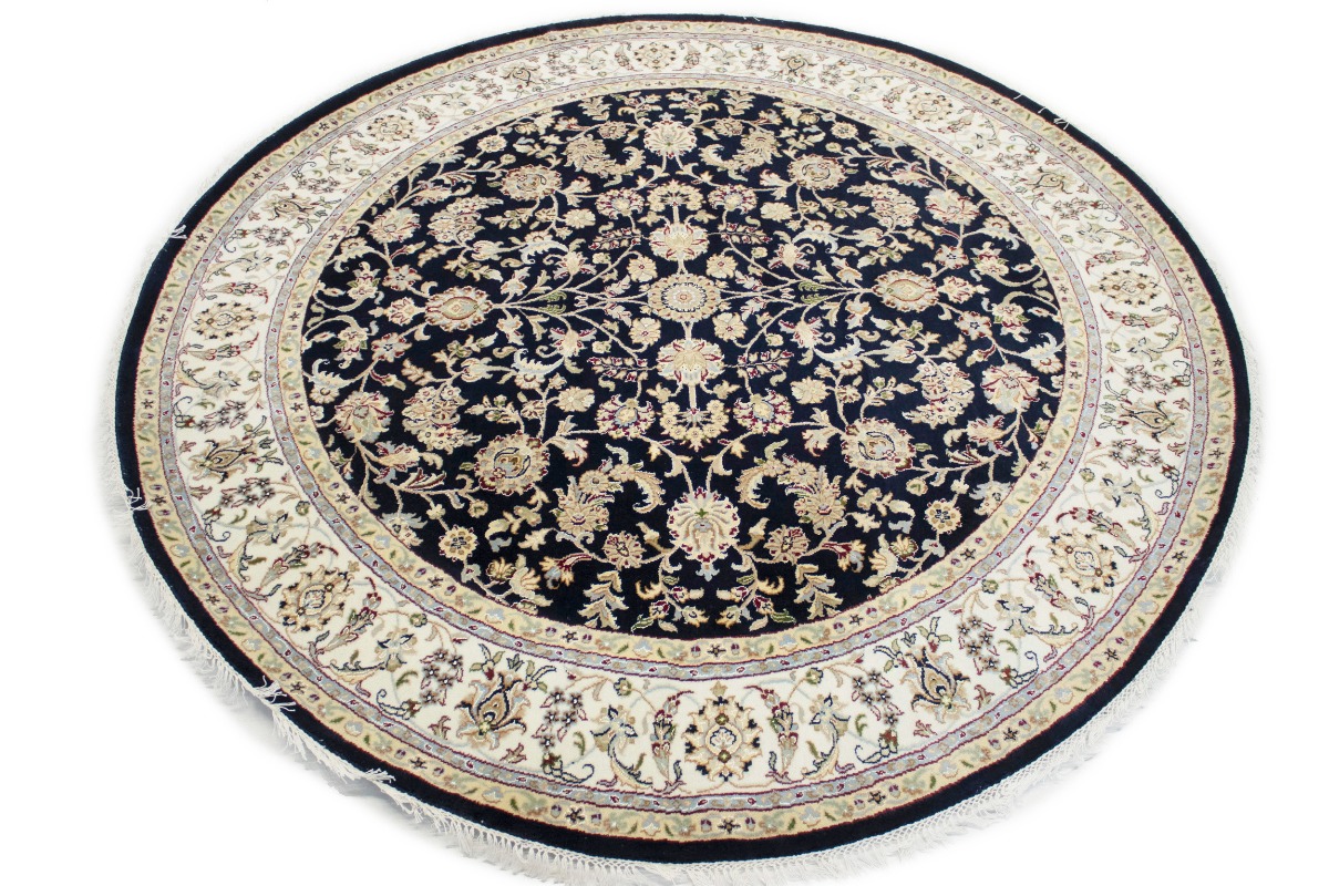 Dark Navy Floral 7X7 Indo-Nain Oriental Round Rug