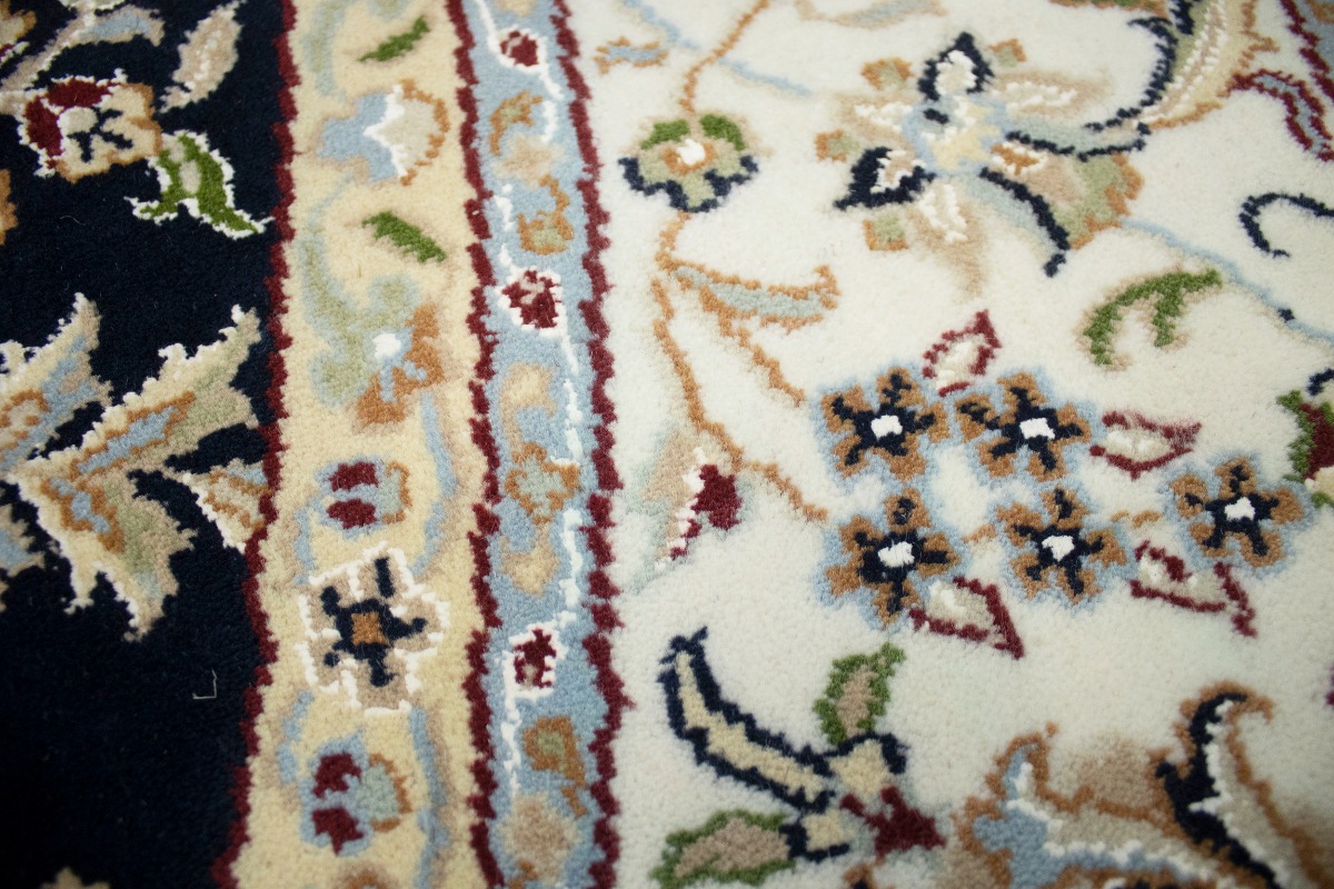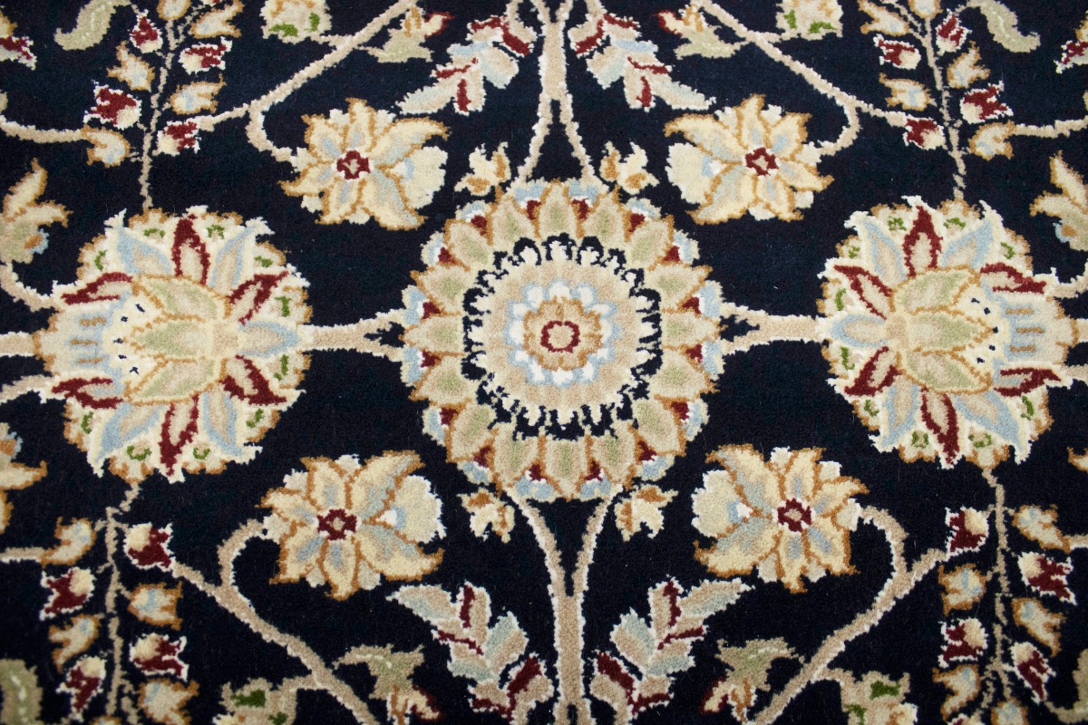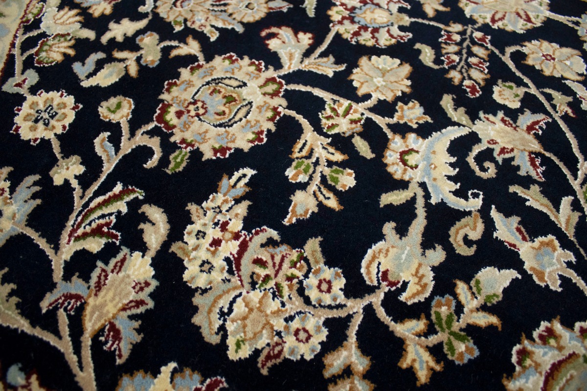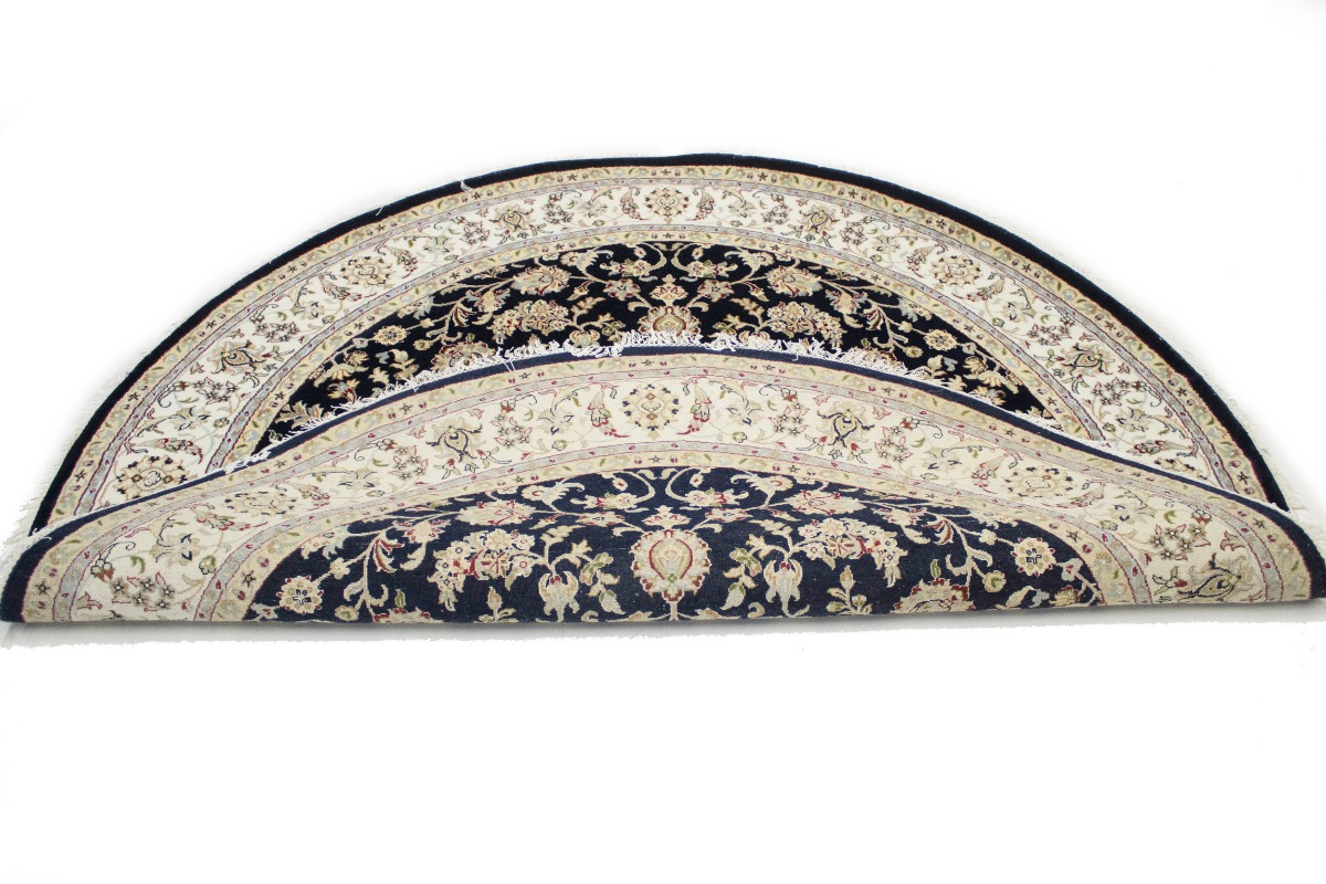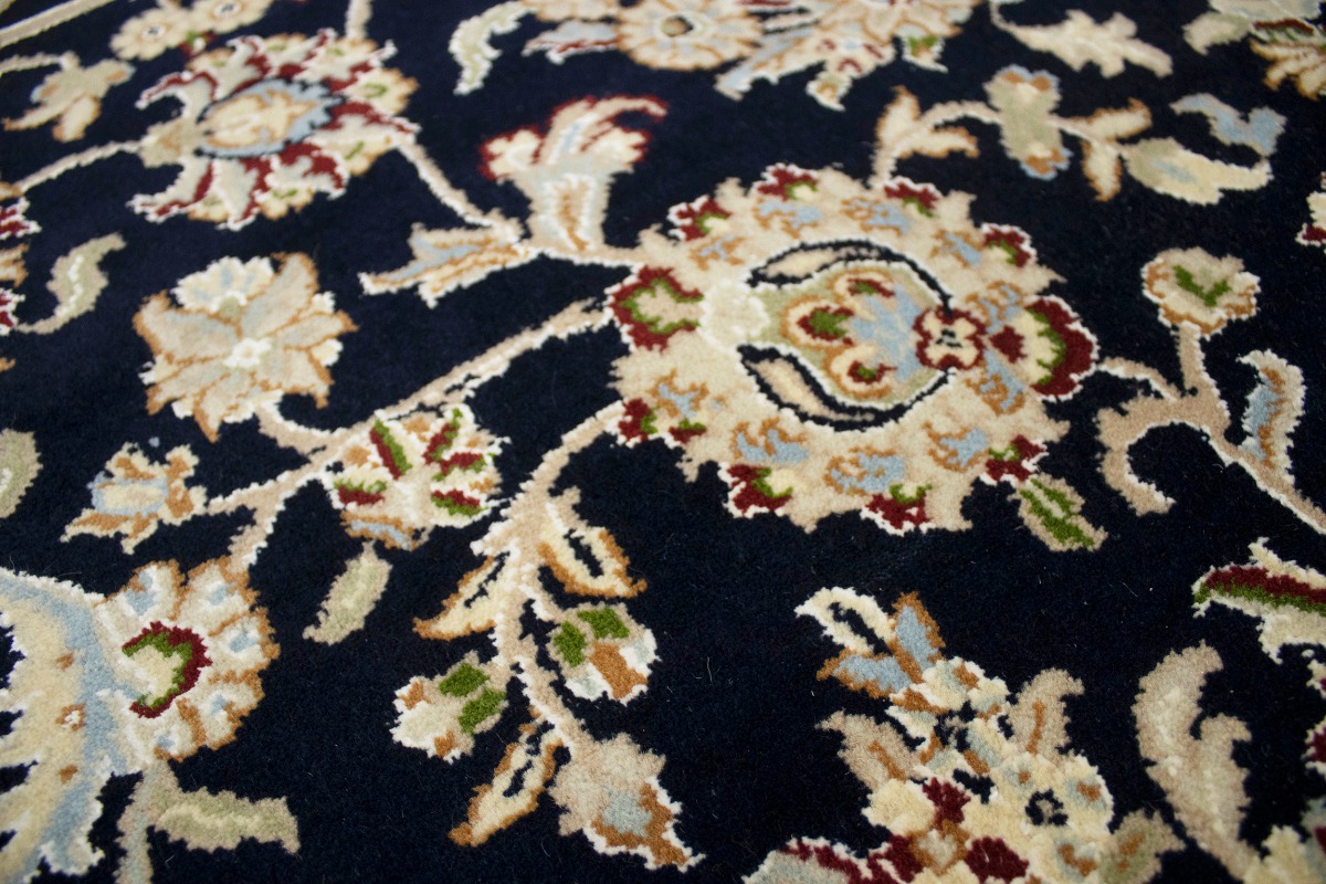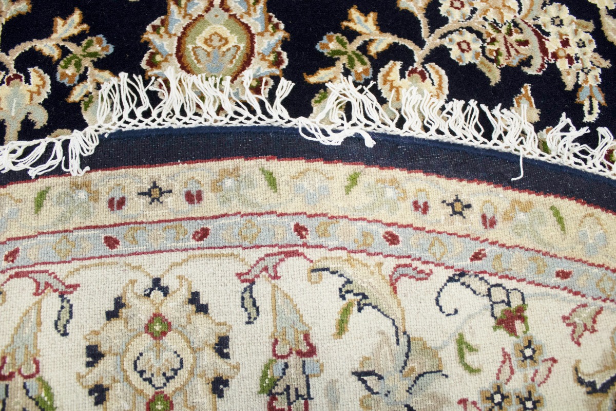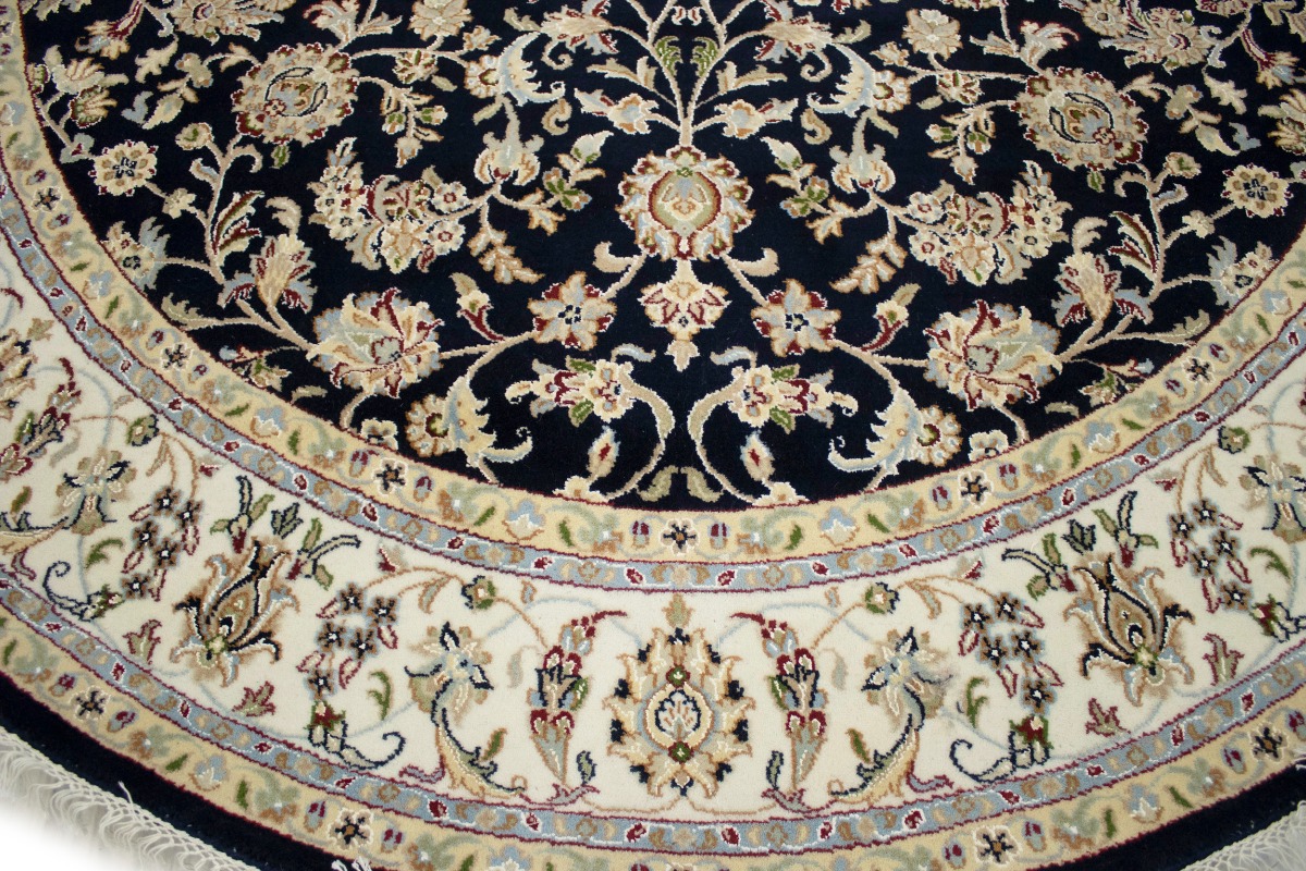 Dark Navy Floral 7X7 Indo-Nain Oriental Round Rug