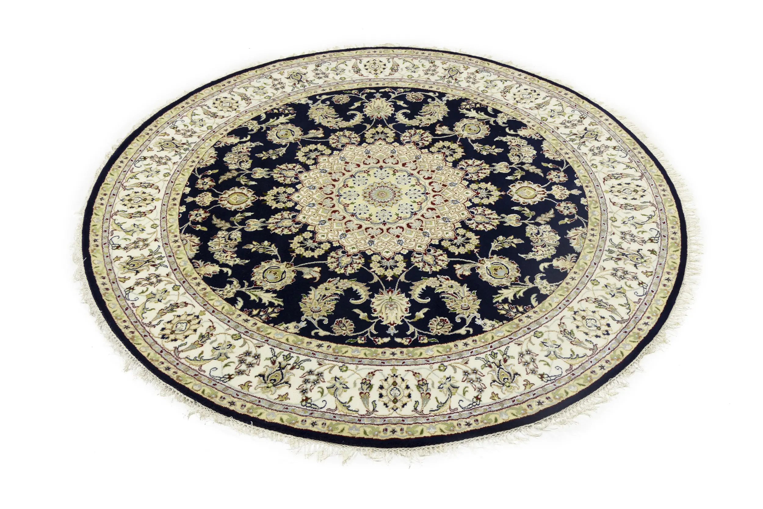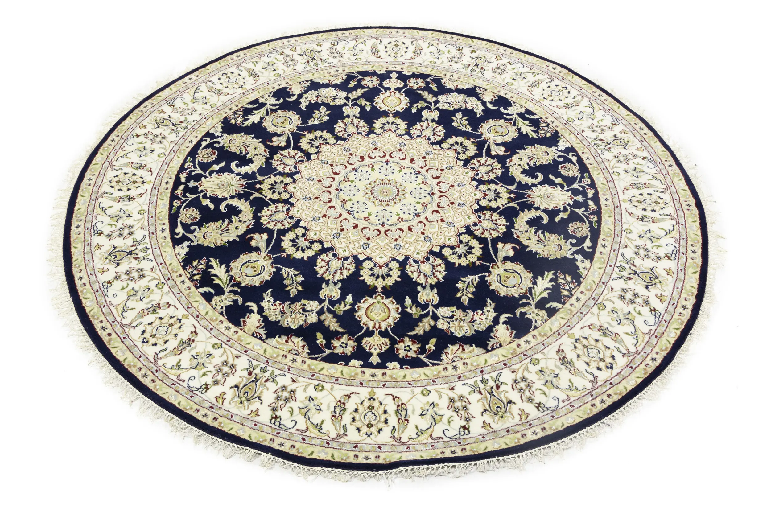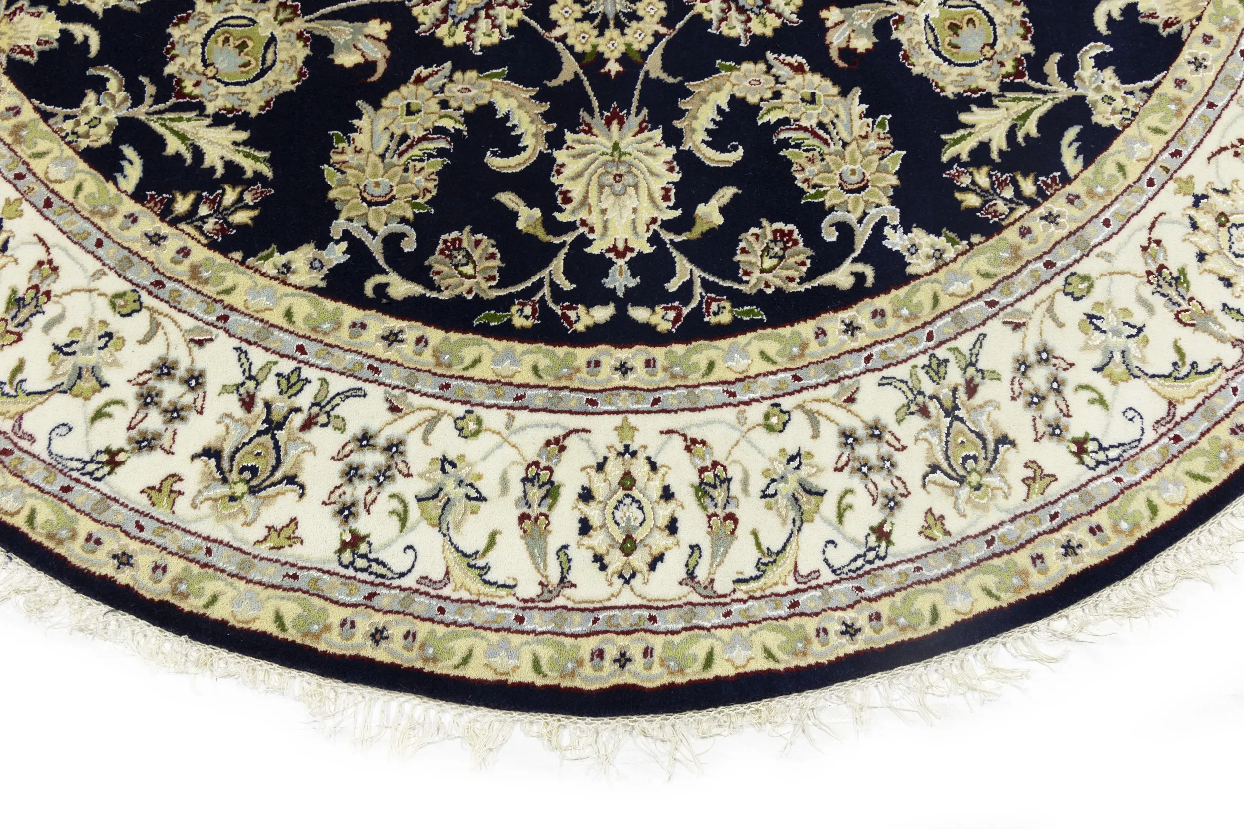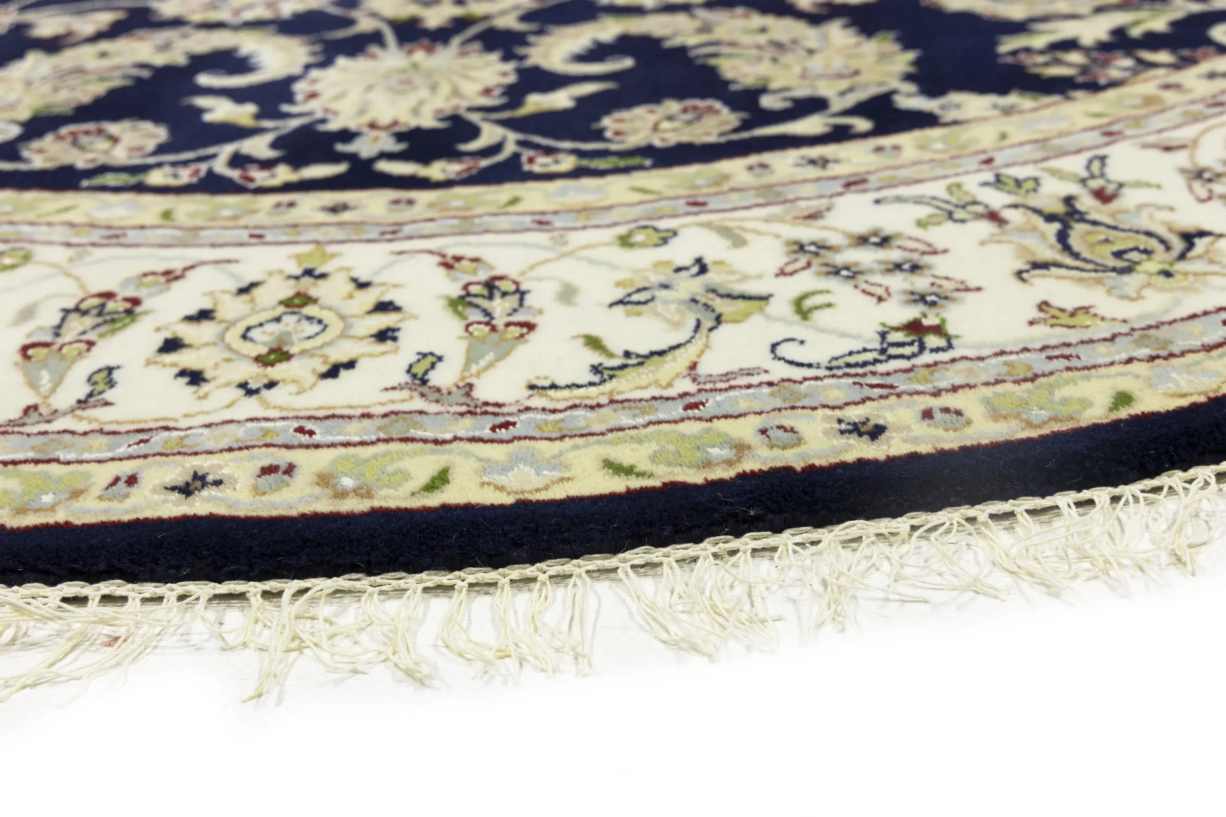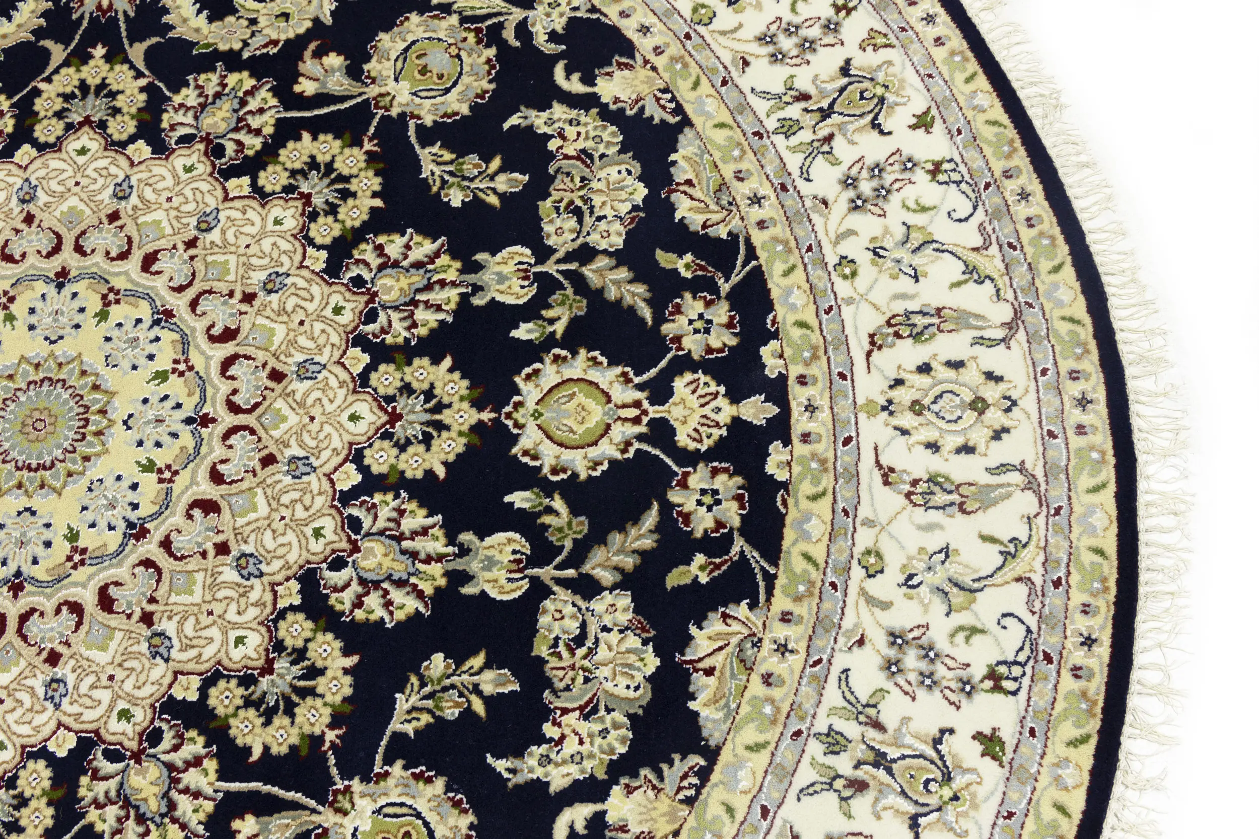 Dark Navy Floral 7X7 Indo-Nain Oriental Round Rug