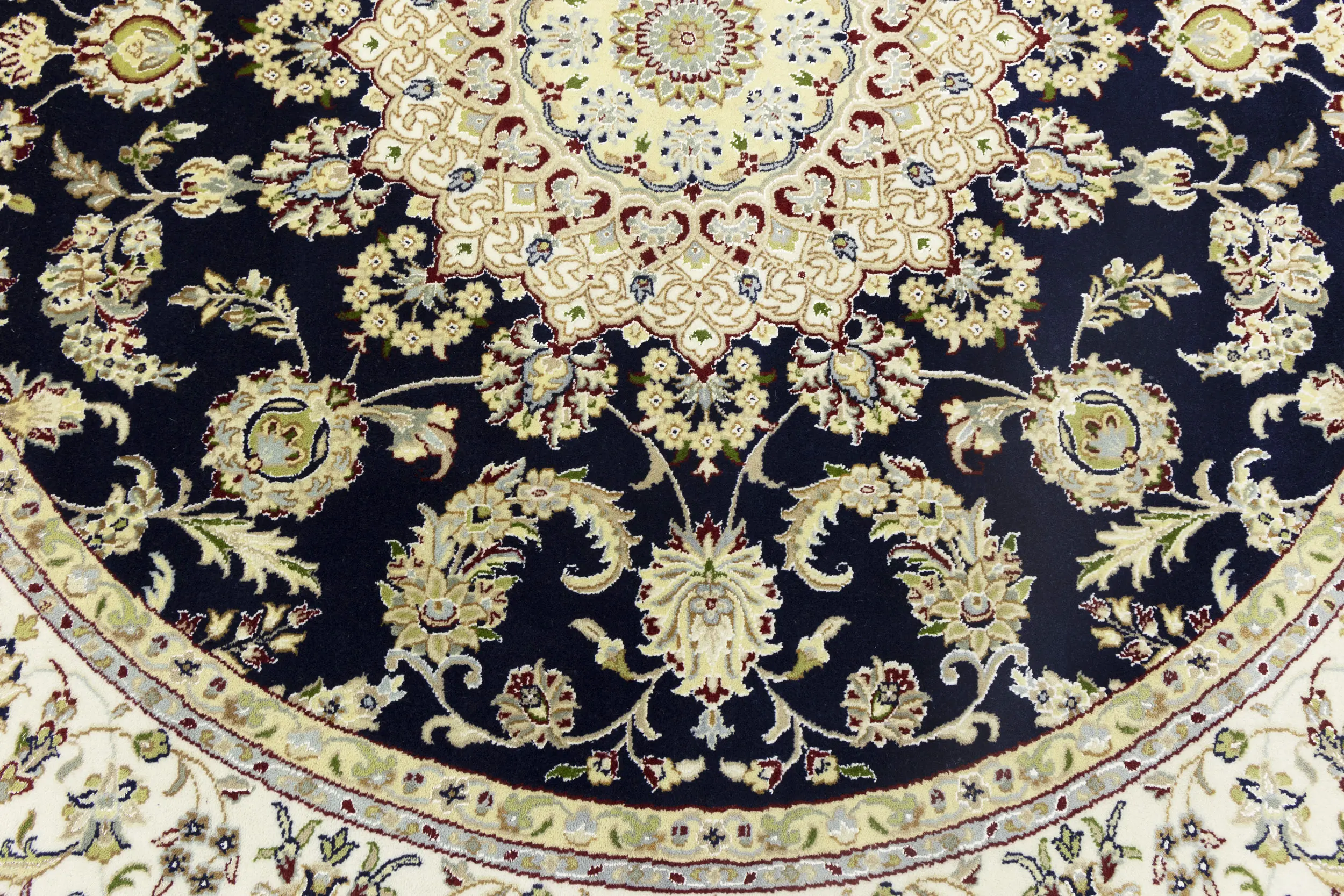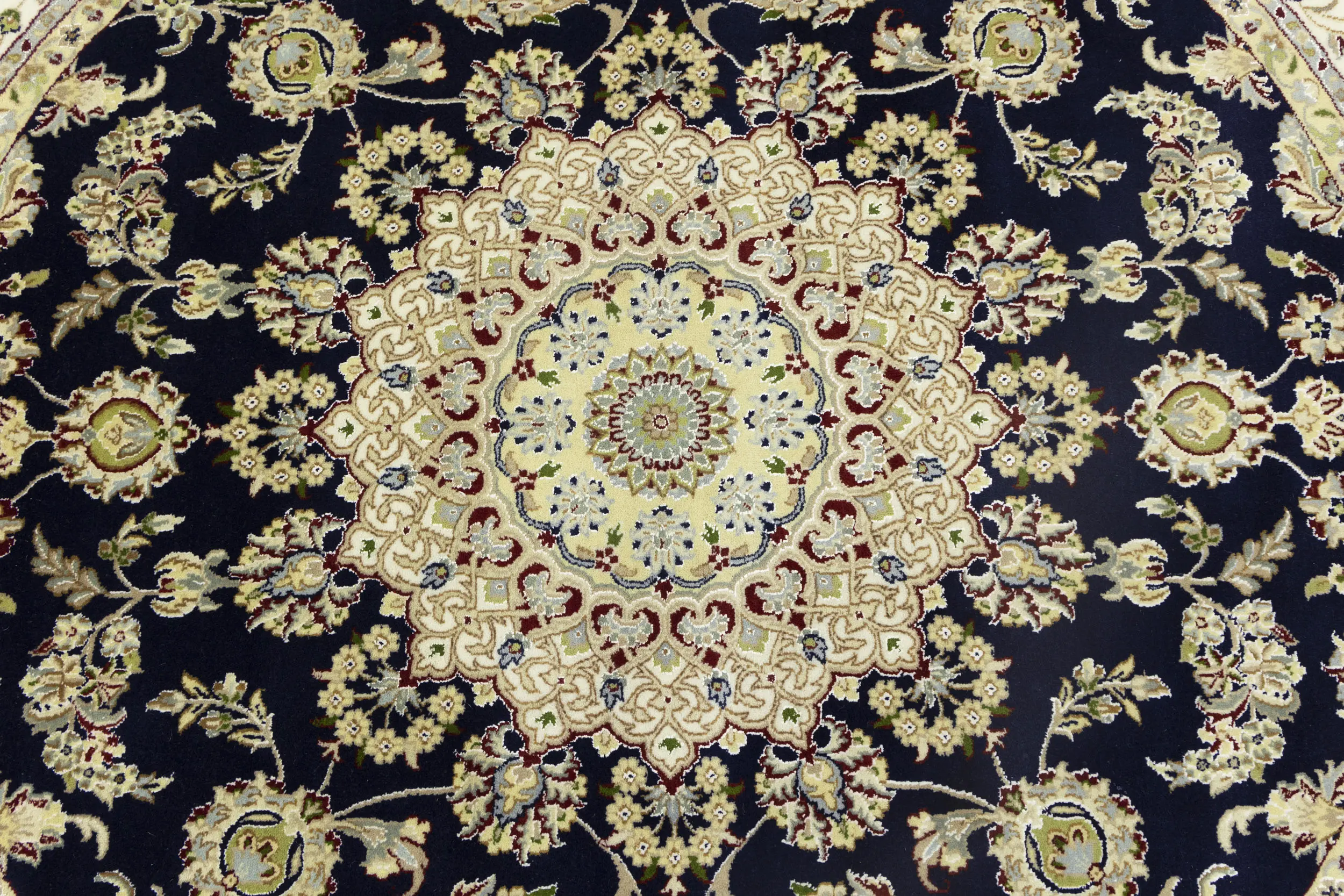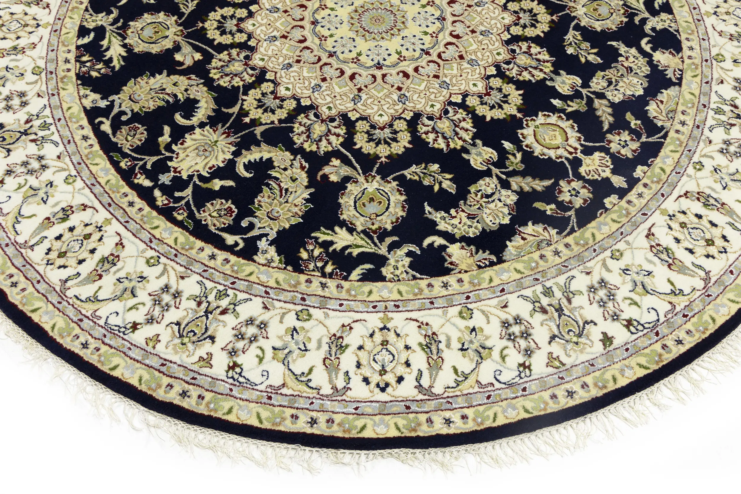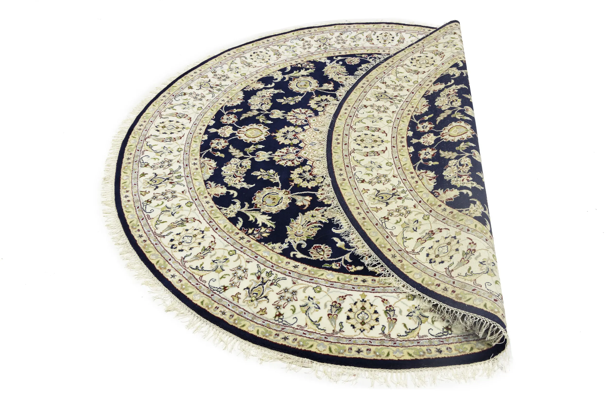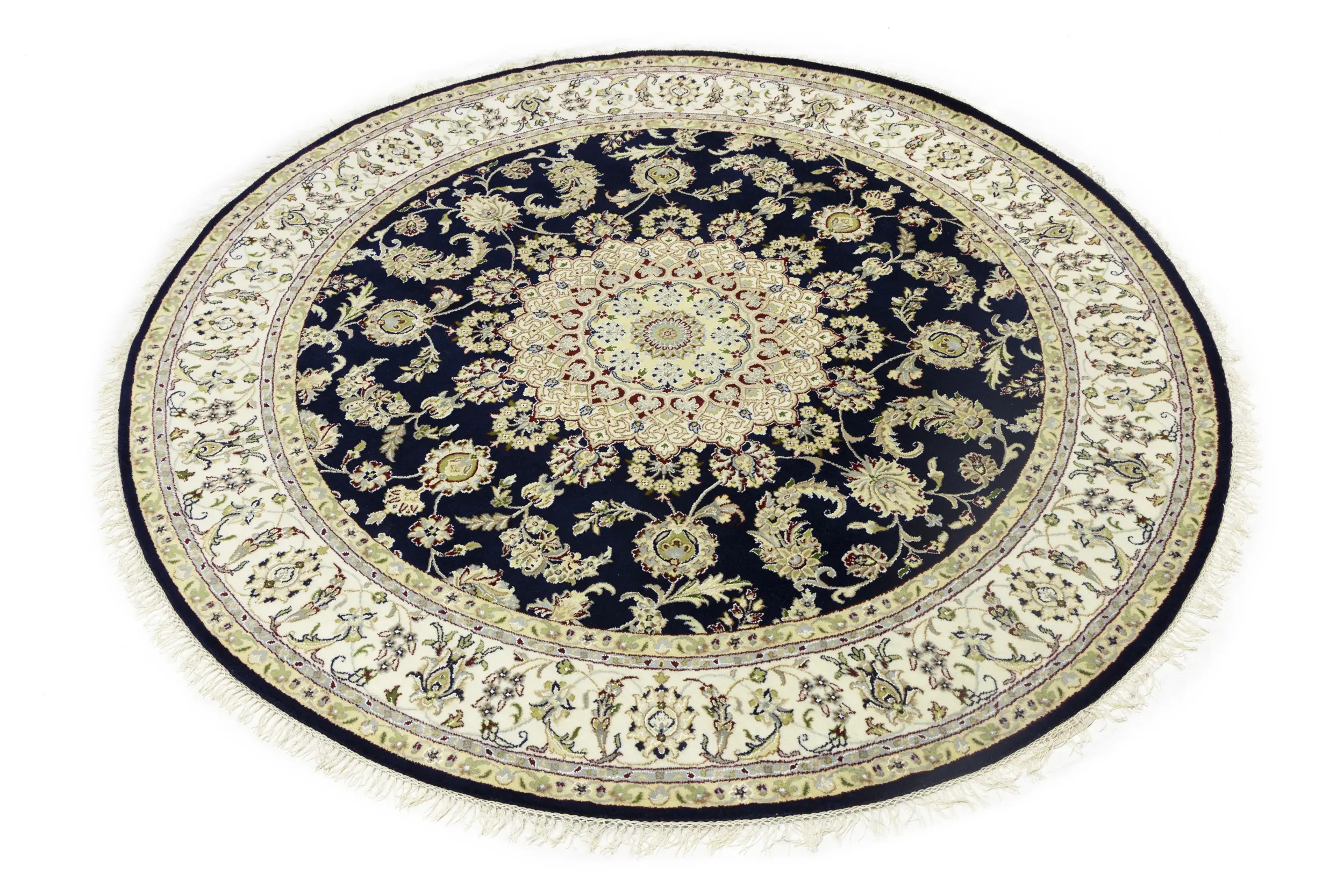 Dark Navy Floral 7X7 Indo-Nain Oriental Round Rug