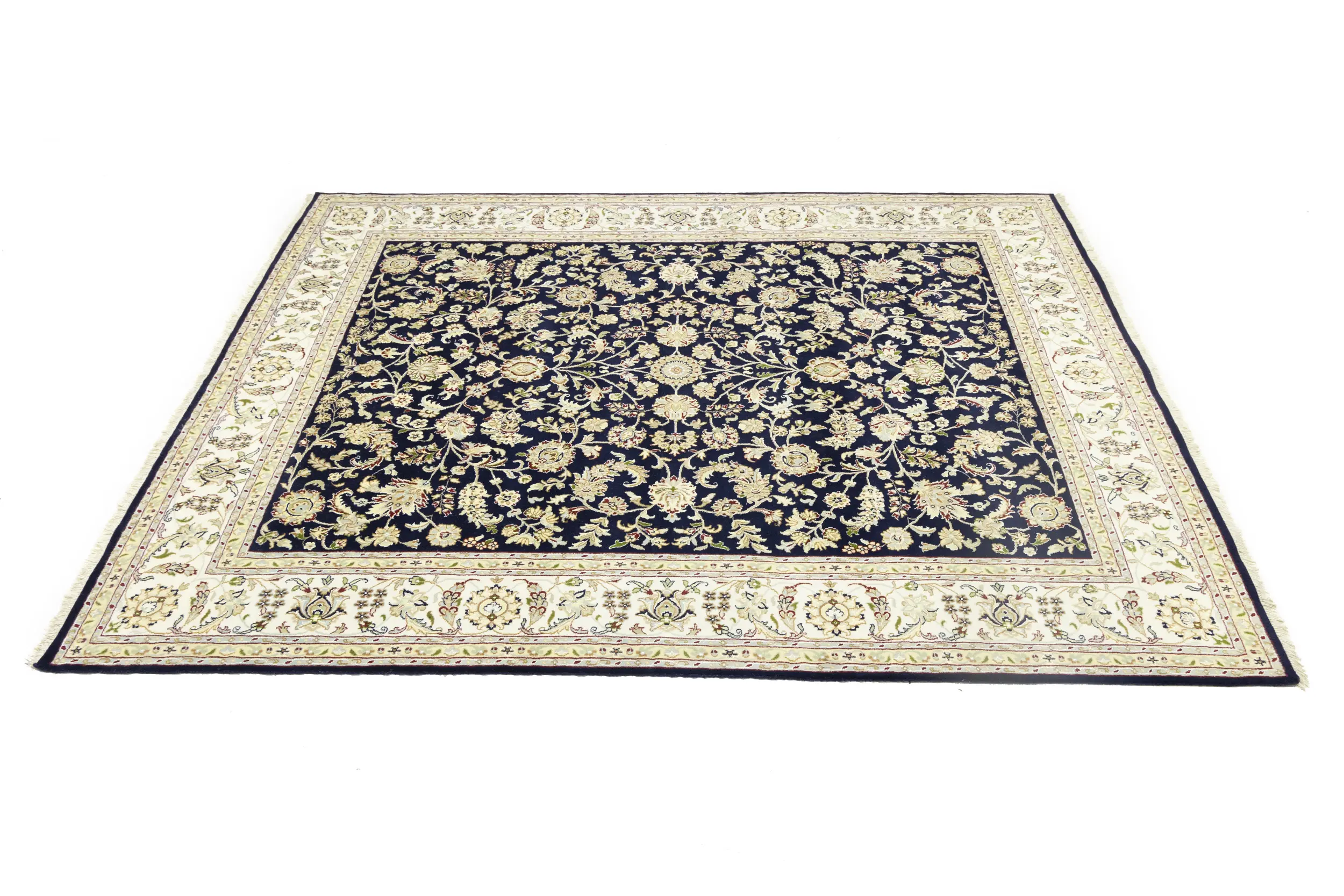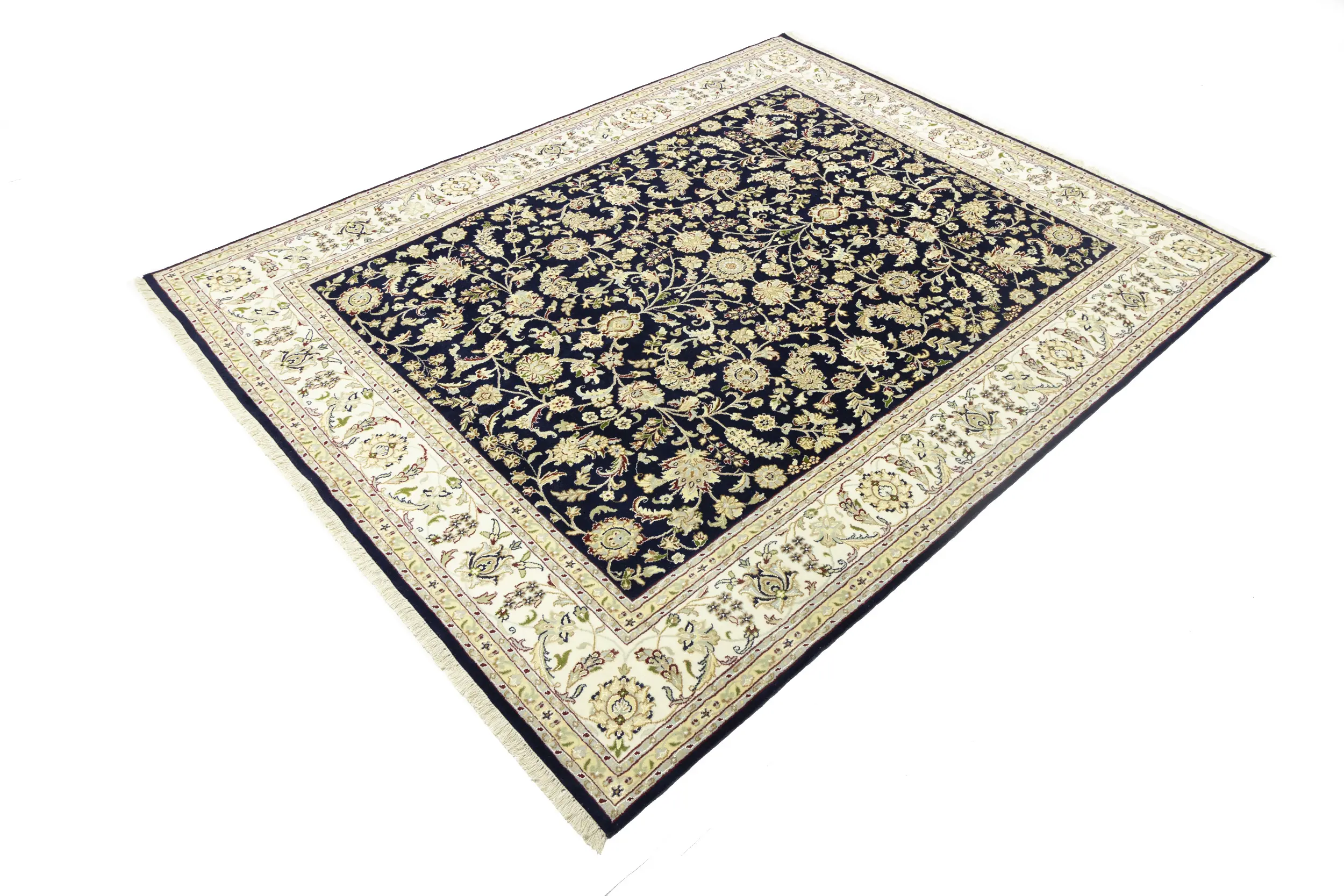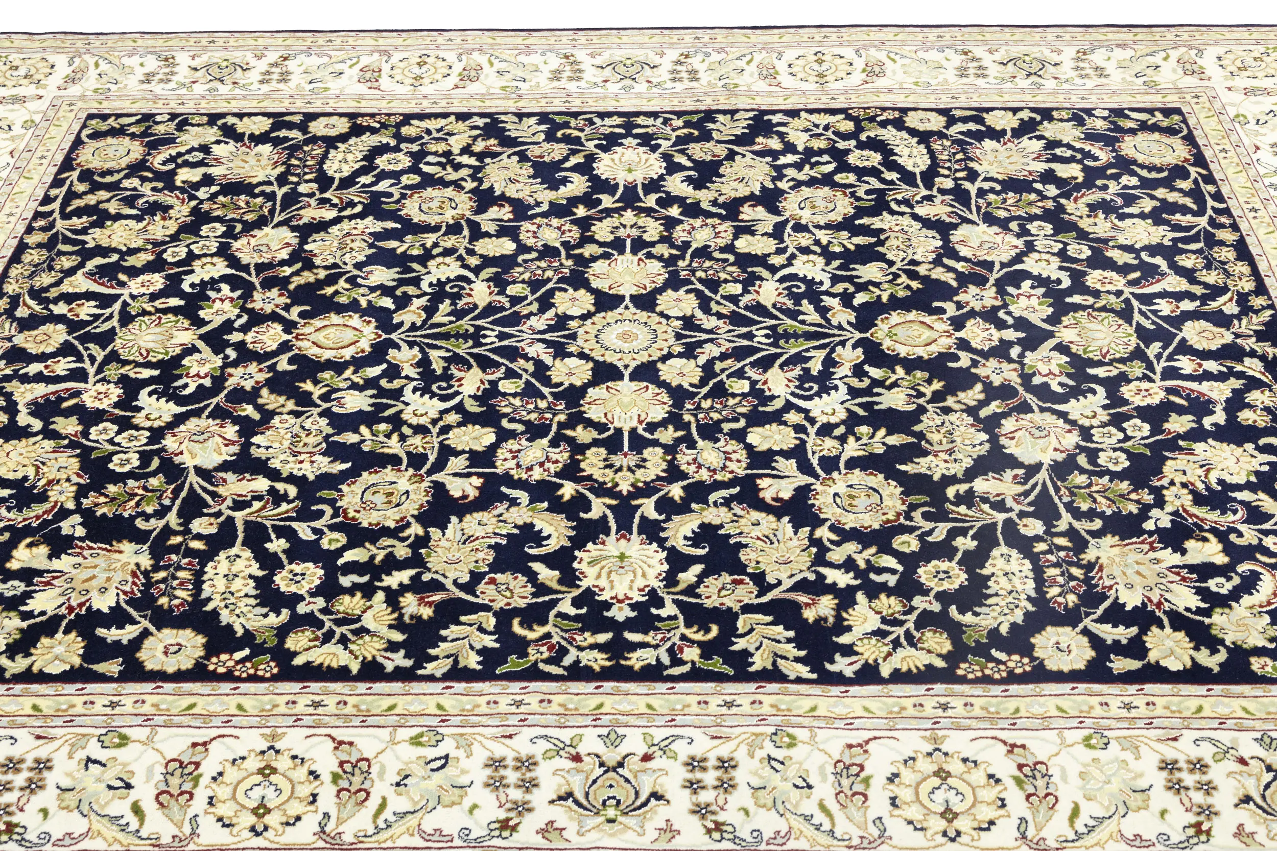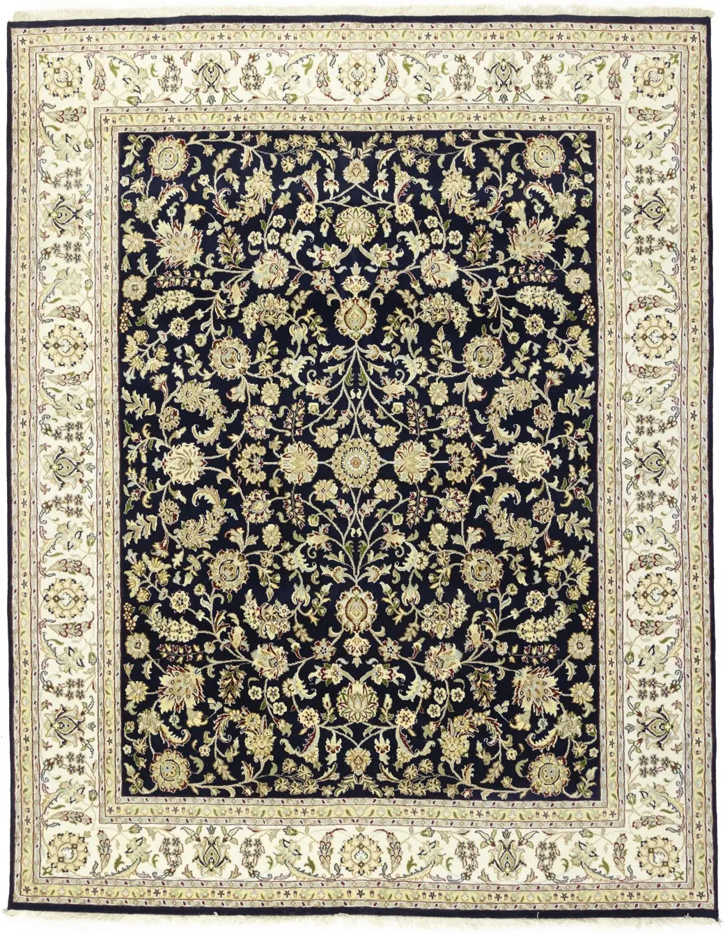 Dark Navy Floral 8X10 Indo-Nain Oriental Rug