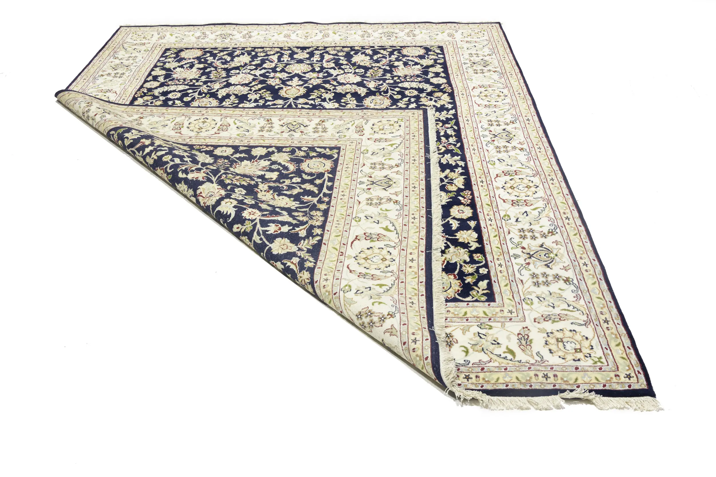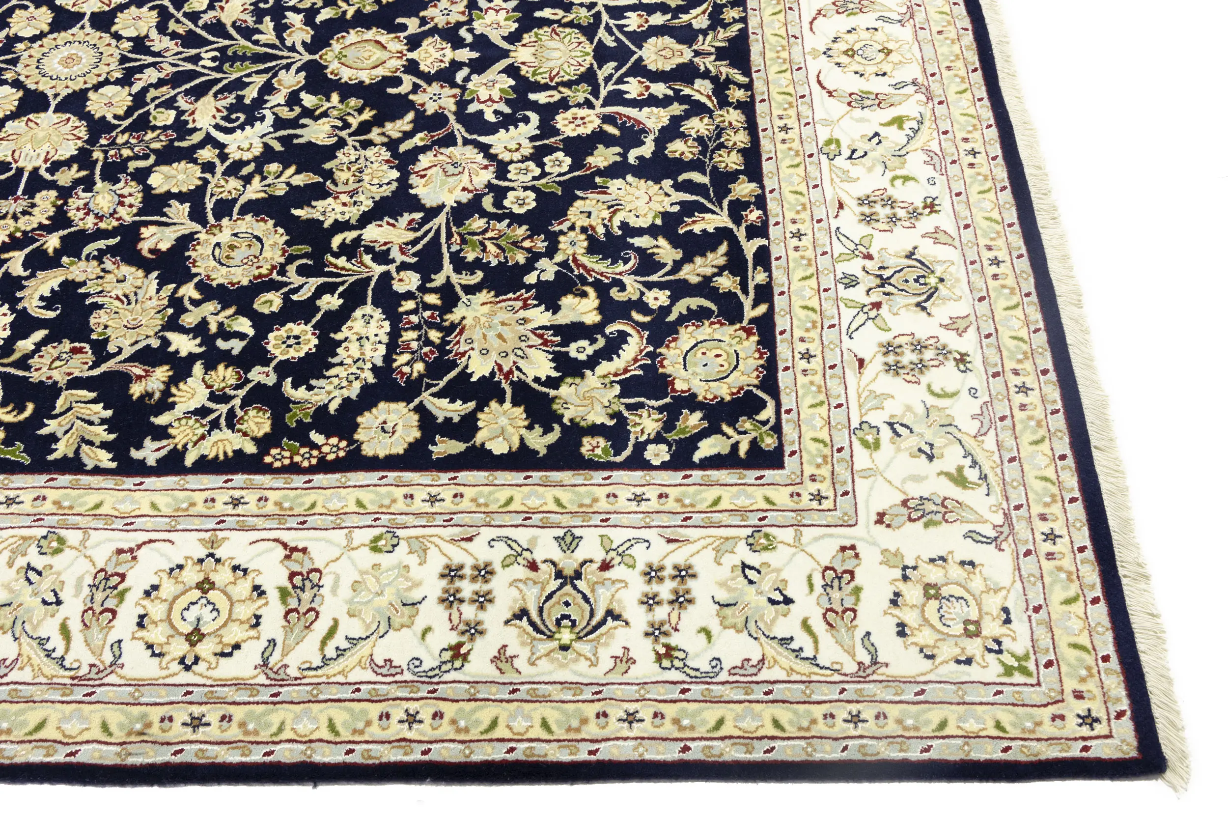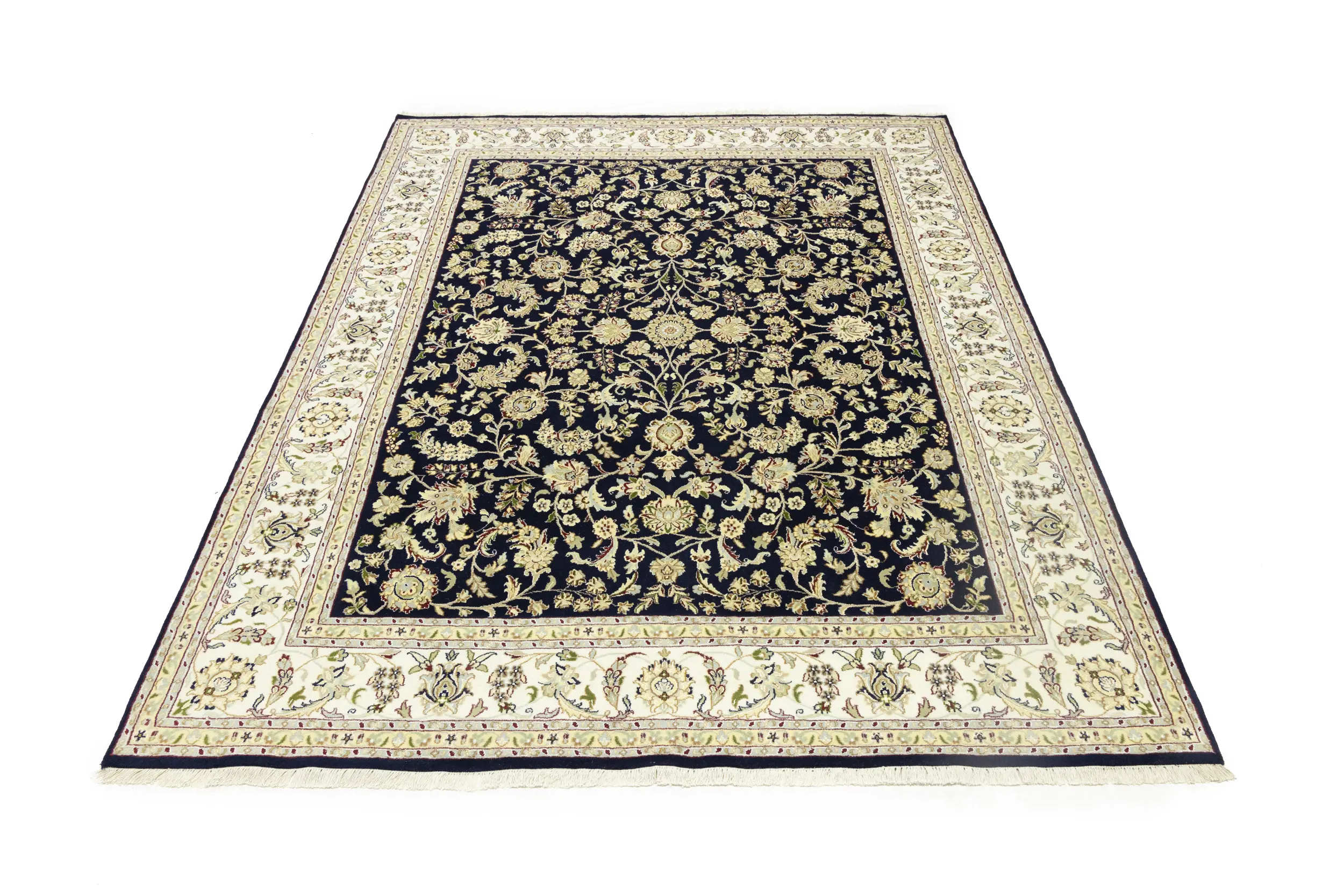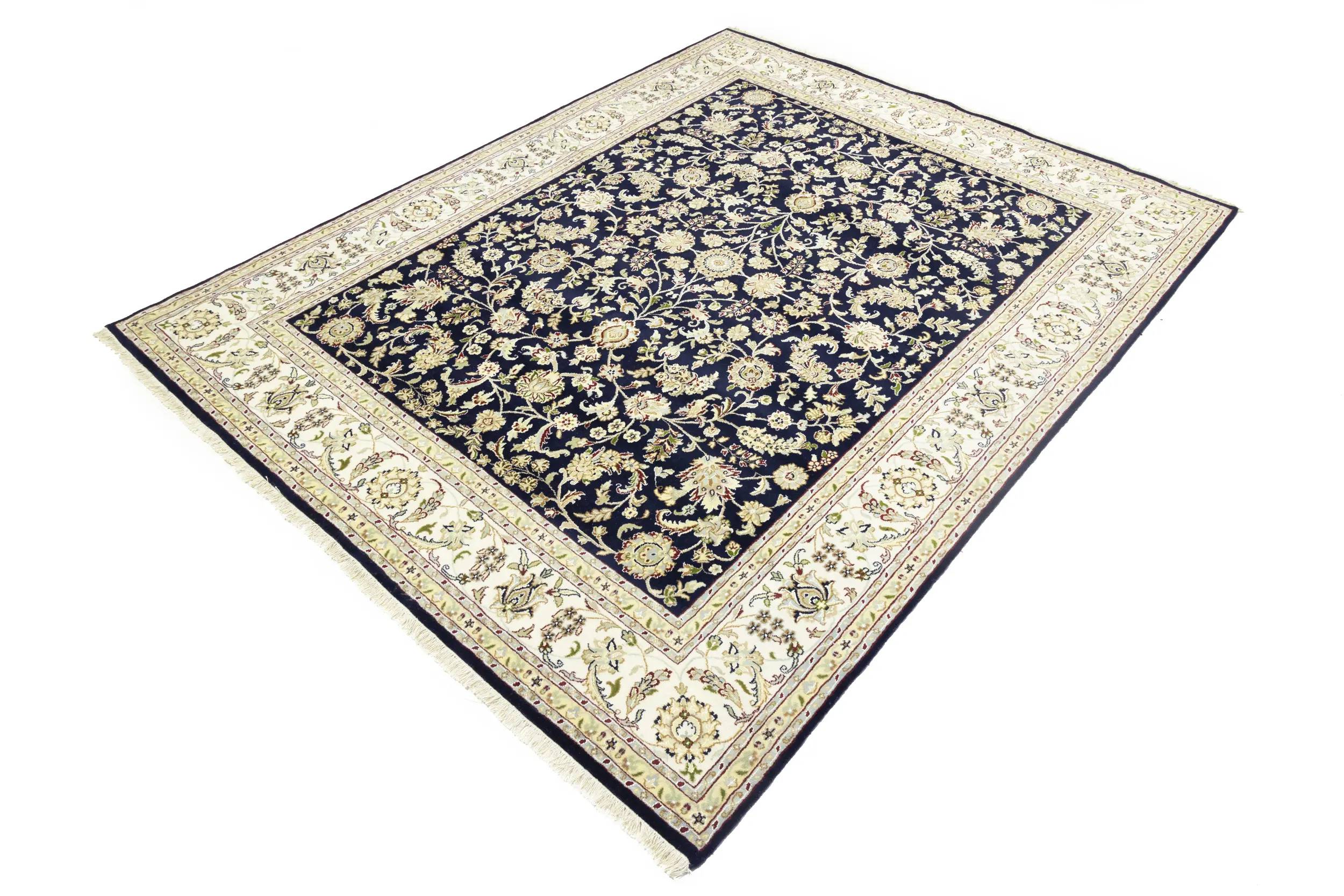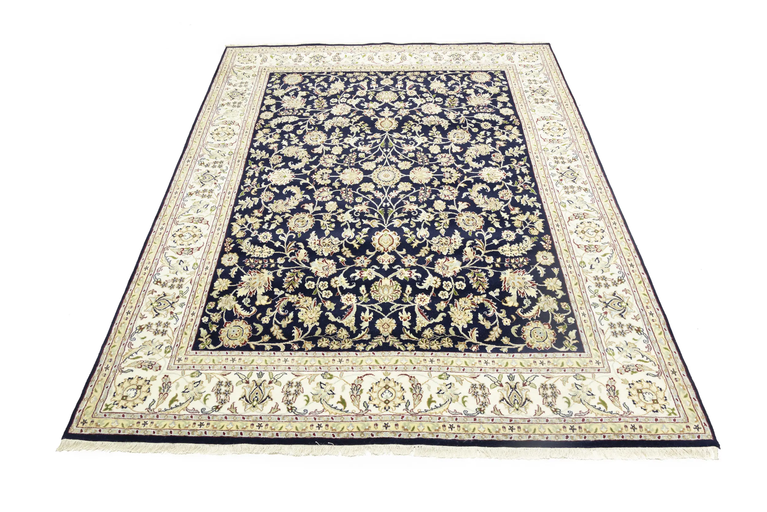 Dark Navy Floral 8X10 Indo-Nain Oriental Rug