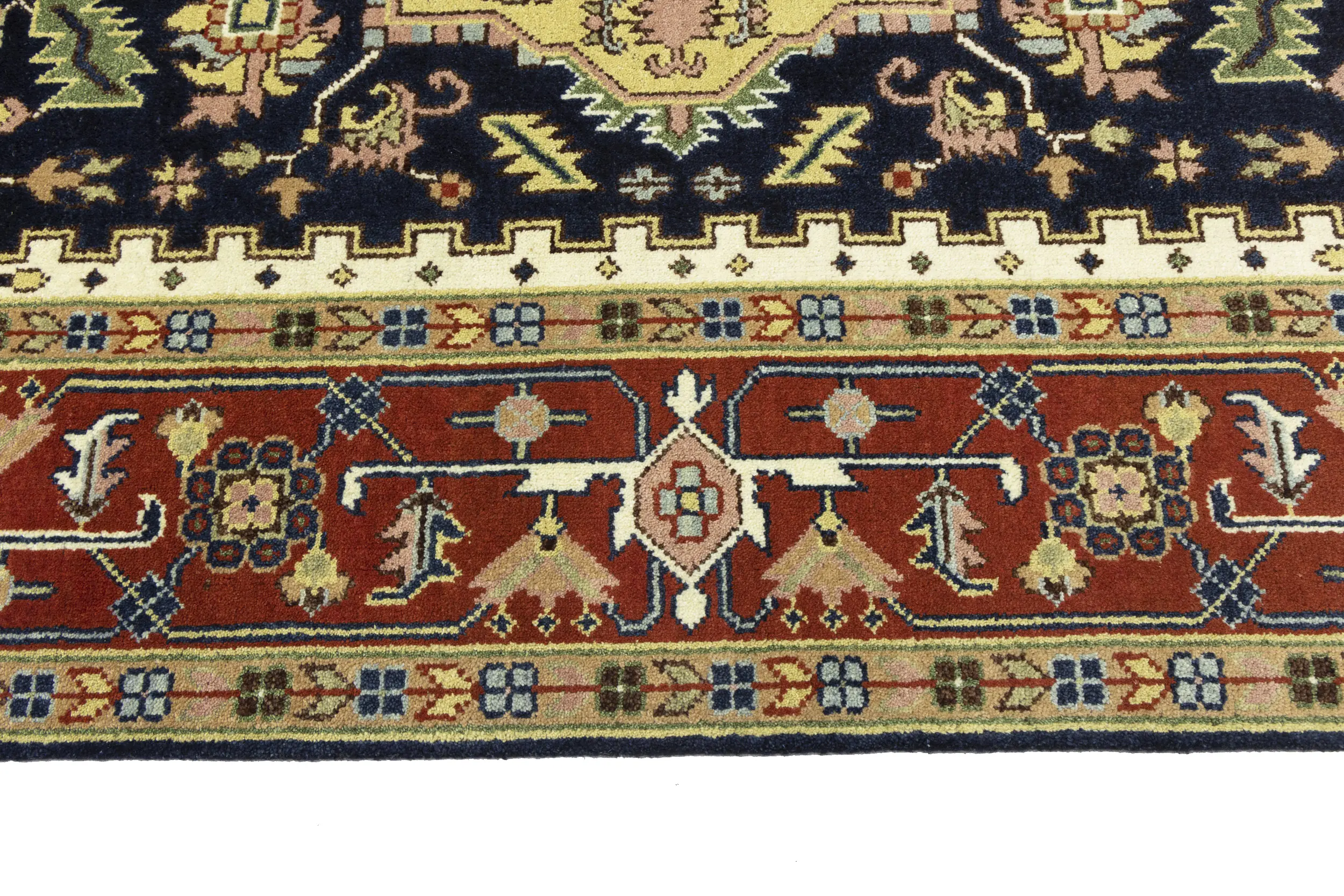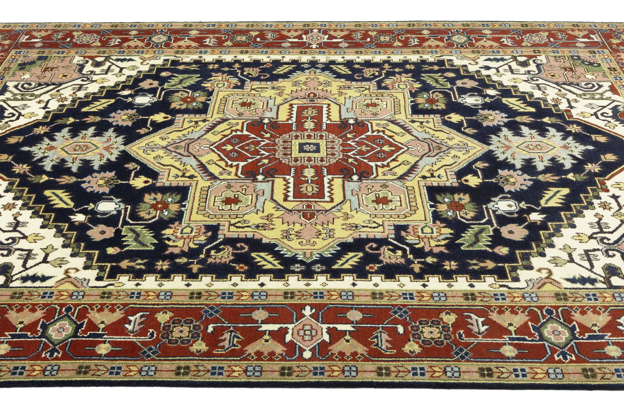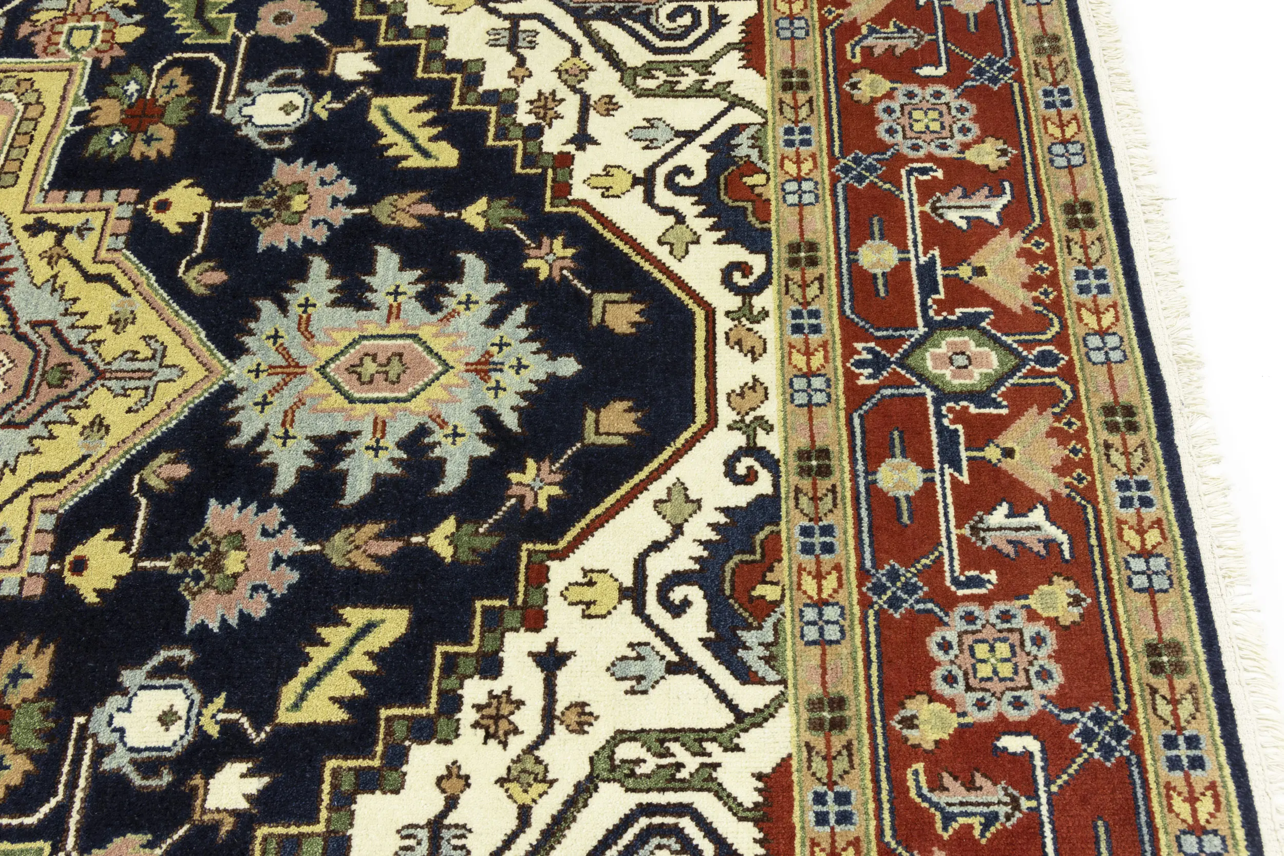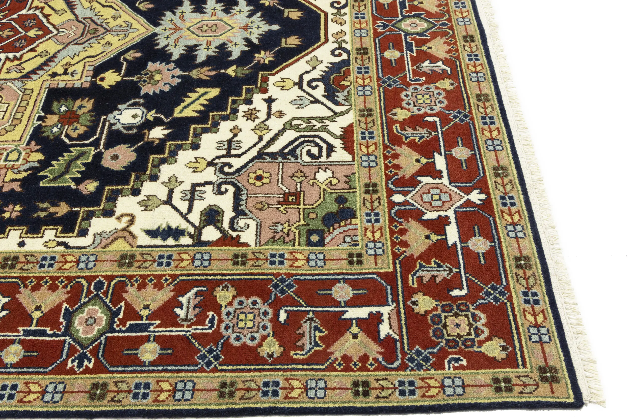 Dark Navy Floral 9X12 Heriz Serapi Oriental Rug