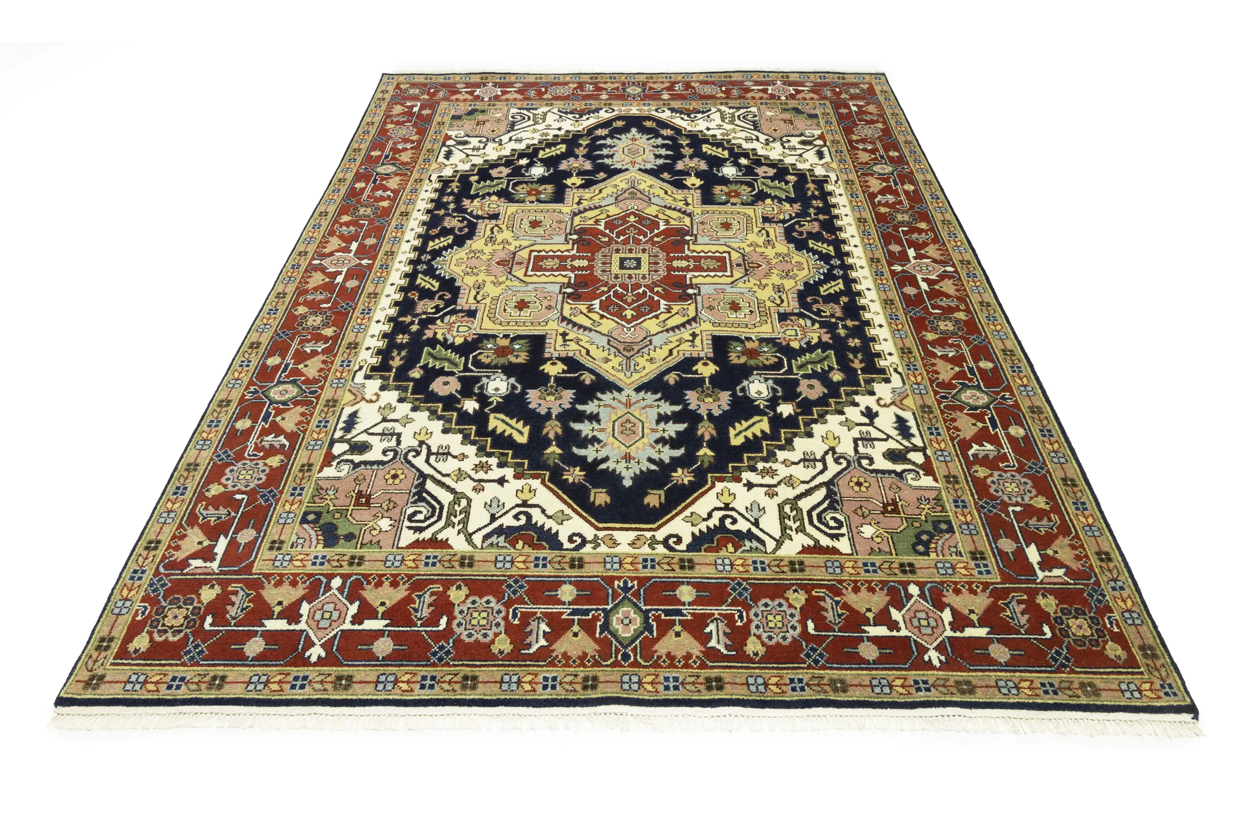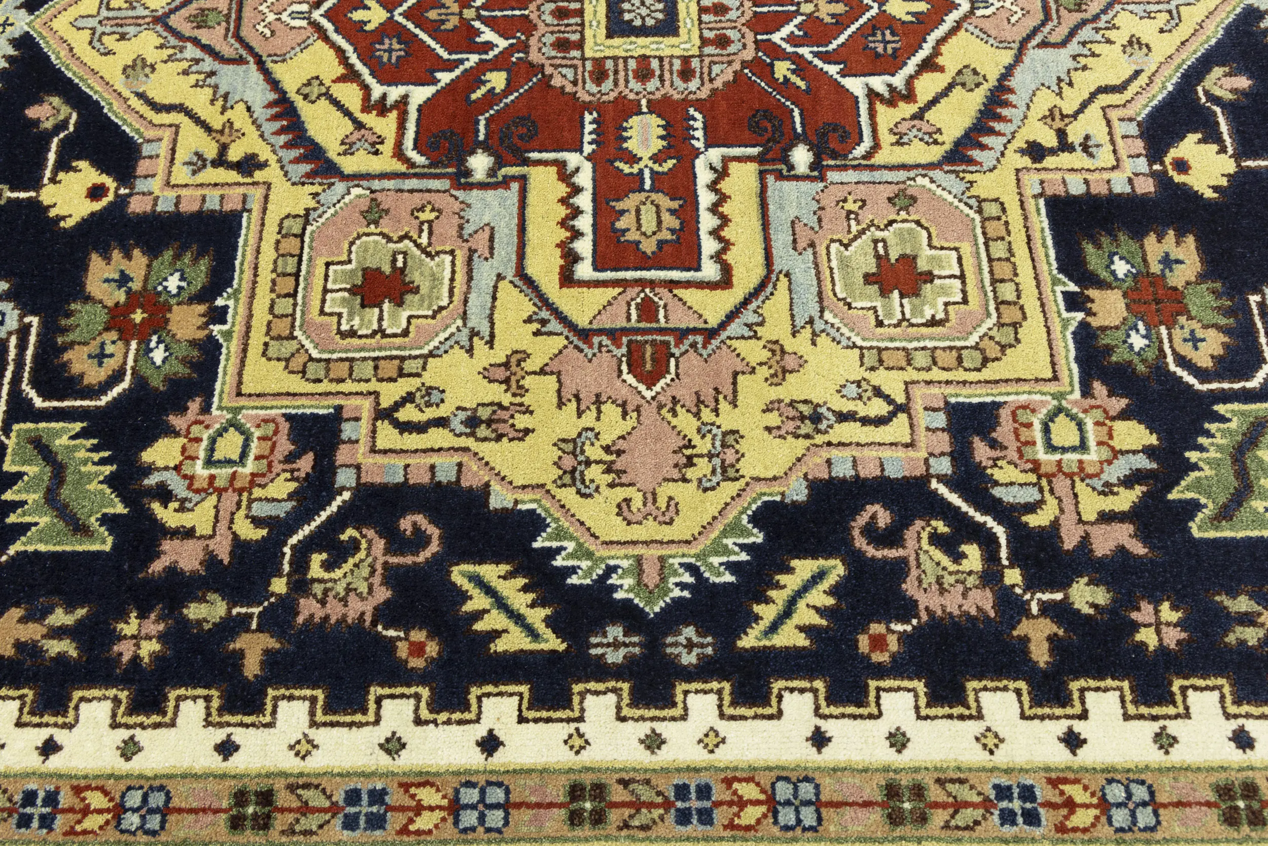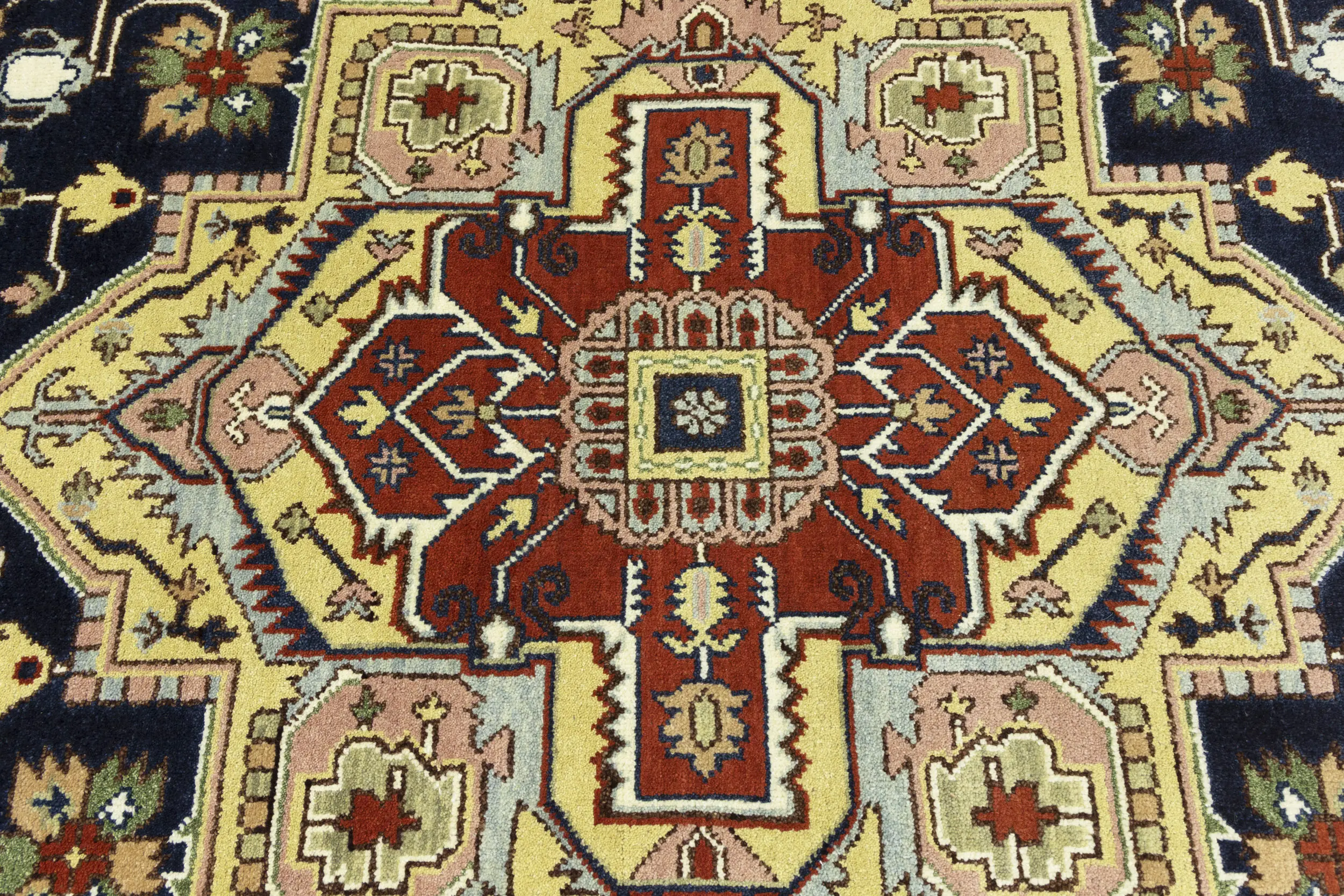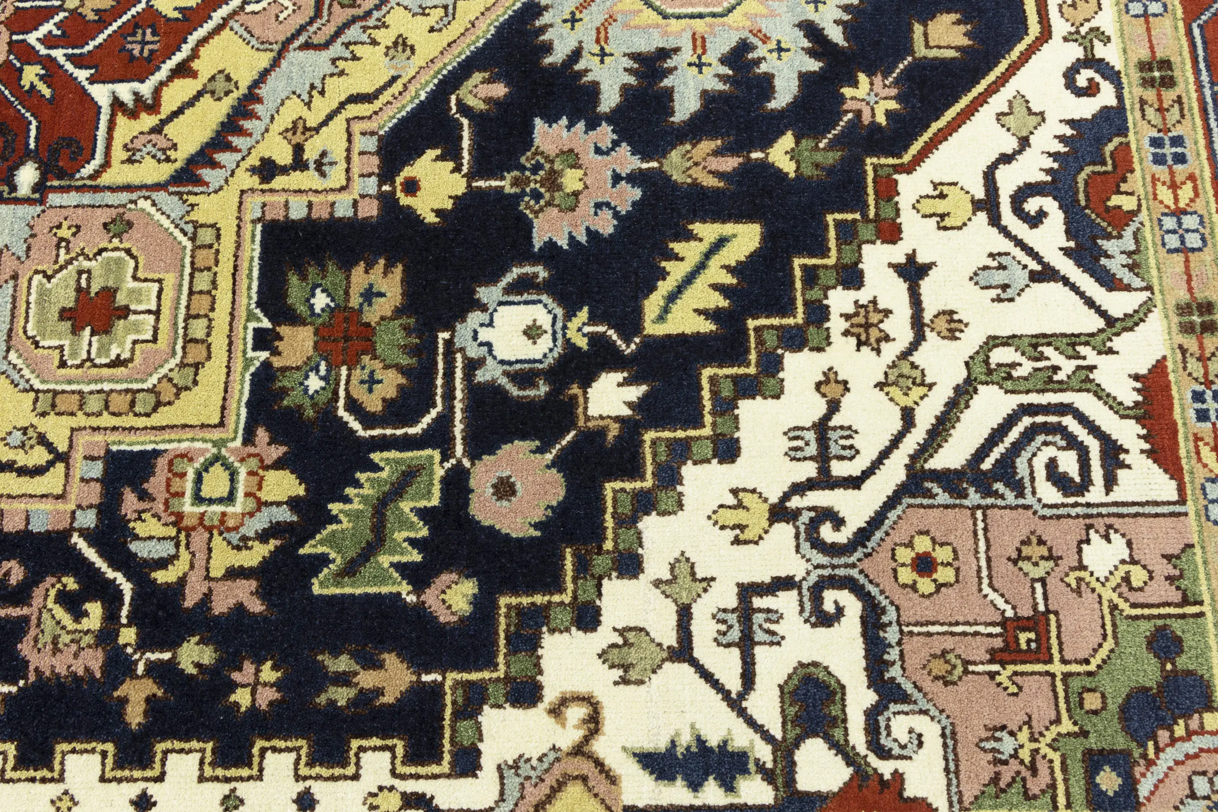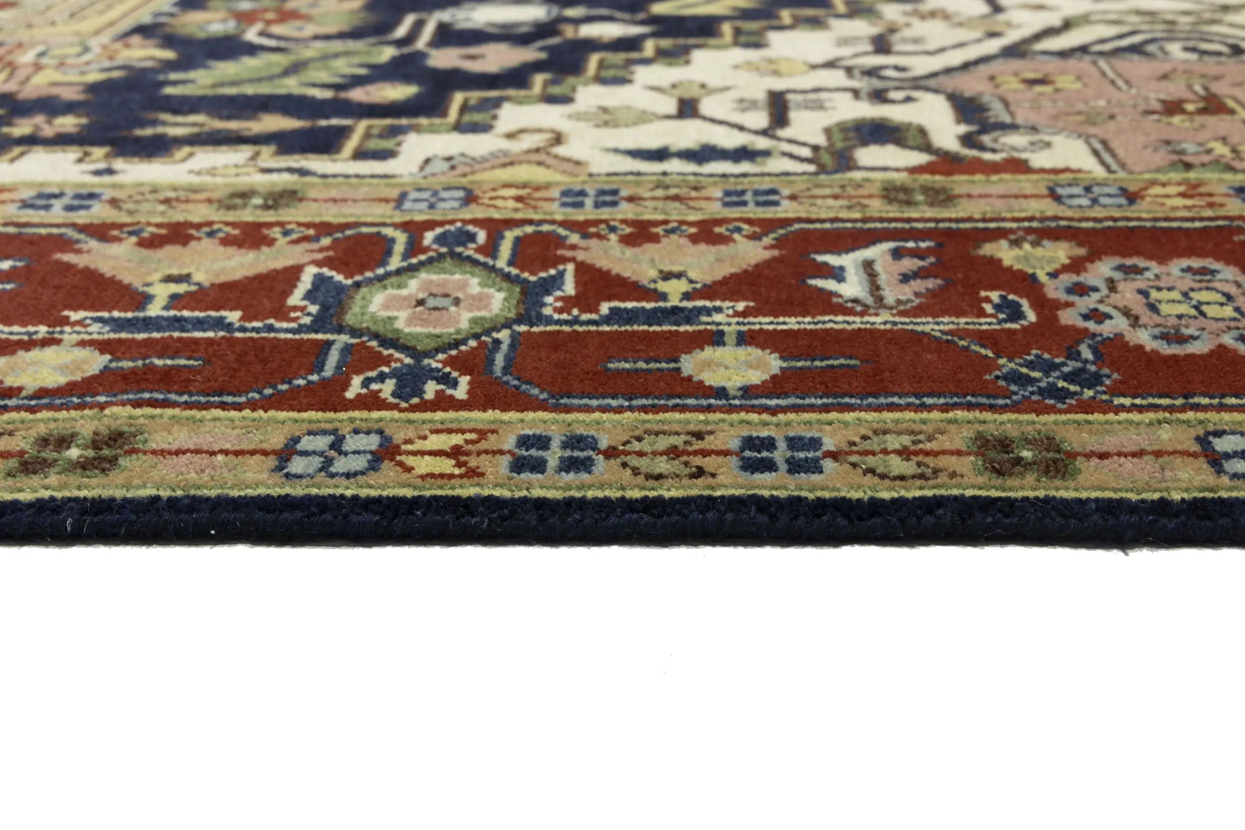 Dark Navy Floral 9X12 Heriz Serapi Oriental Rug