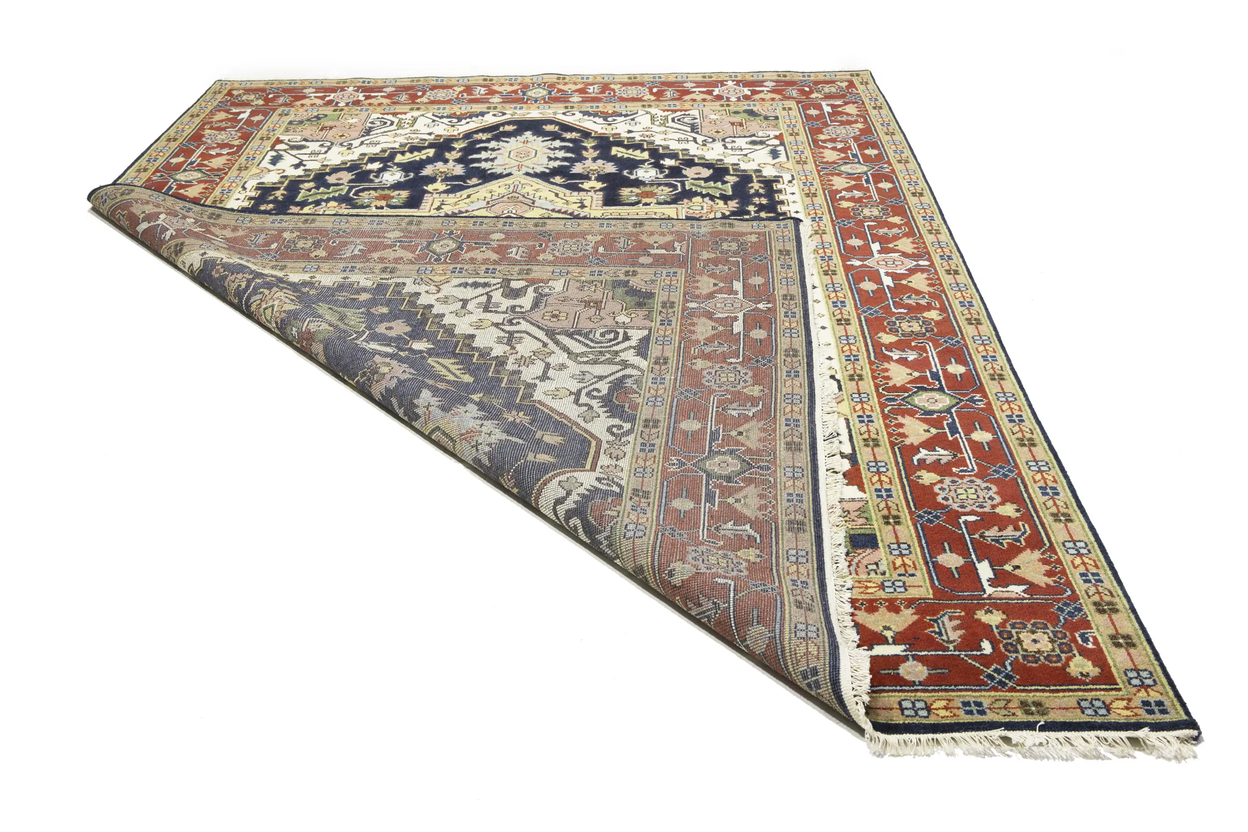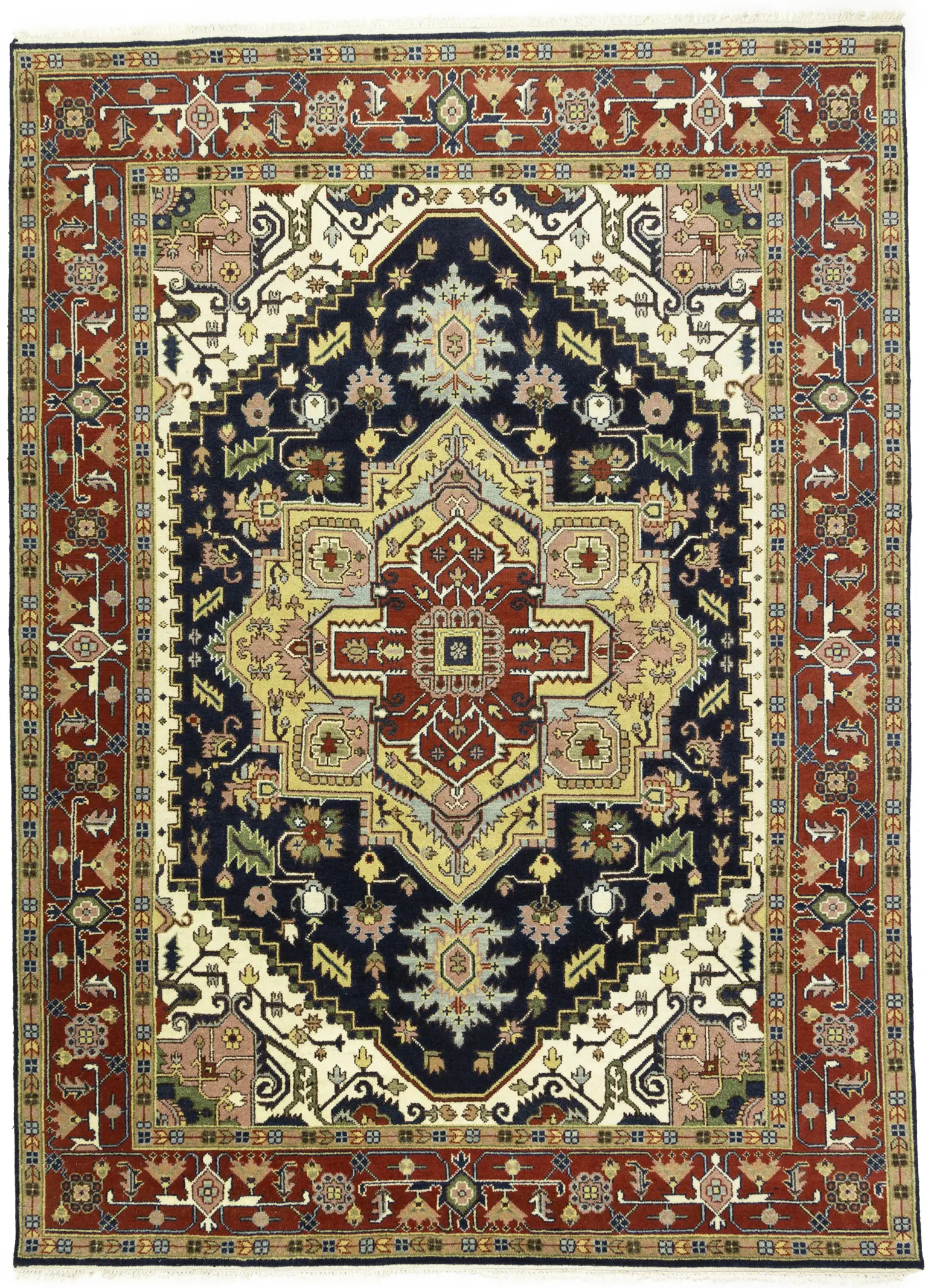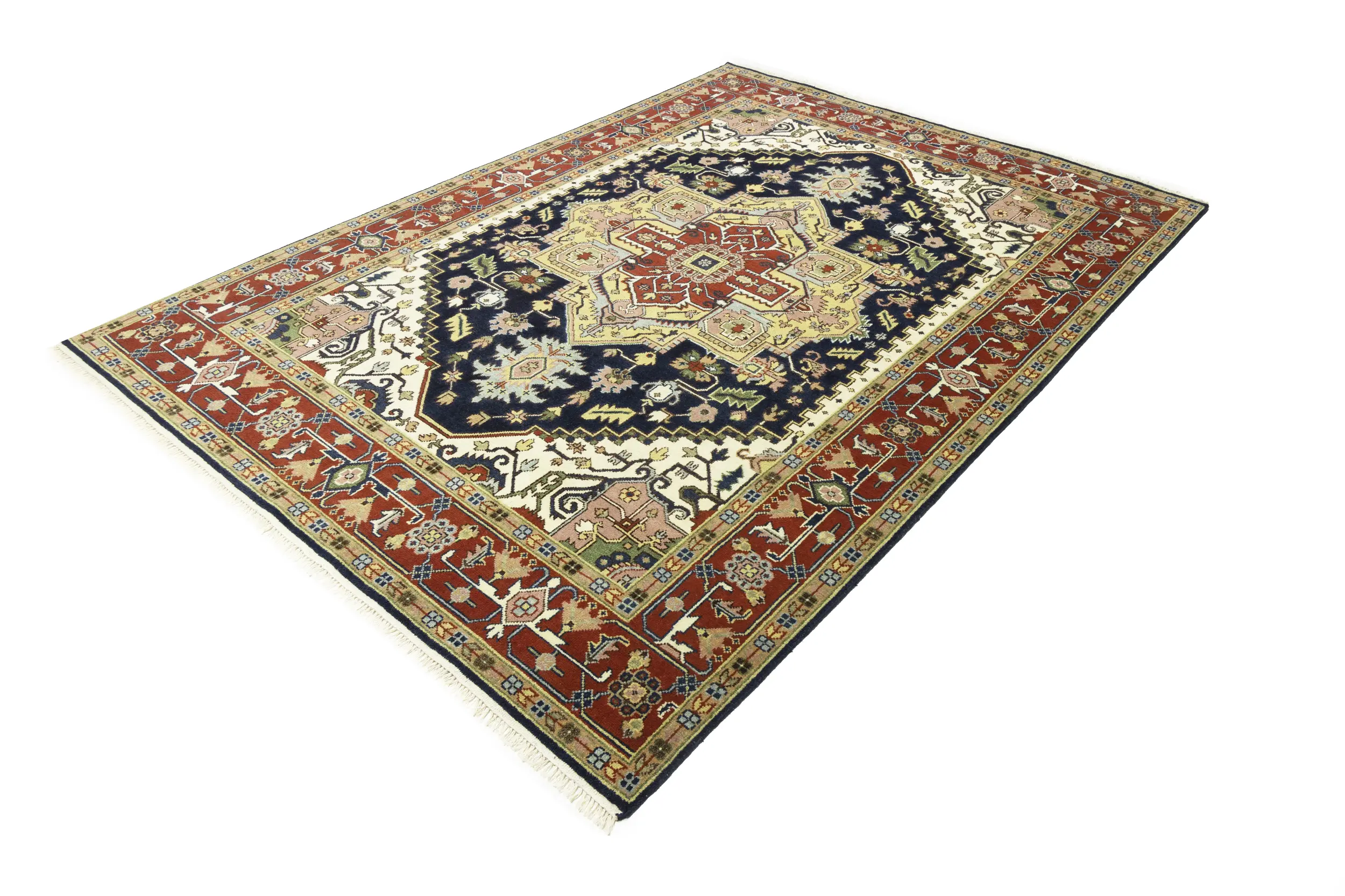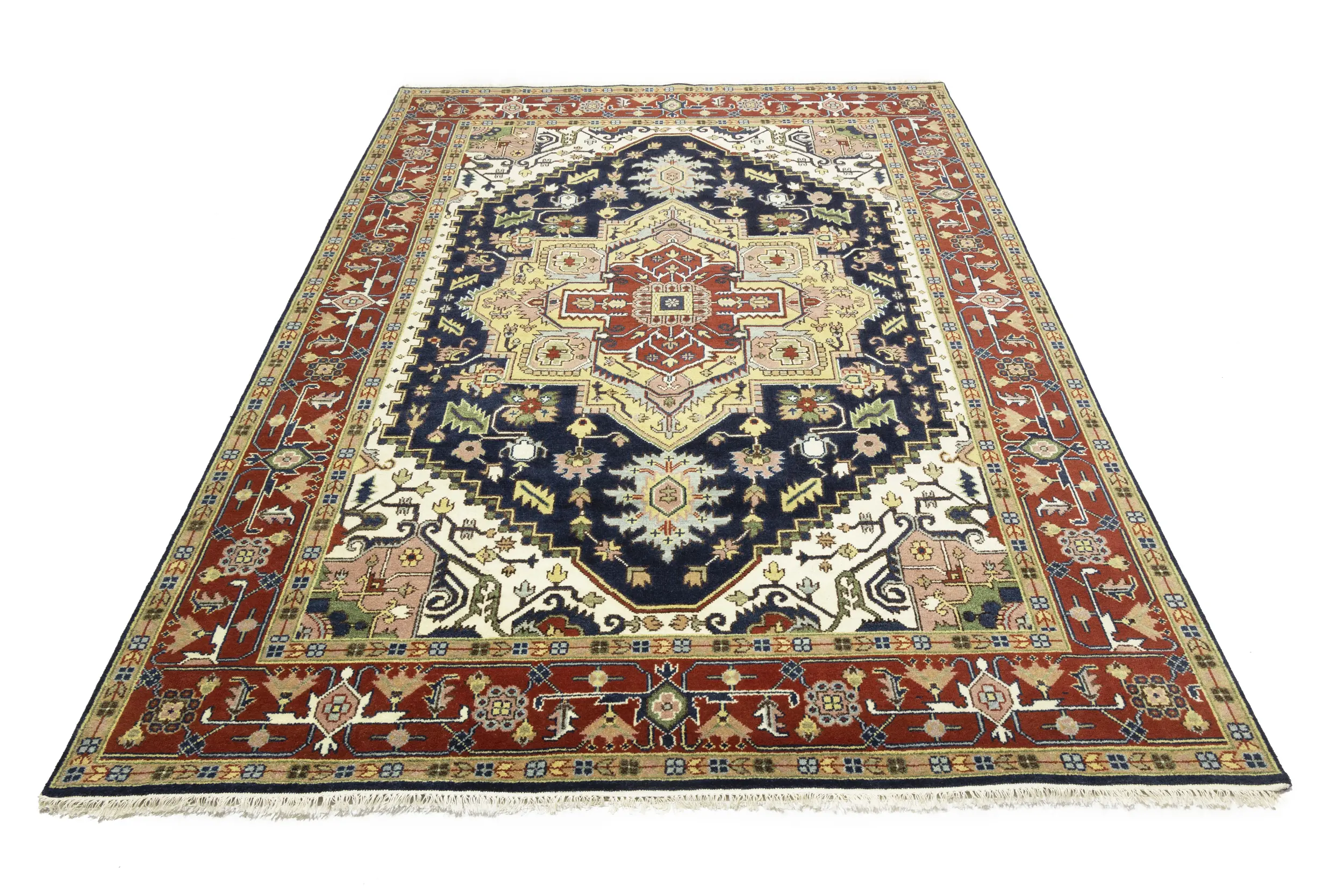 Dark Navy Floral 9X12 Heriz Serapi Oriental Rug