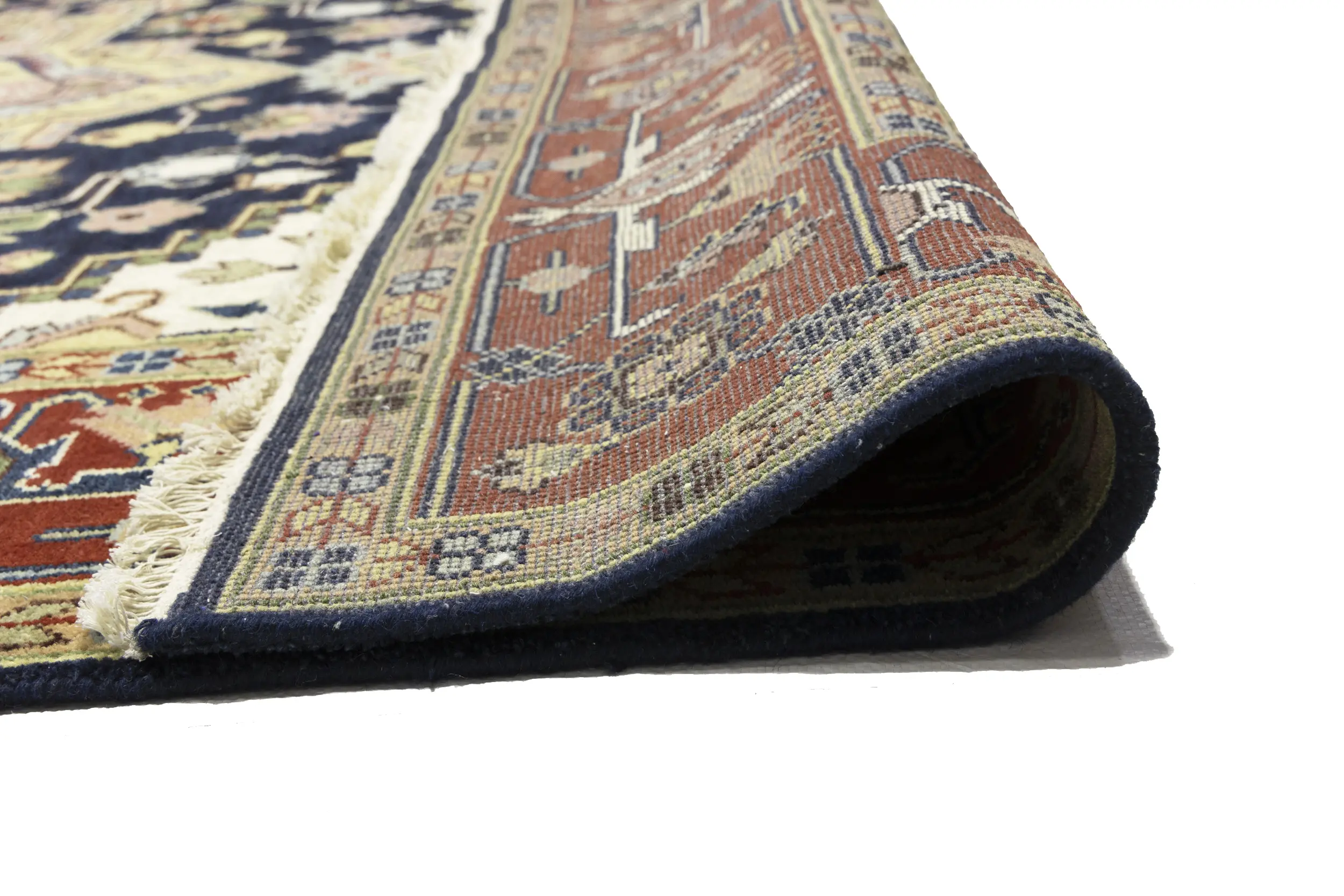 Handmade 9X12 blue Oriental rug made with vegetable dyes (fine wool pile and cotton foundation), superior knot count, and appealing ancient designs. This Oriental rug/runner never will go out of style and would be among your most valuable treasures.