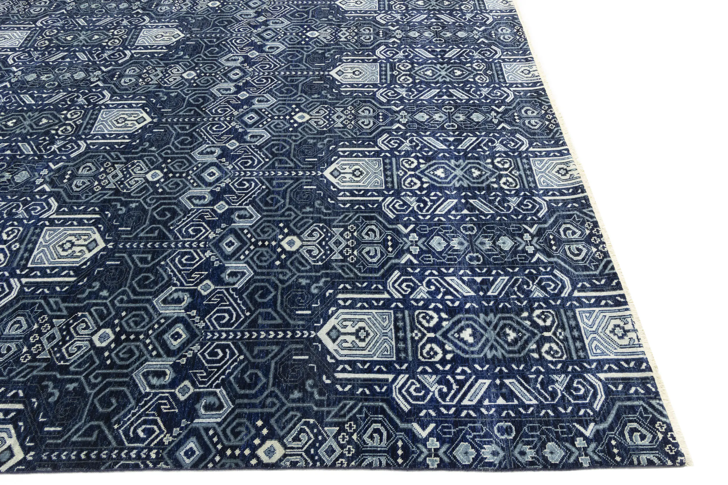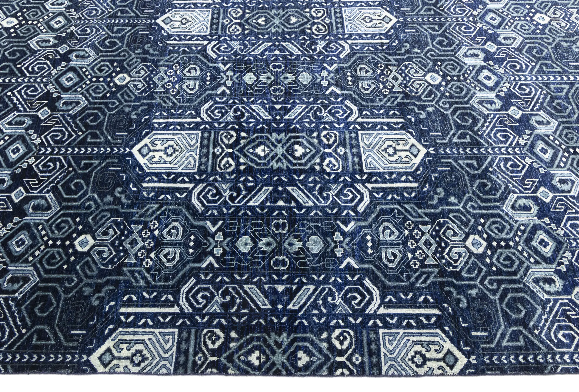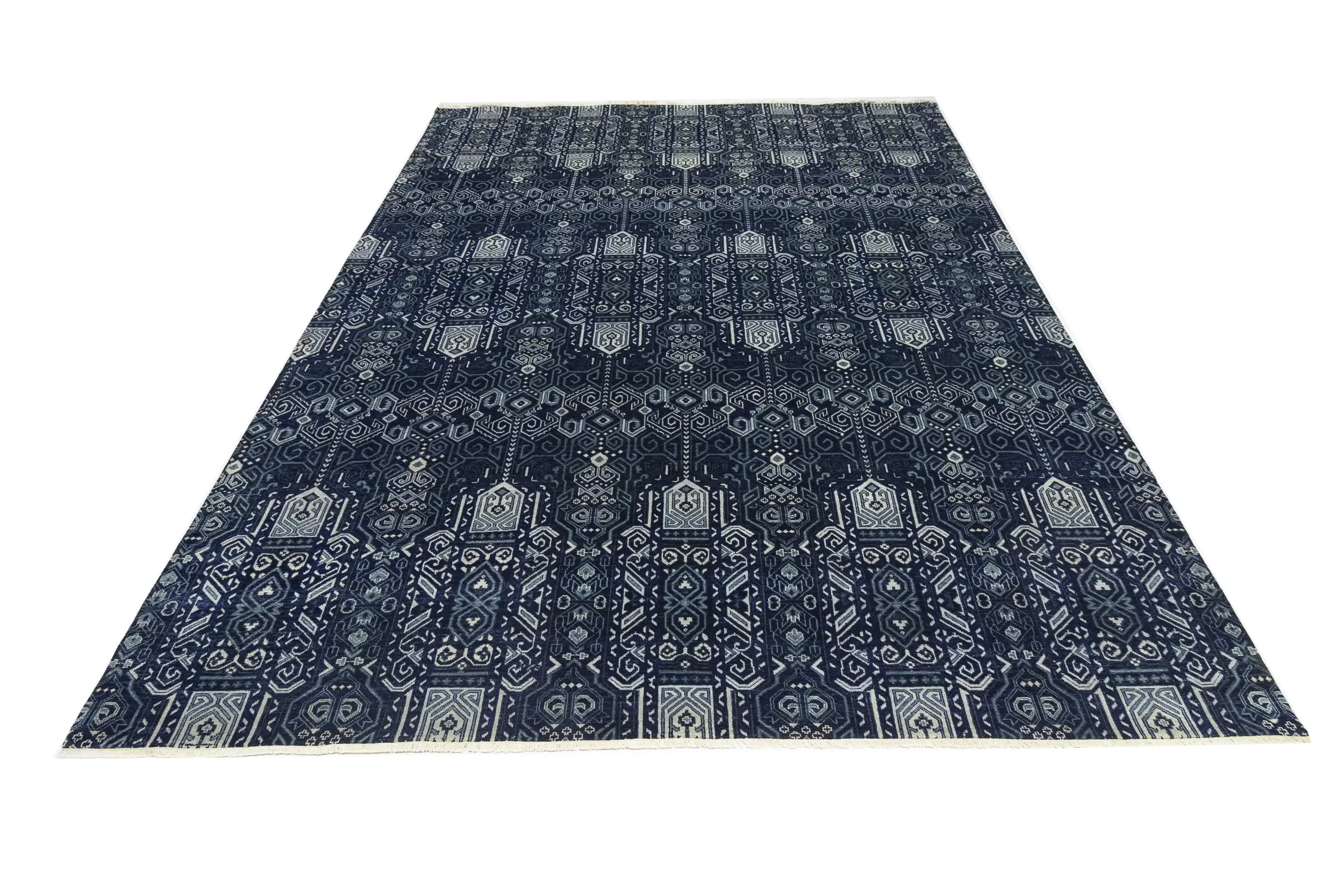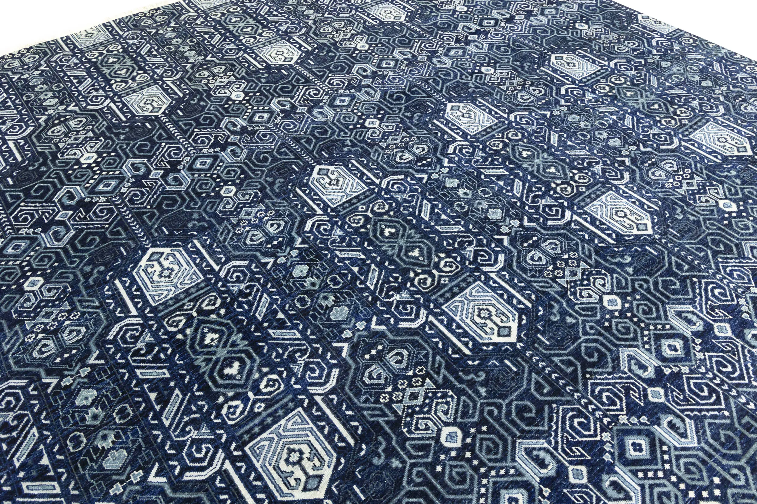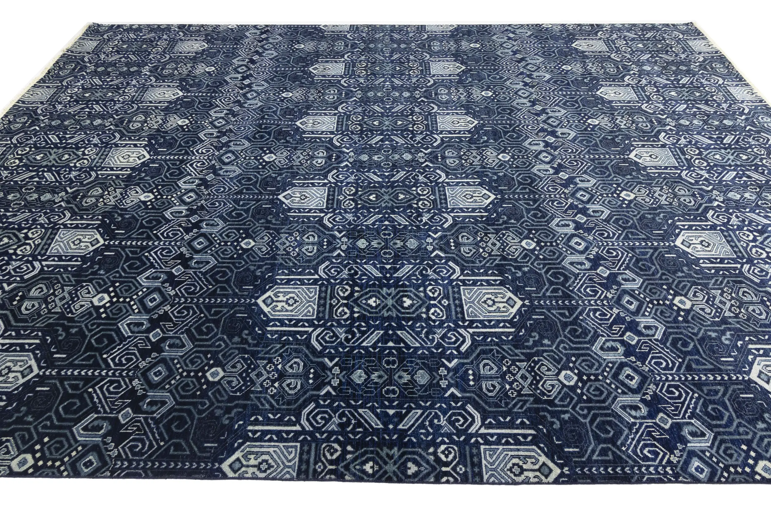 This genuine 12x15 Dark Navy new Oriental rug was made by the hands of gifted weavers inspired by a variety of spectacular artistic designs, to recreate the aged look of the original piece with a richness of color and ornately patterned background field. What set this vintage style Oriental area rug from the others are the material and dye used (wool pile and cotton foundation), knot count, ancient designs, fantastic grades, and its regional historical connection: it has deep roots, from the story of the people who produced it to the meaning of the symbols and colors displayed across its canvas that have been praised for centuries. This Indian home décor carpet will be completely cozy and inviting that never will go out of style! Also, this Oriental rug would be among your most valuable treasures, it is a great investment that accrues value over time, and it will last for generations because was woven with high-quality, all-natural wool. Environmentally friendly, opulent yet affordable; this rug will give you a thorough amount of character to help define your living space with elegance and warmth that will capture the eyes and attention of your audience (homeowners, designers, decorators, family and friends). OT-11519