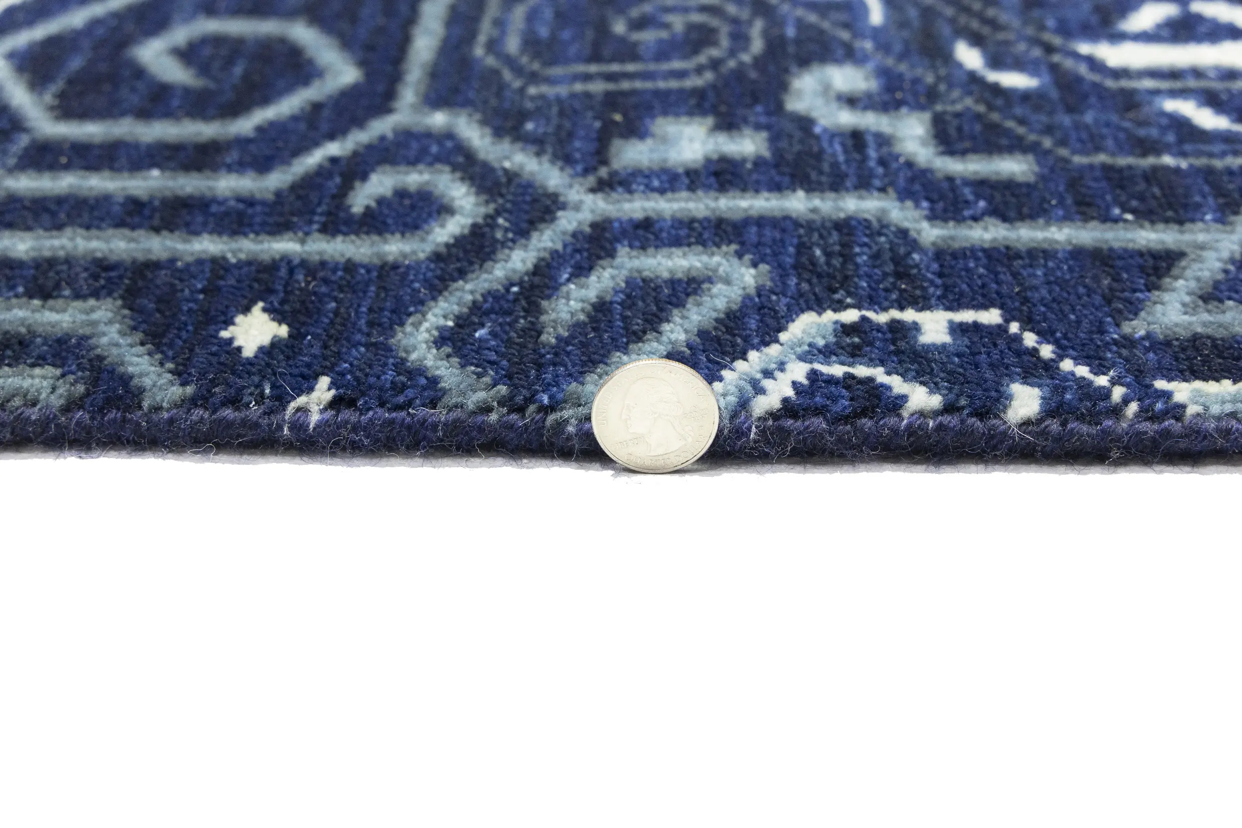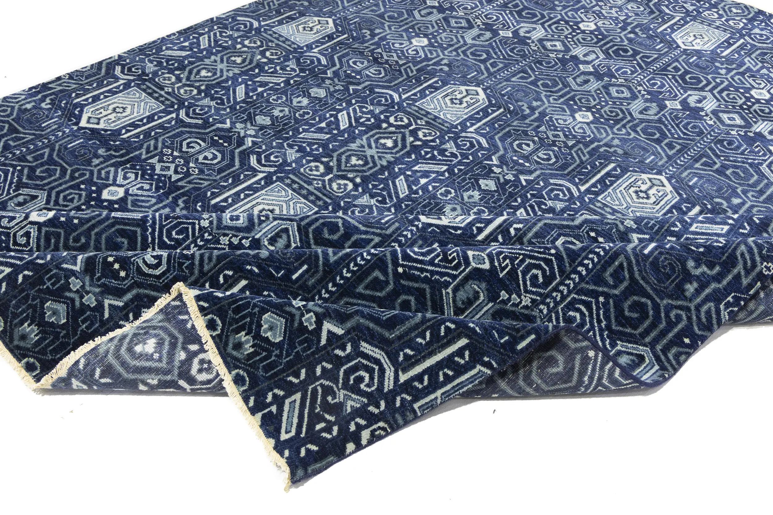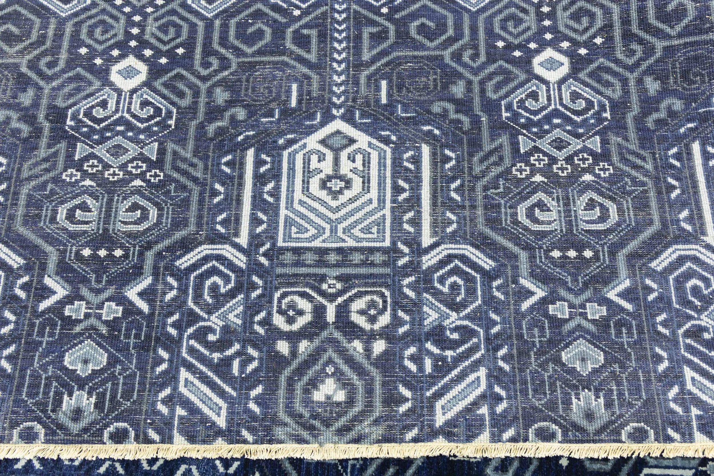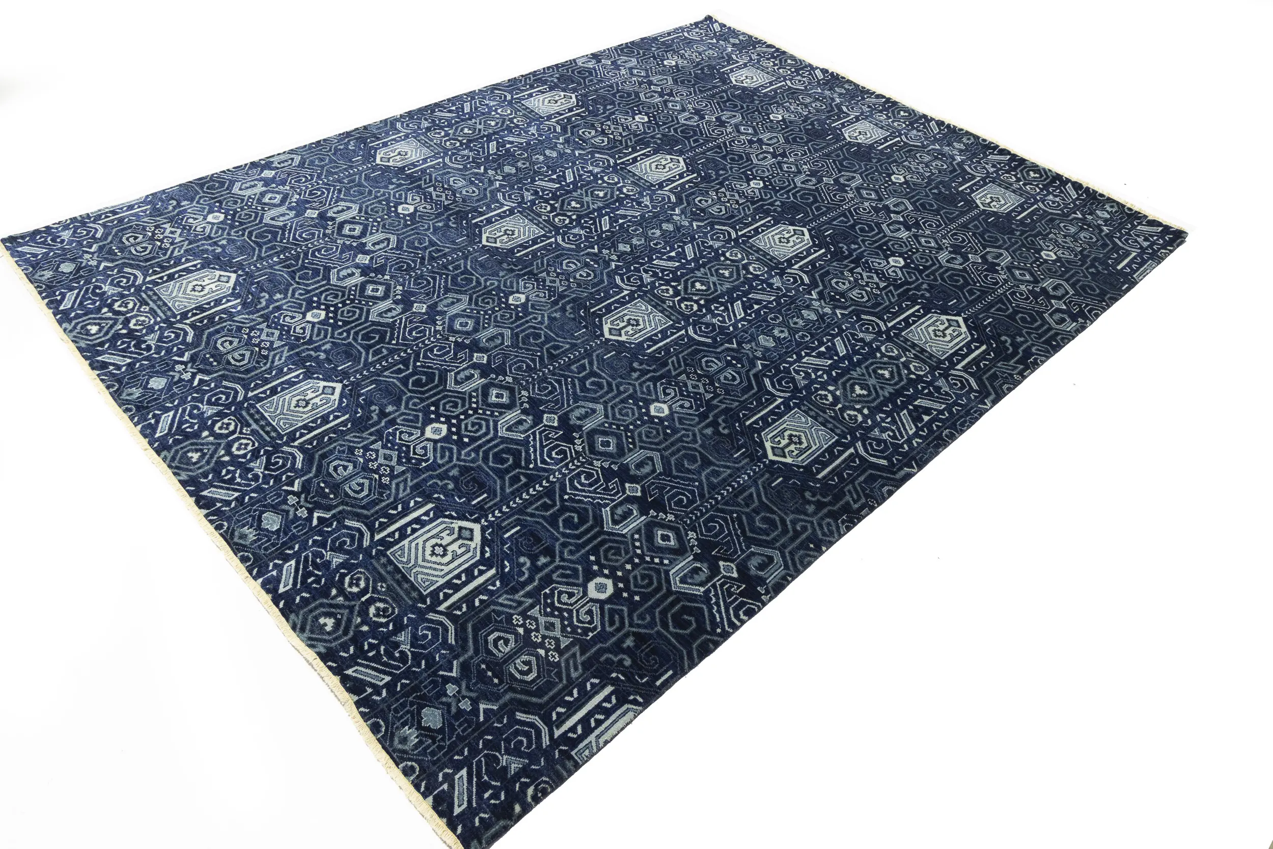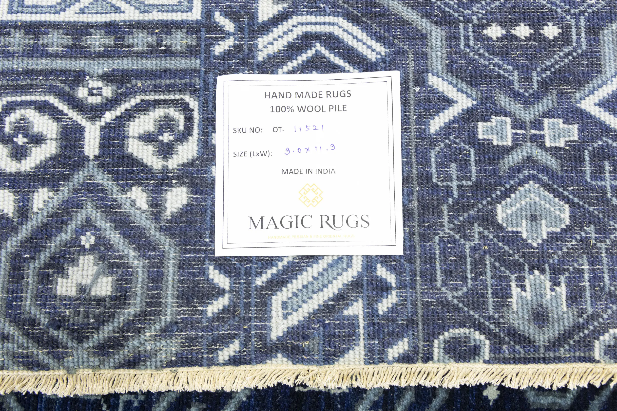 This genuine 9x12 dark navy new Oriental rug was made by the hands of gifted weavers inspired by a variety of spectacular artistic designs, to recreate the aged look of the original piece with a richness of color and ornately patterned background field. What set this vintage style Oriental area rug from the others are the material and dye used (wool pile and cotton foundation), knot count, ancient designs, fantastic grades, and its regional historical connection: it has deep roots, from the story of the people who produced it to the meaning of the symbols and colors displayed across its canvas that have been praised for centuries. This Indian home décor carpet will be completely cozy and inviting that never will go out of style! Also, this Oriental rug would be among your most valuable treasures, it is a great investment that accrues value over time, and it will last for generations because was woven with high-quality, all-natural wool. Environmentally friendly, opulent yet affordable; this rug will give you a thorough amount of character to help define your living space with elegance and warmth that will capture the eyes and attention of your audience (homeowners, designers, decorators, family and friends). OT-11521