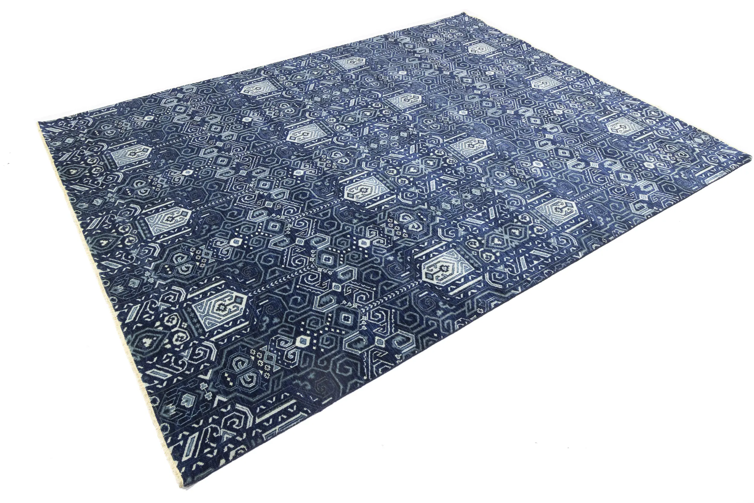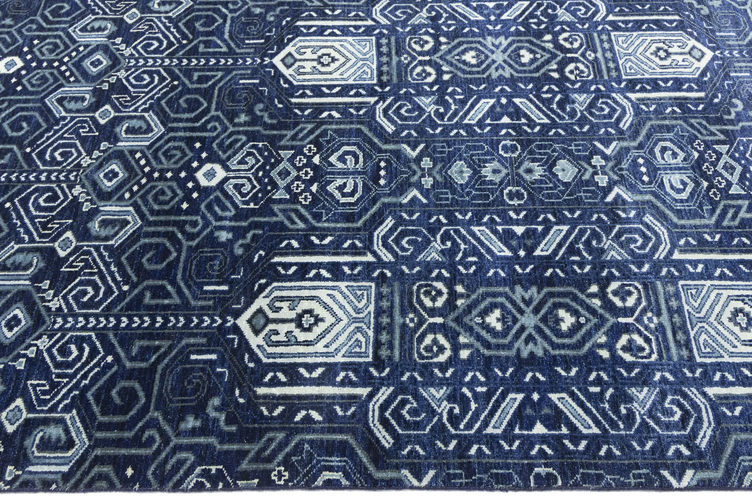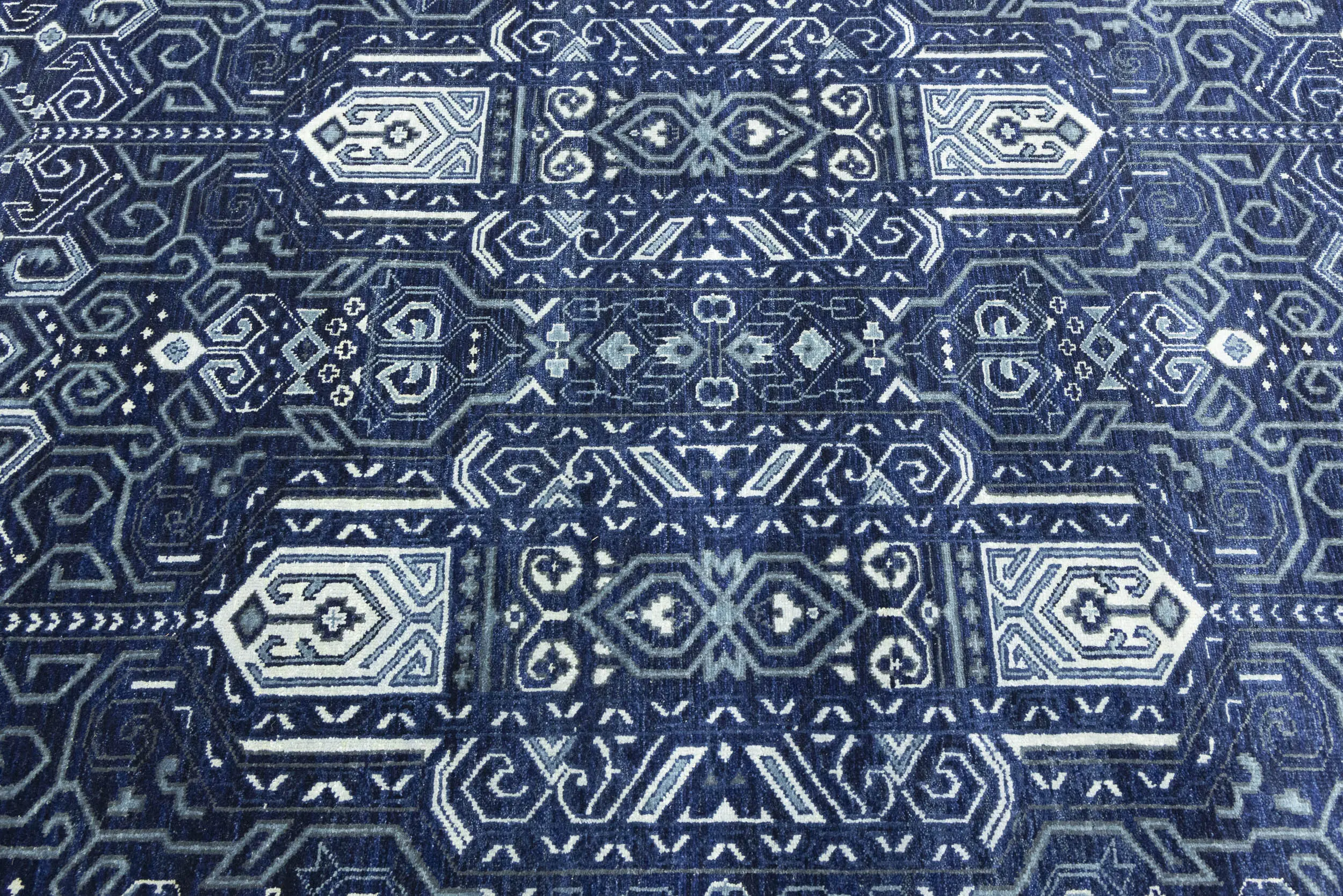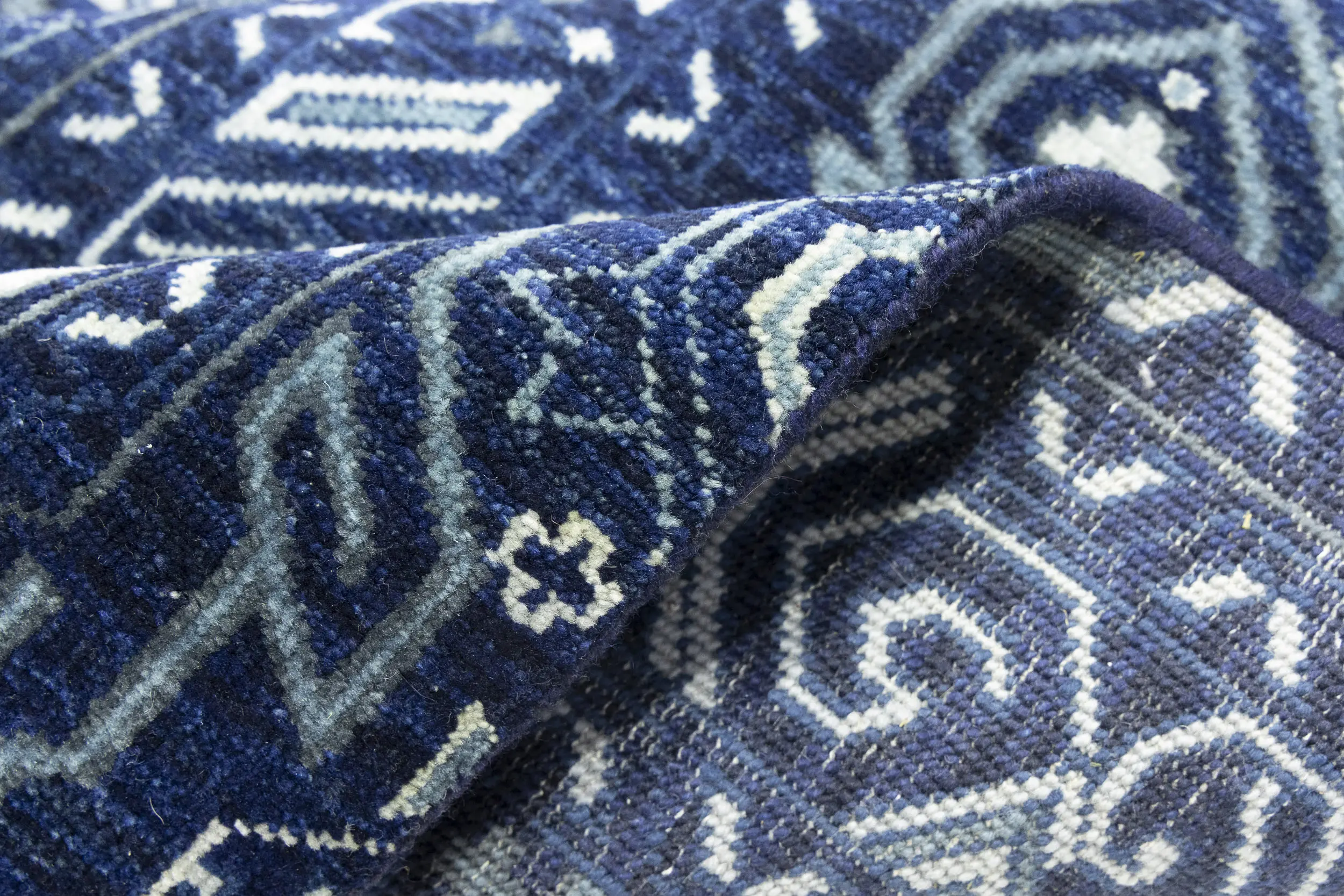 This genuine 9x12 dark navy new Oriental rug was made by the hands of gifted weavers inspired by a variety of spectacular artistic designs, to recreate the aged look of the original piece with a richness of color and ornately patterned background field. What set this vintage style Oriental area rug from the others are the material and dye used (wool pile and cotton foundation), knot count, ancient designs, fantastic grades, and its regional historical connection: it has deep roots, from the story of the people who produced it to the meaning of the symbols and colors displayed across its canvas that have been praised for centuries. This Indian home décor carpet will be completely cozy and inviting that never will go out of style! Also, this Oriental rug would be among your most valuable treasures, it is a great investment that accrues value over time, and it will last for generations because was woven with high-quality, all-natural wool. Environmentally friendly, opulent yet affordable; this rug will give you a thorough amount of character to help define your living space with elegance and warmth that will capture the eyes and attention of your audience (homeowners, designers, decorators, family and friends). OT-11521