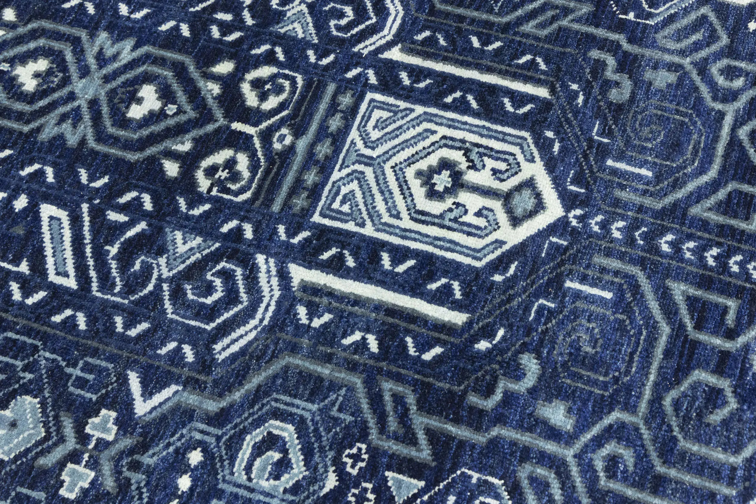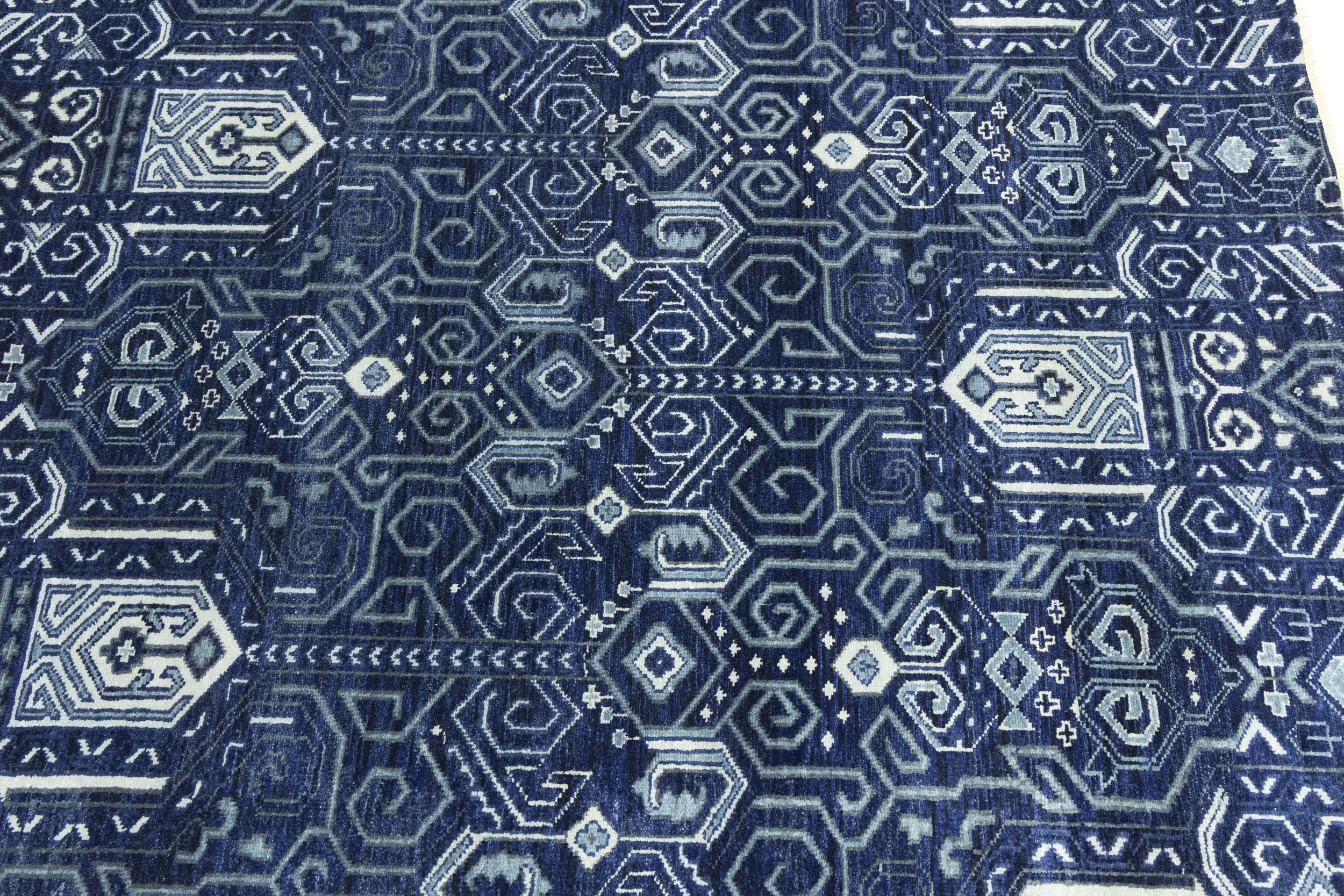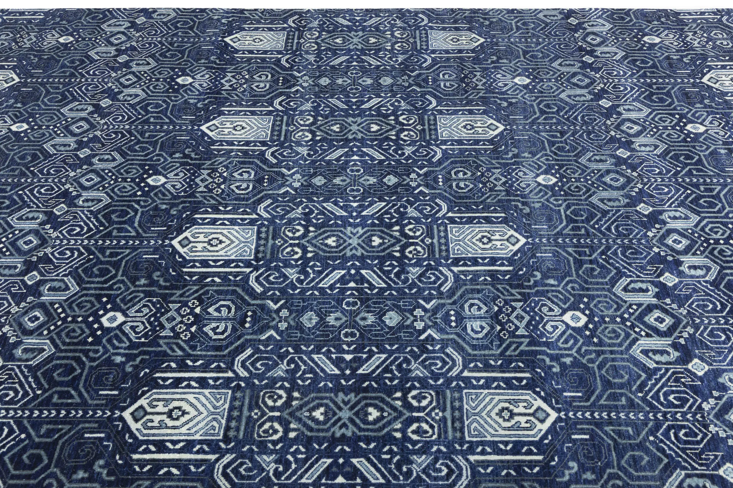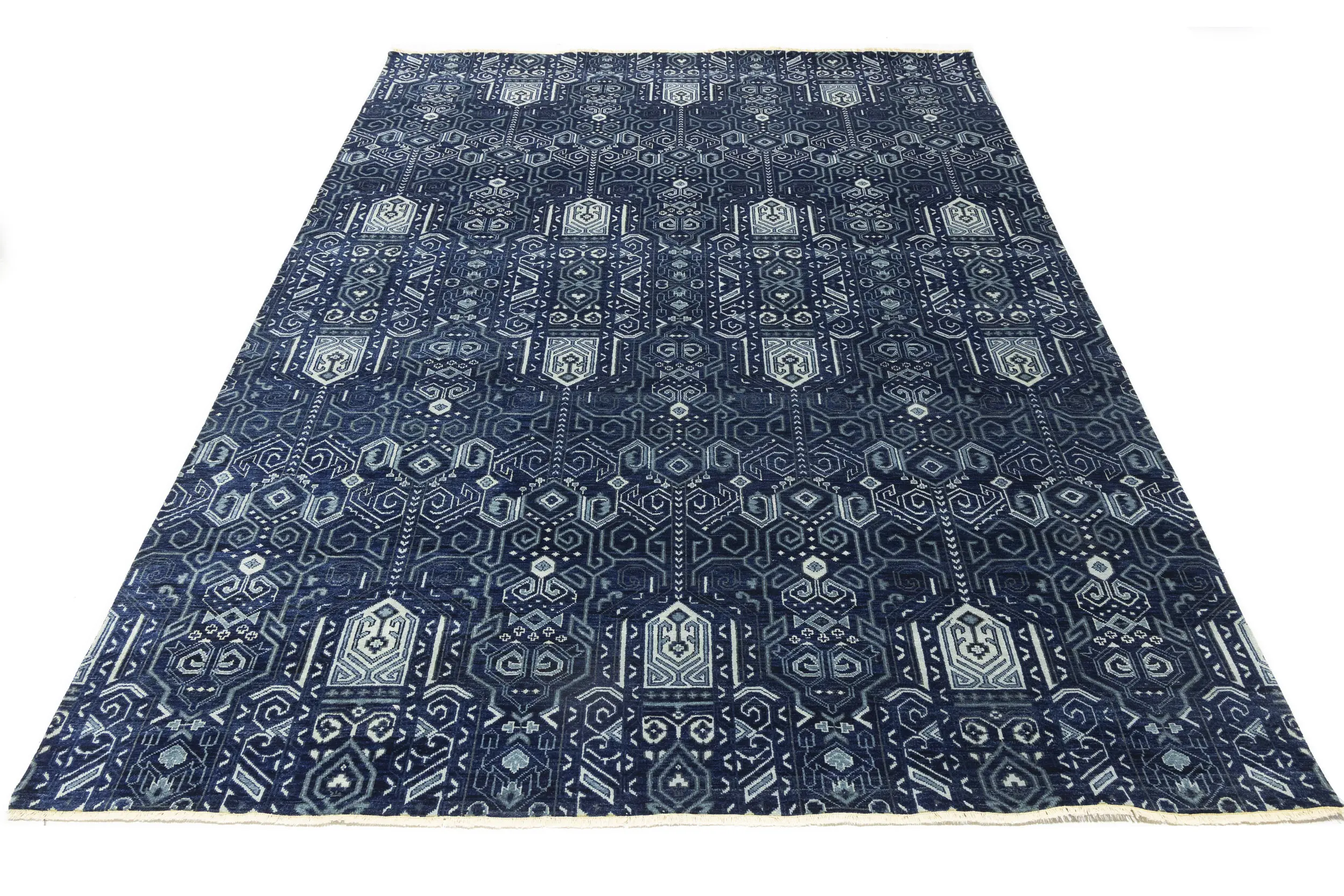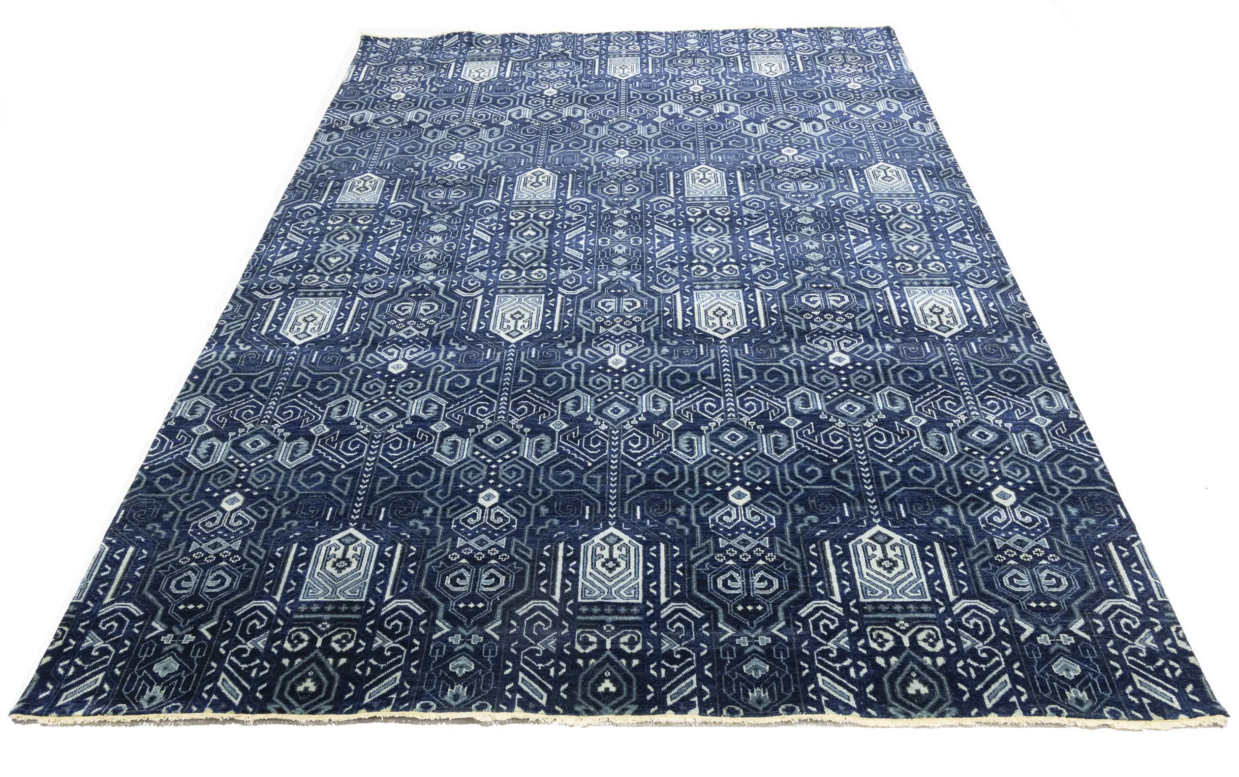 This genuine 9x12 dark navy new Oriental rug was made by the hands of gifted weavers inspired by a variety of spectacular artistic designs, to recreate the aged look of the original piece with a richness of color and ornately patterned background field. What set this vintage style Oriental area rug from the others are the material and dye used (wool pile and cotton foundation), knot count, ancient designs, fantastic grades, and its regional historical connection: it has deep roots, from the story of the people who produced it to the meaning of the symbols and colors displayed across its canvas that have been praised for centuries. This Indian home décor carpet will be completely cozy and inviting that never will go out of style! Also, this Oriental rug would be among your most valuable treasures, it is a great investment that accrues value over time, and it will last for generations because was woven with high-quality, all-natural wool. Environmentally friendly, opulent yet affordable; this rug will give you a thorough amount of character to help define your living space with elegance and warmth that will capture the eyes and attention of your audience (homeowners, designers, decorators, family and friends). OT-11521