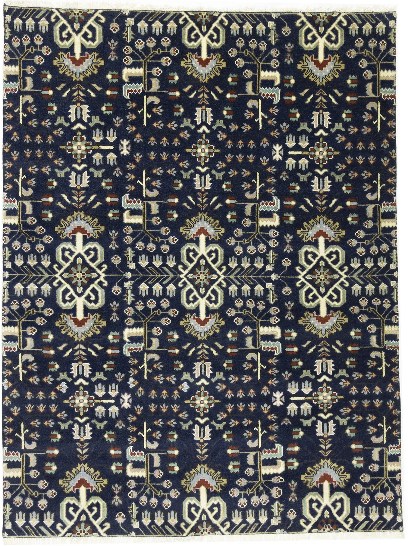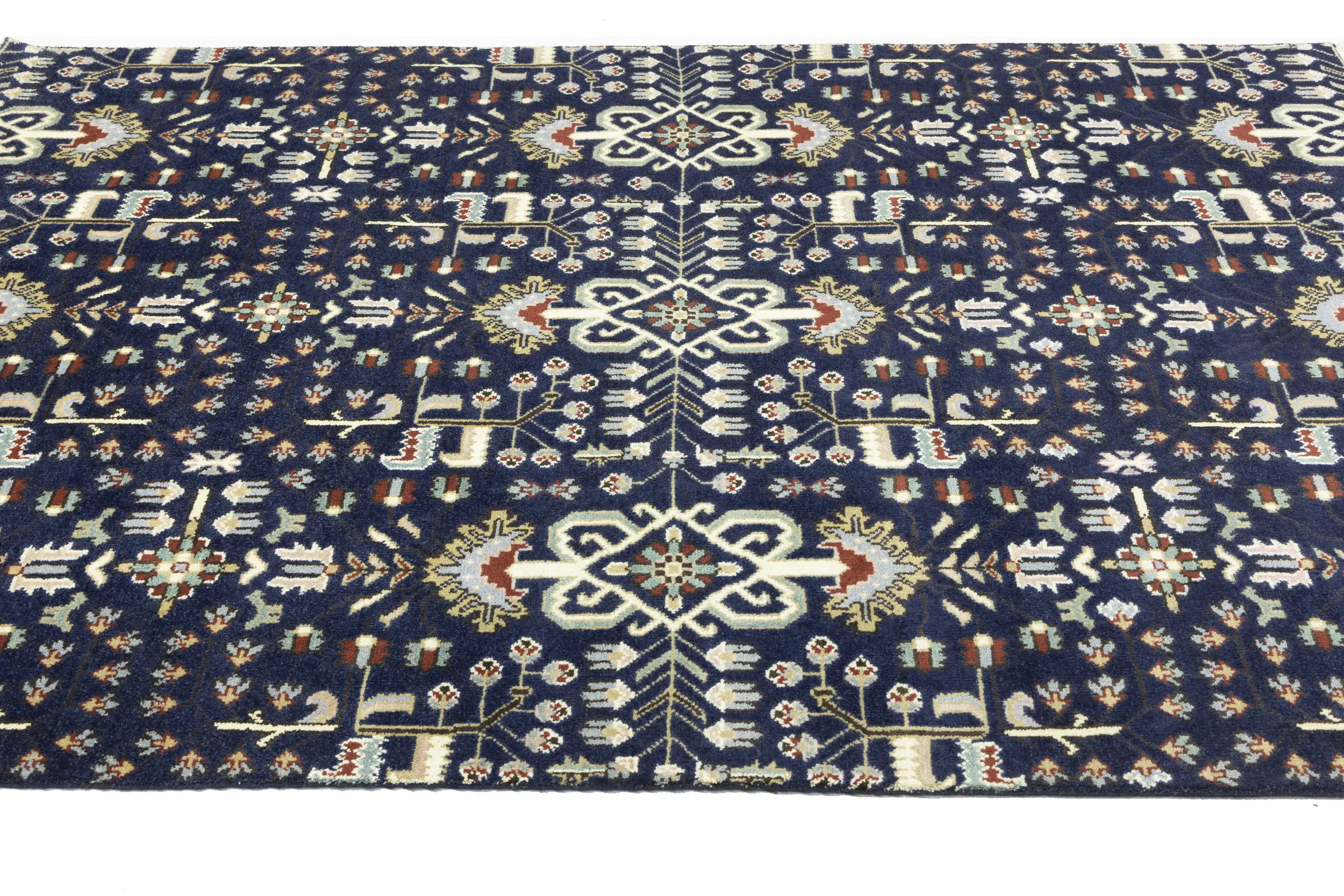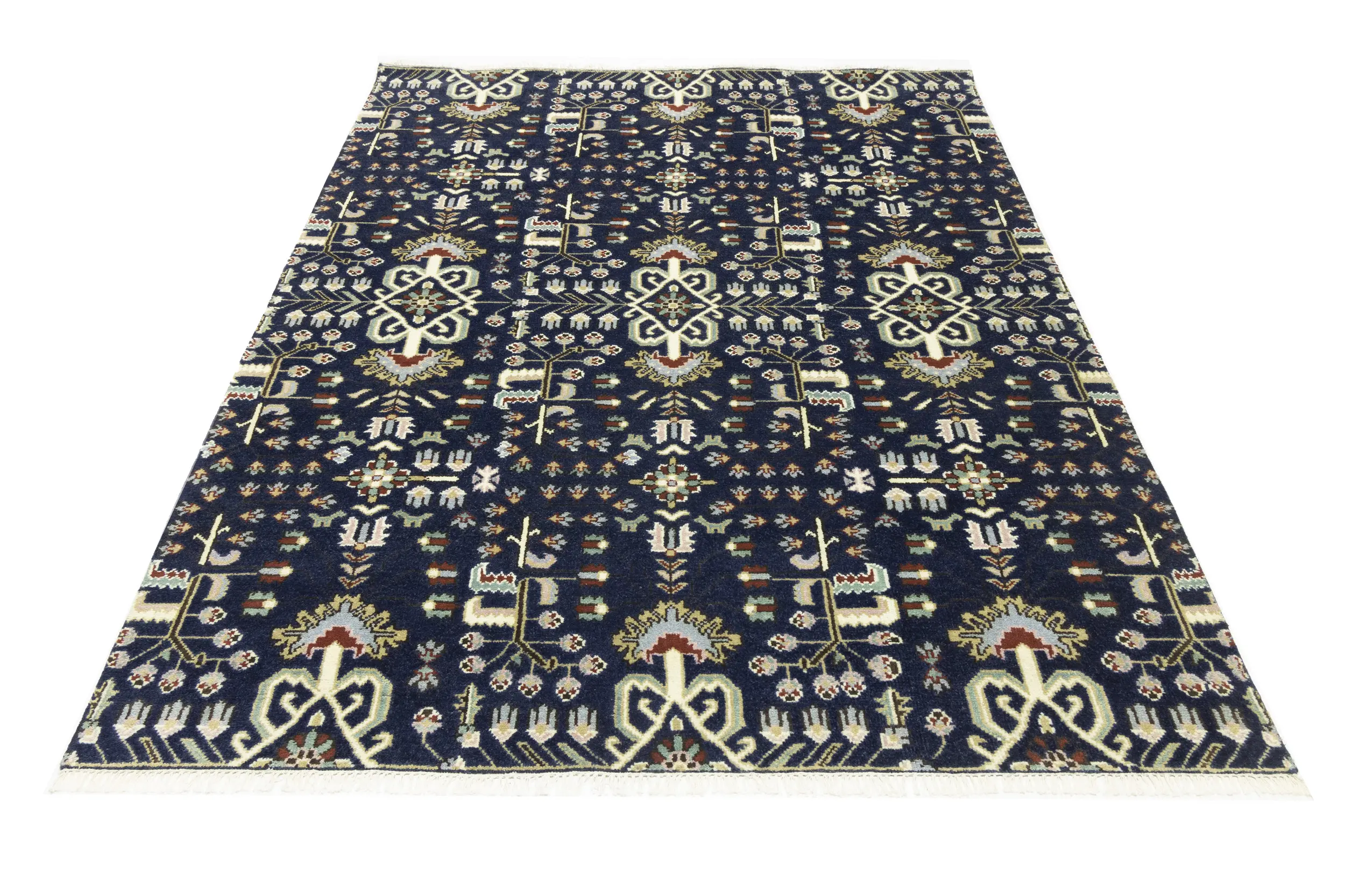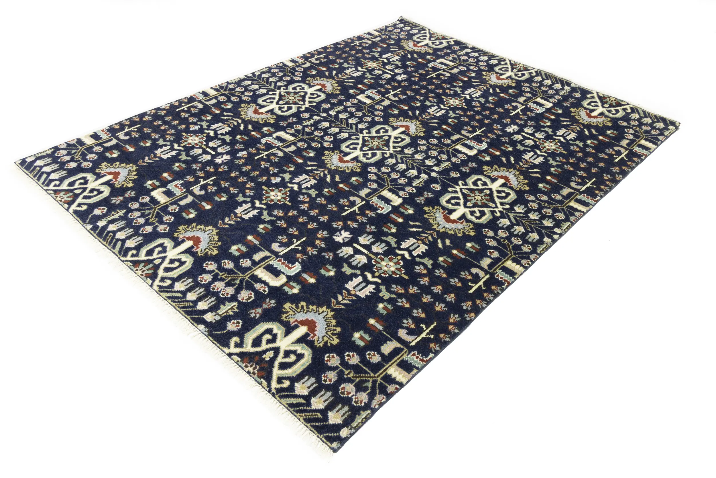 Dark Navy Floral Tribal 8X10 Oriental Rug