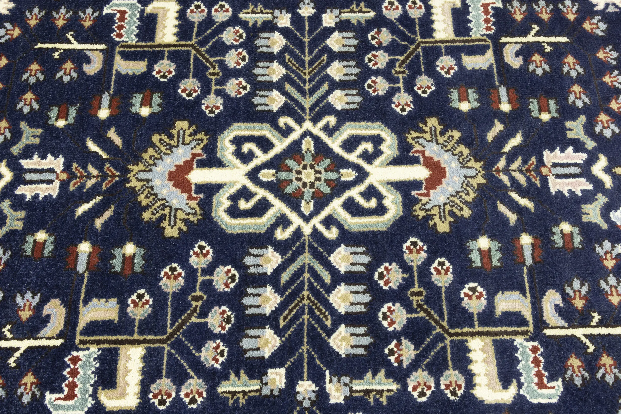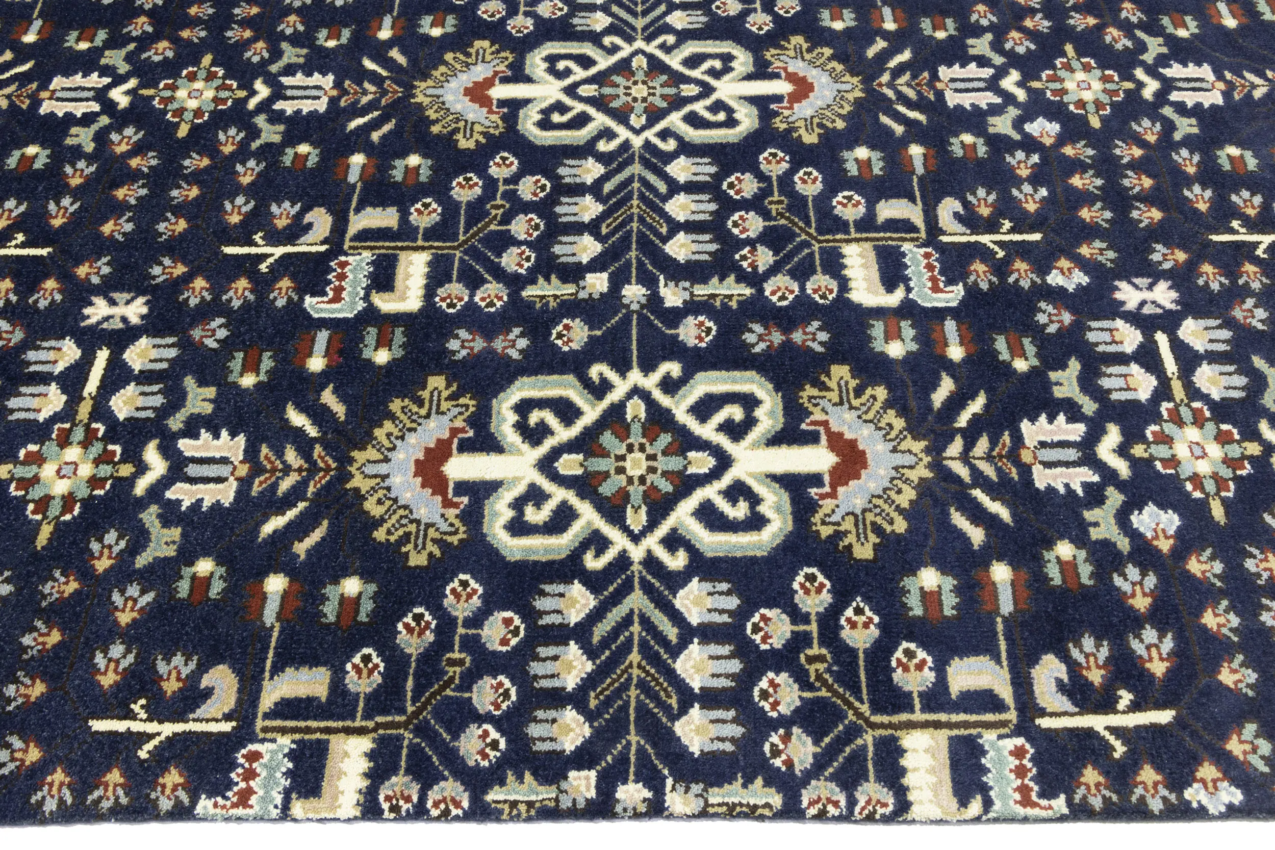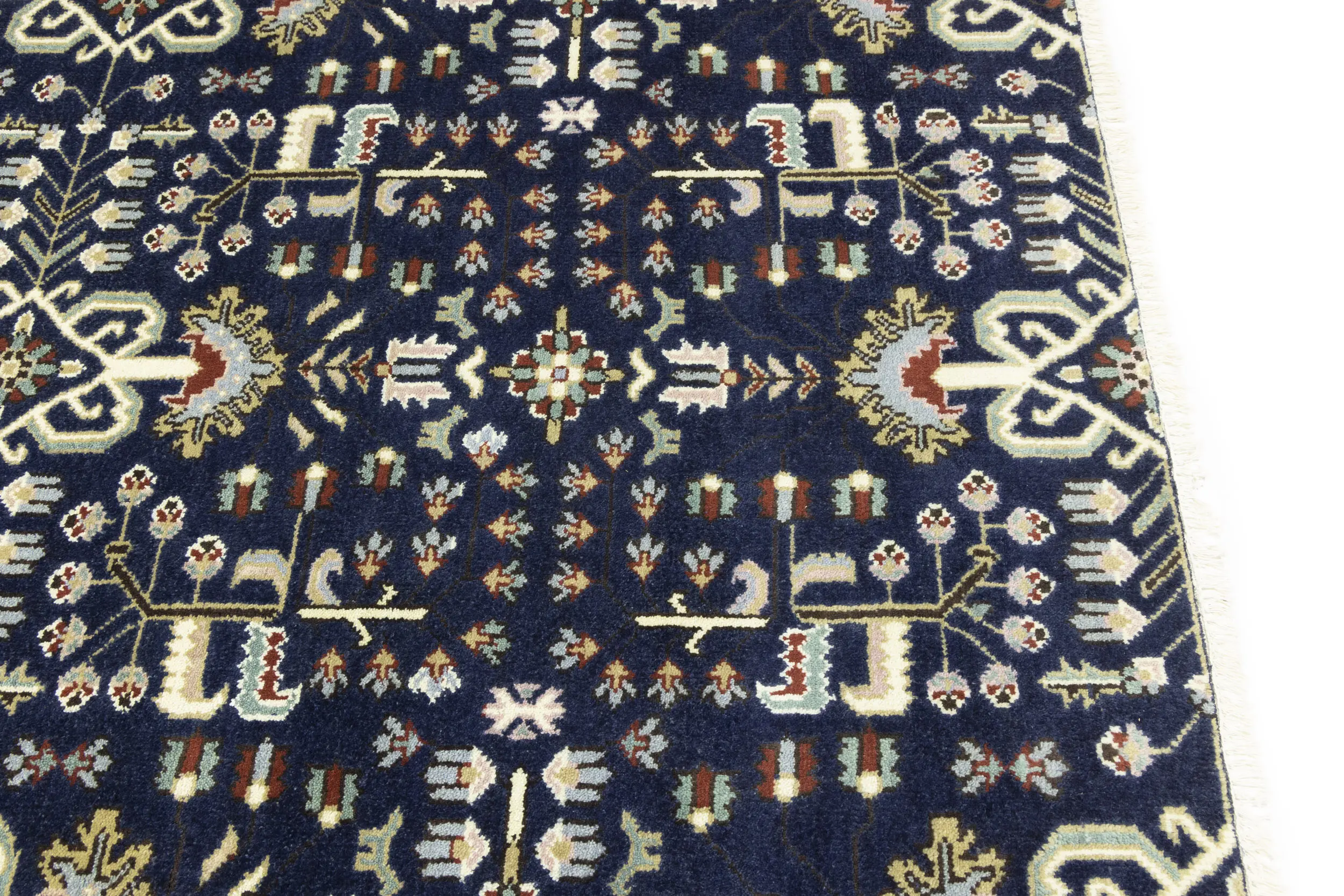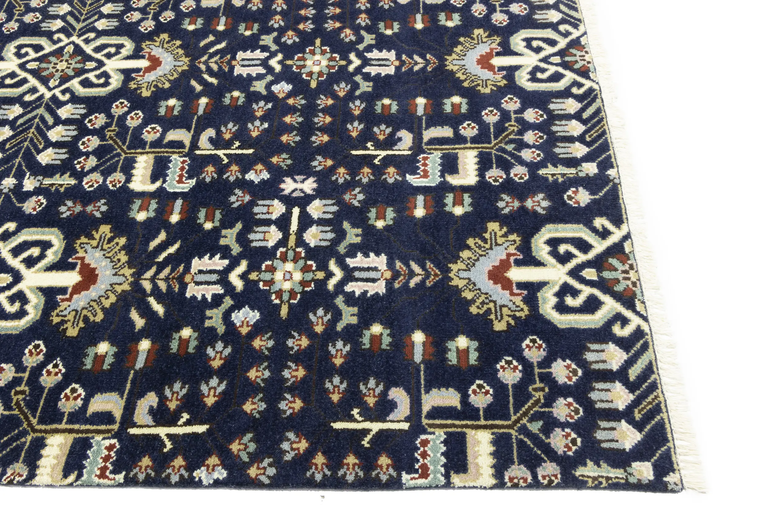 This genuine 8X10 blue new Oriental rug was made by the hands of gifted weavers inspired by a variety of spectacular artistic designs, to recreate the aged look of the original piece with a richness of color and ornately patterned background field. What set this vintage style Oriental area rug from the others are the material and dye used (wool pile and cotton foundation), knot count, ancient designs, fantastic grades, and its regional historical connection: it has deep roots, from the story of the people who produced it to the meaning of the symbols and colors displayed across its canvas that have been praised for centuries. This Indian home décor carpet will be completely cozy and inviting that never will go out of style! Also, this Oriental rug would be among your most valuable treasures, it is a great investment that accrues value over time, and it will last for generations because was woven with high-quality, all-natural wool. Environmentally friendly, opulent yet affordable; this rug will give you a thorough amount of character to help define your living space with elegance and warmth that will capture the eyes and attention of your audience (homeowners, designers, decorators, family and friends).