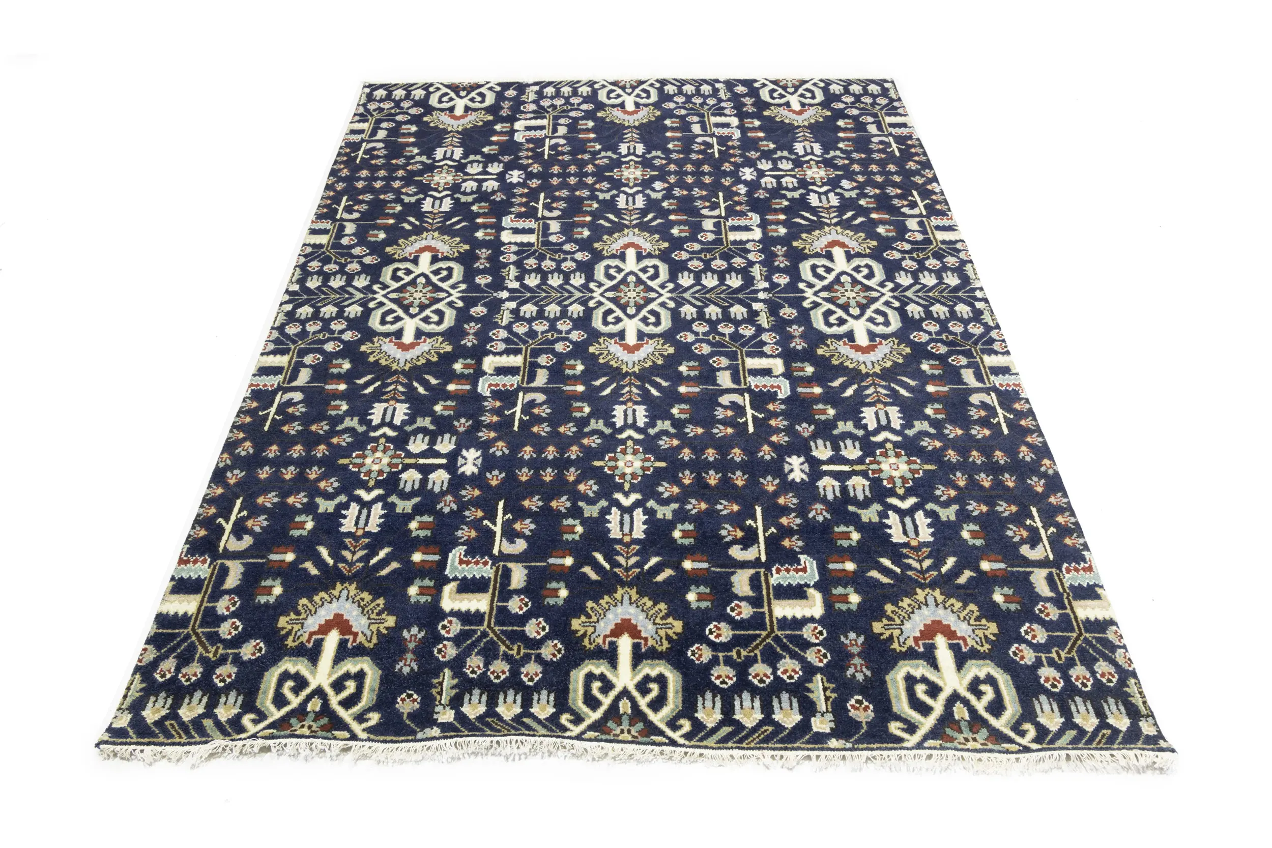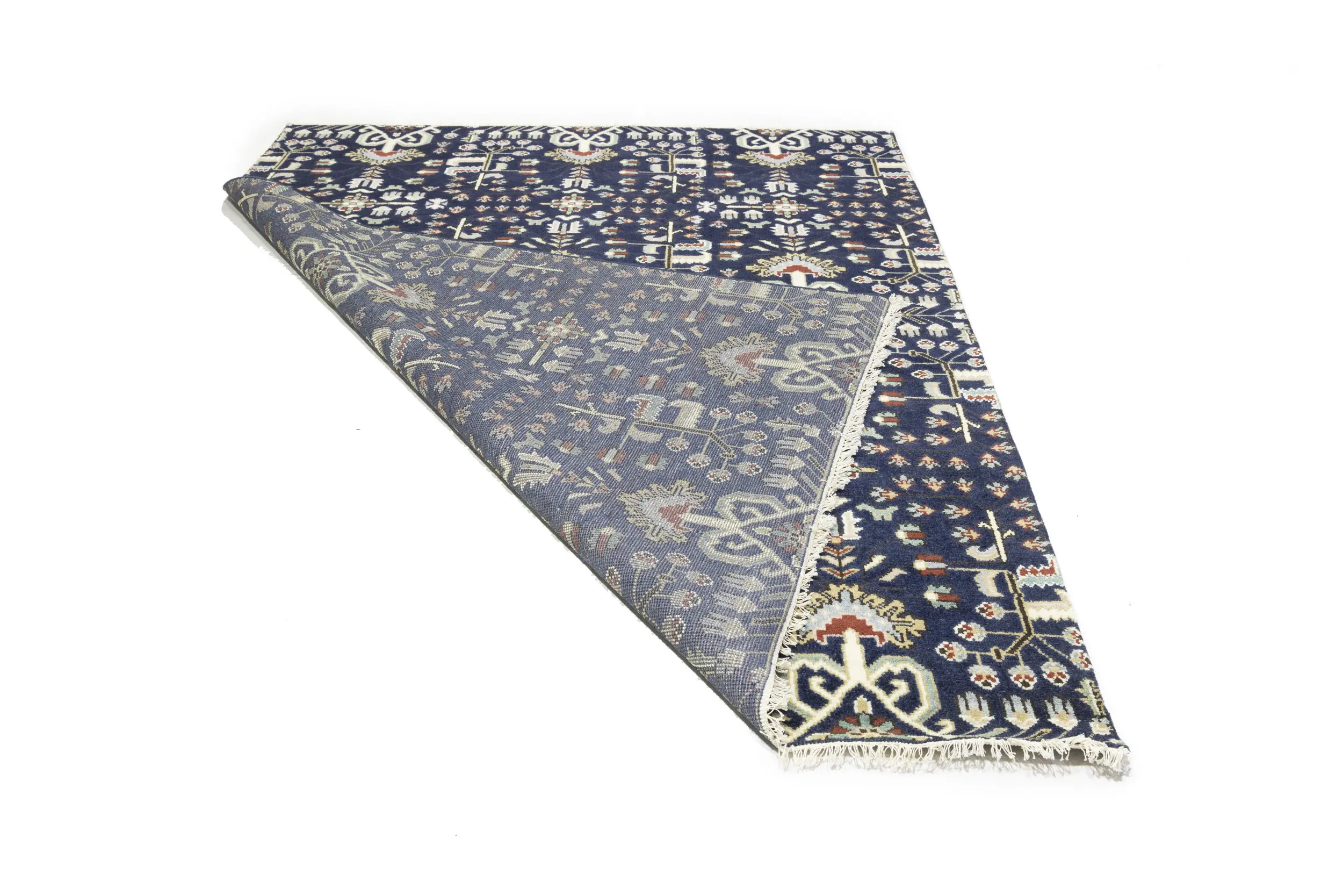 Handmade 8X10 blue oriental rug made with vegetable dyes (fine wool pile and cotton foundation), superior knot count, and appealing ancient designs. This Oriental rug never will go out of style and would be among your most valuable treasures.