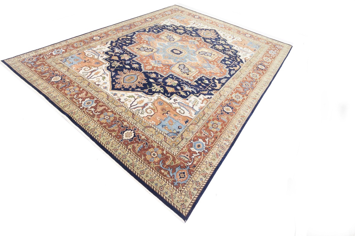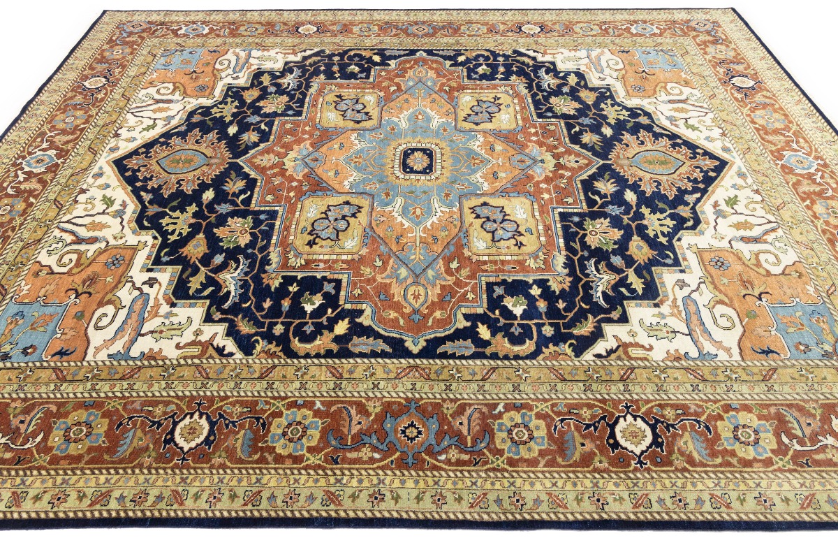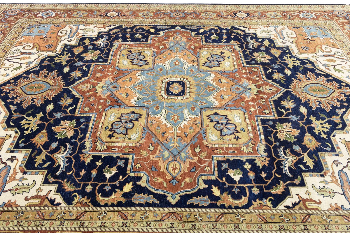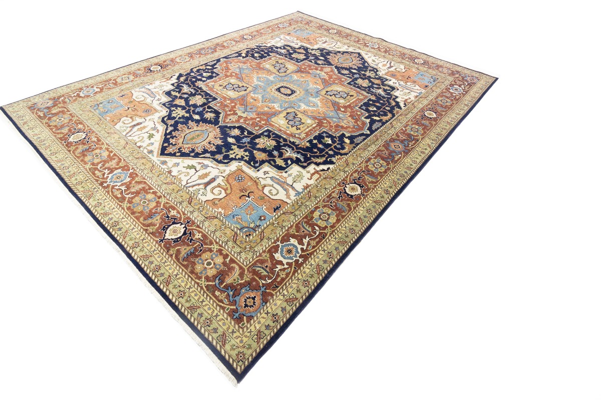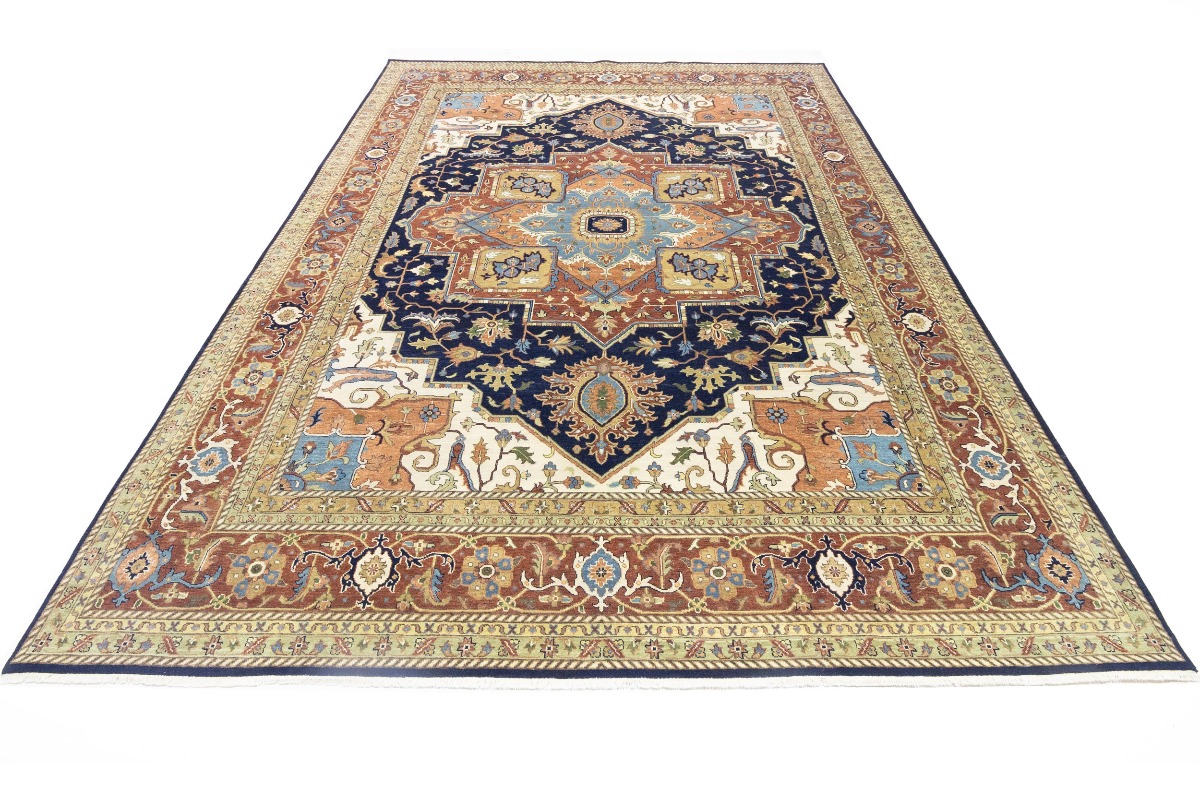 Dark Navy Geometric 12X15 Heriz Serapi Oriental Rug