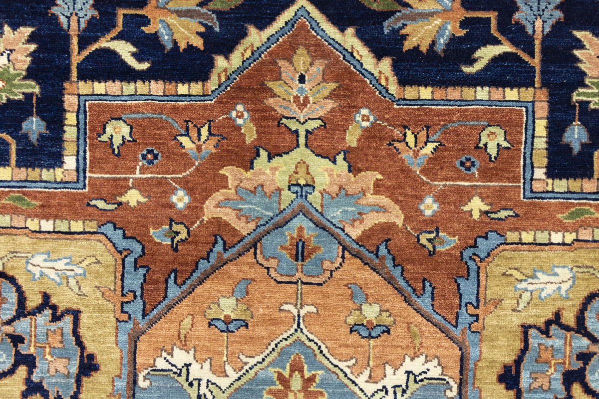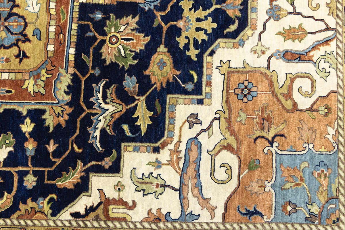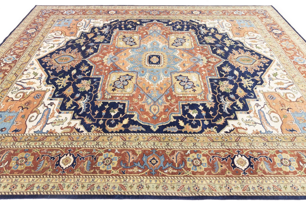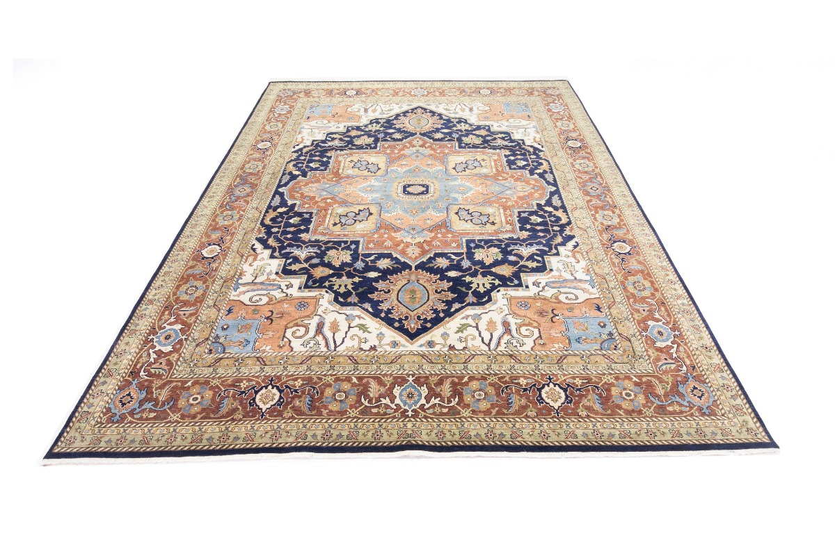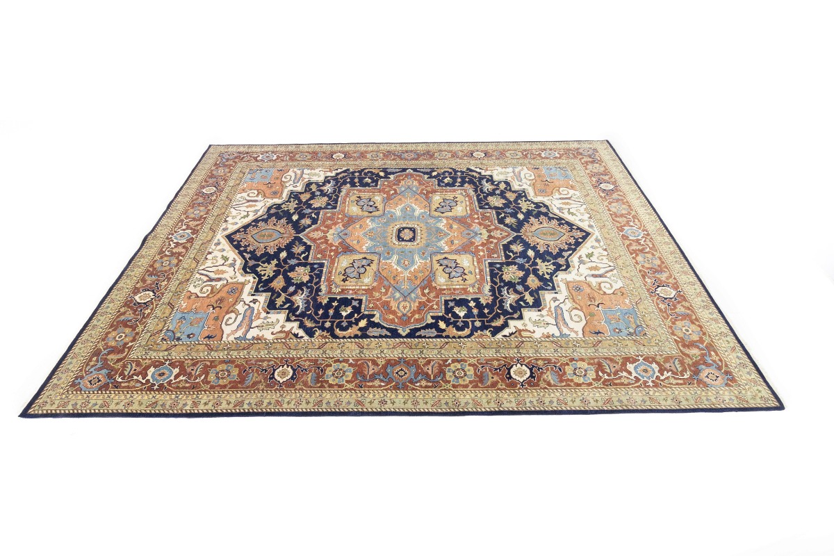 Dark Navy Geometric 12X15 Heriz Serapi Oriental Rug