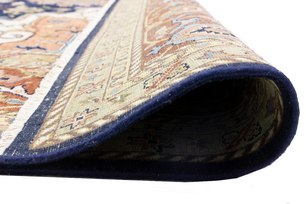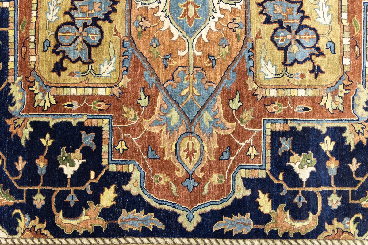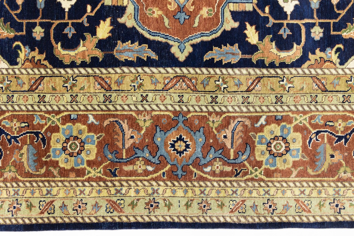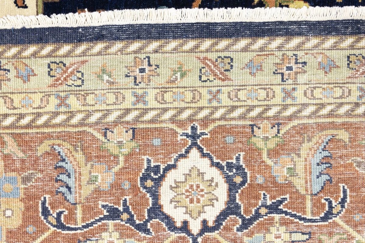 This genuine 12X15 dark navy color new Oriental rug was well-constructed by the hands of master weavers motivated by a variety of stunning artistic designs, to recreate the aged look of the exceptional piece with a richness of color and developed decorative background field. What set this vintage style Oriental area rug from the others are the material and dye used (wool pile and cotton foundation), knot count, ancient designs, fantastic grades, and its regional historical connection: it has deep roots, from the story of the people who produced it to the meaning of the symbols and colors displayed across its canvas that have been praised for centuries. This Indian home décor carpet will be completely cozy and inviting that never will go out of style! Also, this Oriental rug would be among your most valuable treasures, it is a great investment that increase in value over time, and it will last a lifetime because was woven with high-quality, all-natural wool. Eco-friendly, opulent yet affordable; this rug give you an extra pop of character to help define your home environment with elegance and warmth that will capture the eyes and attention of your audience (homeowners, designers, decorators, family and friends). OT-8244