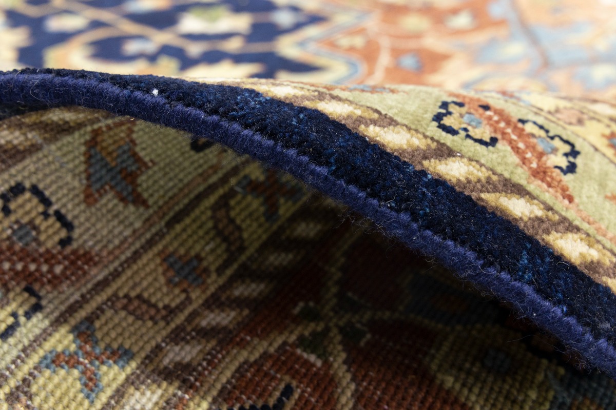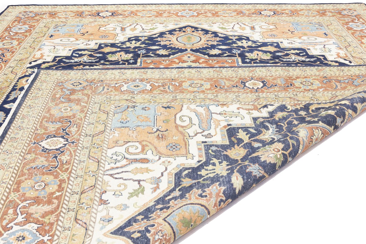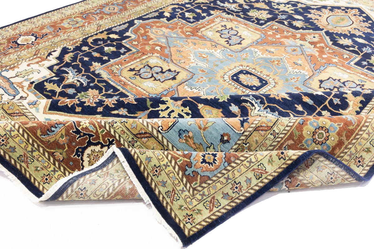 Handmade 12X15 dark navy color Oriental rug made with vegetable dyes (fine wool pile and cotton foundation), exceptional knot count, and appealing ancient designs. This Oriental rug never will go out of style and would be among your most valuable treasures.