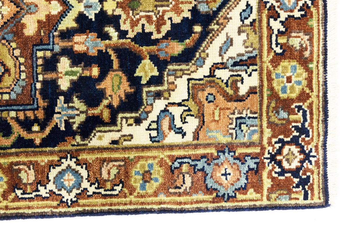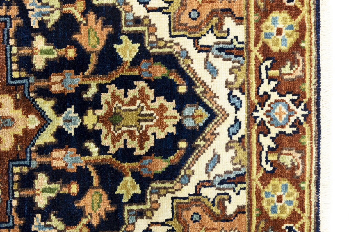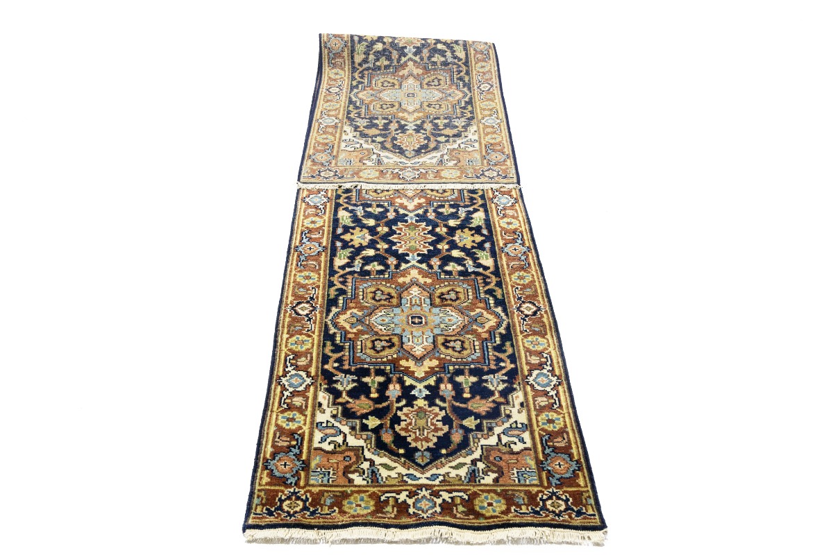 This authentic 2'5X11'9 dark navy color new Oriental runner was crafted by the hands of skilled weavers enthused by a variety of lovely artistic designs, to recreate the aged look of the unique piece with a richness of color and beautifully elaborated background field. What set this vintage style Oriental area runner from the others are the material and dye used (wool pile and cotton foundation), knot count, ancient designs, fantastic grades, and its regional historical connection: it has deep roots, from the story of the people who produced it to the meaning of the symbols and colors displayed across its canvas that have been praised for centuries. This Indian home décor carpet will be completely cozy and inviting that never will go out of style! Also, this Oriental rug would be among your most valuable treasures, it is a great investment that increase in value over time, and it will last for generations because was woven with high-quality, all-natural wool. Environmentally friendly, opulent yet affordable; this runner will give you a thorough amount of character to help define your living space with sophistication and warmth that will capture the eyes and attention of your audience (homeowners, designers, decorators, family and friends). OT-8250