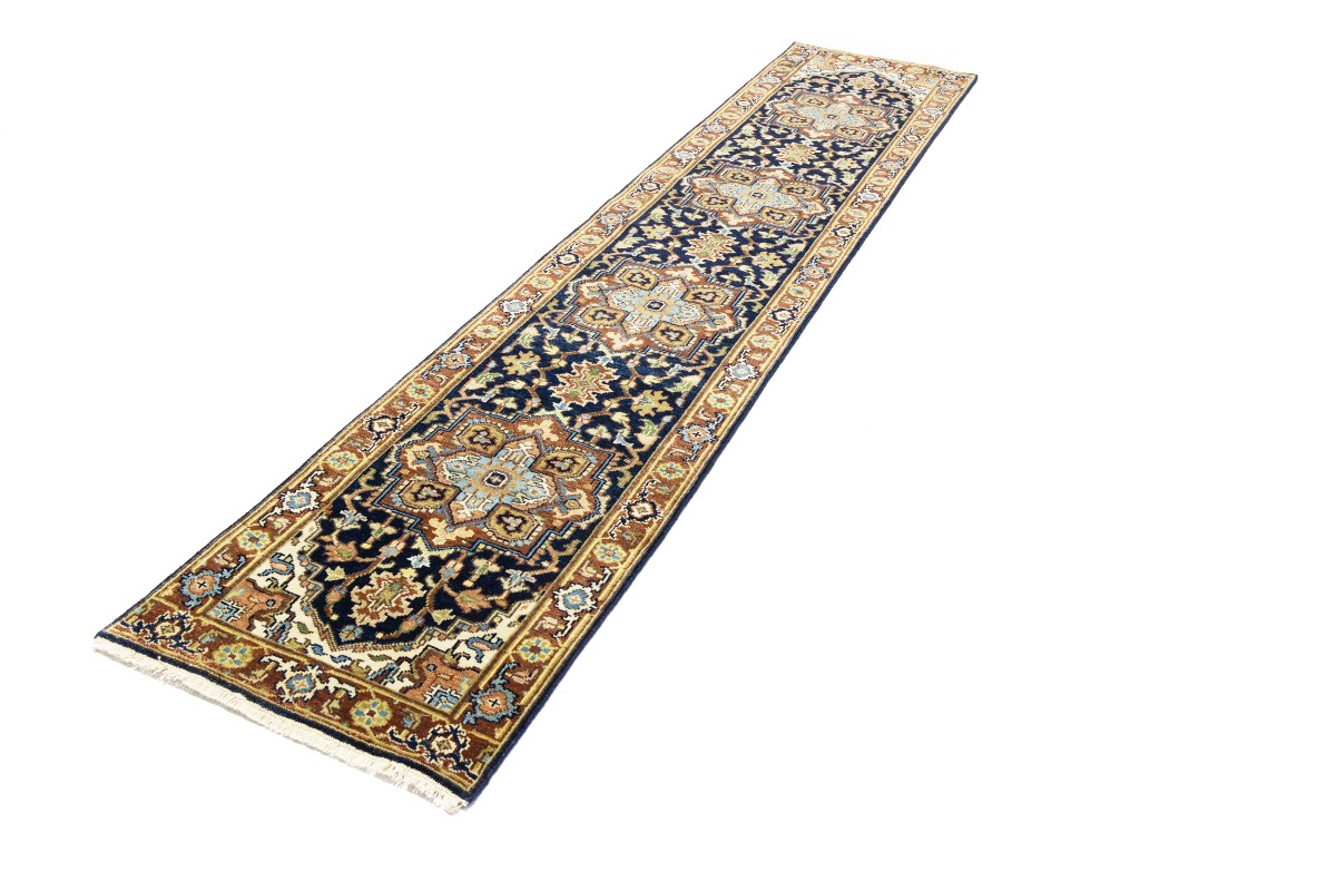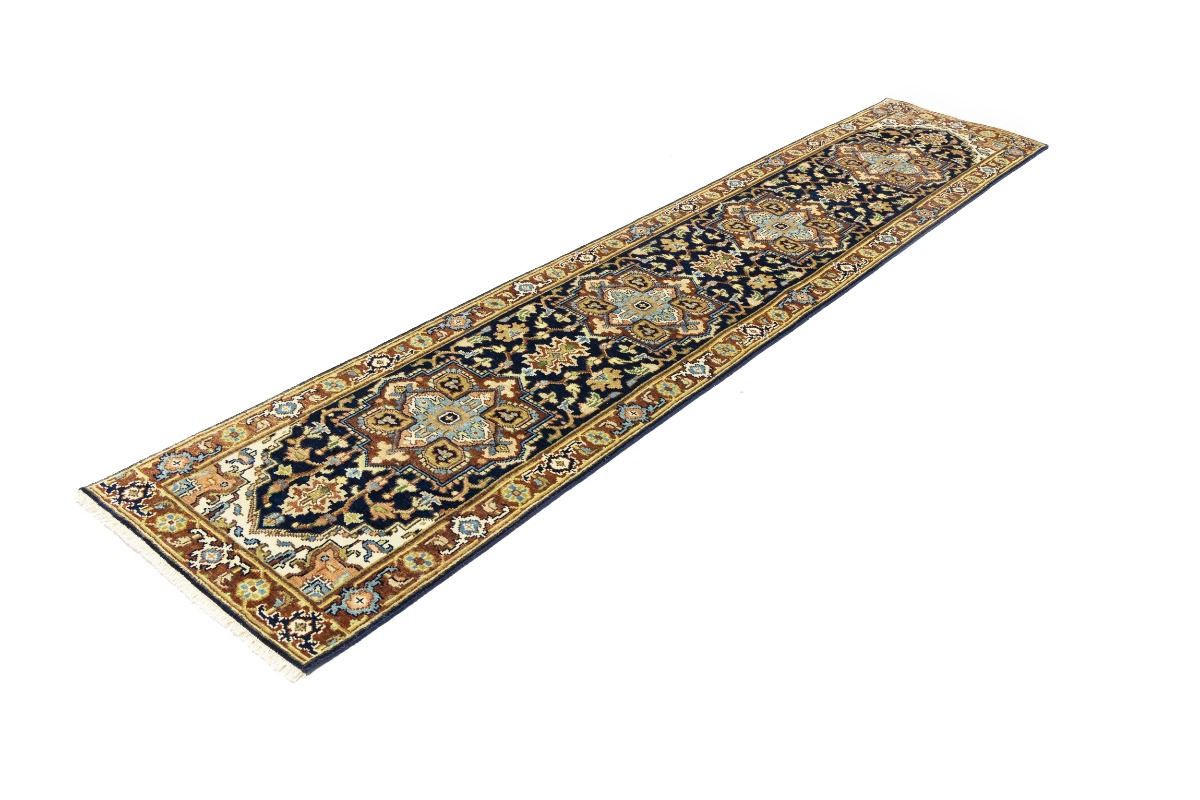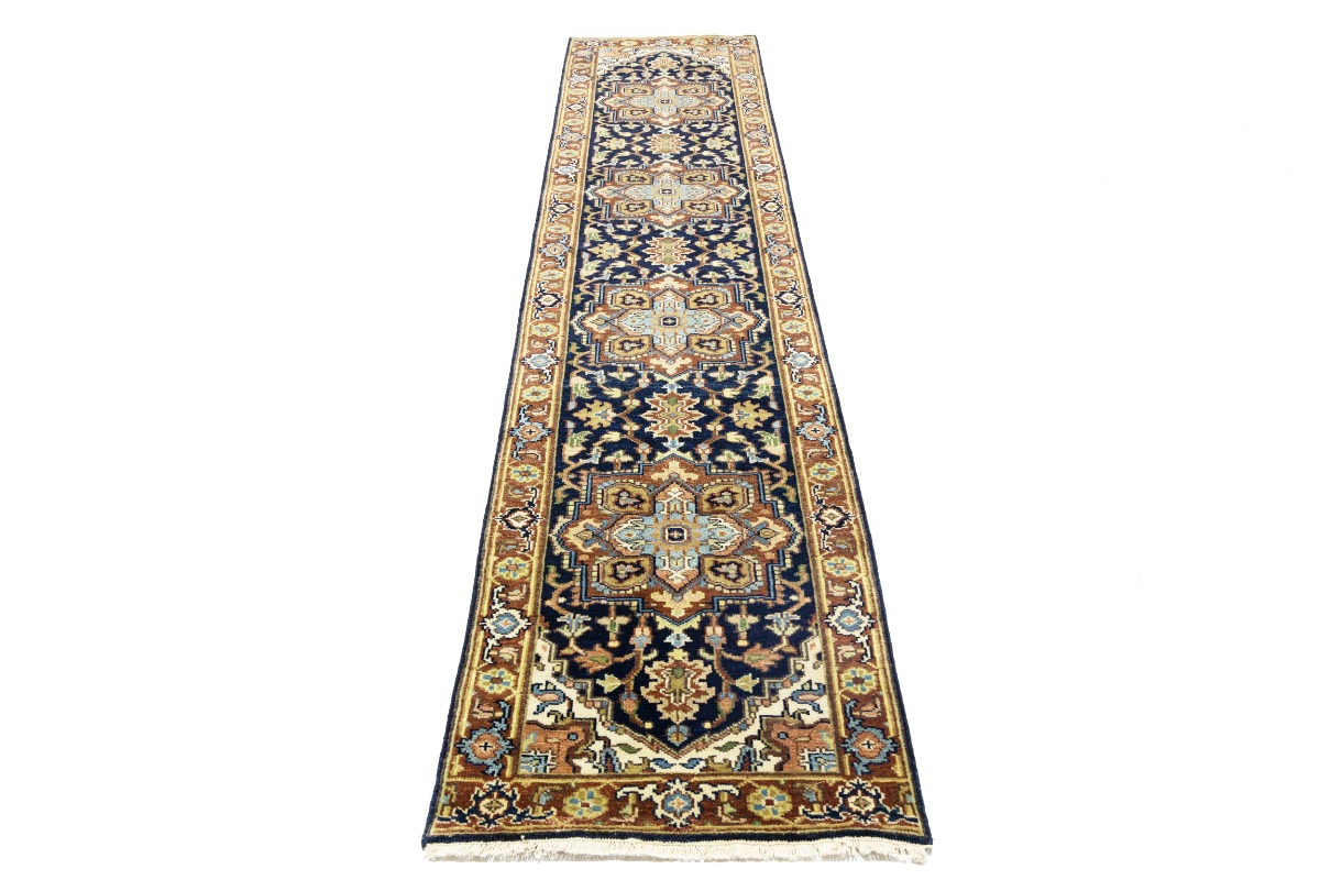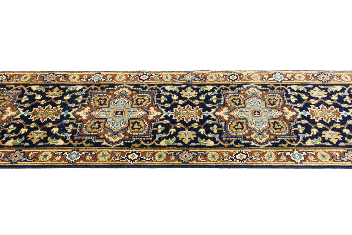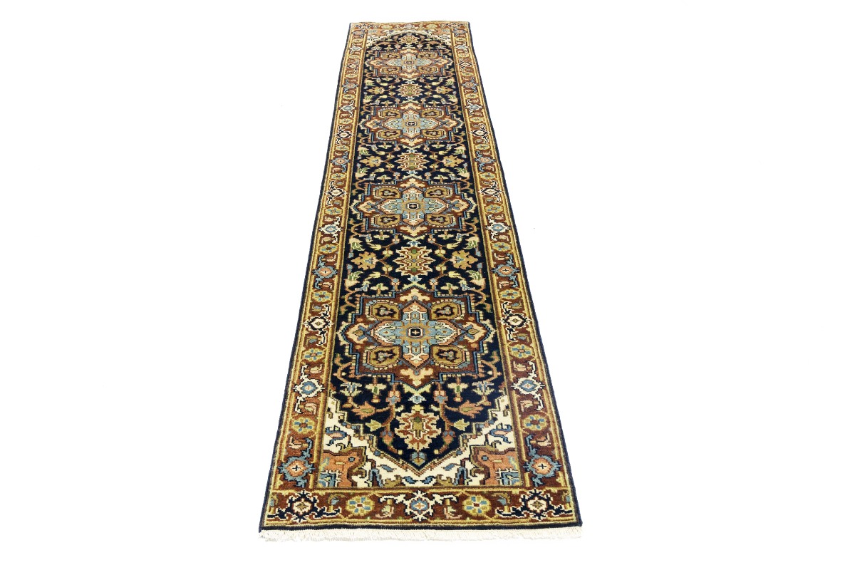 Dark Navy Geometric 2'5X12 Heriz Serapi Oriental Runner Rug