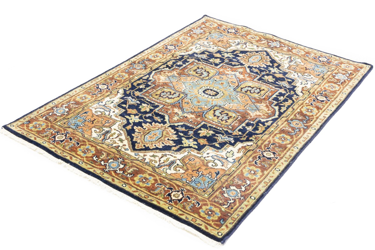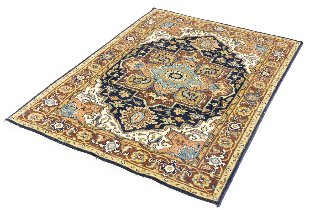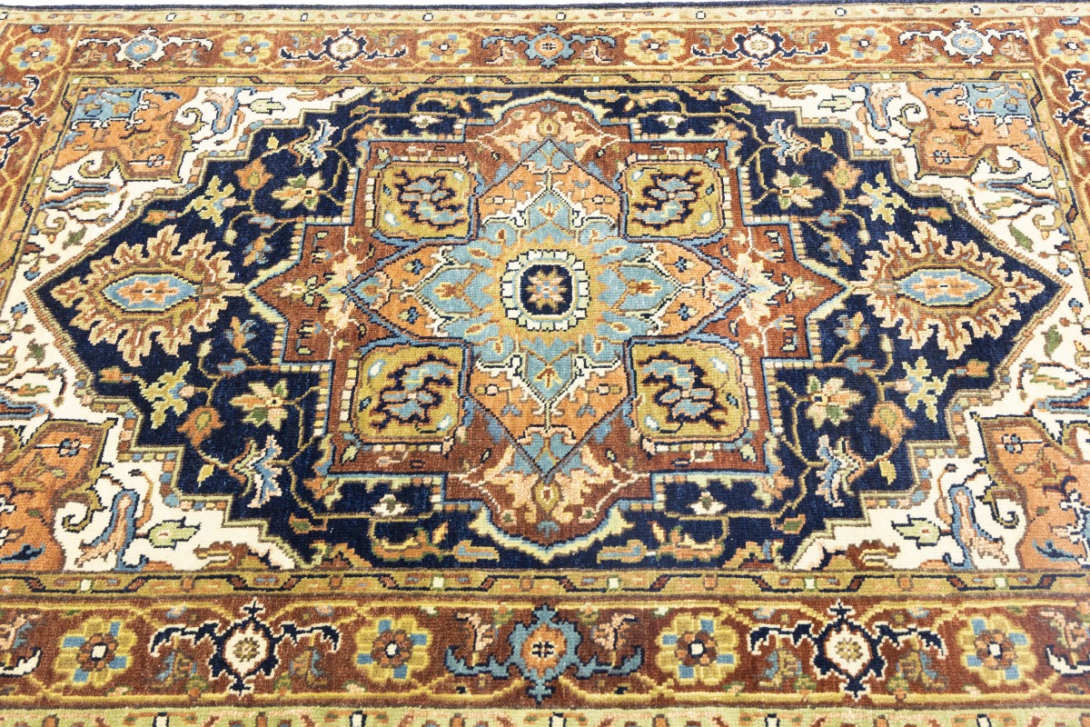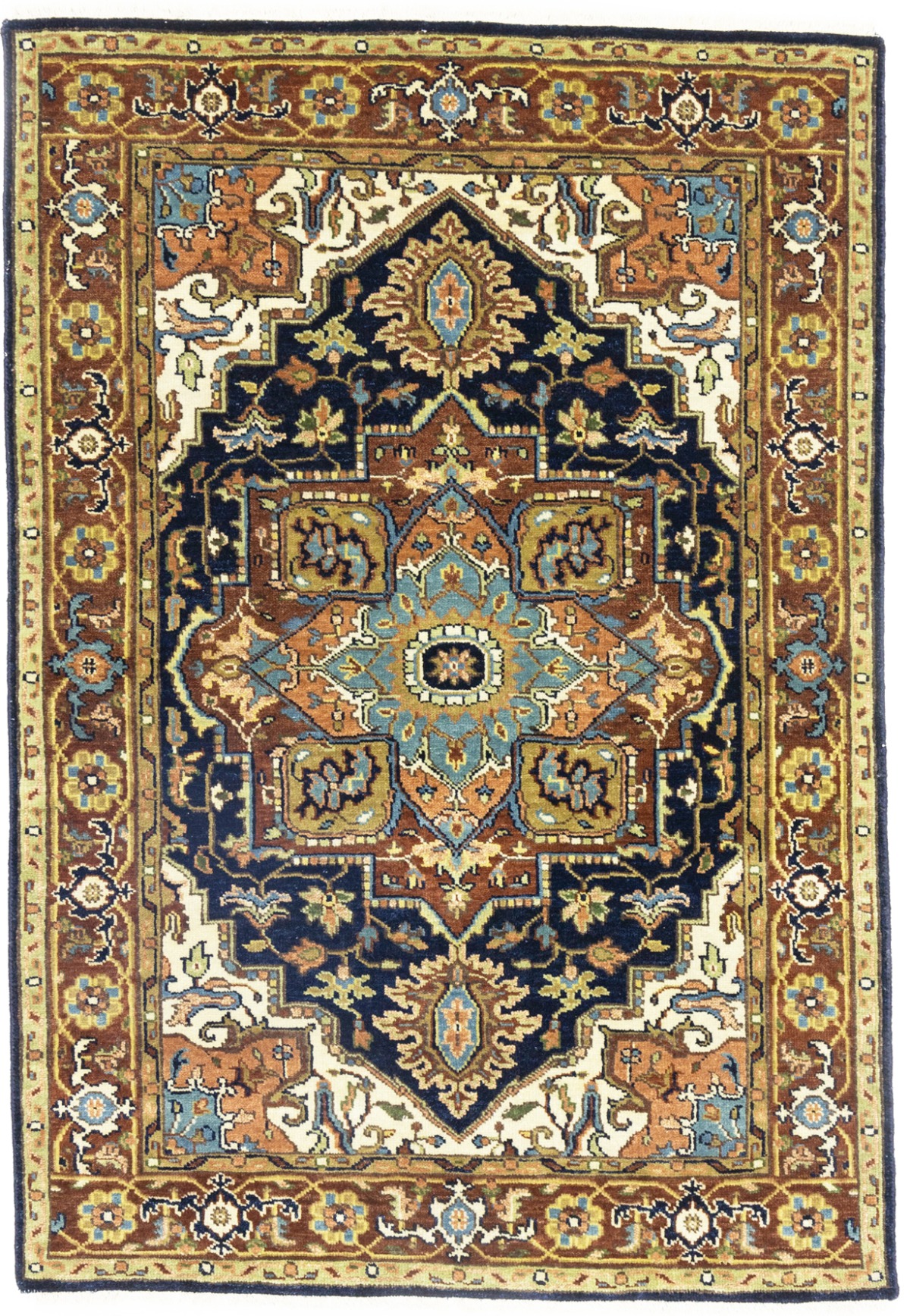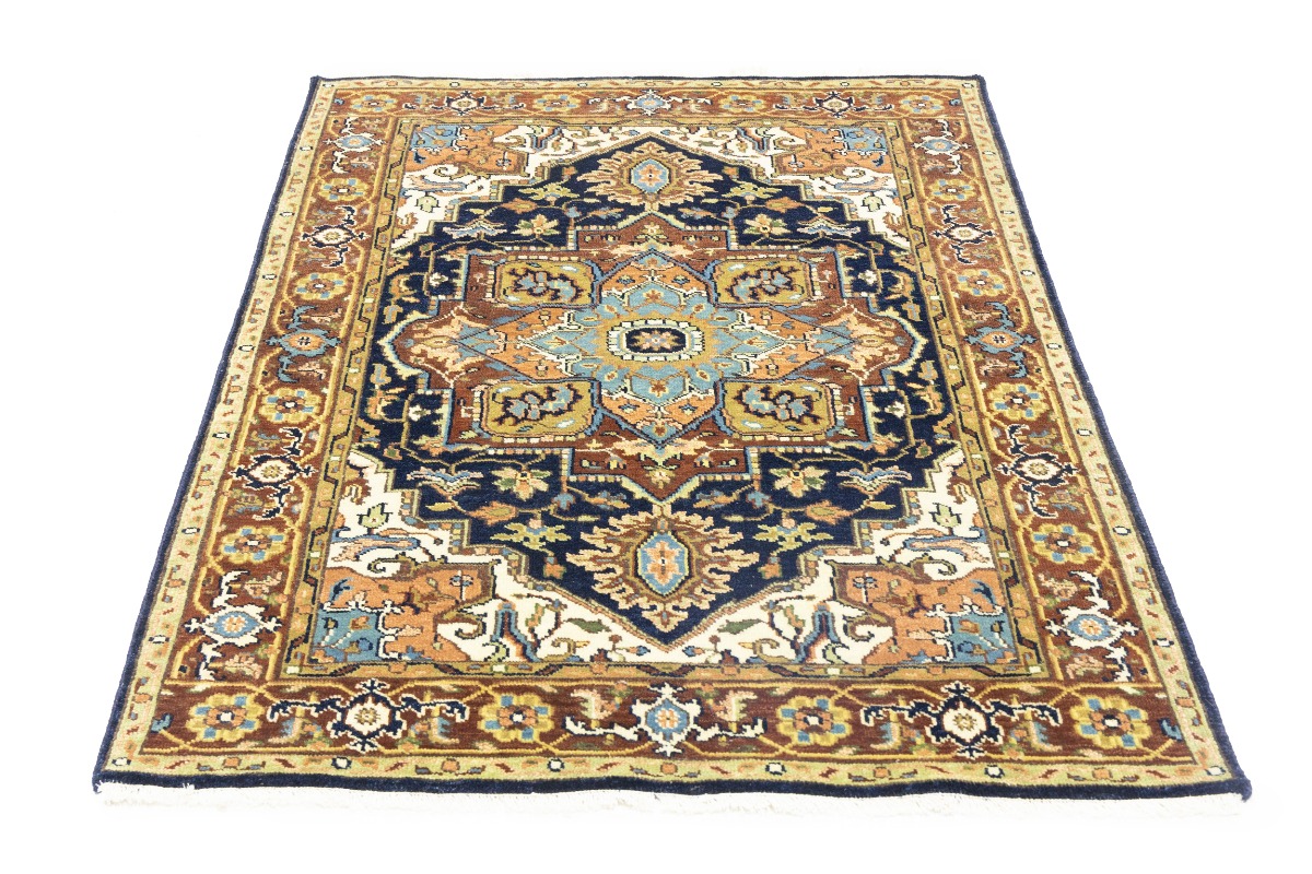 Dark Navy Geometric 4X6 Heriz Serapi Oriental Rug