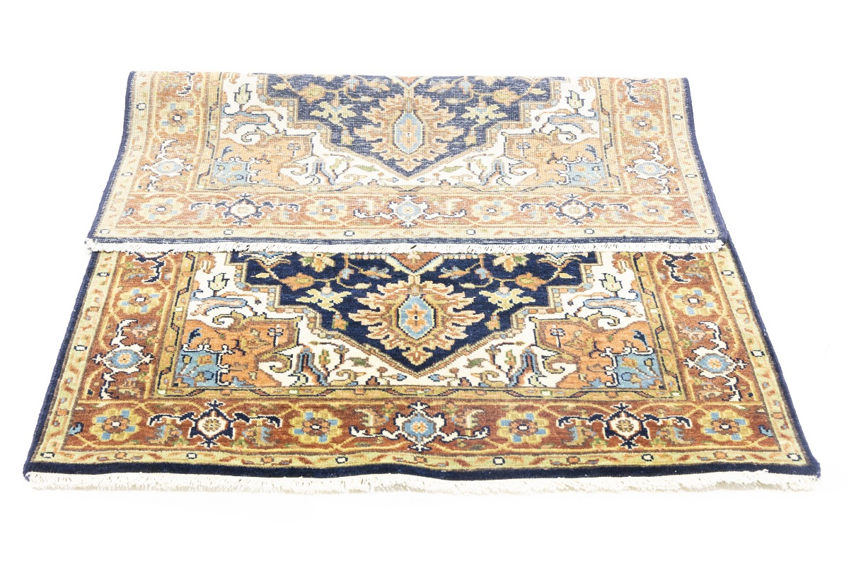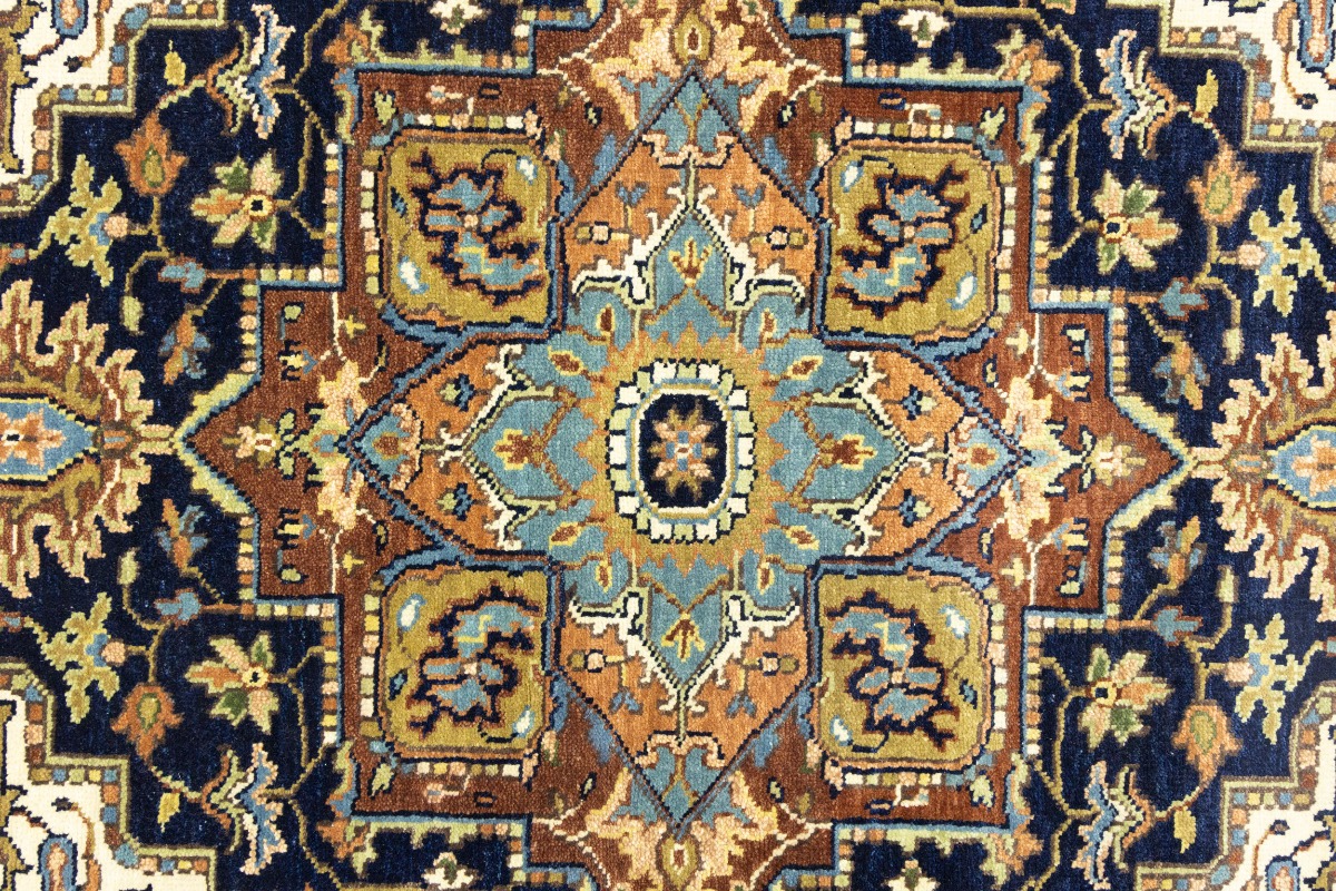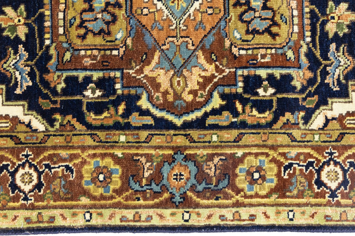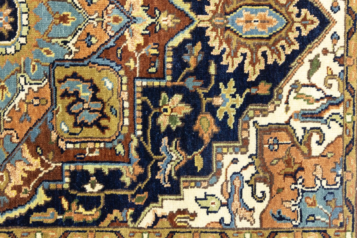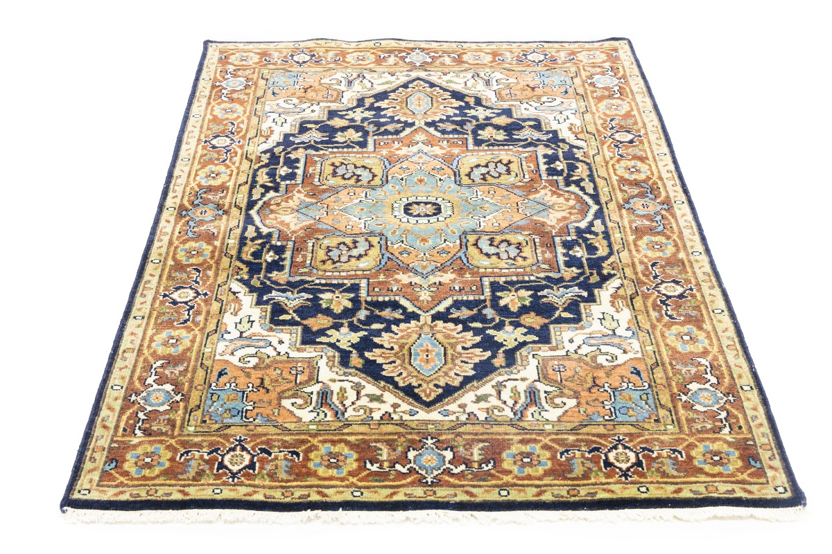 Dark Navy Geometric 4X6 Heriz Serapi Oriental Rug