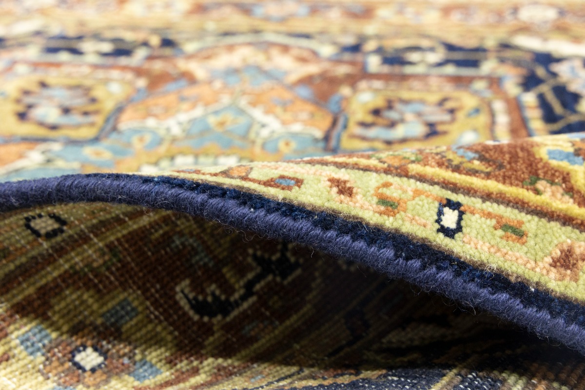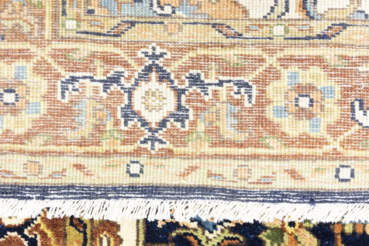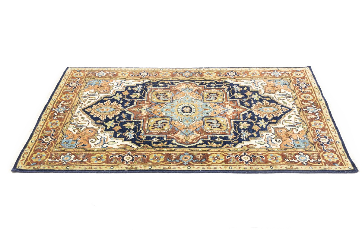 Handmade 4X6 dark navy Oriental rug made with vegetable dyes (fine wool pile and cotton foundation), exceptional knot count, and appealing ancient designs. This Oriental rug never will go out of style and would be among your most valuable treasures.