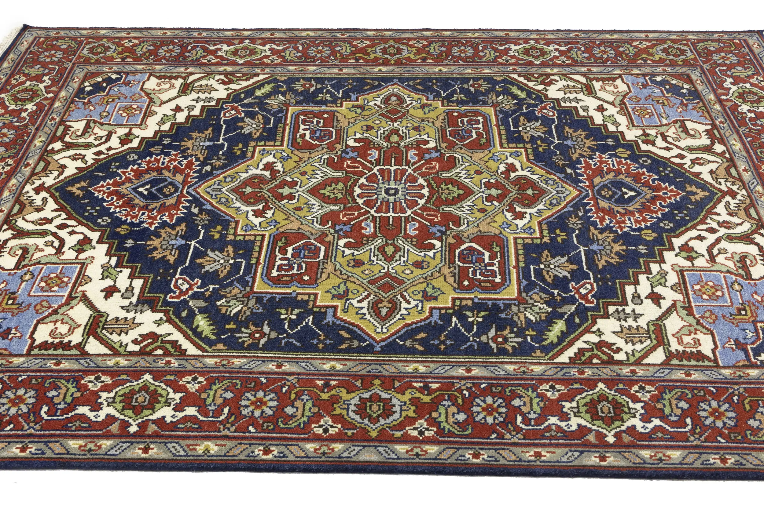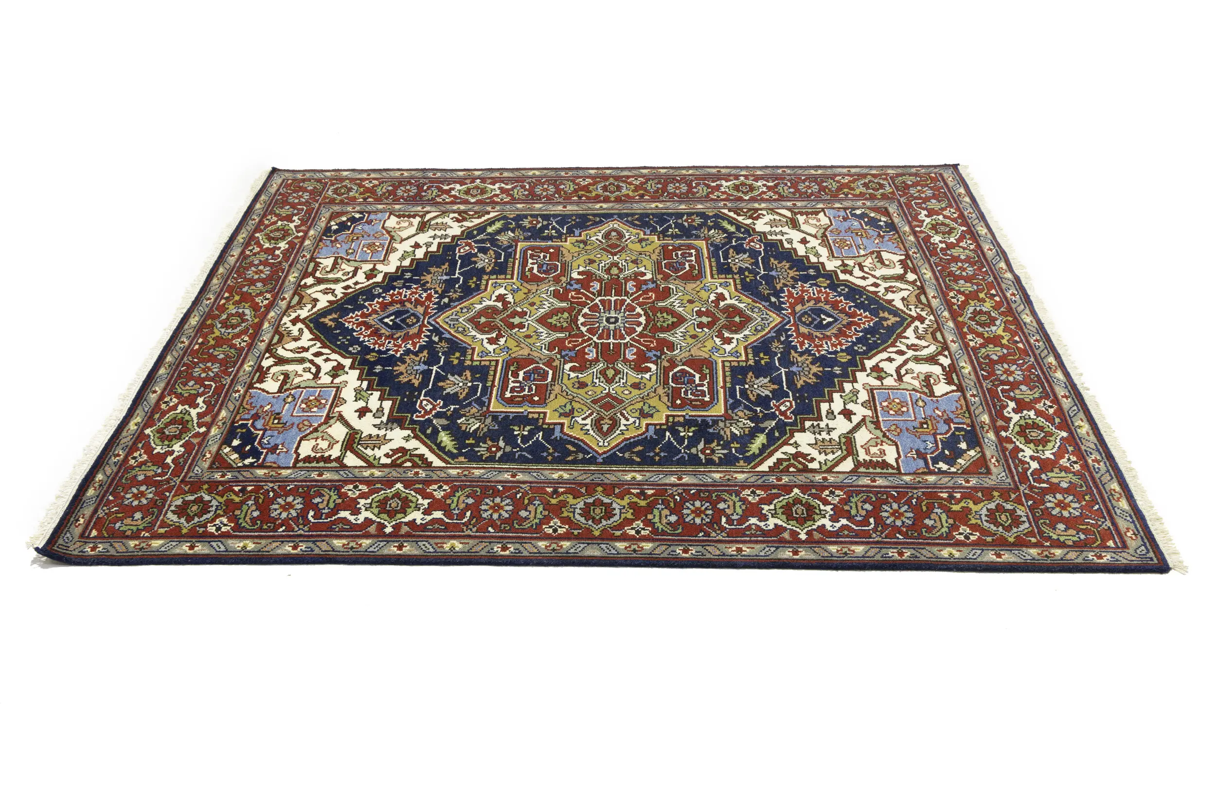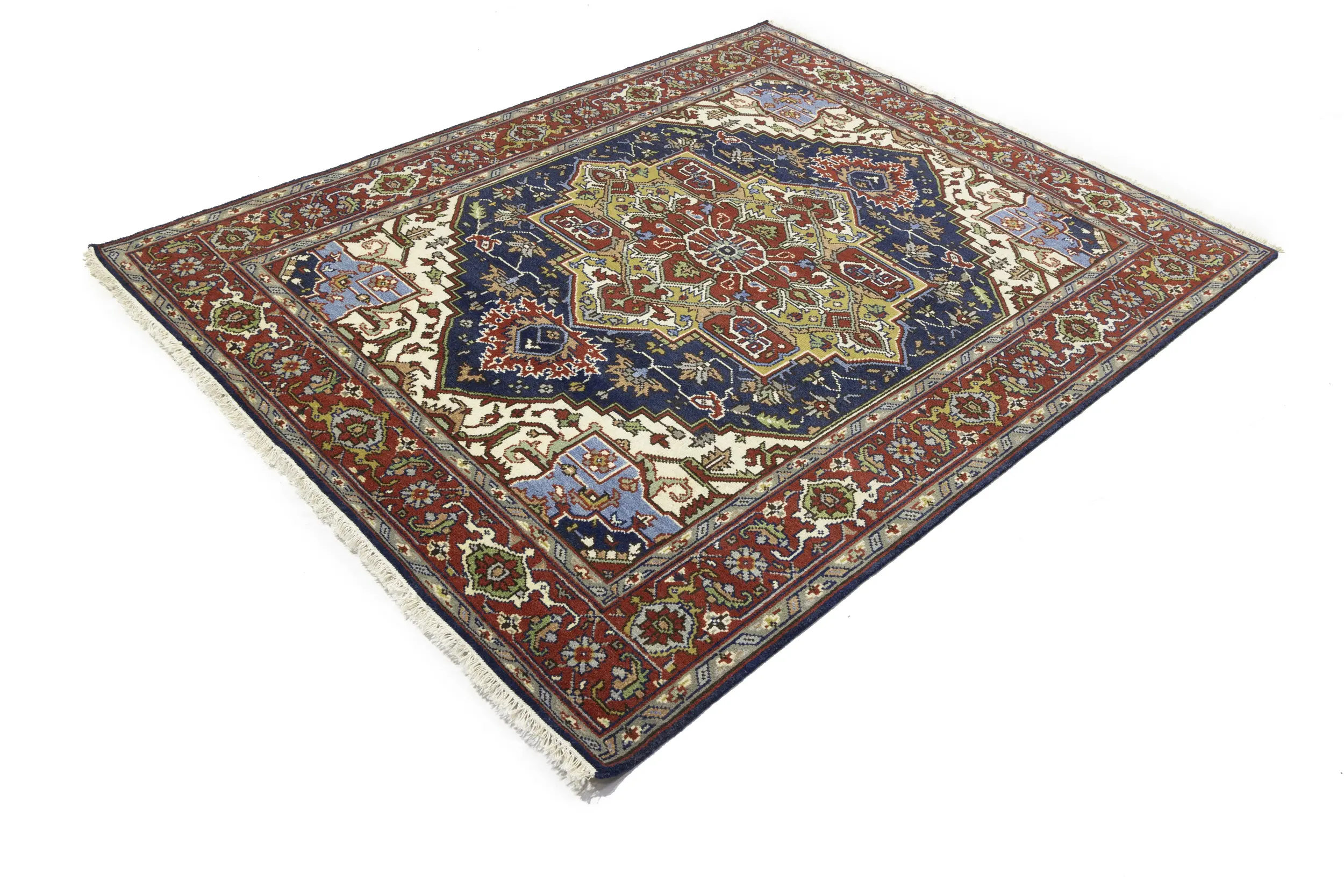 Dark Navy Geometric 8X10 Heriz Serapi Oriental Rug